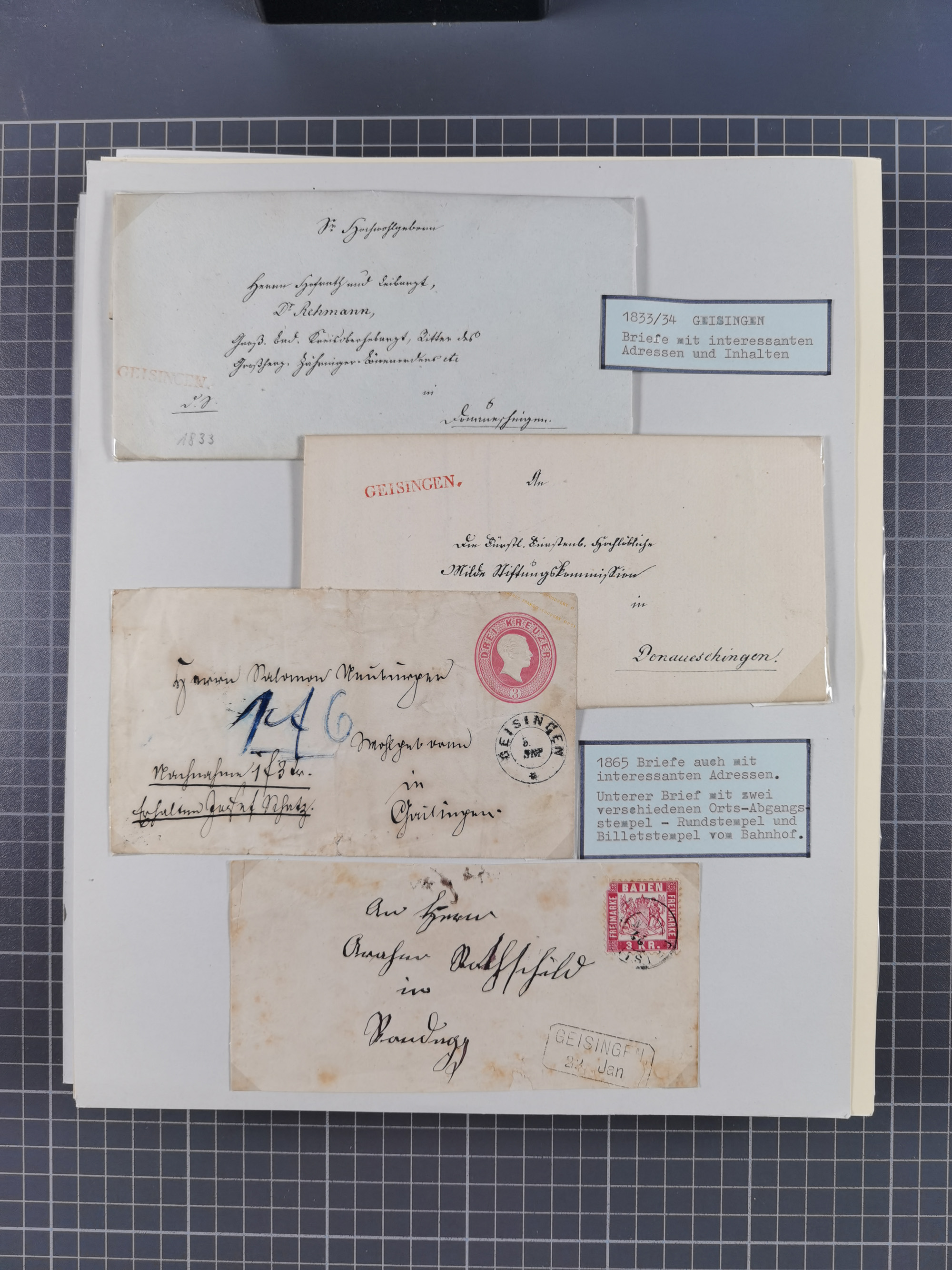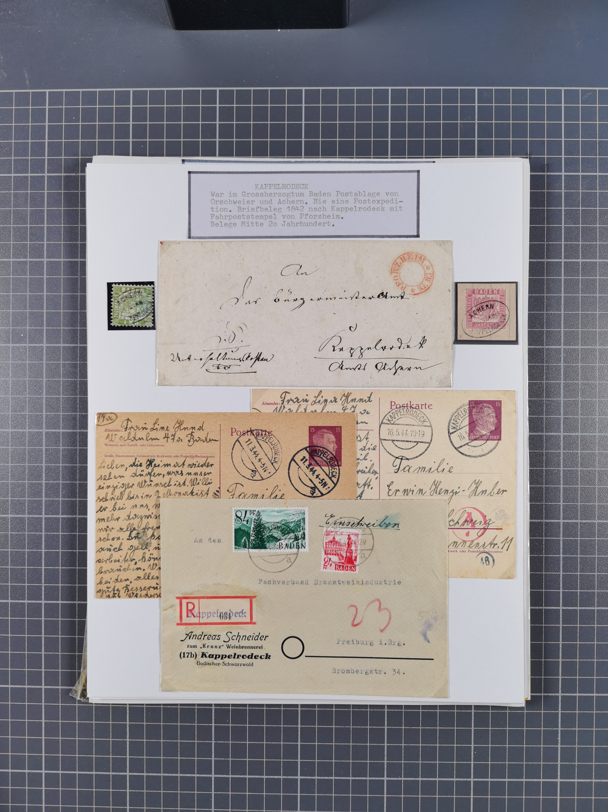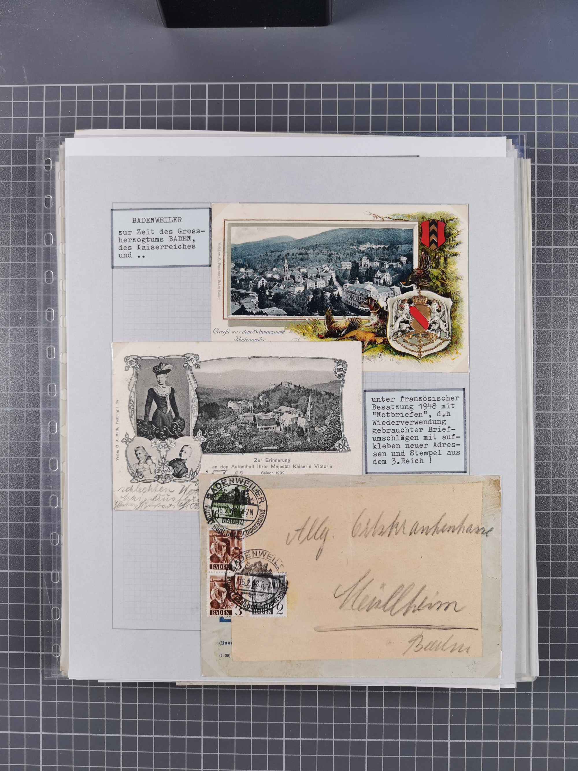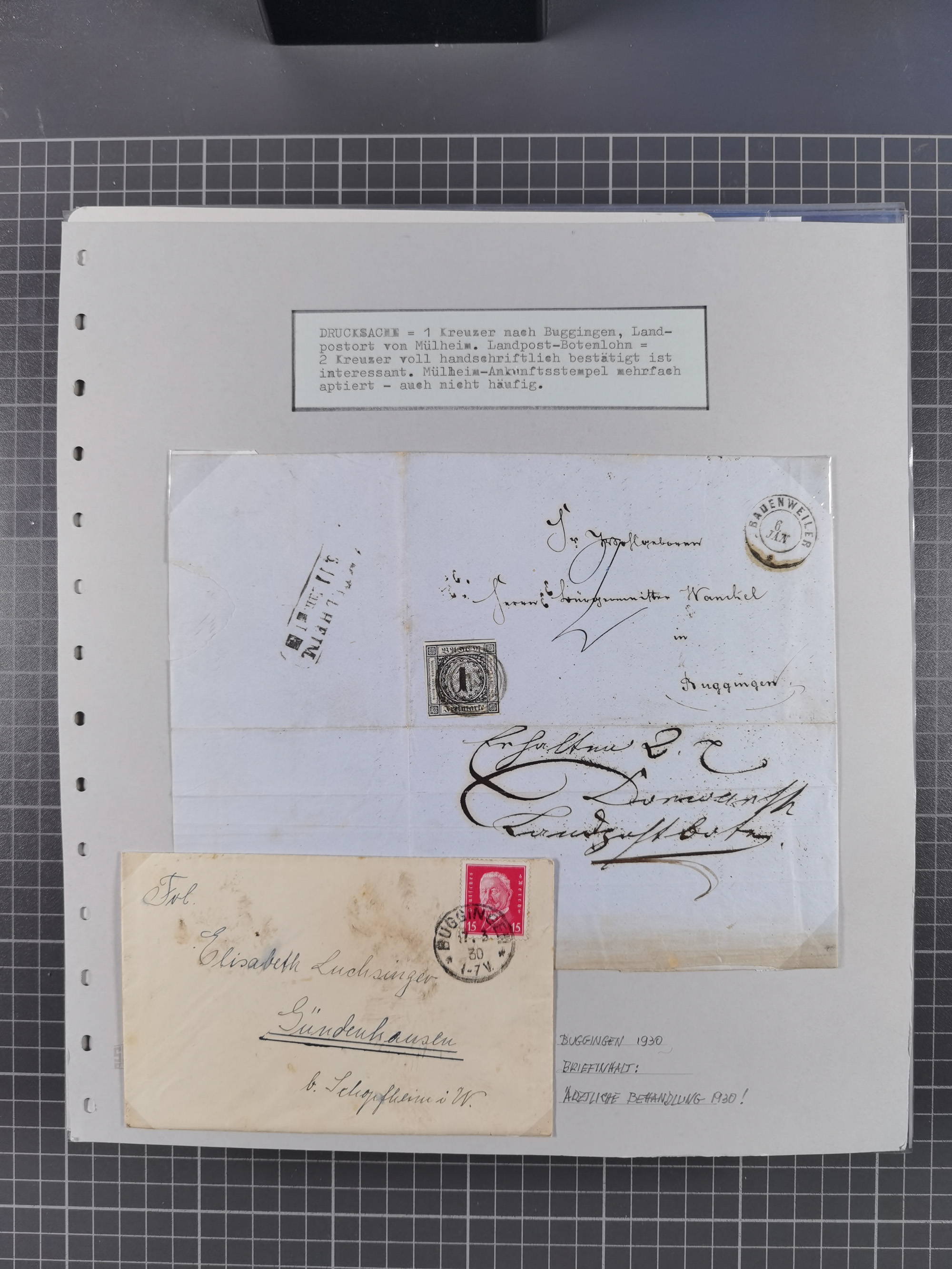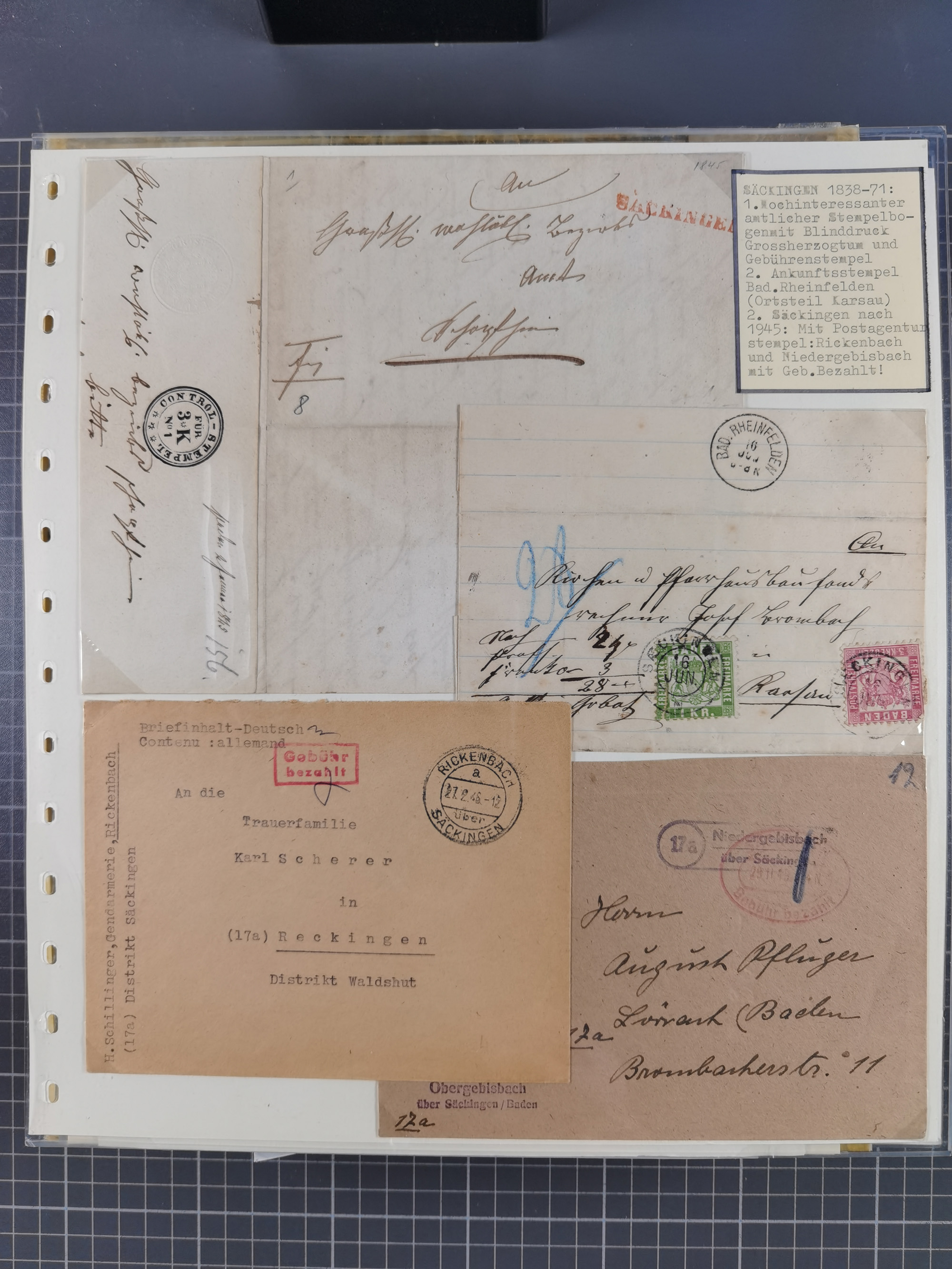 1800/1970 (ca.), HEIMATGESCHICHTE BADENS, umfangreiche Materialsammlung, teils ausstellungsmäßig aufgezogen, mit einigen hundert Briefen und Ganzsachen, dabei Nummern- und Ortsstempel, viele Lithos, Grenzrayon-Belege, Notgeld, Reisescheine, Baden U1 +10, etc., etc.. Ex Dr. Heinz Jaeger