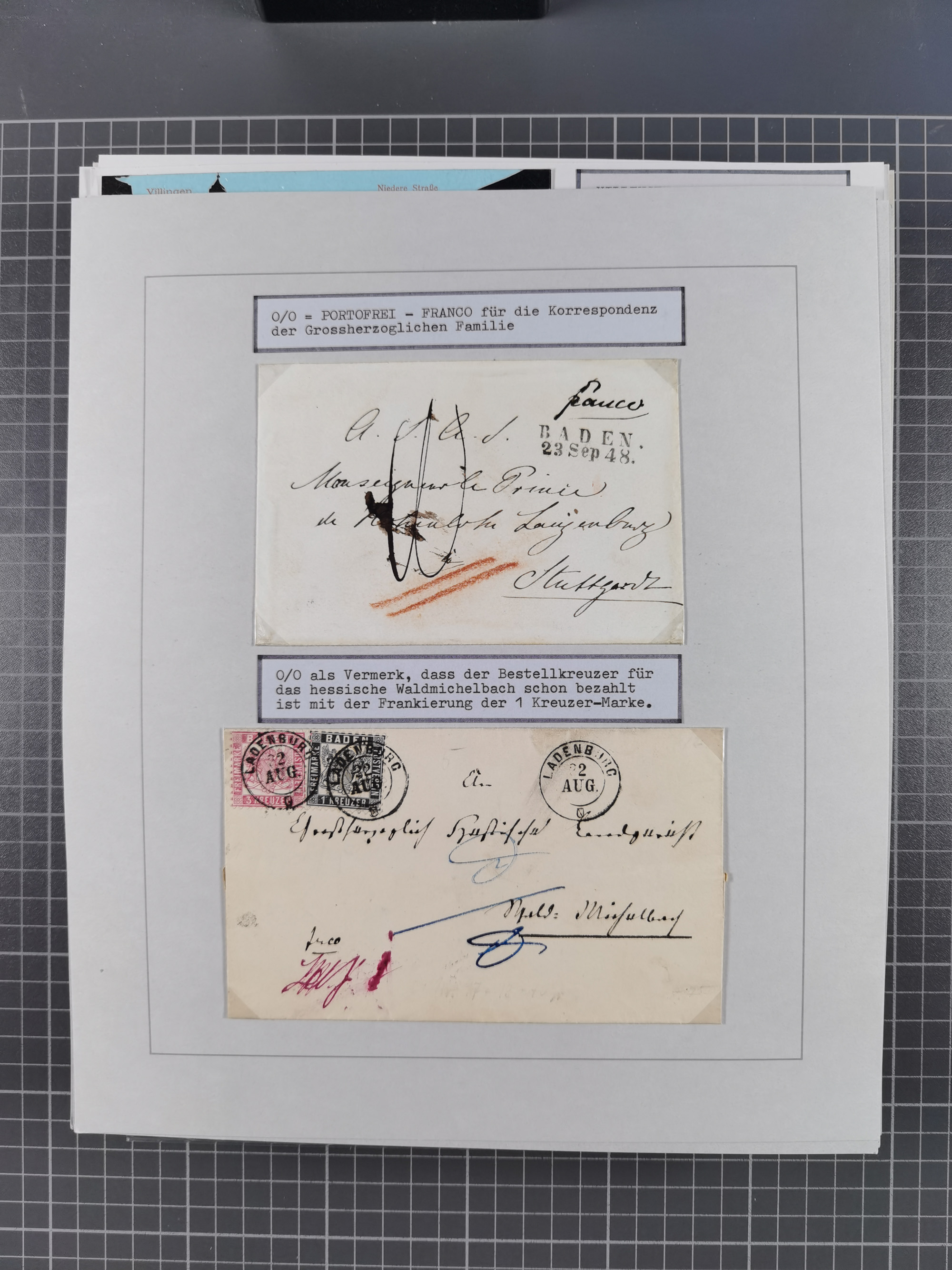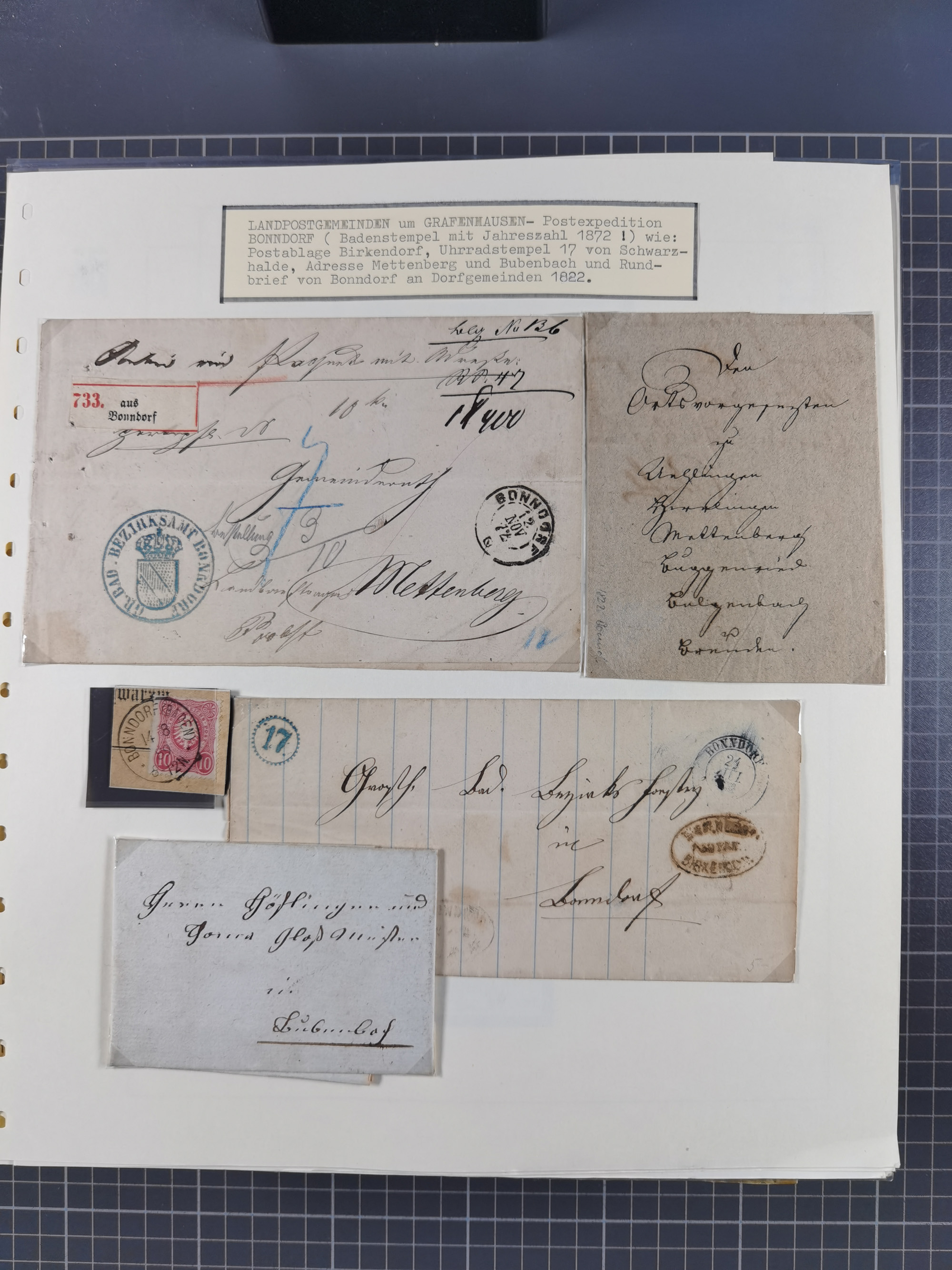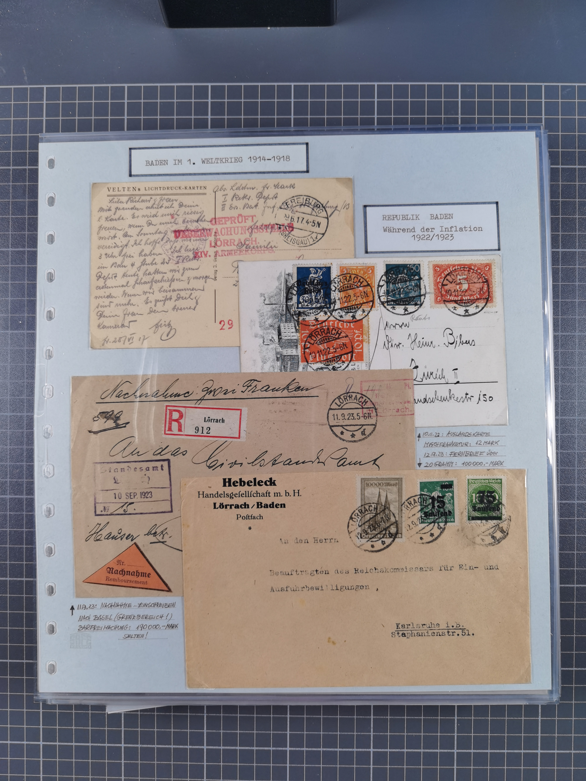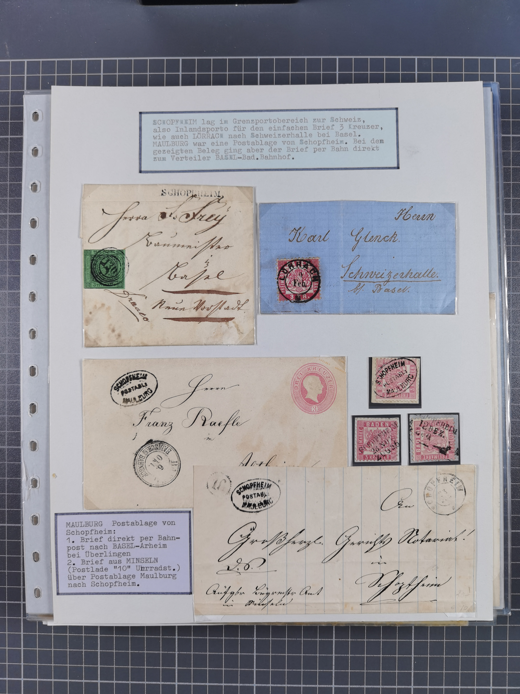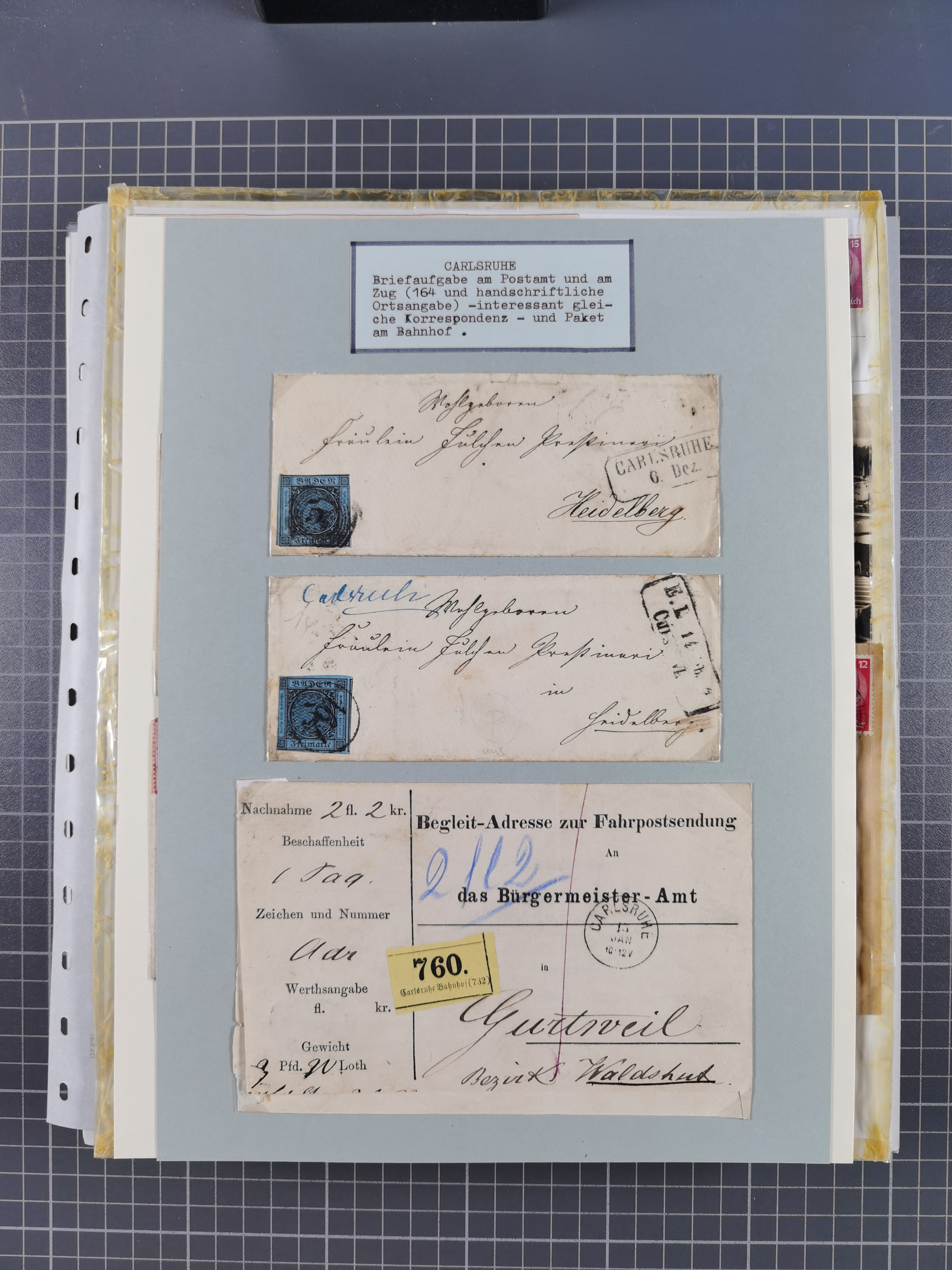1800/1970 (ca.), HEIMATGESCHICHTE BADENS, umfangreiche Materialsammlung, teils ausstellungsmäßig aufgezogen, mit einigen hundert Briefen und Ganzsachen, dabei Nummern- und Ortsstempel, viele Lithos, Grenzrayon-Belege, Notgeld, Reisescheine, Baden U1 +10, etc., etc.. Ex Dr. Heinz Jaeger