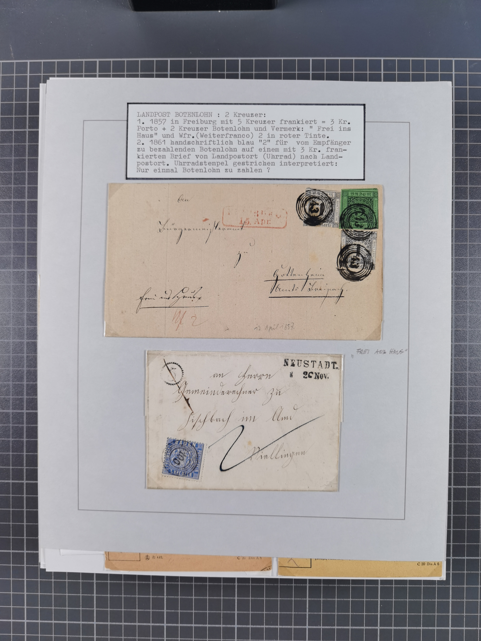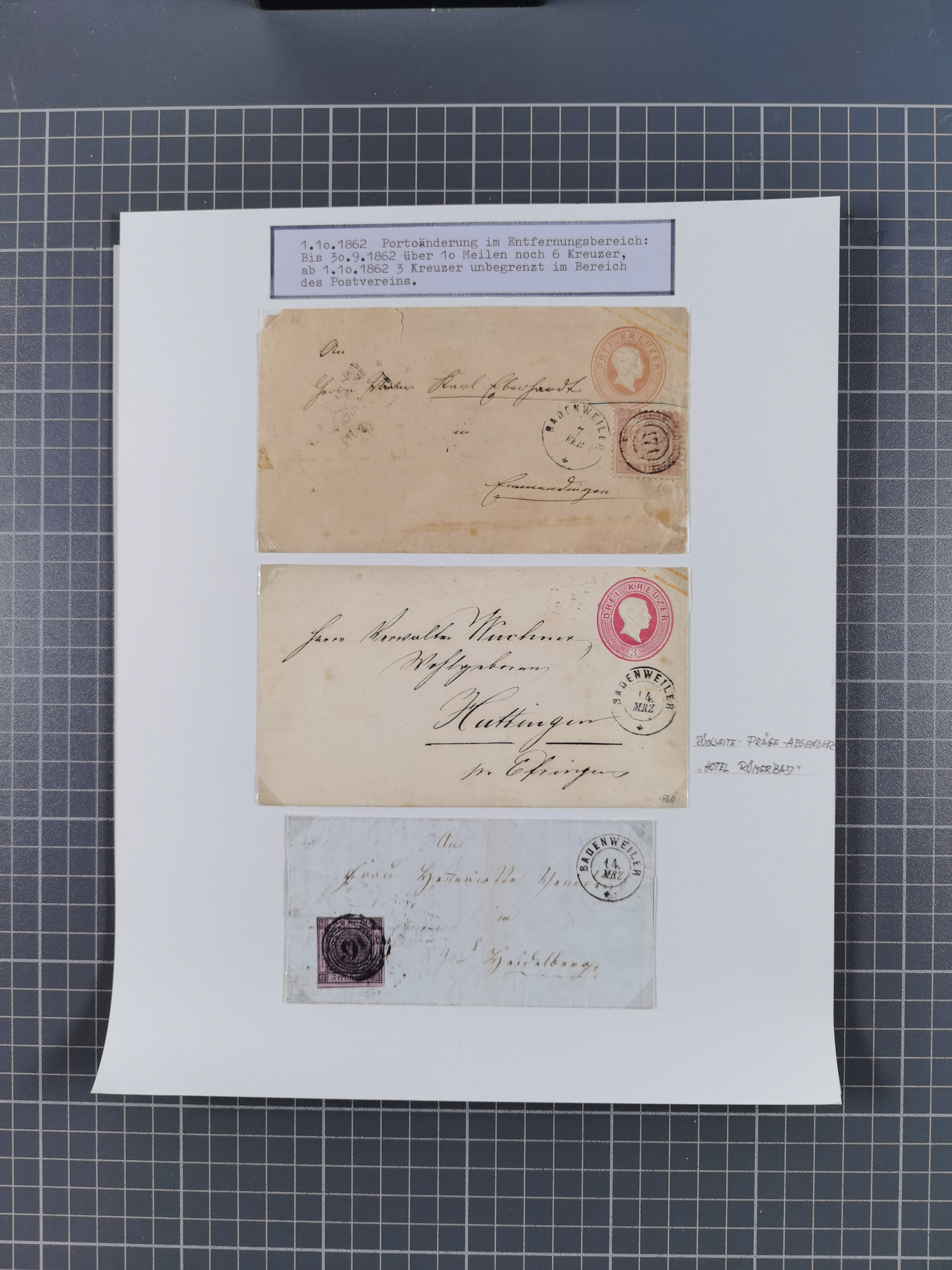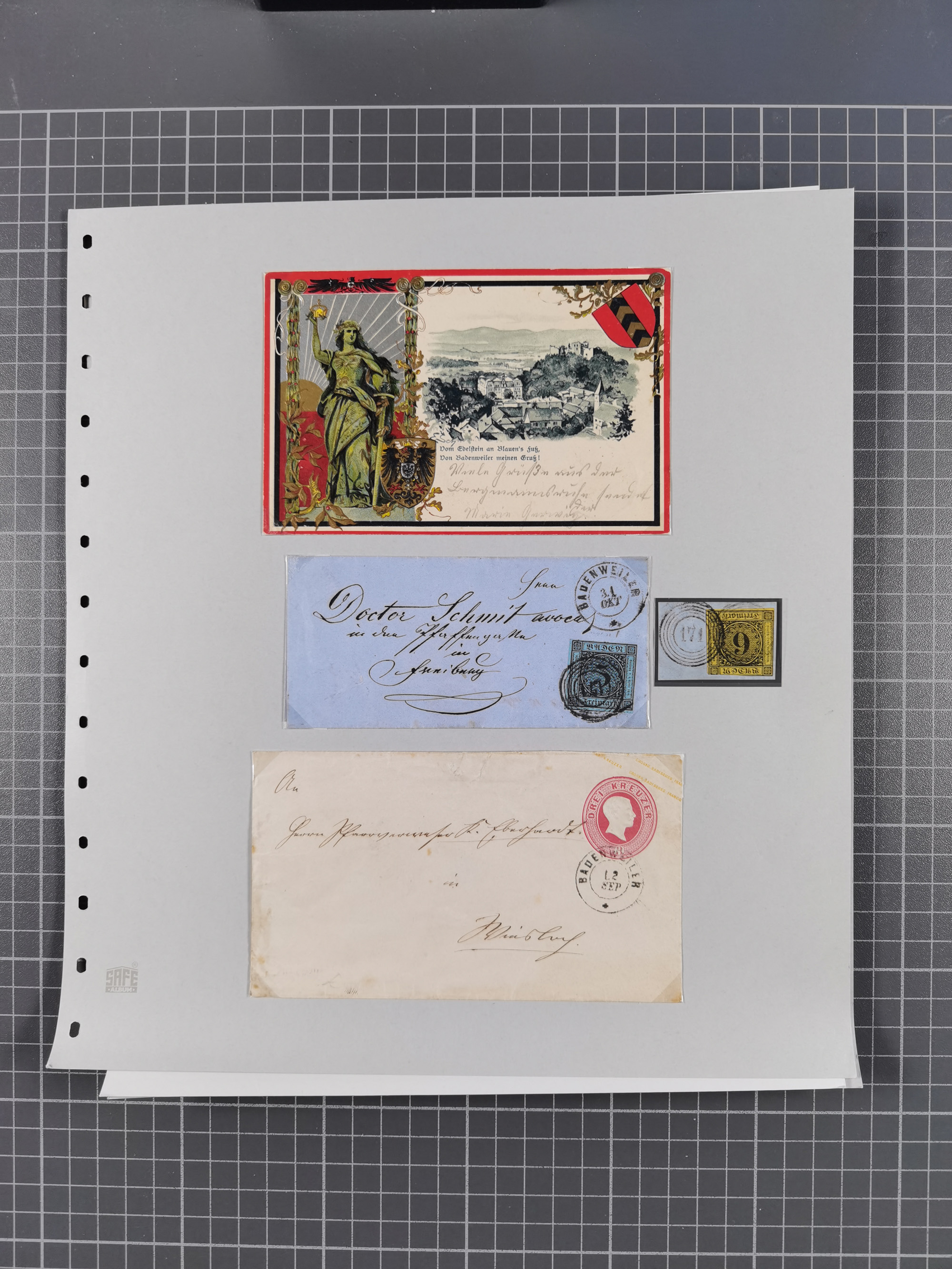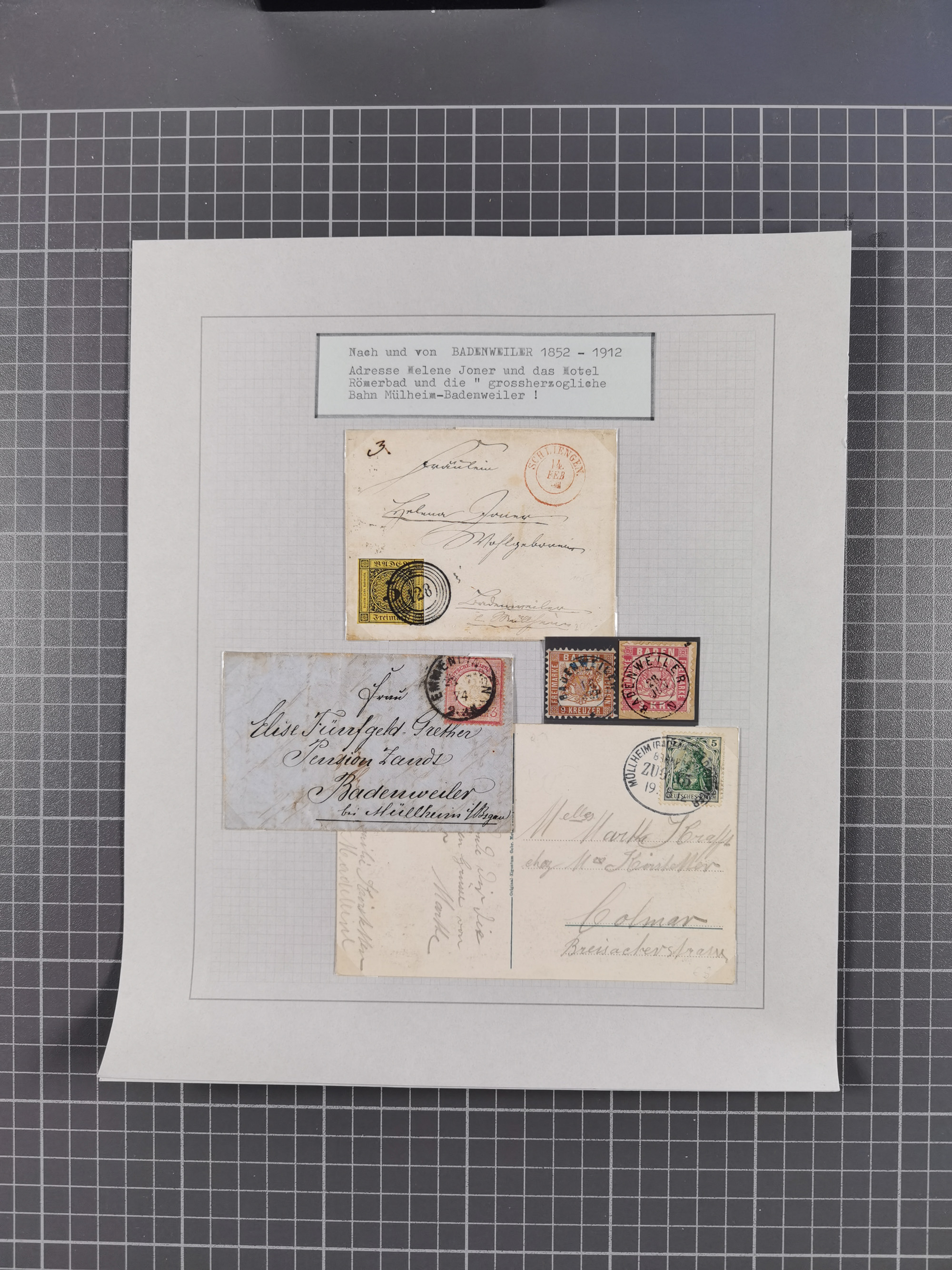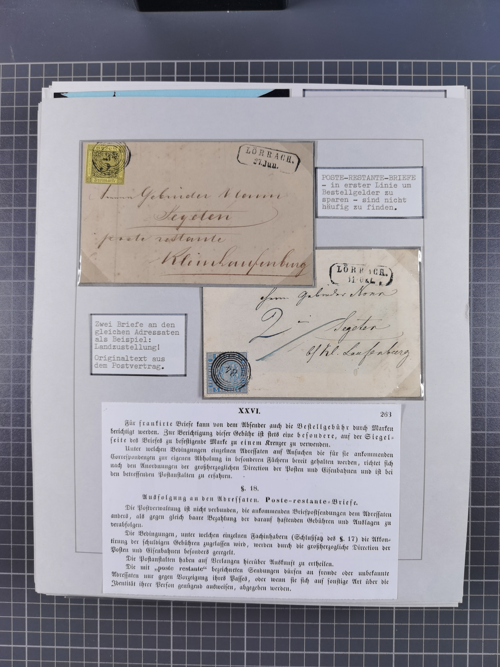 1800/1970 (ca.), HEIMATGESCHICHTE BADENS, umfangreiche Materialsammlung, teils ausstellungsmäßig aufgezogen, mit einigen hundert Briefen und Ganzsachen, dabei Nummern- und Ortsstempel, viele Lithos, Grenzrayon-Belege, Notgeld, Reisescheine, Baden U1 +10, etc., etc.. Ex Dr. Heinz Jaeger