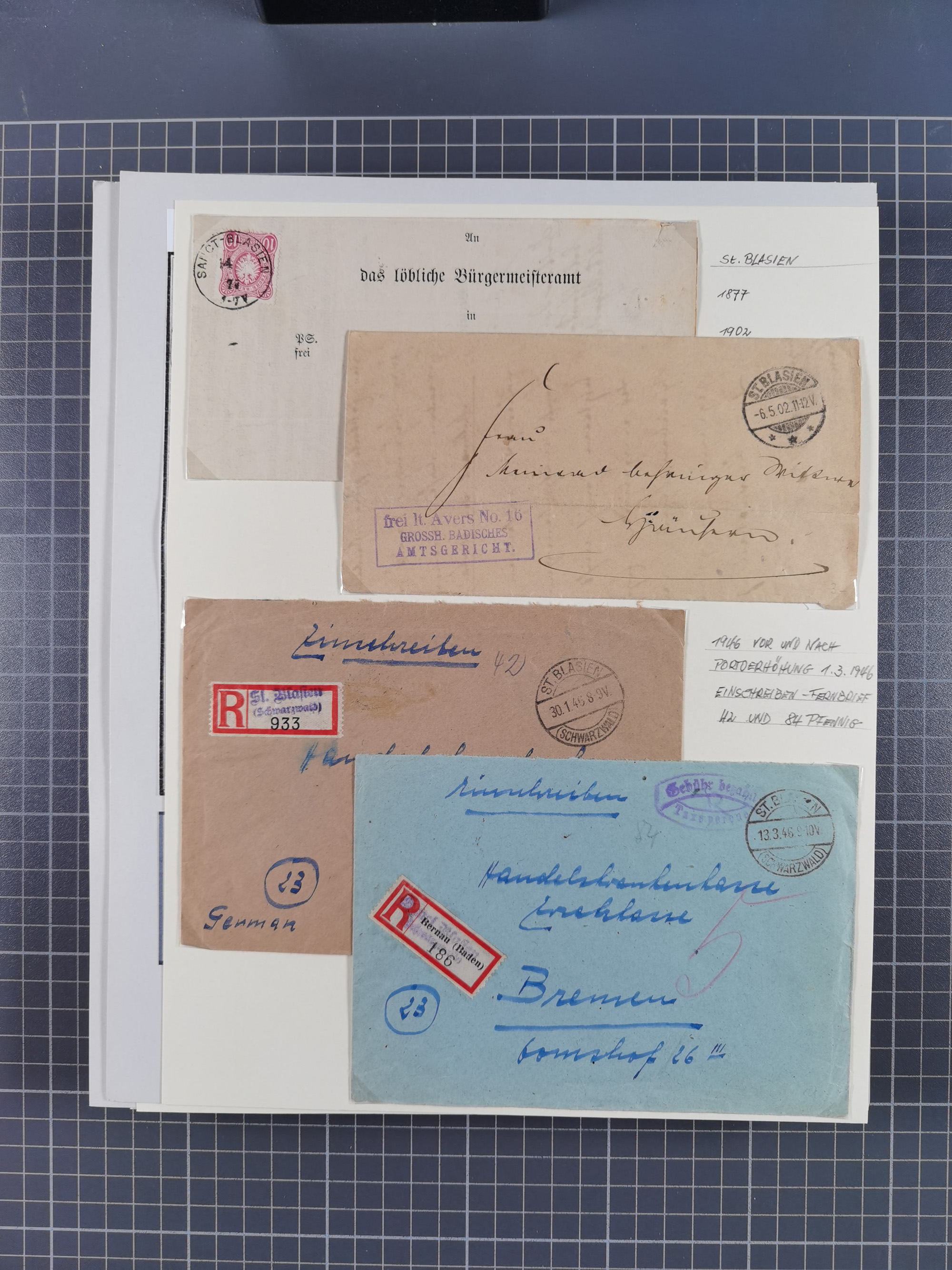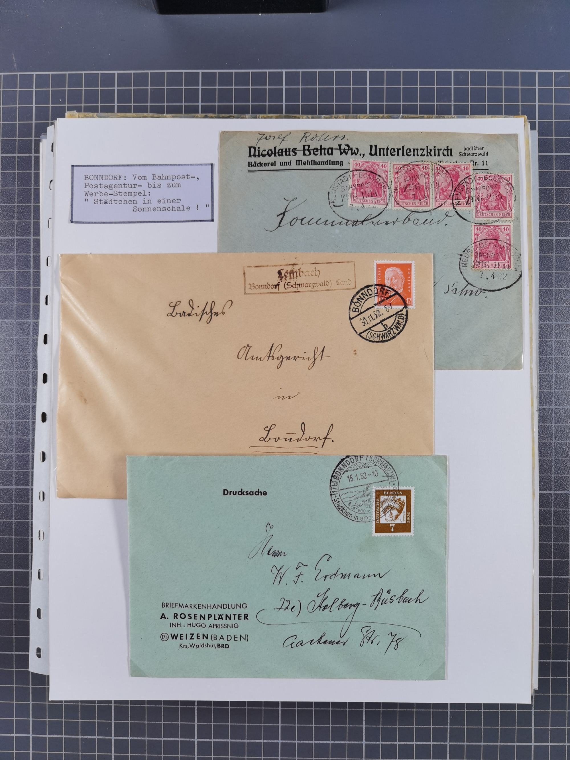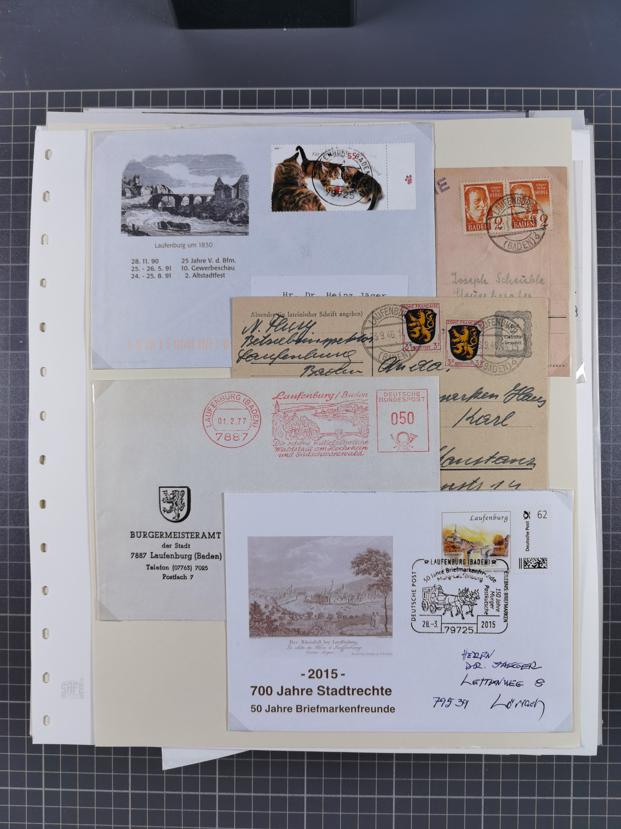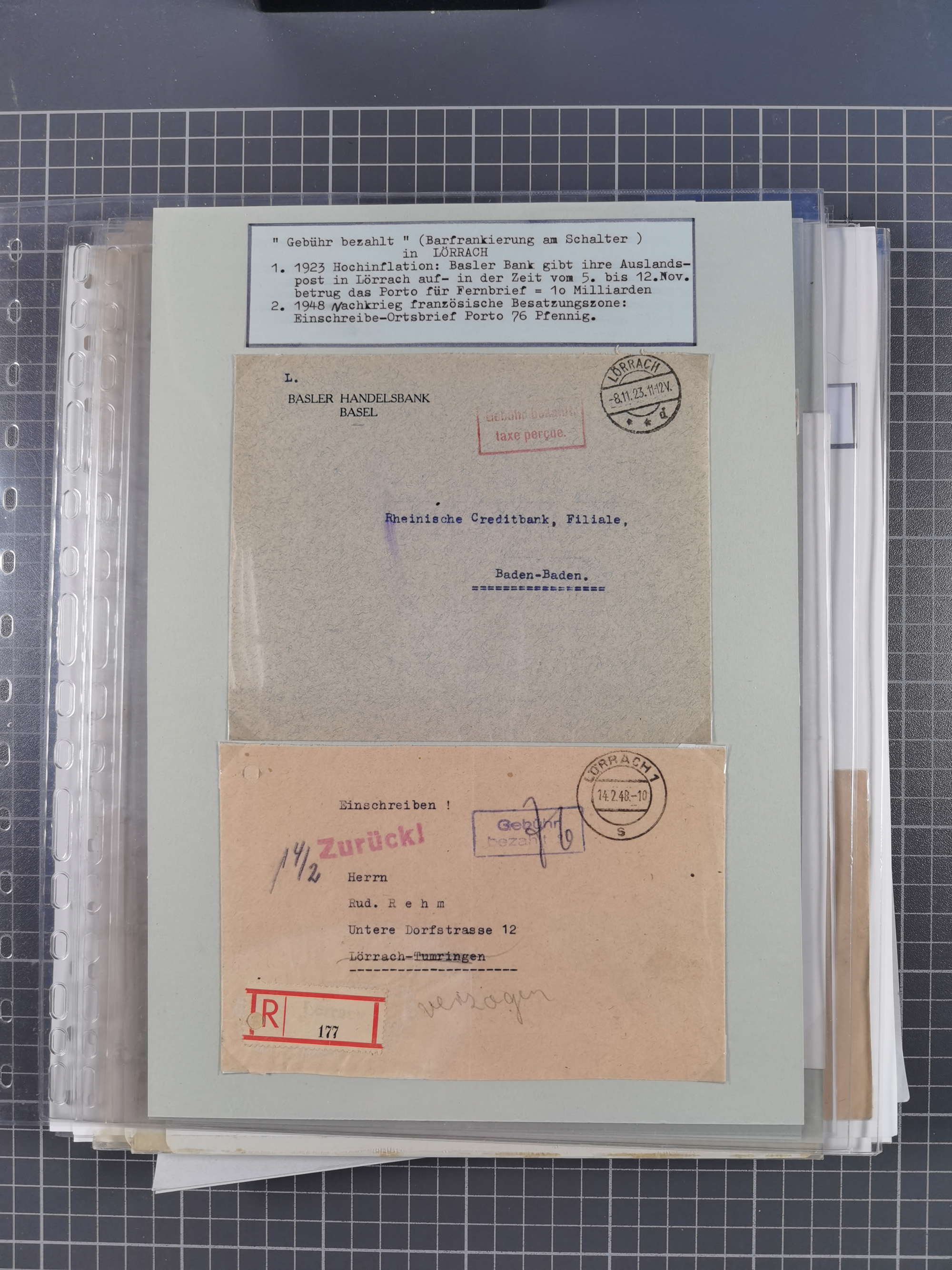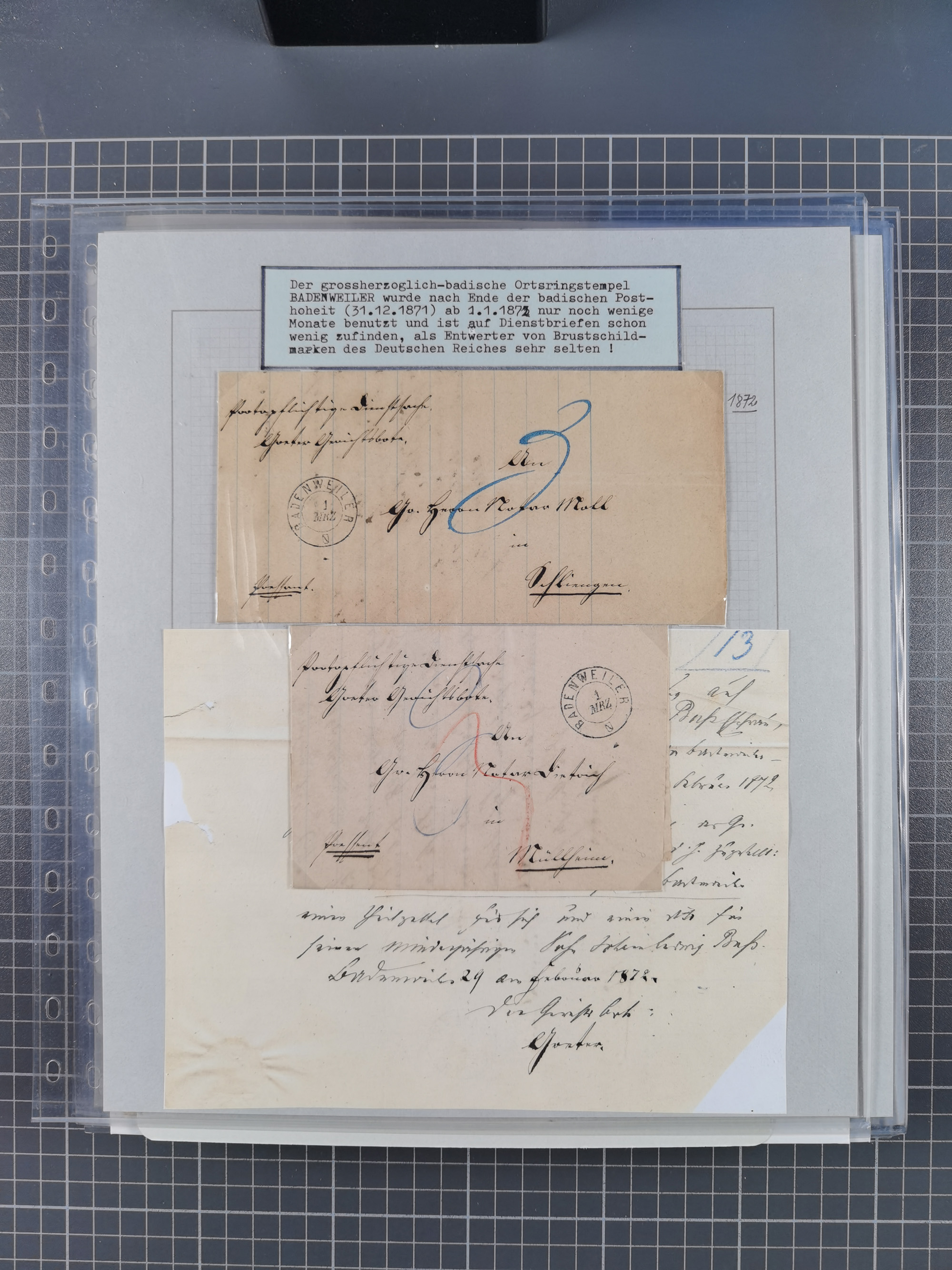 1800/1970 (ca.), HEIMATGESCHICHTE BADENS, umfangreiche Materialsammlung, teils ausstellungsmäßig aufgezogen, mit einigen hundert Briefen und Ganzsachen, dabei Nummern- und Ortsstempel, viele Lithos, Grenzrayon-Belege, Notgeld, Reisescheine, Baden U1 +10, etc., etc.. Ex Dr. Heinz Jaeger