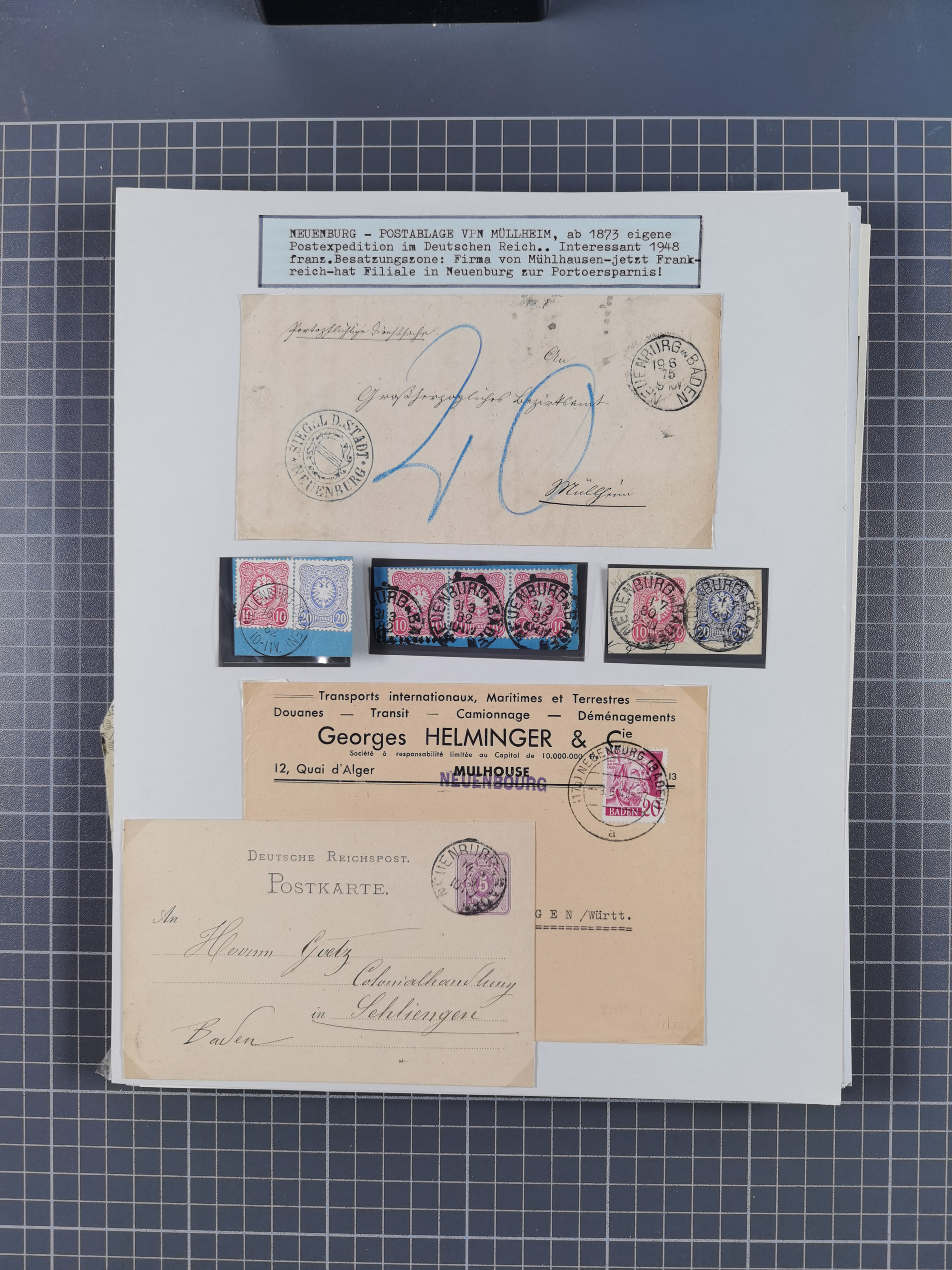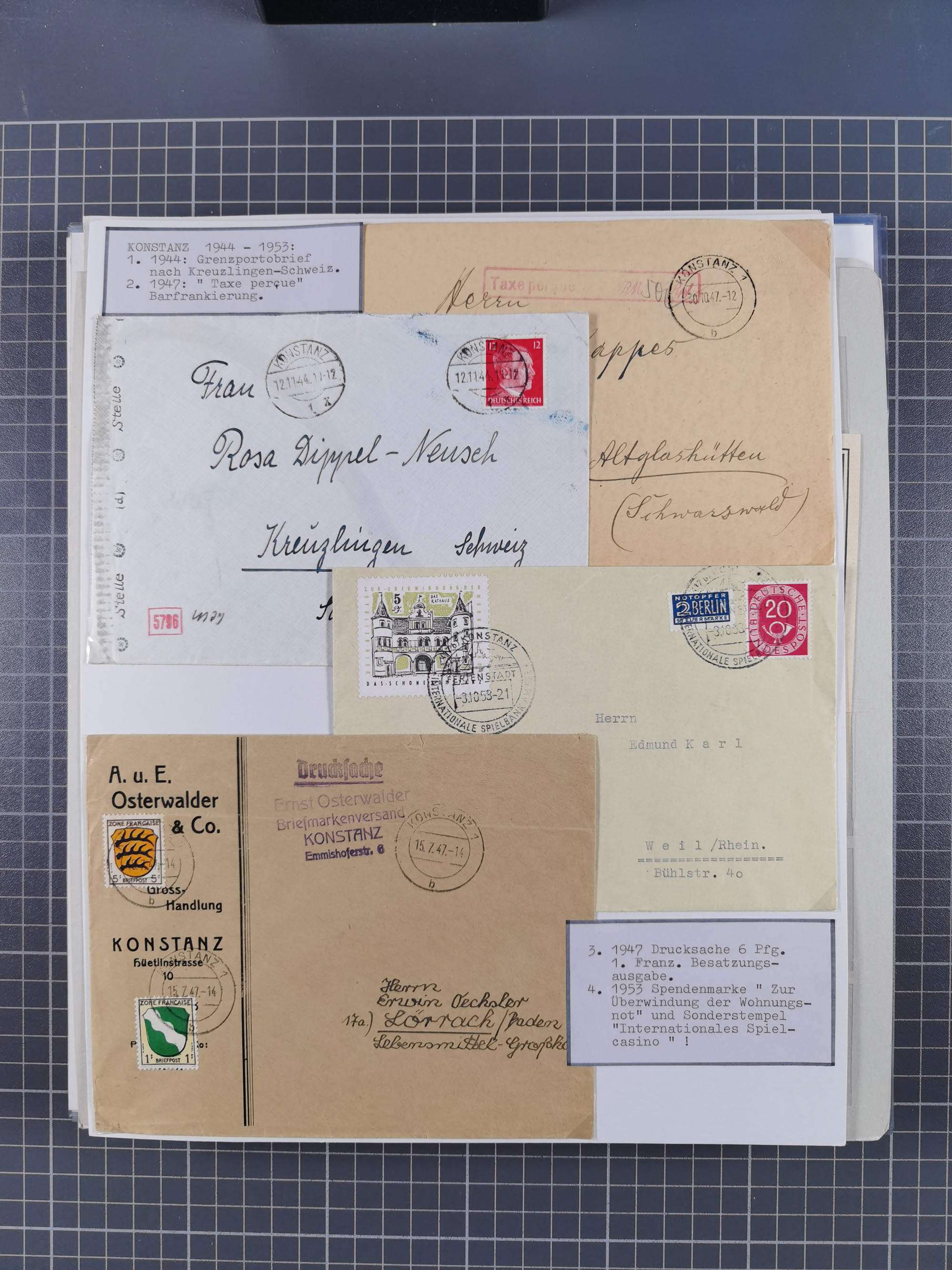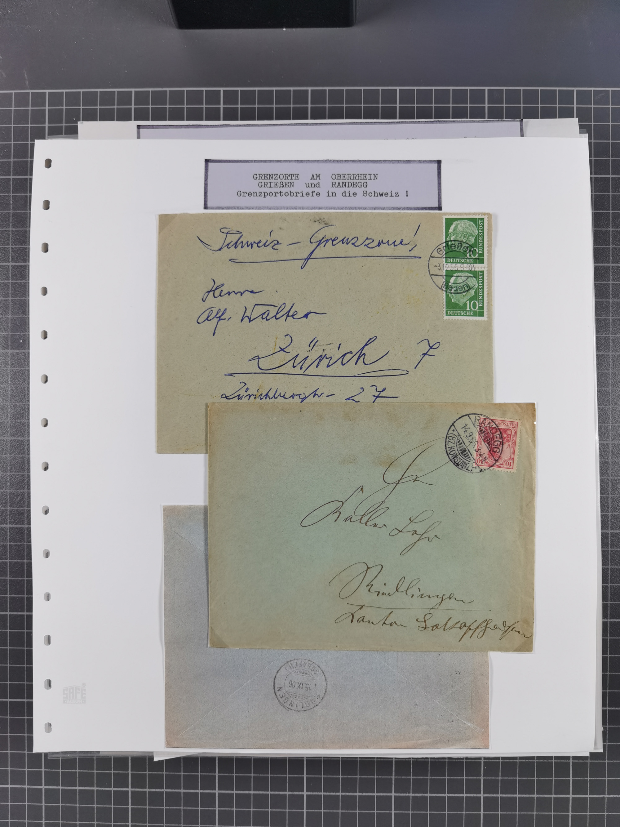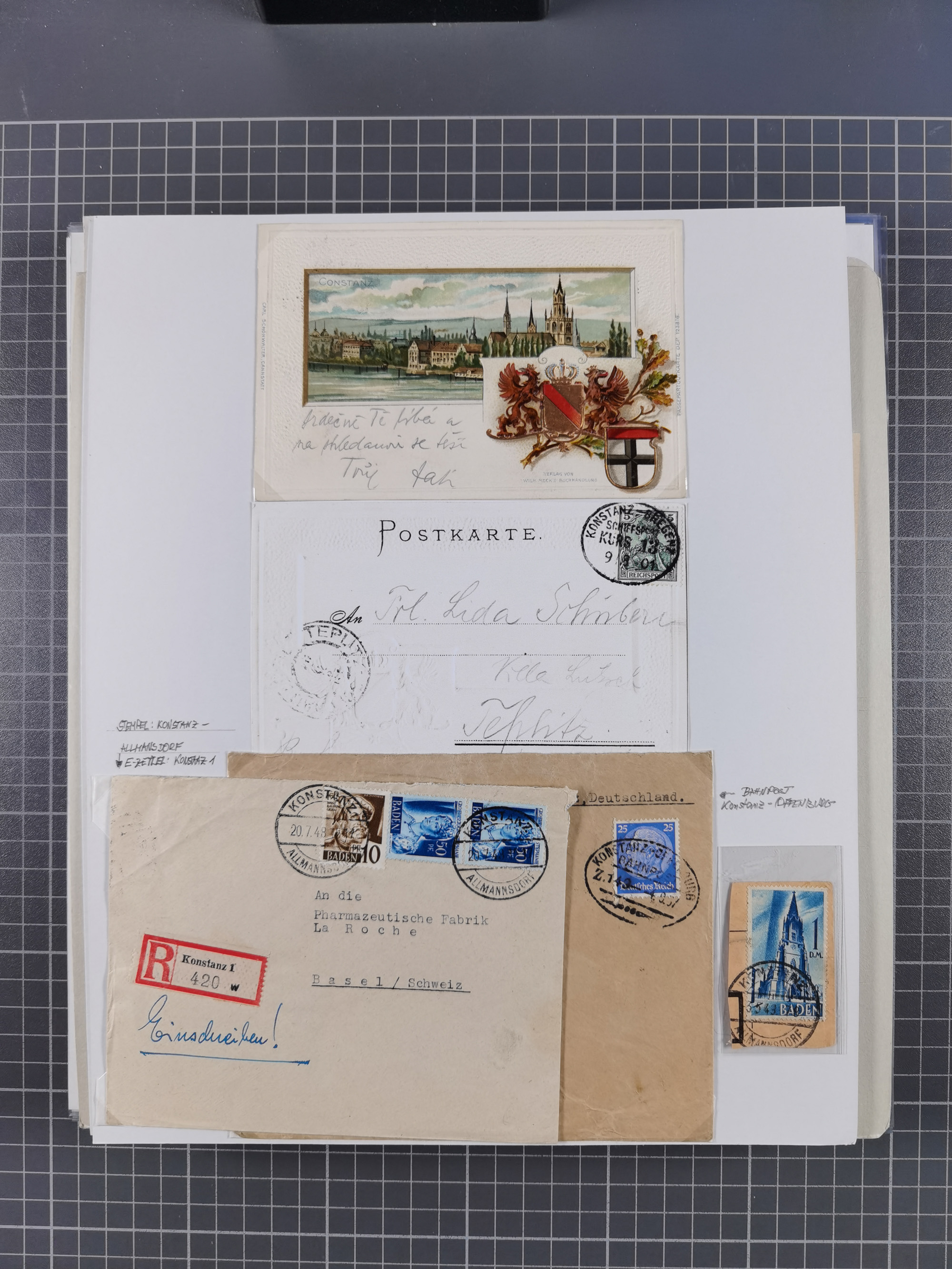 1800/1970 (ca.) interessante Material-Sammlung von etwa 250 Belegen und wenigen Marken, dabei u.a. Dt. Reich Ersttagsstempel auf Loser Mi. 2 und U1, Ballon Monte-Brief, diverse Grenzrayon-Belege, etc., dabei auch wenig Ausland. Ex Dr. Heinz Jaeger