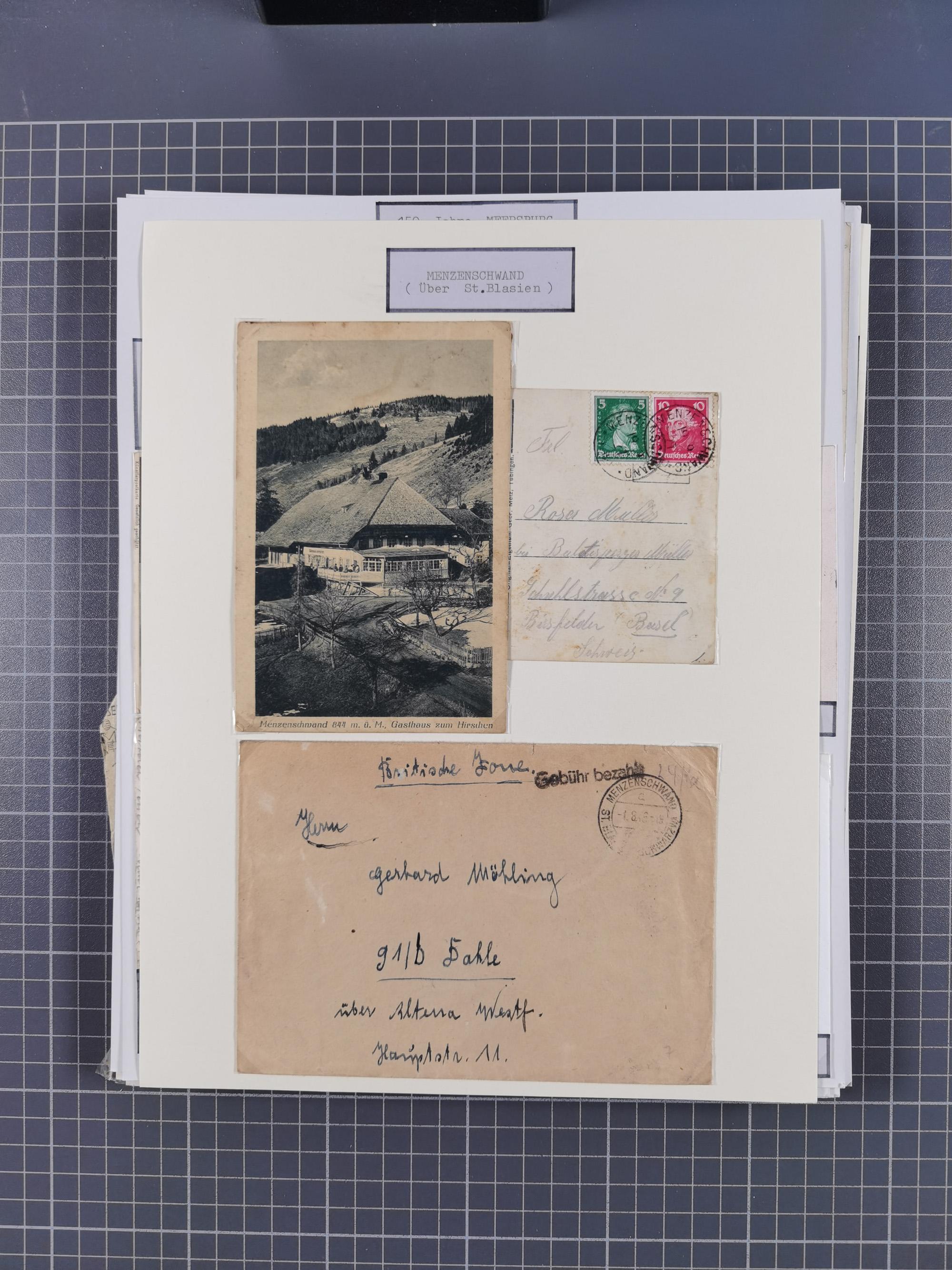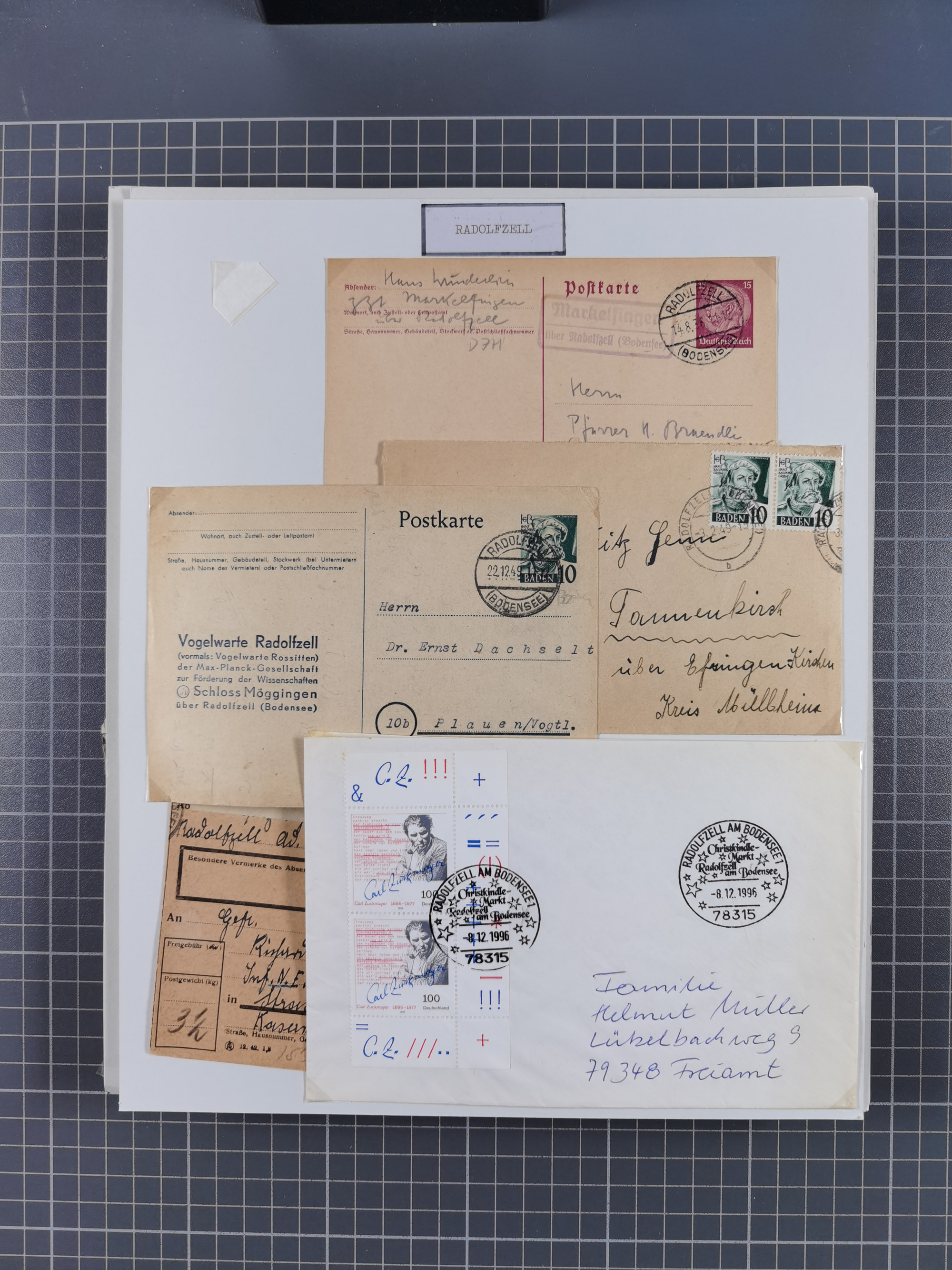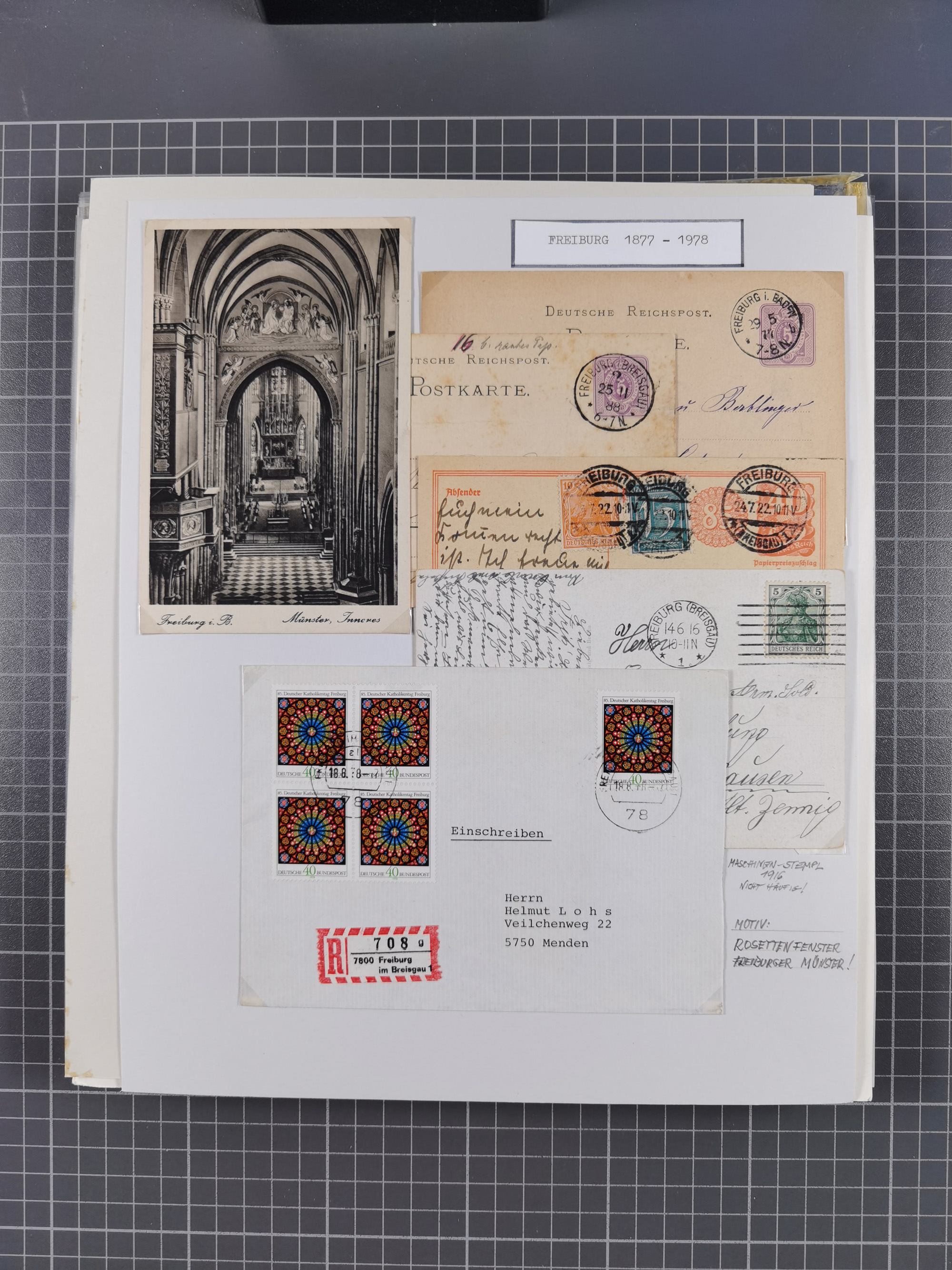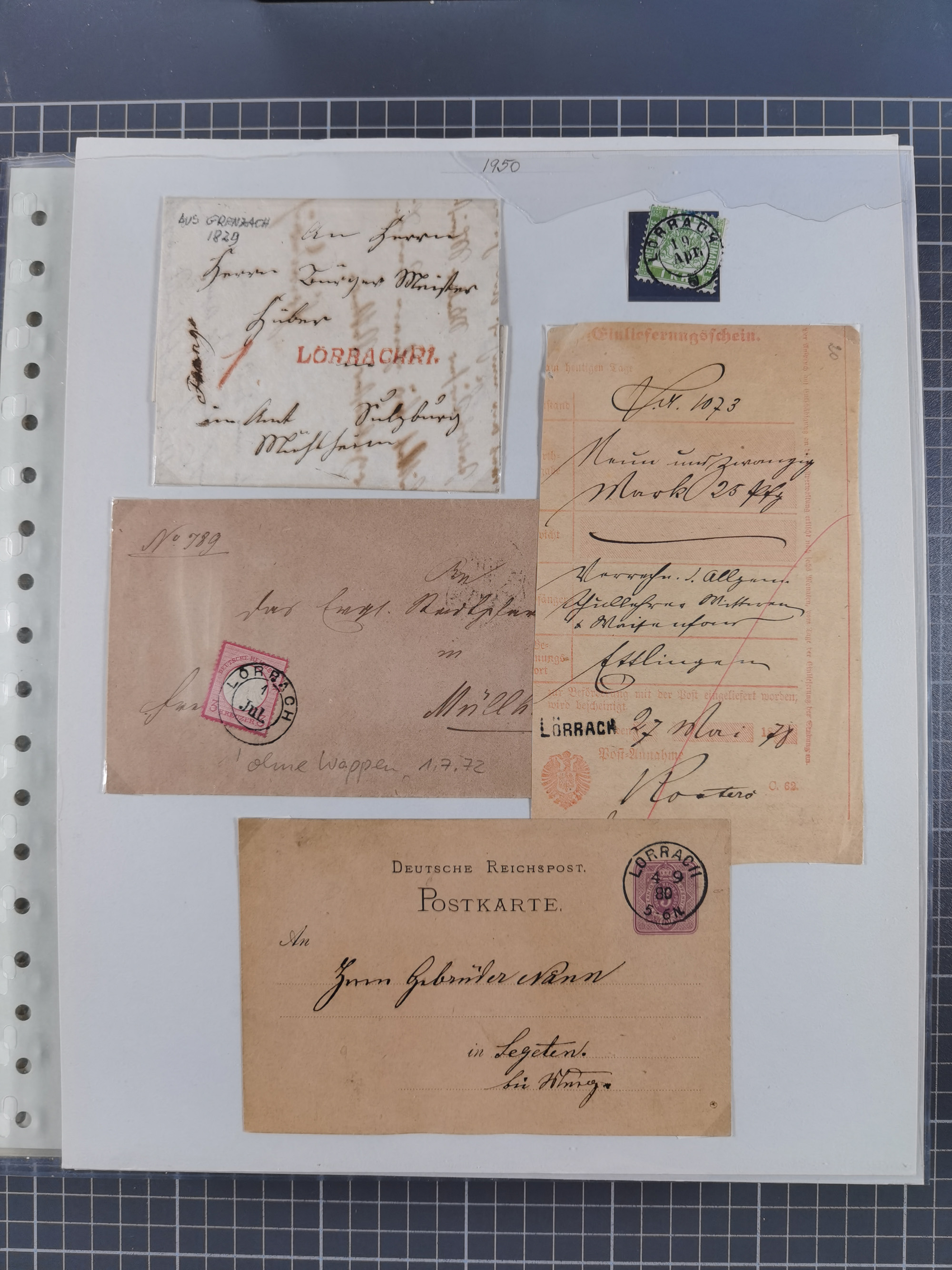 1800/1970 (ca.) interessante Material-Sammlung von etwa 250 Belegen und wenigen Marken, dabei u.a. Dt. Reich Ersttagsstempel auf Loser Mi. 2 und U1, Ballon Monte-Brief, diverse Grenzrayon-Belege, etc., dabei auch wenig Ausland. Ex Dr. Heinz Jaeger