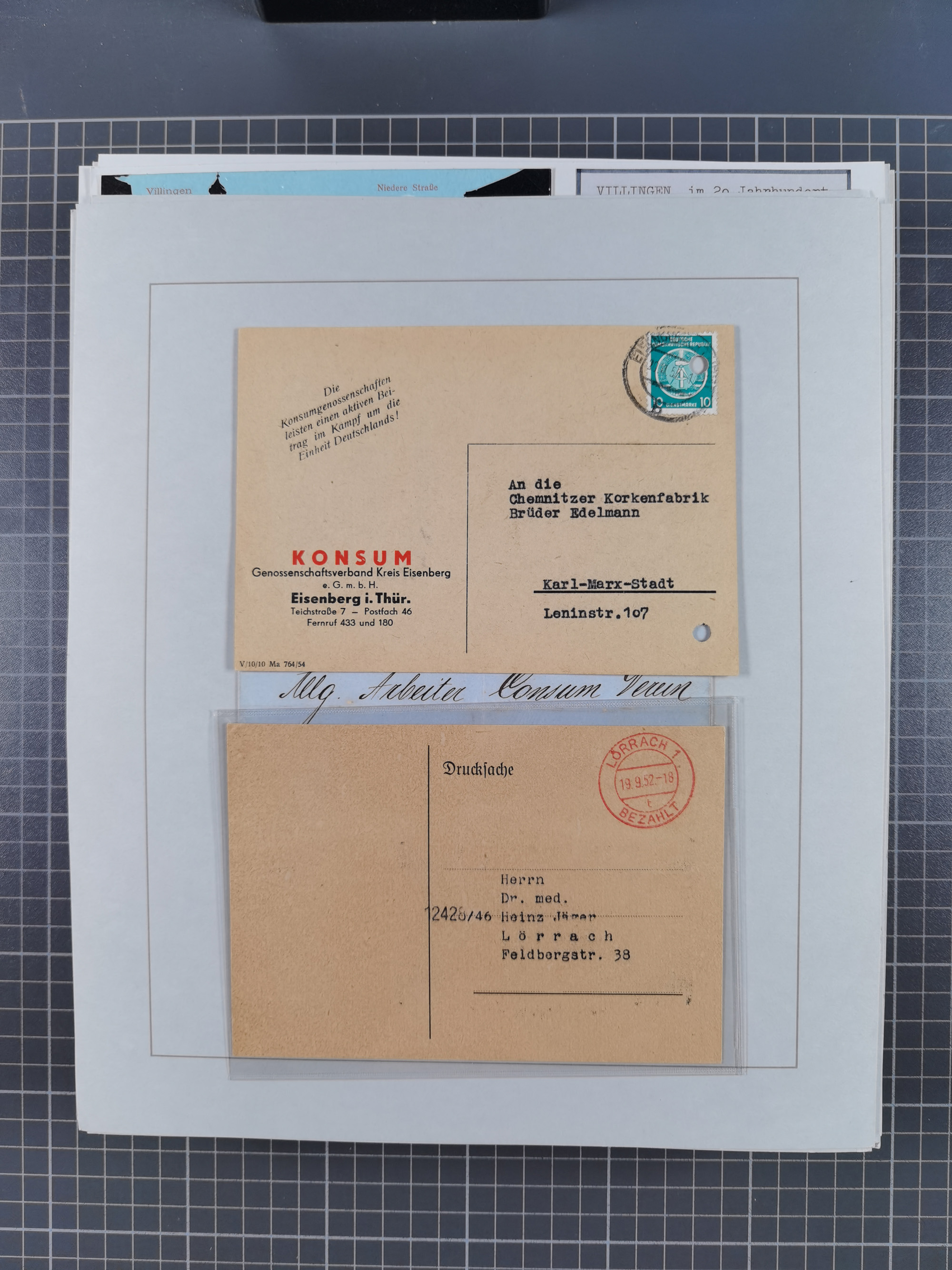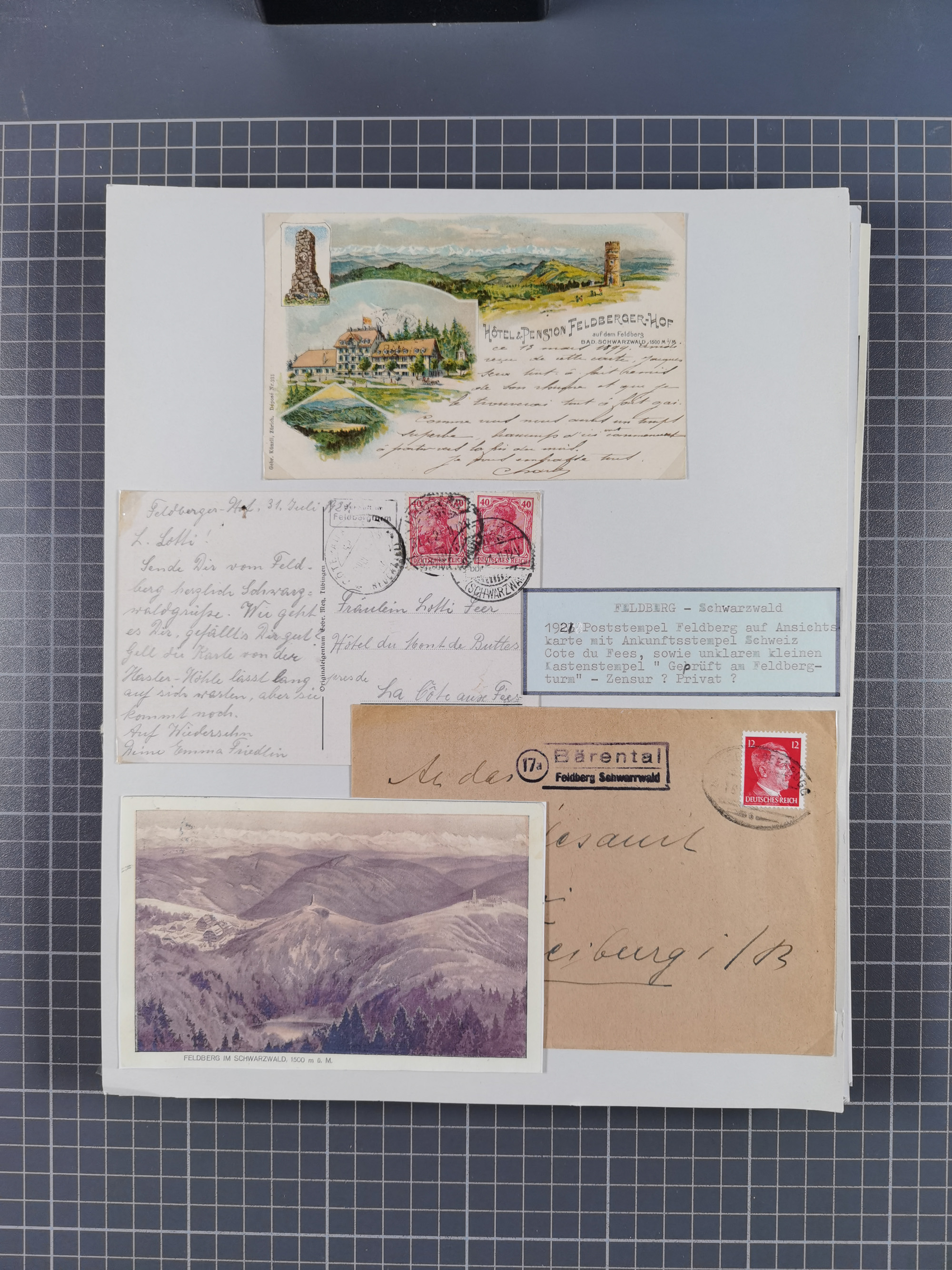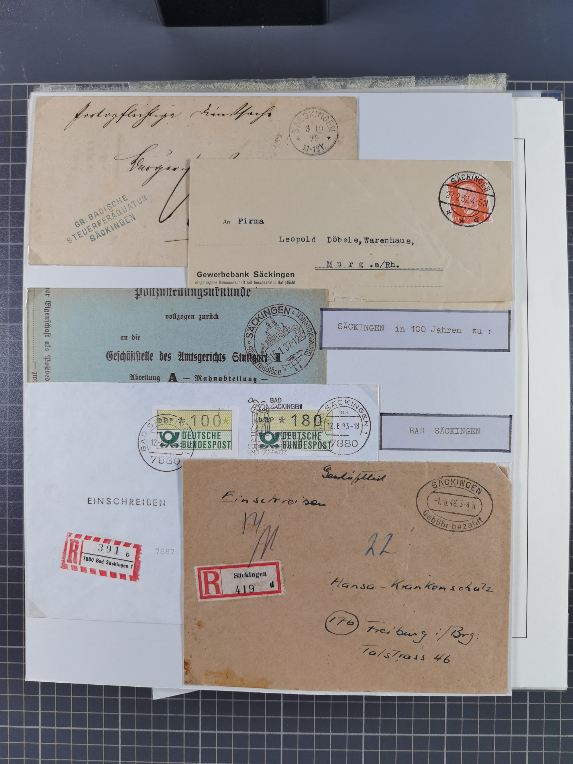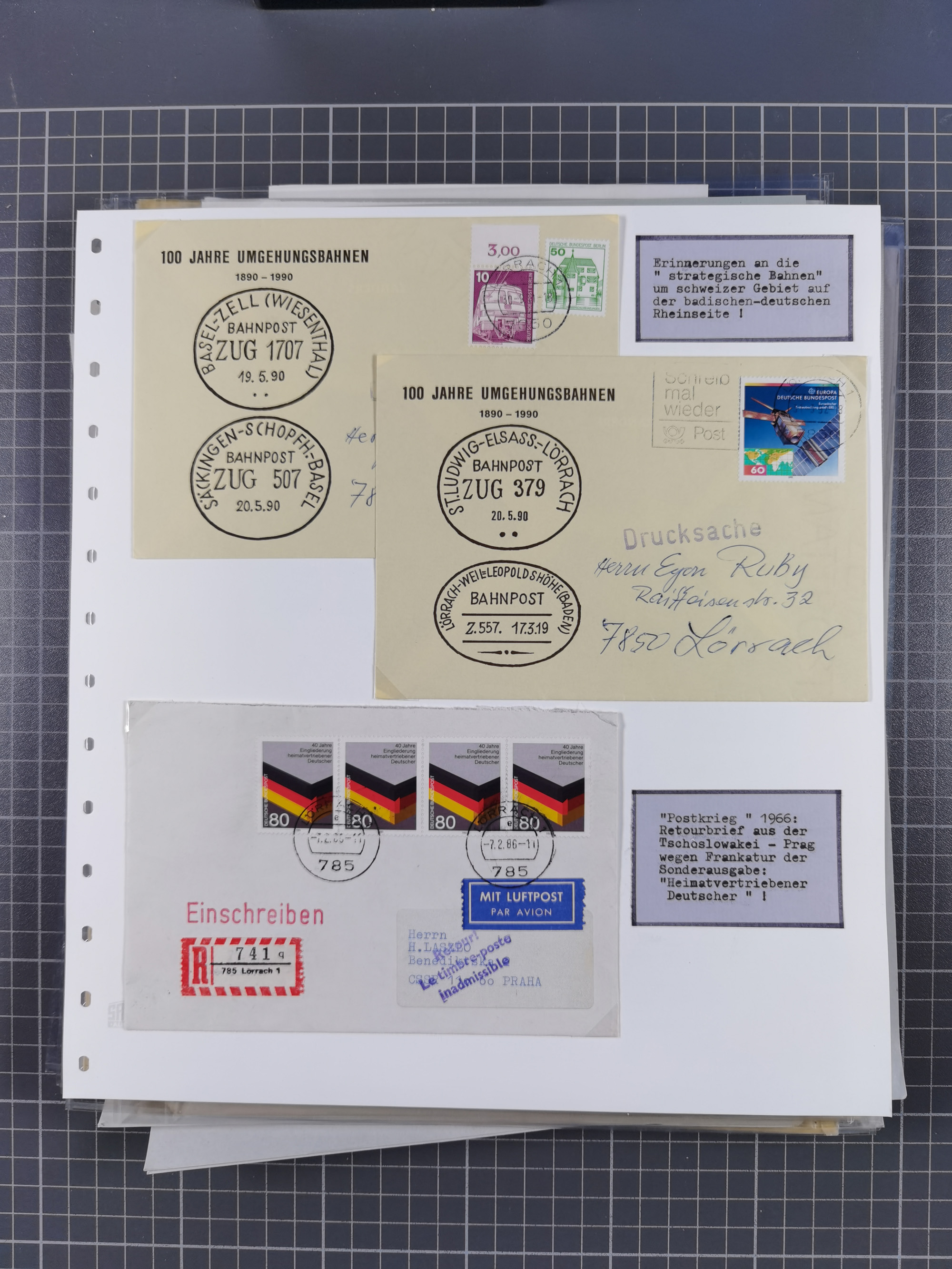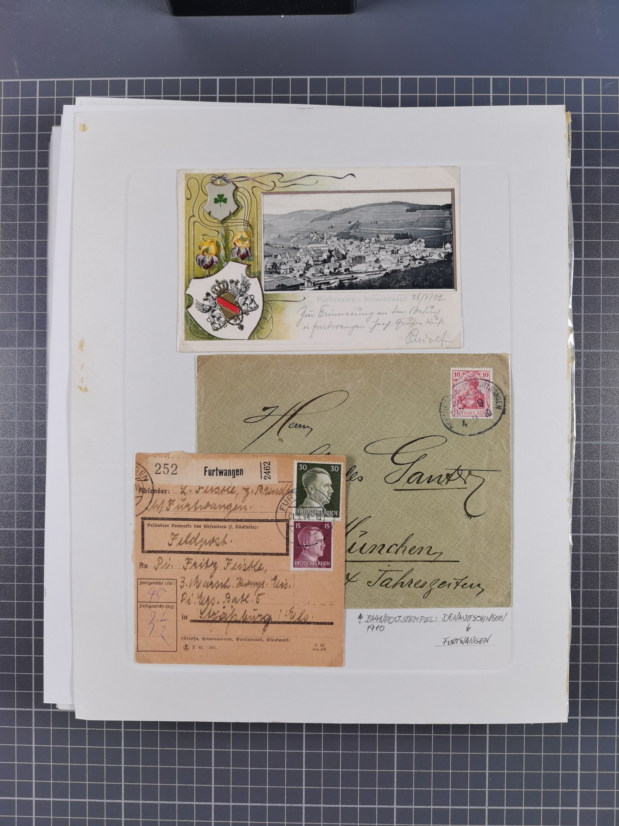 1800/1970 (ca.) interessante Material-Sammlung von etwa 250 Belegen und wenigen Marken, dabei u.a. Dt. Reich Ersttagsstempel auf Loser Mi. 2 und U1, Ballon Monte-Brief, diverse Grenzrayon-Belege, etc., dabei auch wenig Ausland. Ex Dr. Heinz Jaeger