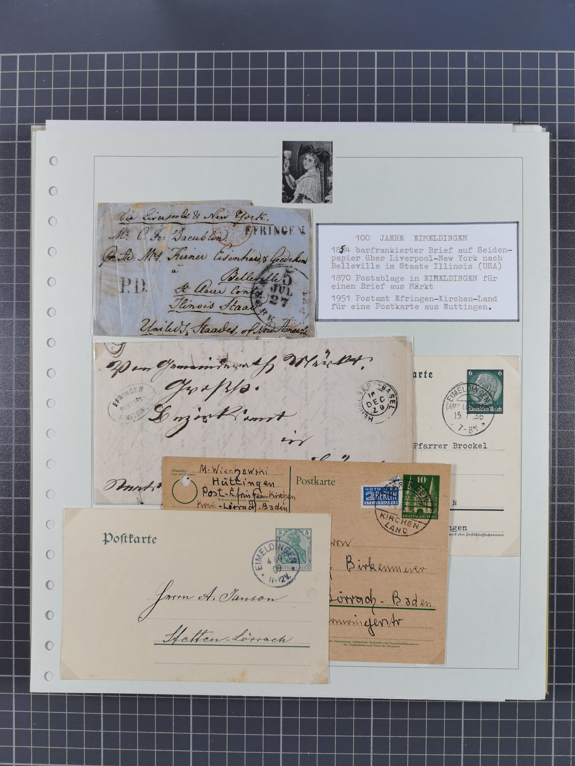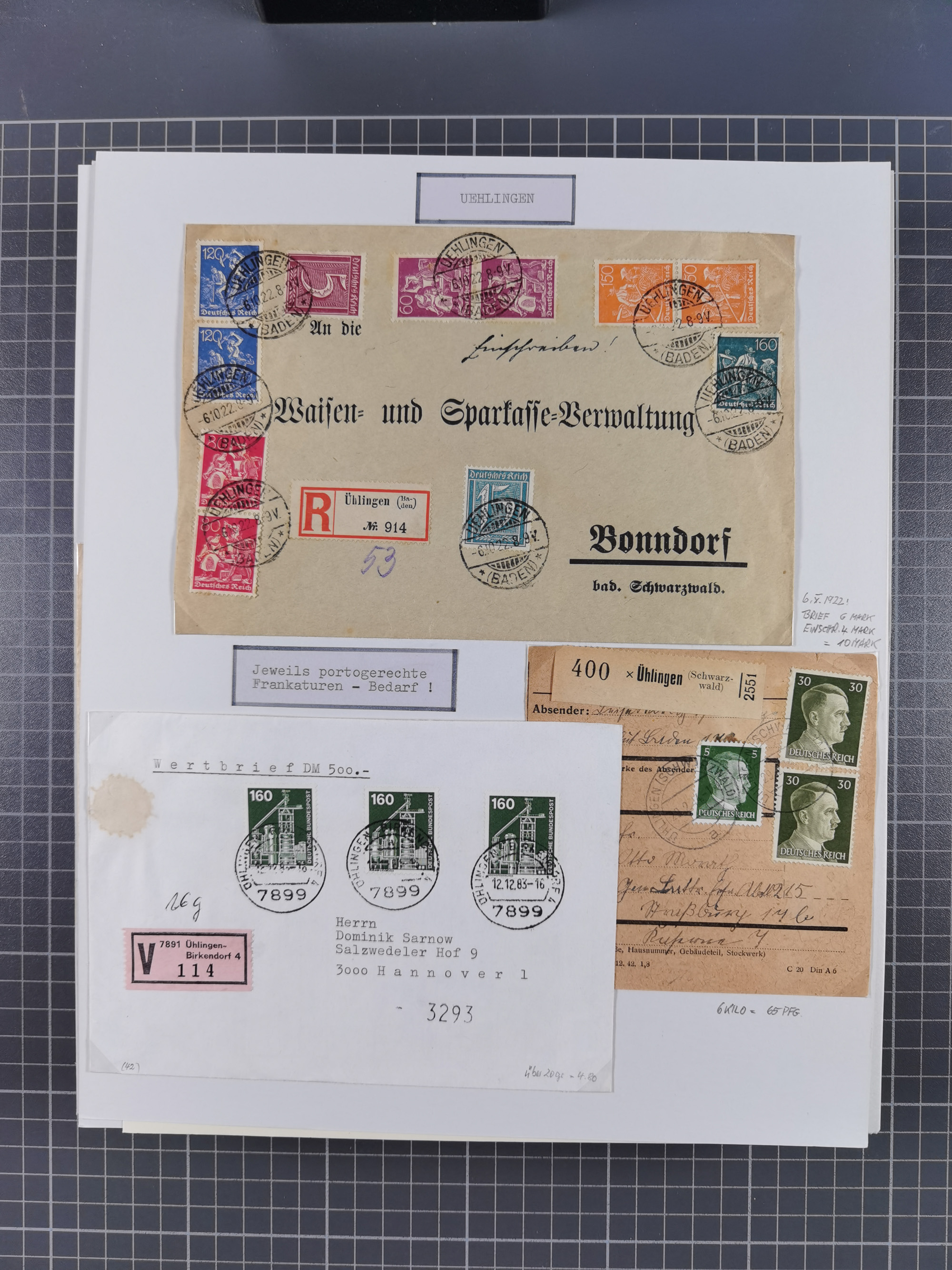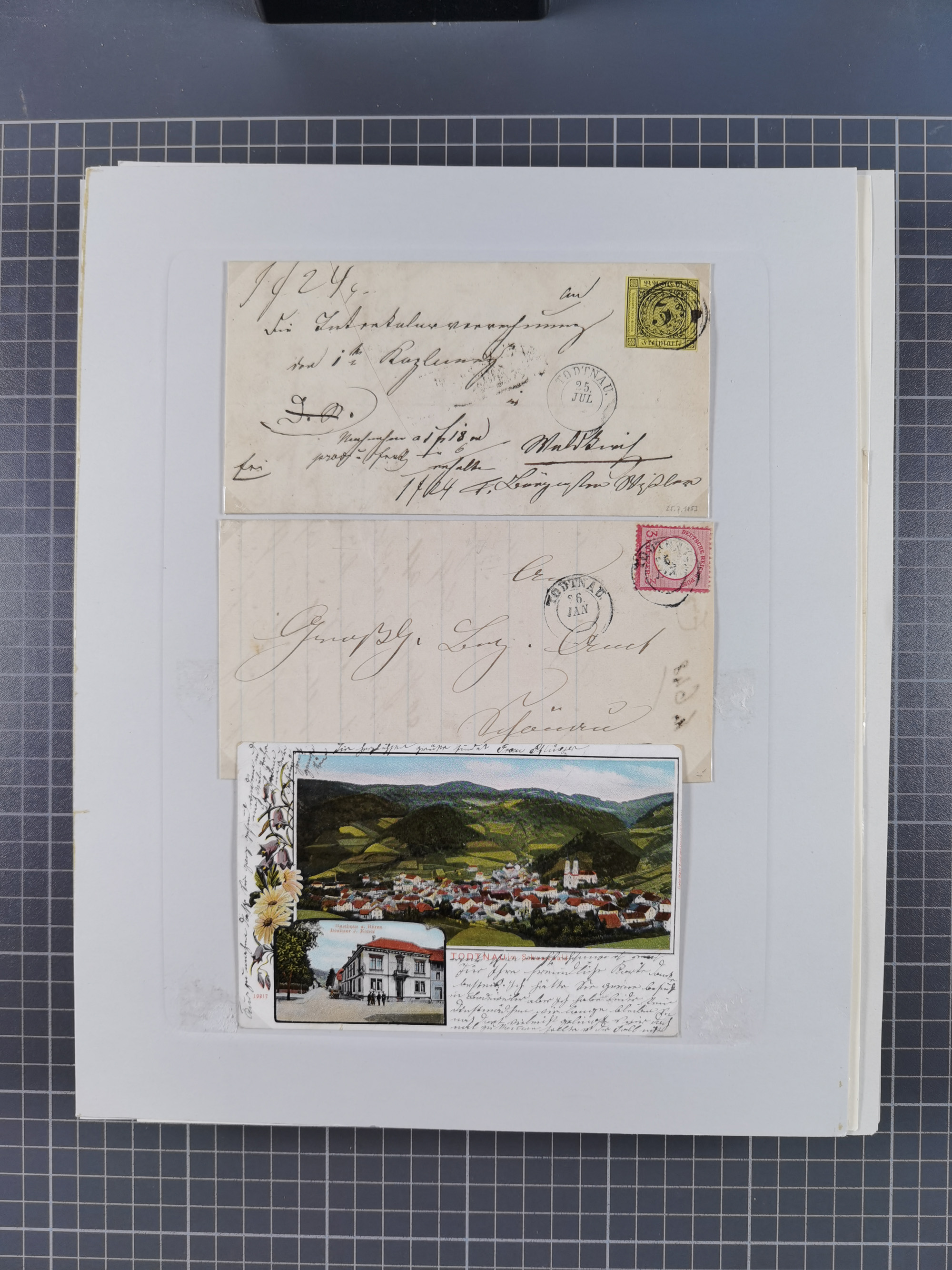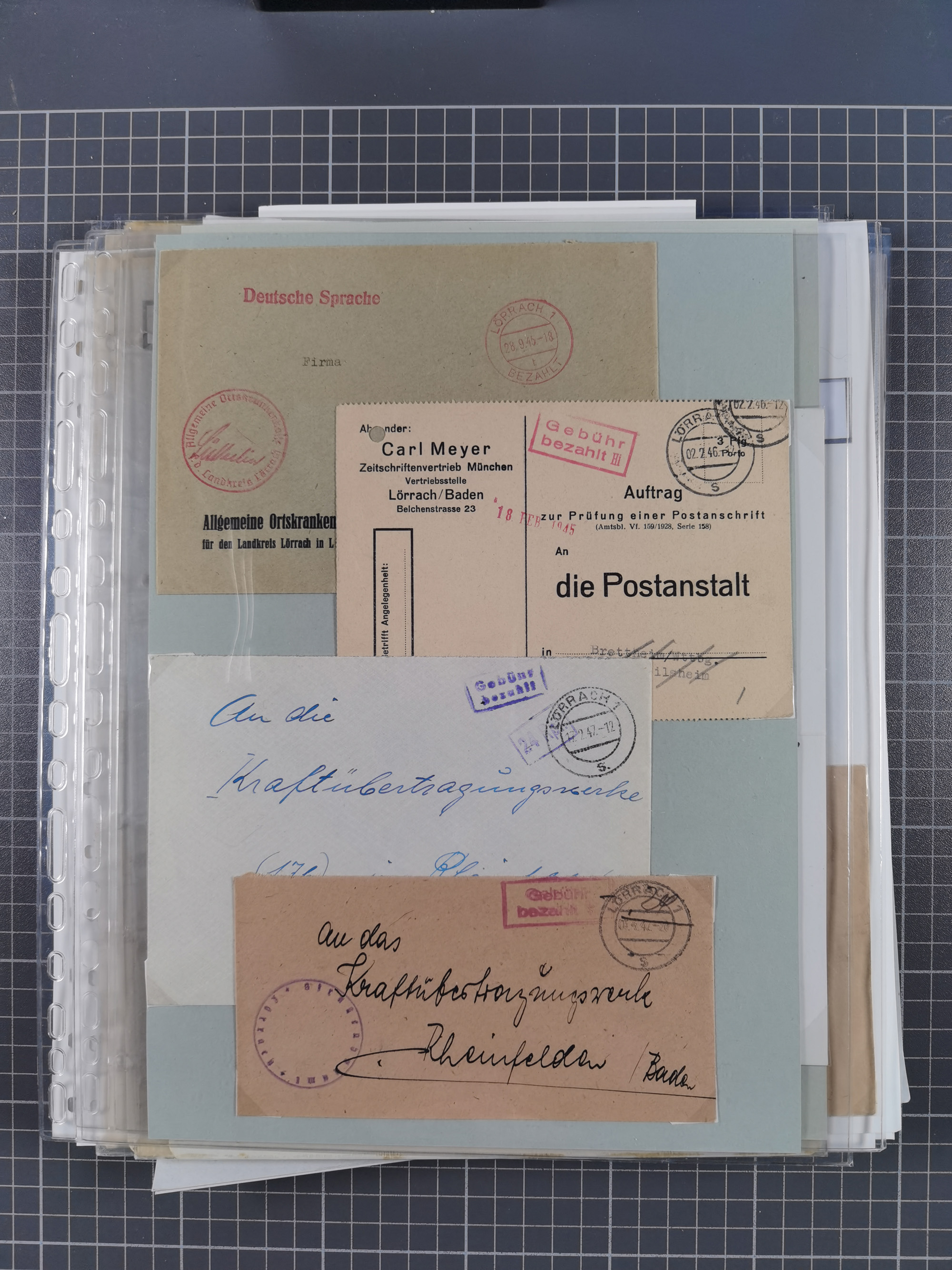 1800/1970 (ca.) interessante Material-Sammlung von etwa 250 Belegen und wenigen Marken, dabei u.a. Dt. Reich Ersttagsstempel auf Loser Mi. 2 und U1, Ballon Monte-Brief, diverse Grenzrayon-Belege, etc., dabei auch wenig Ausland. Ex Dr. Heinz Jaeger