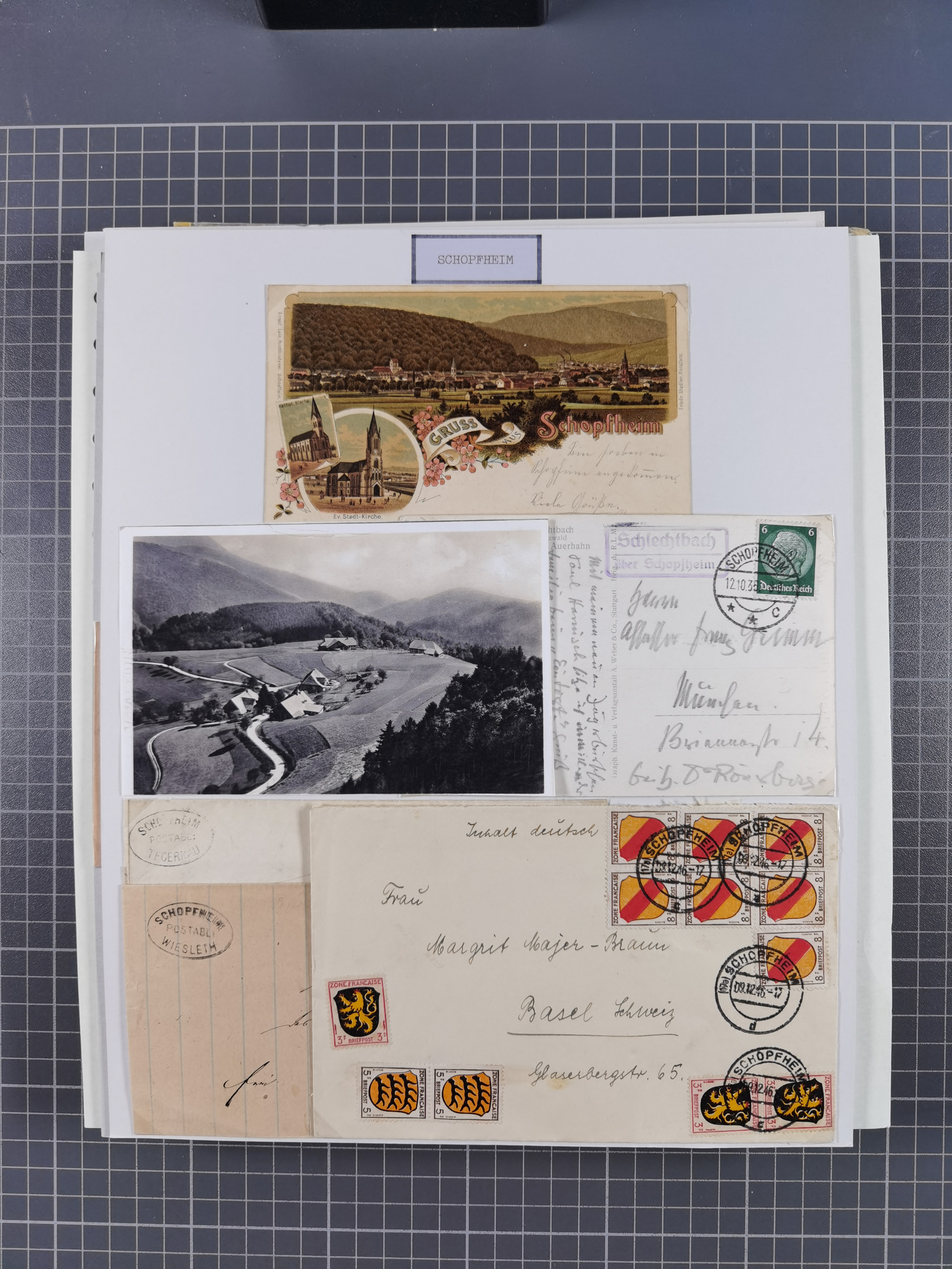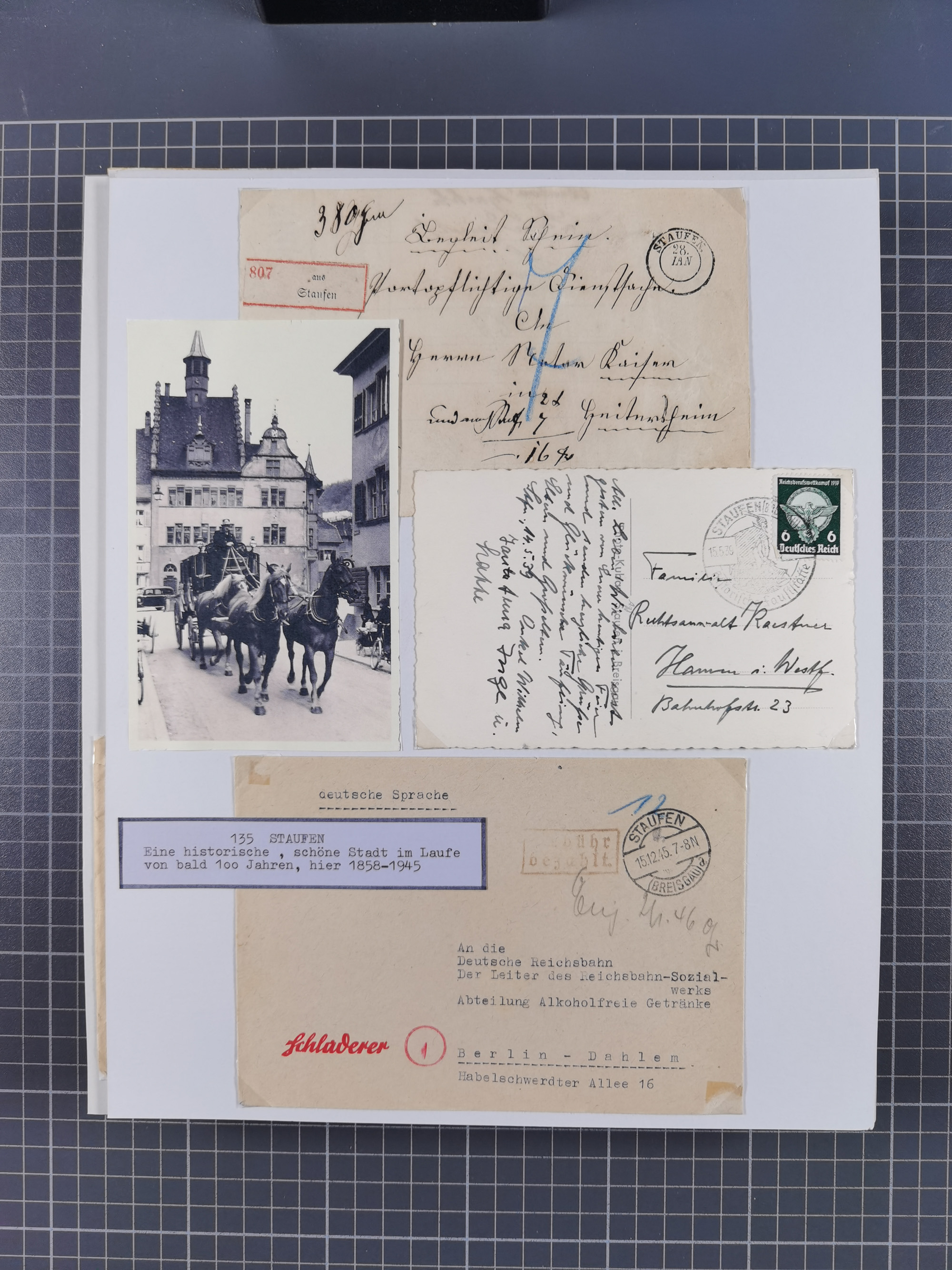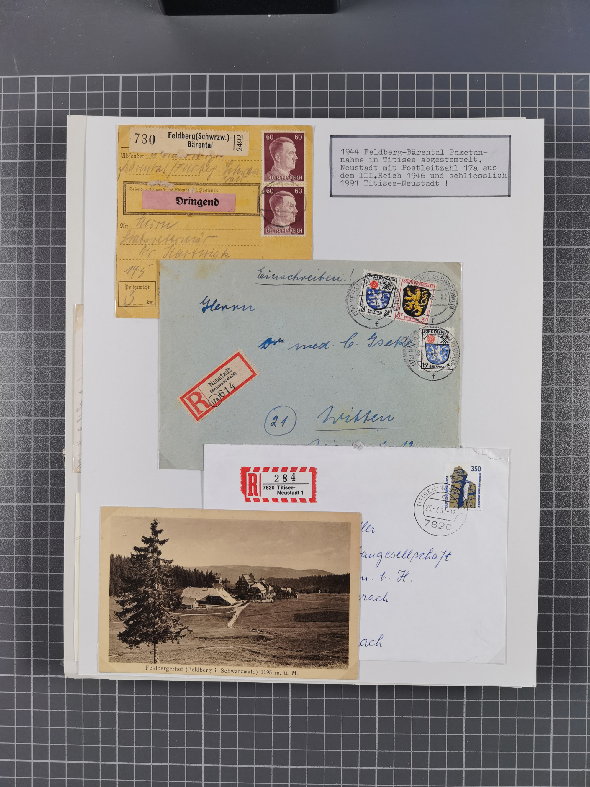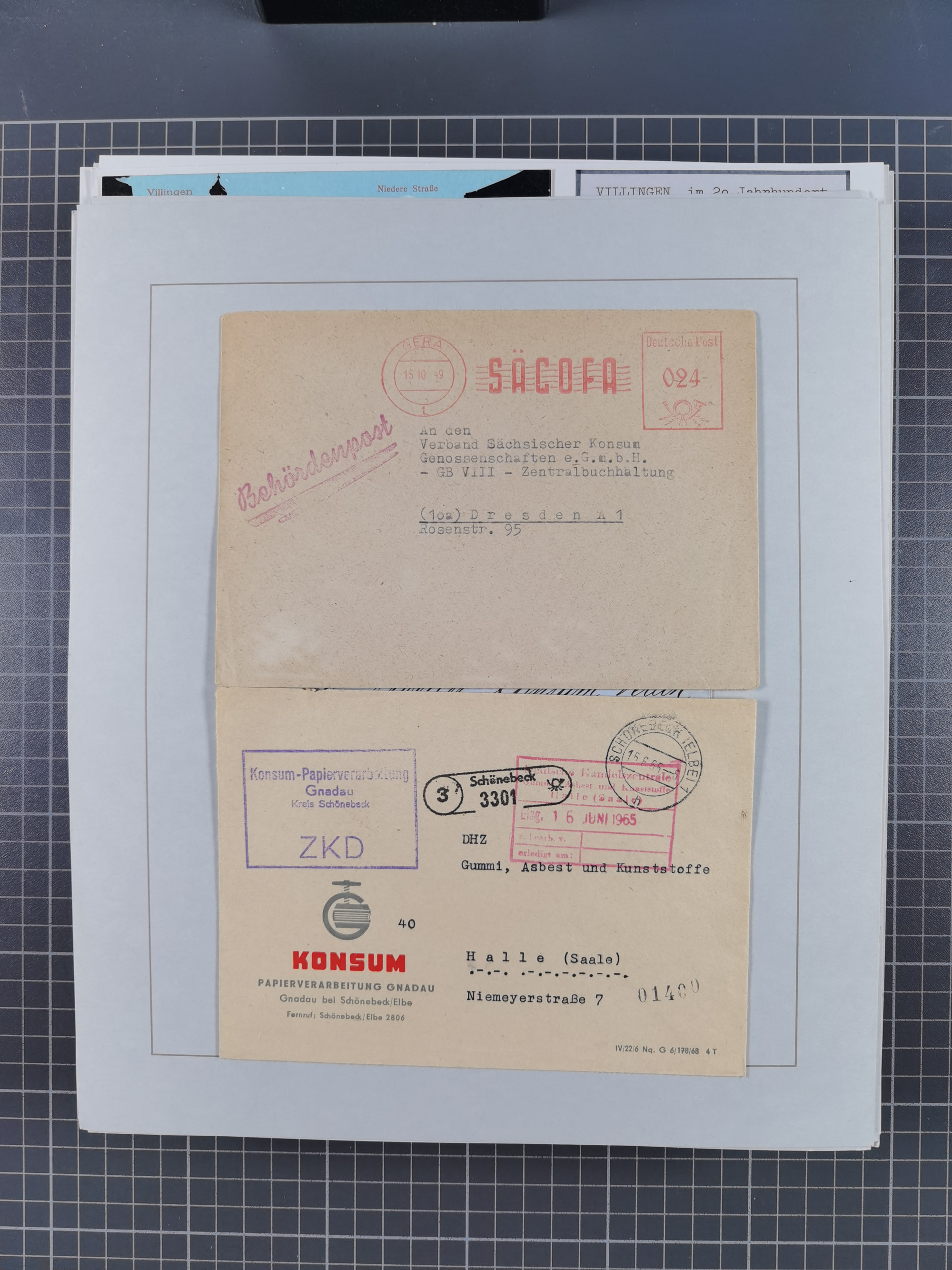 1800/1970 (ca.) interessante Material-Sammlung von etwa 250 Belegen und wenigen Marken, dabei u.a. Dt. Reich Ersttagsstempel auf Loser Mi. 2 und U1, Ballon Monte-Brief, diverse Grenzrayon-Belege, etc., dabei auch wenig Ausland. Ex Dr. Heinz Jaeger