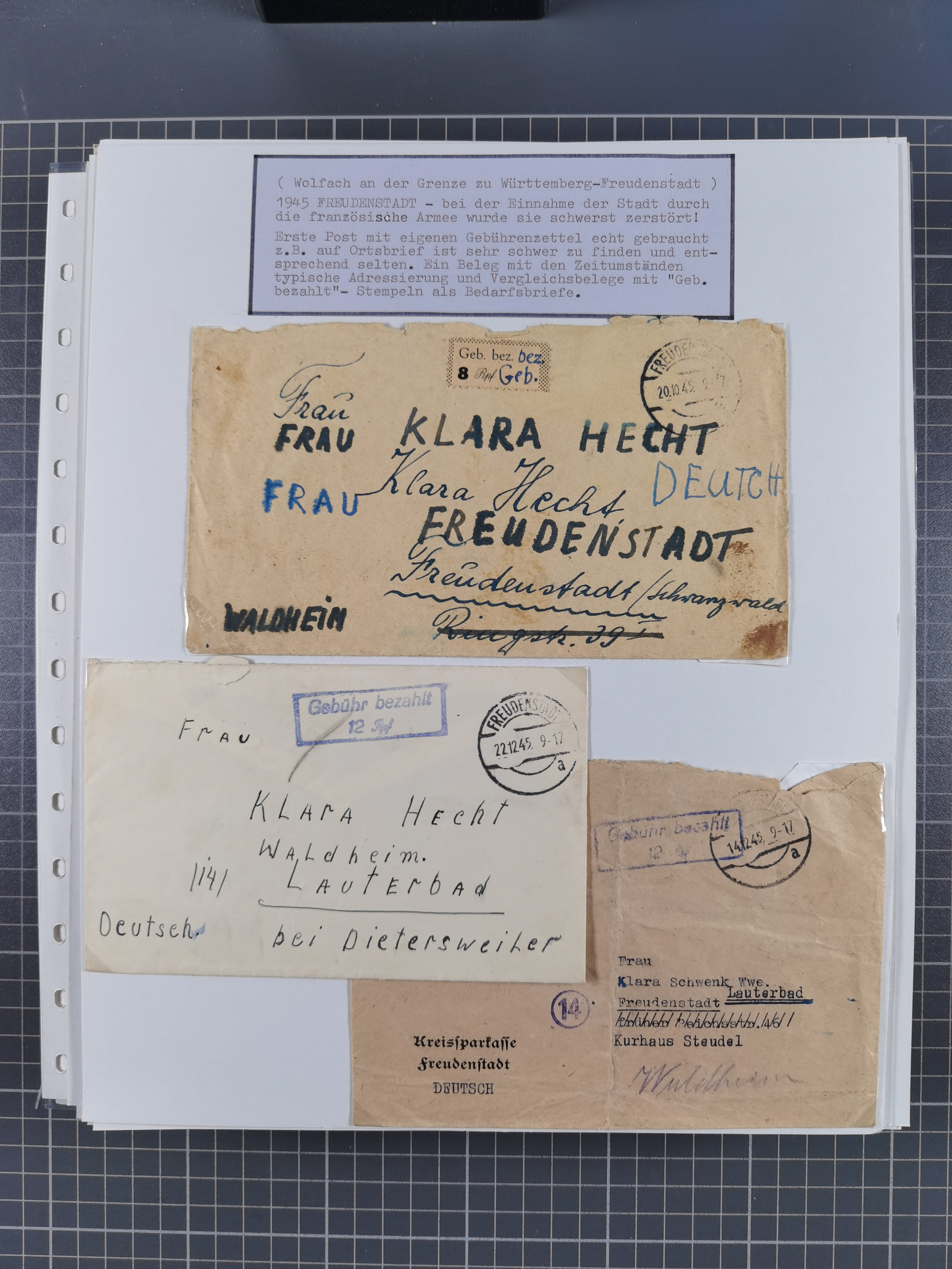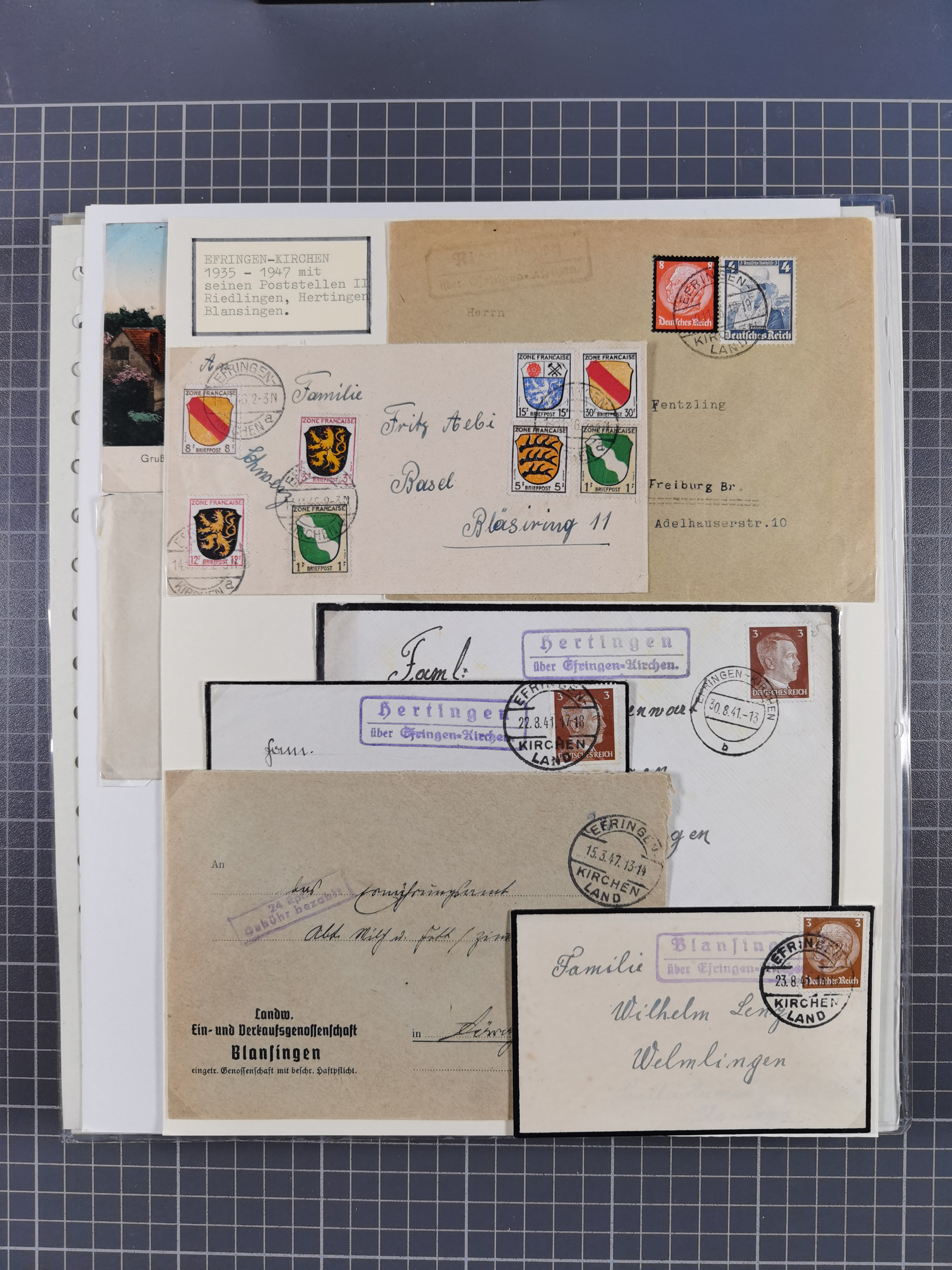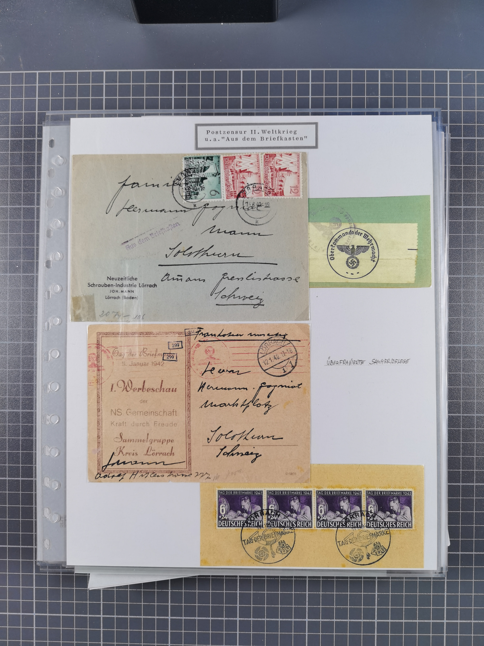 1941/44 (ca.), rund 70 Briefe, Karten und Ganzsachen (teilweise gelocht) fast ausschließlich Bedarfspost mit Einschreiben, Zensuren, etc.