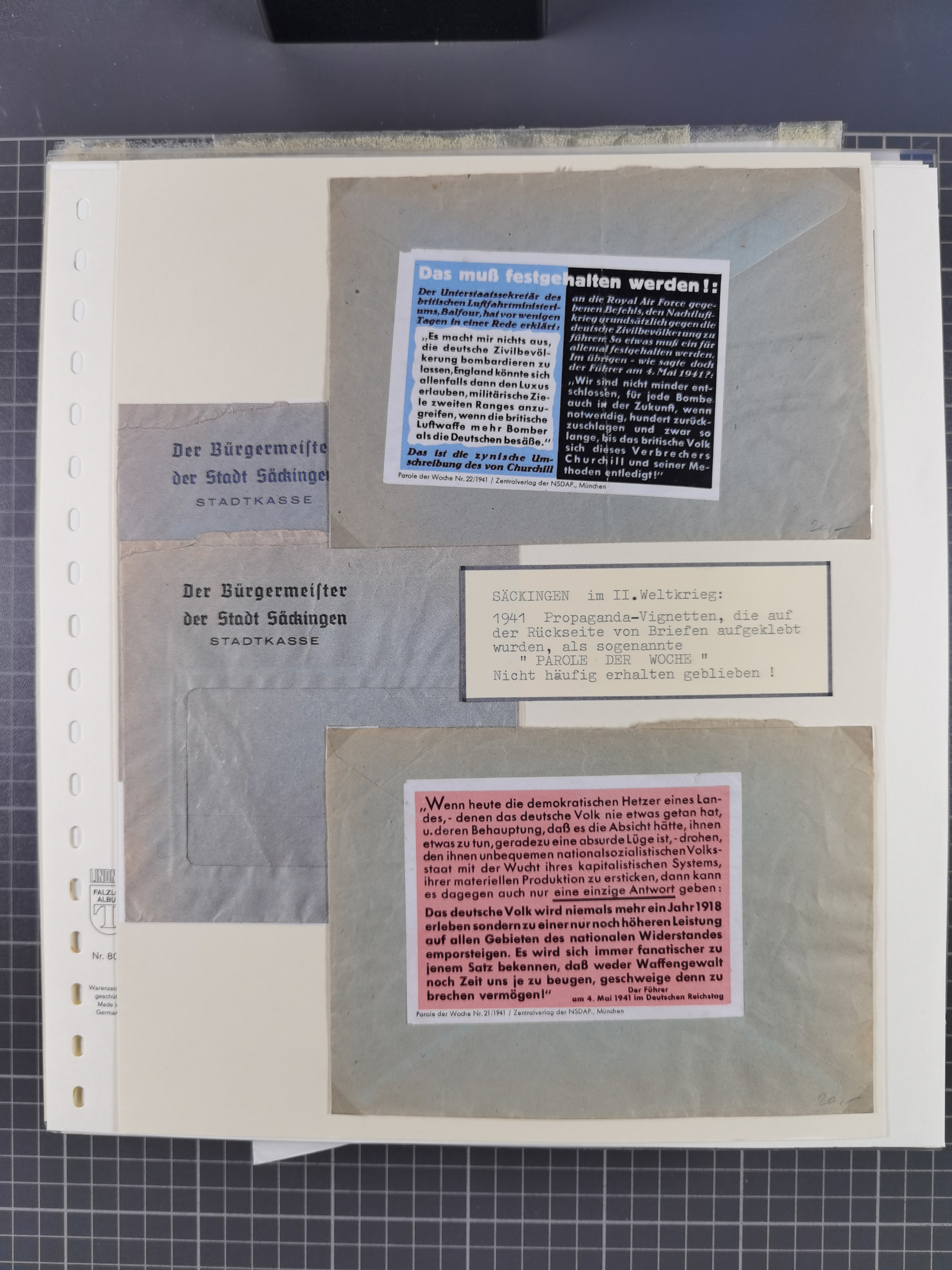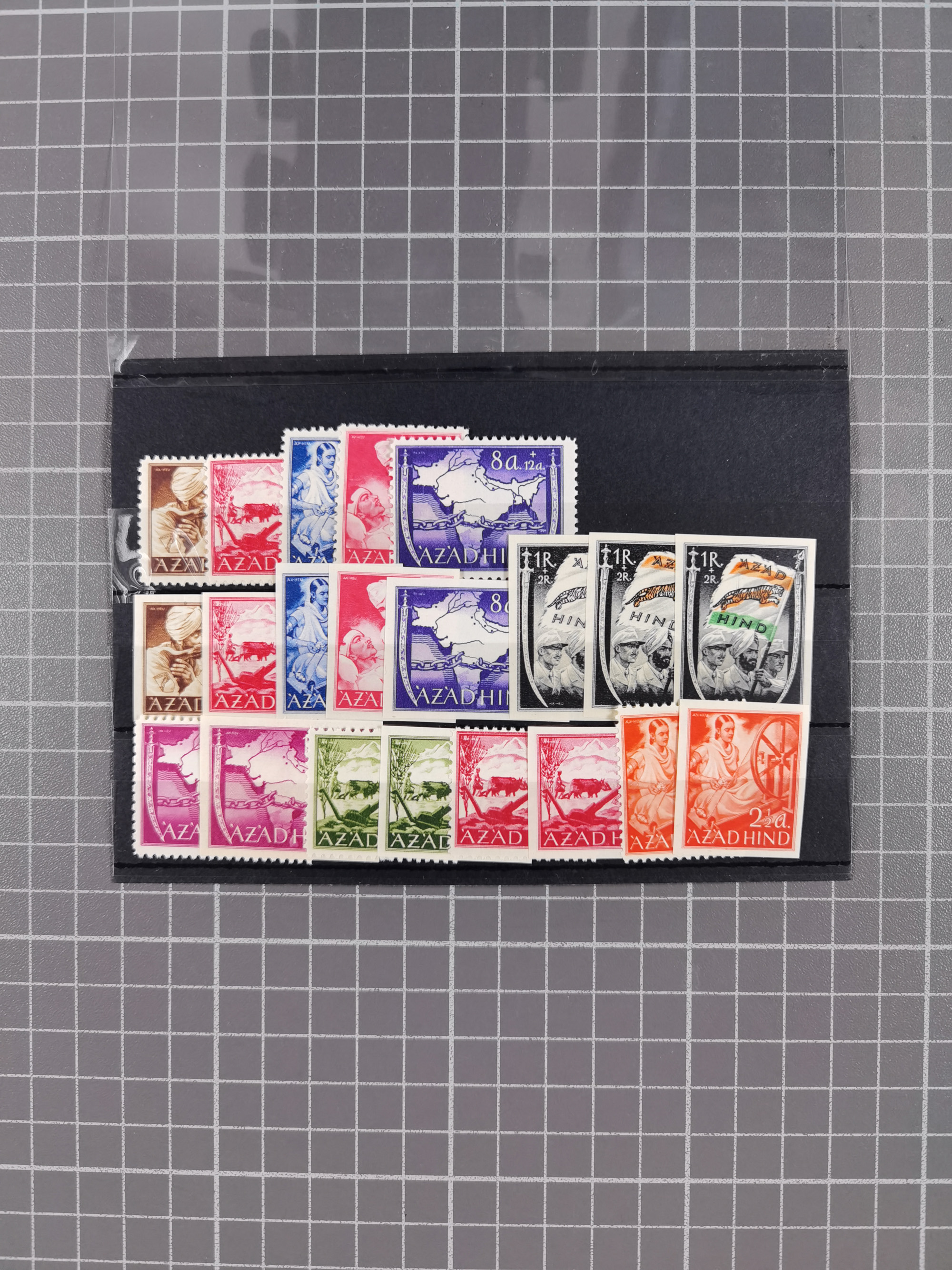 1943, Fälschungssammlung, postfrisch sowie auf Blanko-Umschlägen, dabei 19 mal Mi.-Nr. 21-22 und 28,32 je auf Blanko-Umschlag mit falschem Stempel, die falsch gestempelten Werte oft mit echten Aufdrucken, sauber auf insgesamt 31 großen Steckkarten, dabei einige alte Diena Atteste