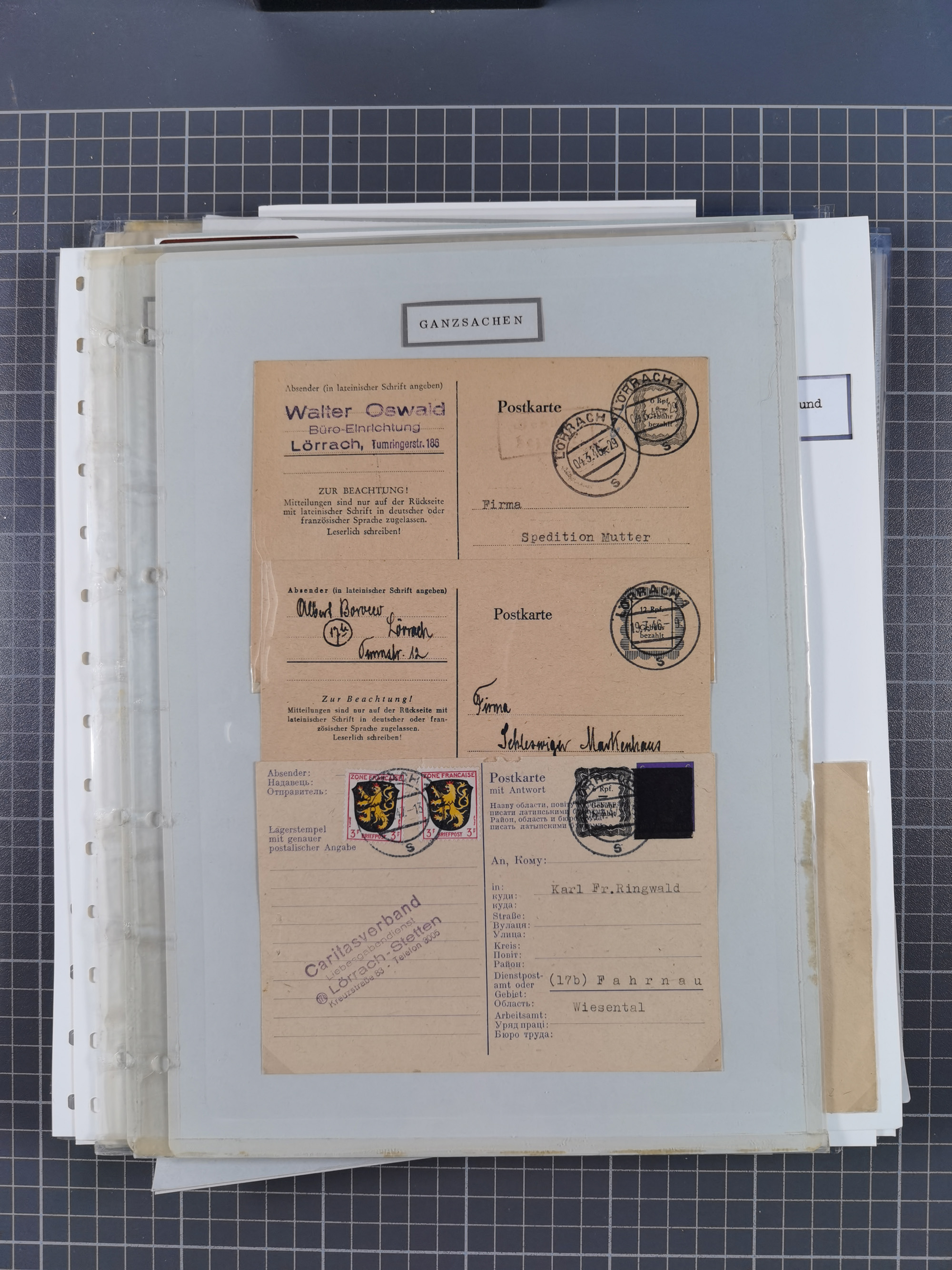 1946/49, Kriegsgefangenenpost aus zwei verschiedenen sowjetischen Lagern an Dr. Gustav Wienstein Nürnberg, dabei S.S.S.R.LAGER 7216/1 und 7384/6, mit teils verschieden Zensuren und Stempelfarben, 14 meist unterschiedliche Rotes Kreuz u.a. Vordrucke und vier zensierte Briefinhalte mit interessanten Schilderungen, meist gut erhalten.