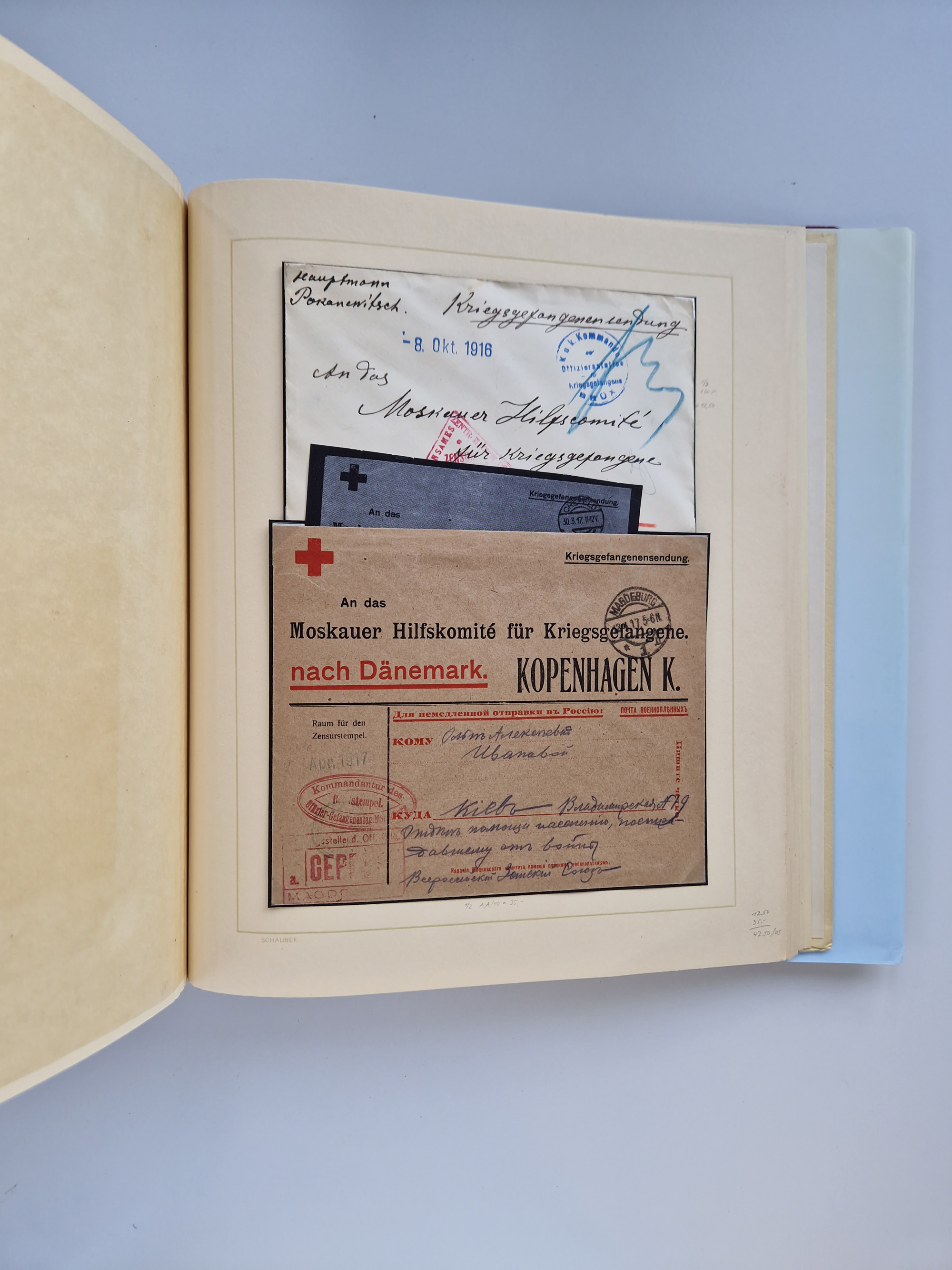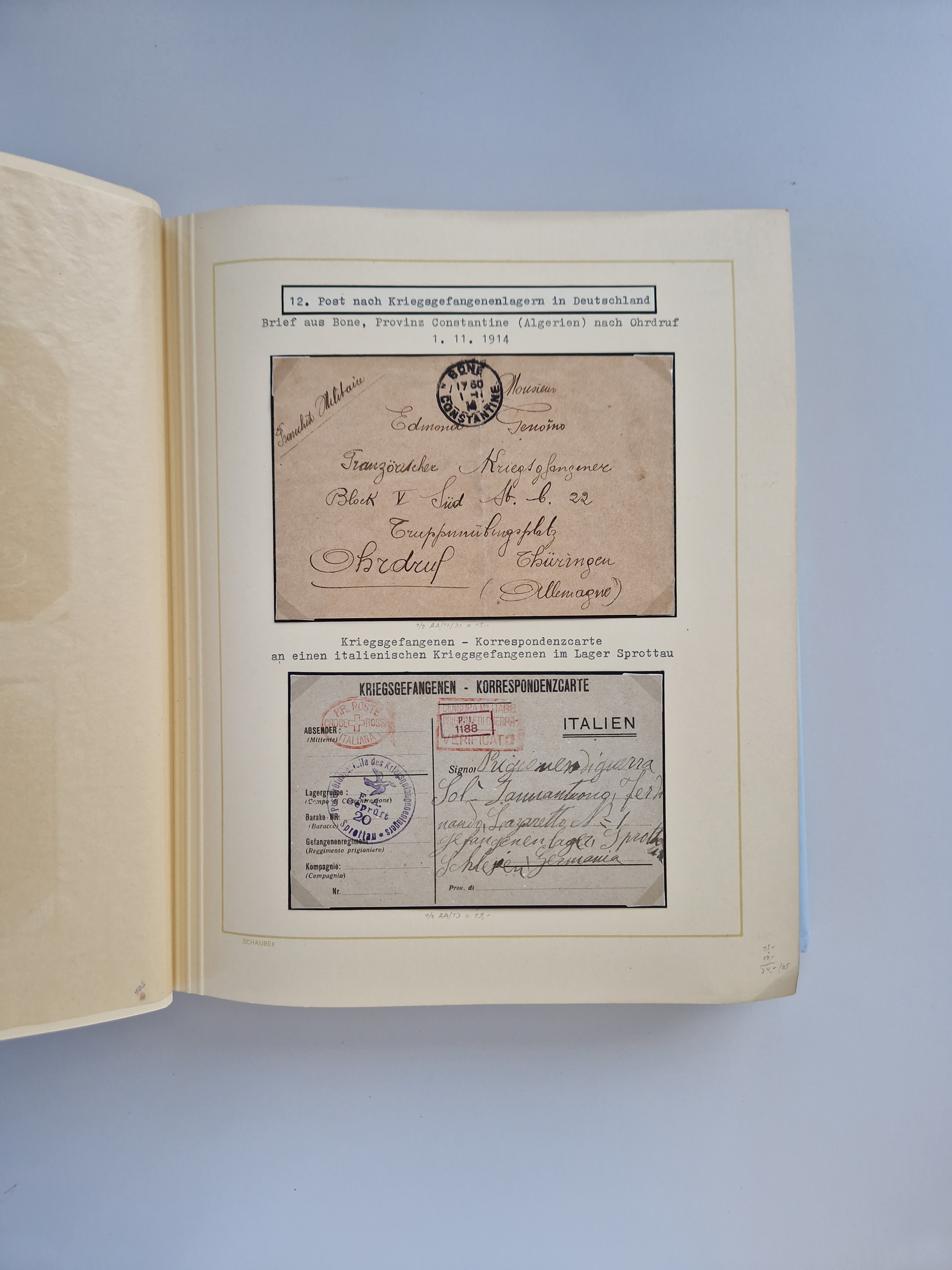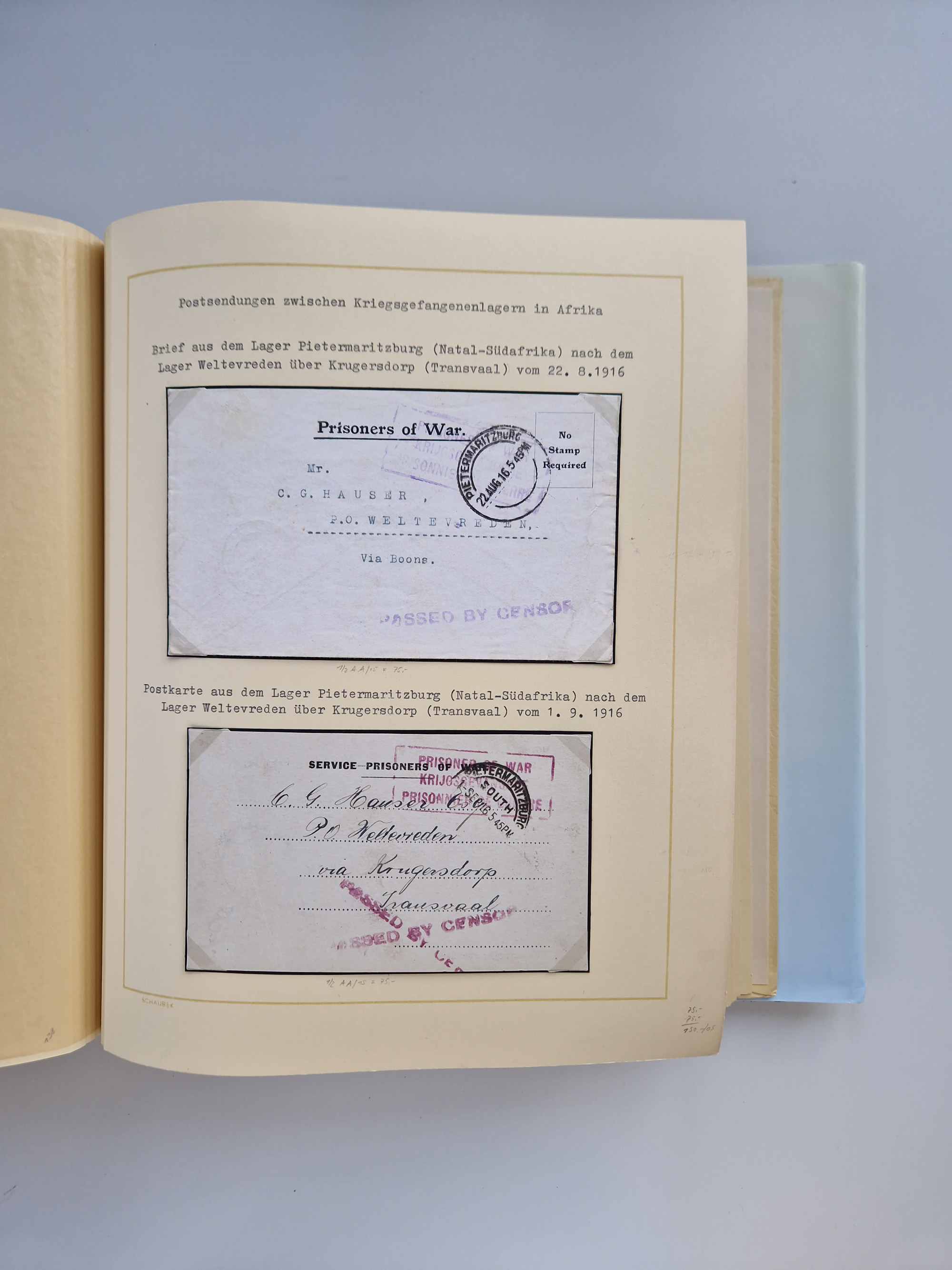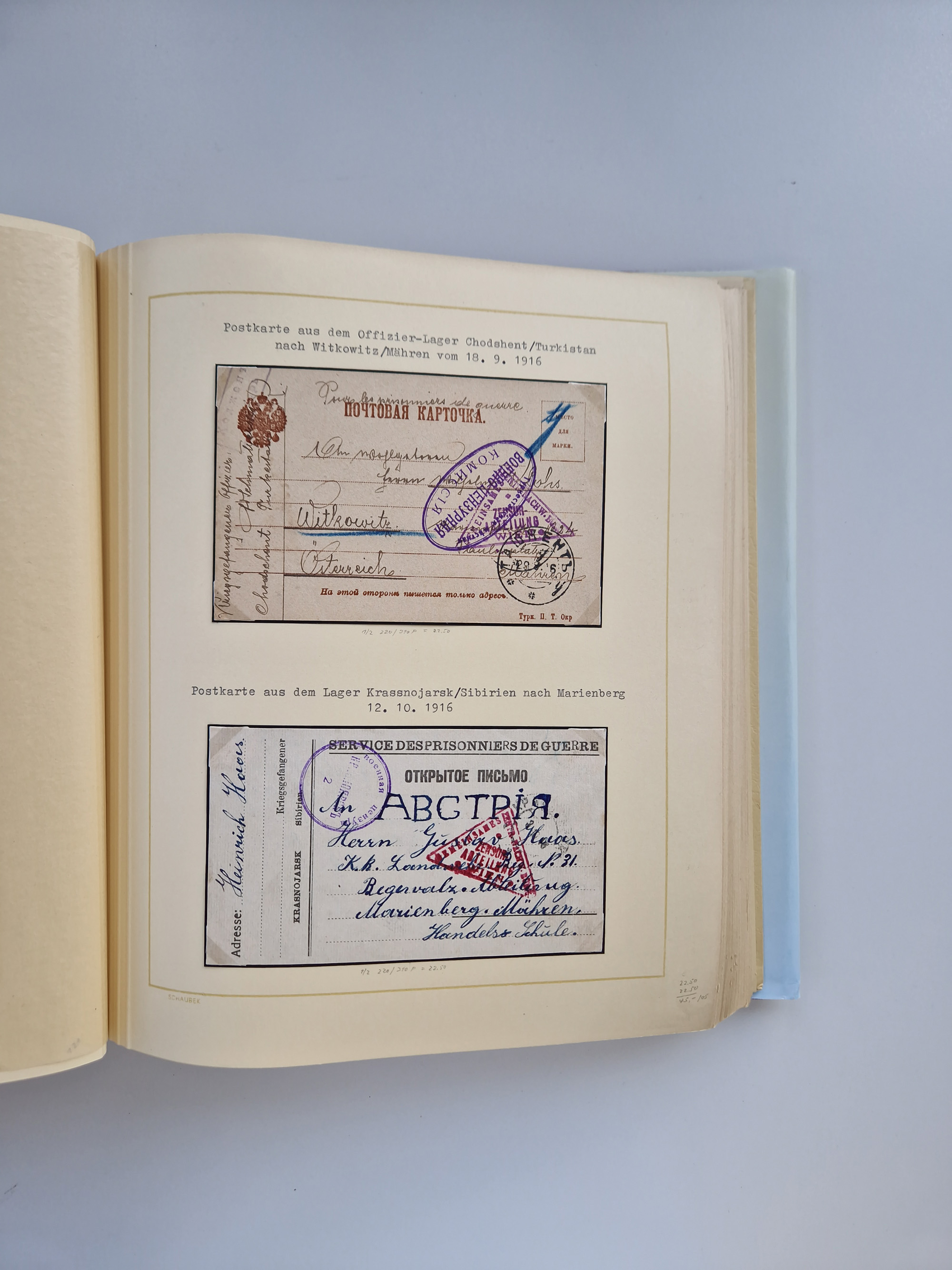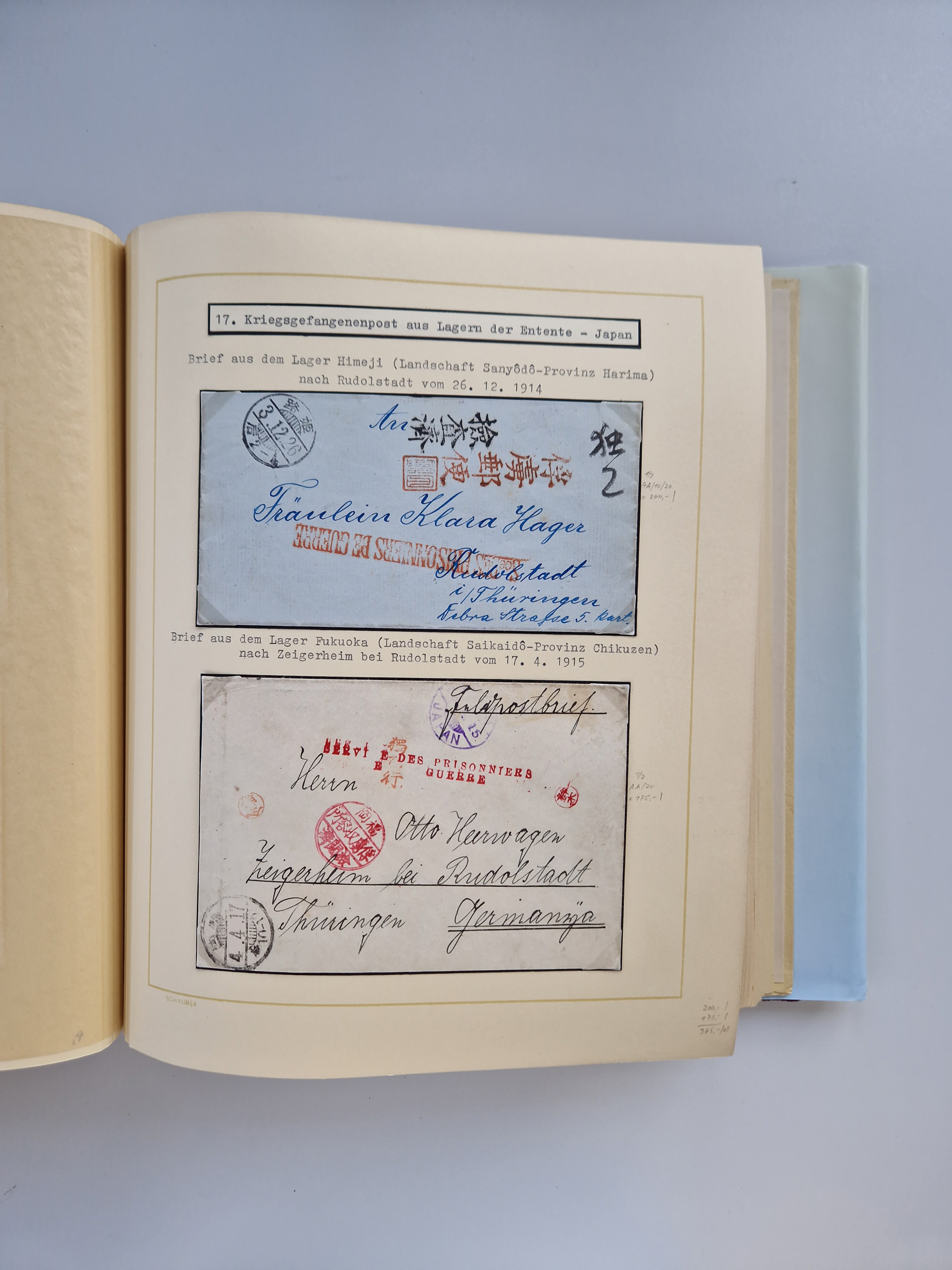 1914/2004, with over 130 covers, including WWI japanese, russian and german camps, some WWII Red Cross covers, further commemorative issues after 1945, overall in good condition, in two albums, plus book “KRIEGSGEFANGEN - Österreicher und Ungarn als Gefangene der Entente 1914 bis 1921, Band 1”