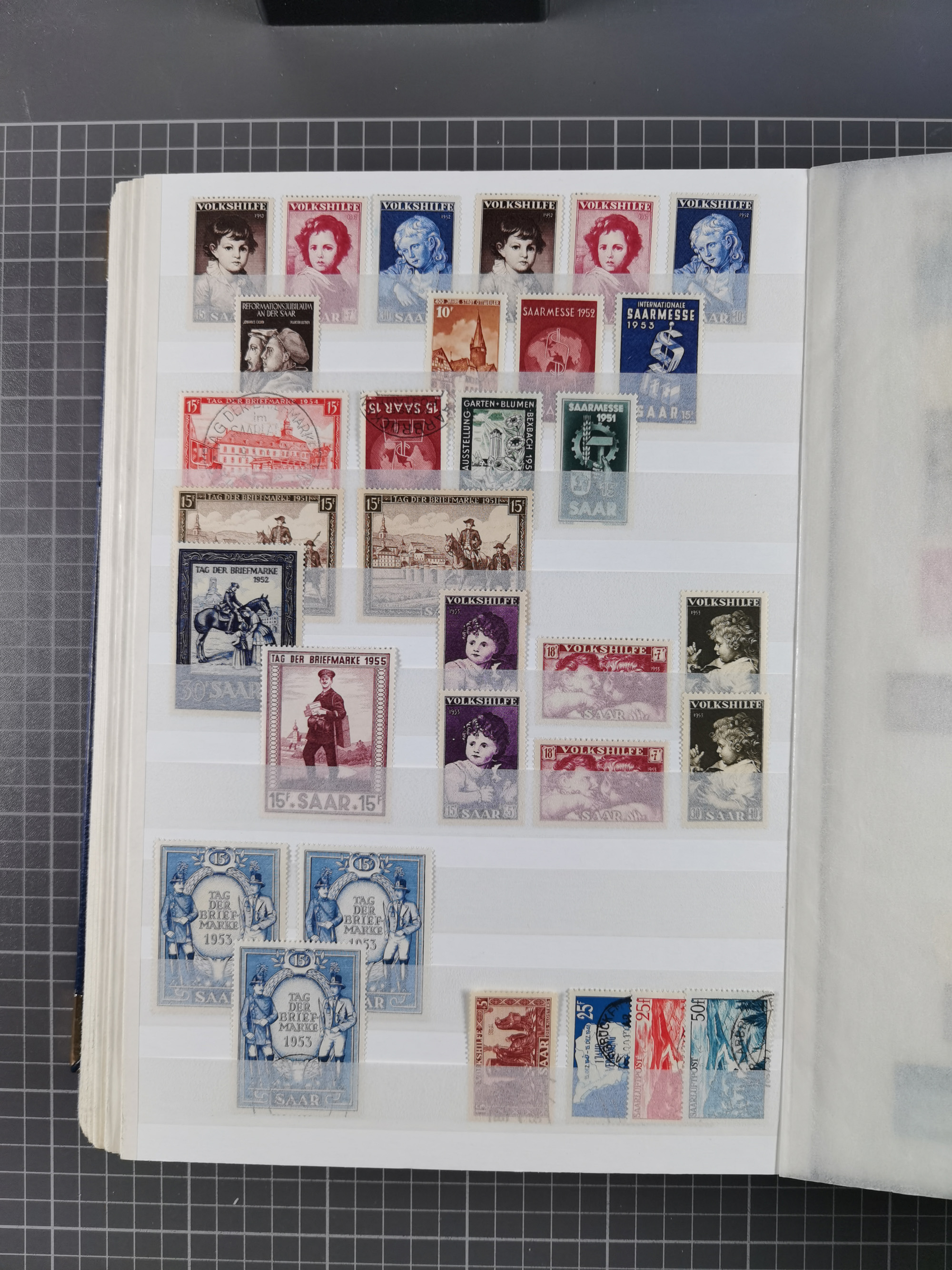1920/1959, drei Lagerbücher Saarland, Danzig und Memel mit ungebrauchten/postfrischen und gestempelten Marken, sauber sortiert in Mengen bis ca. 10x pro Sorte