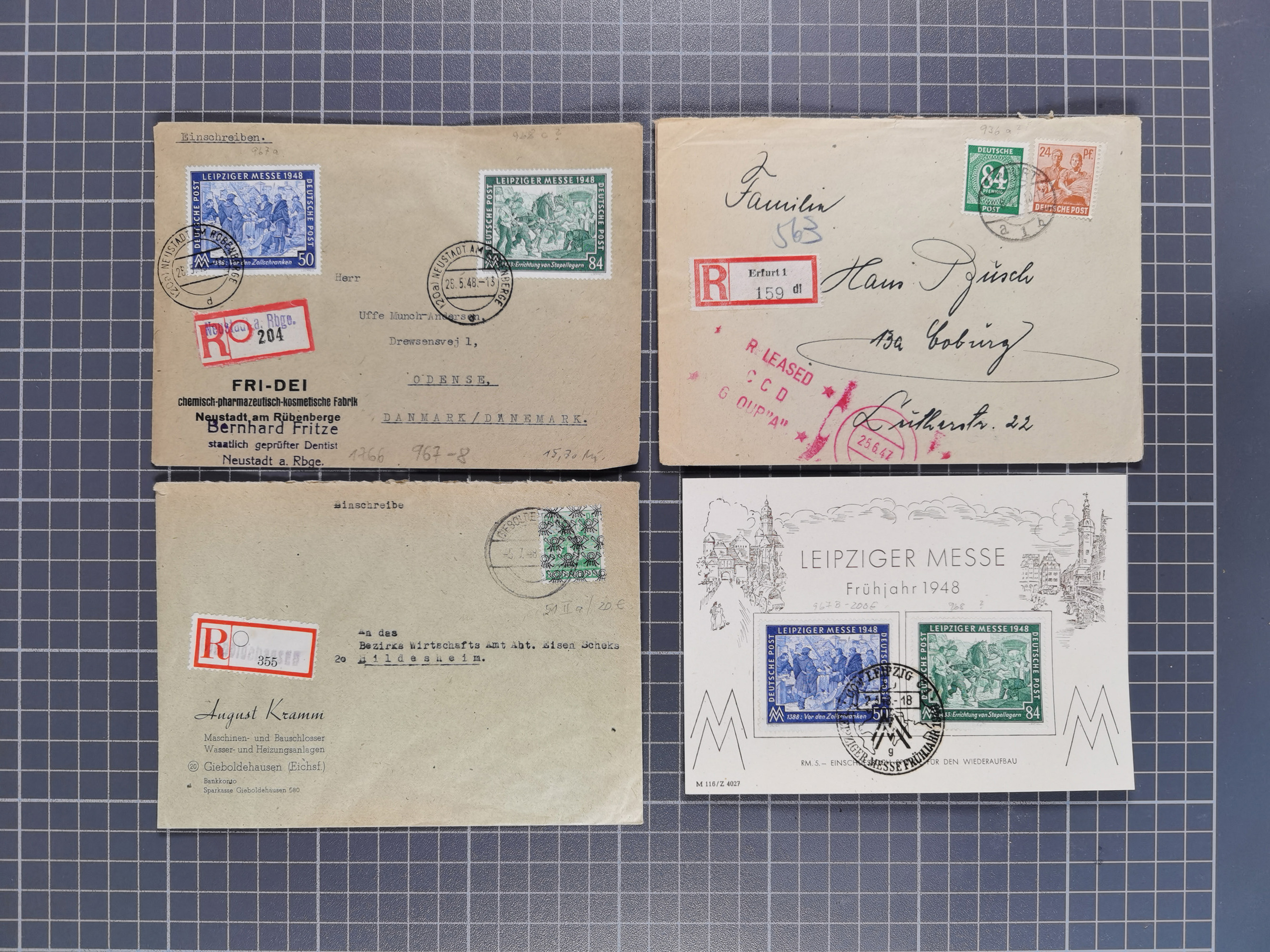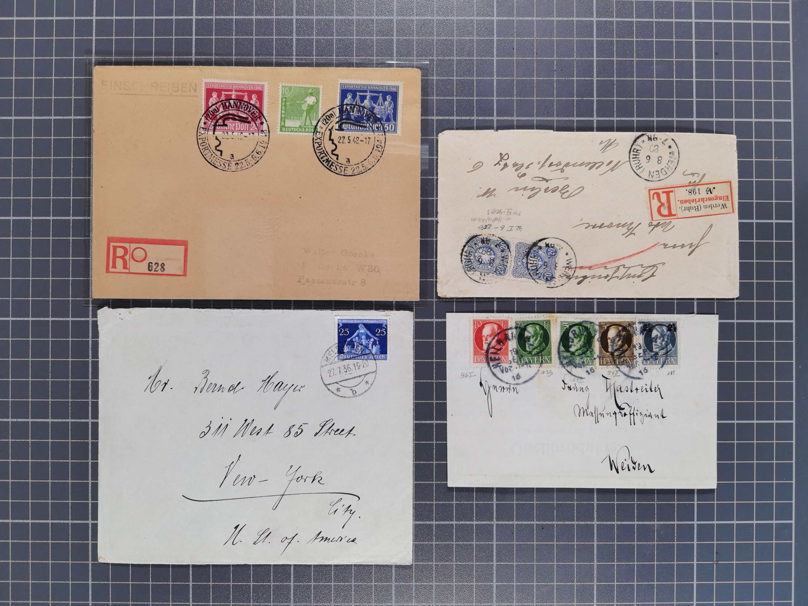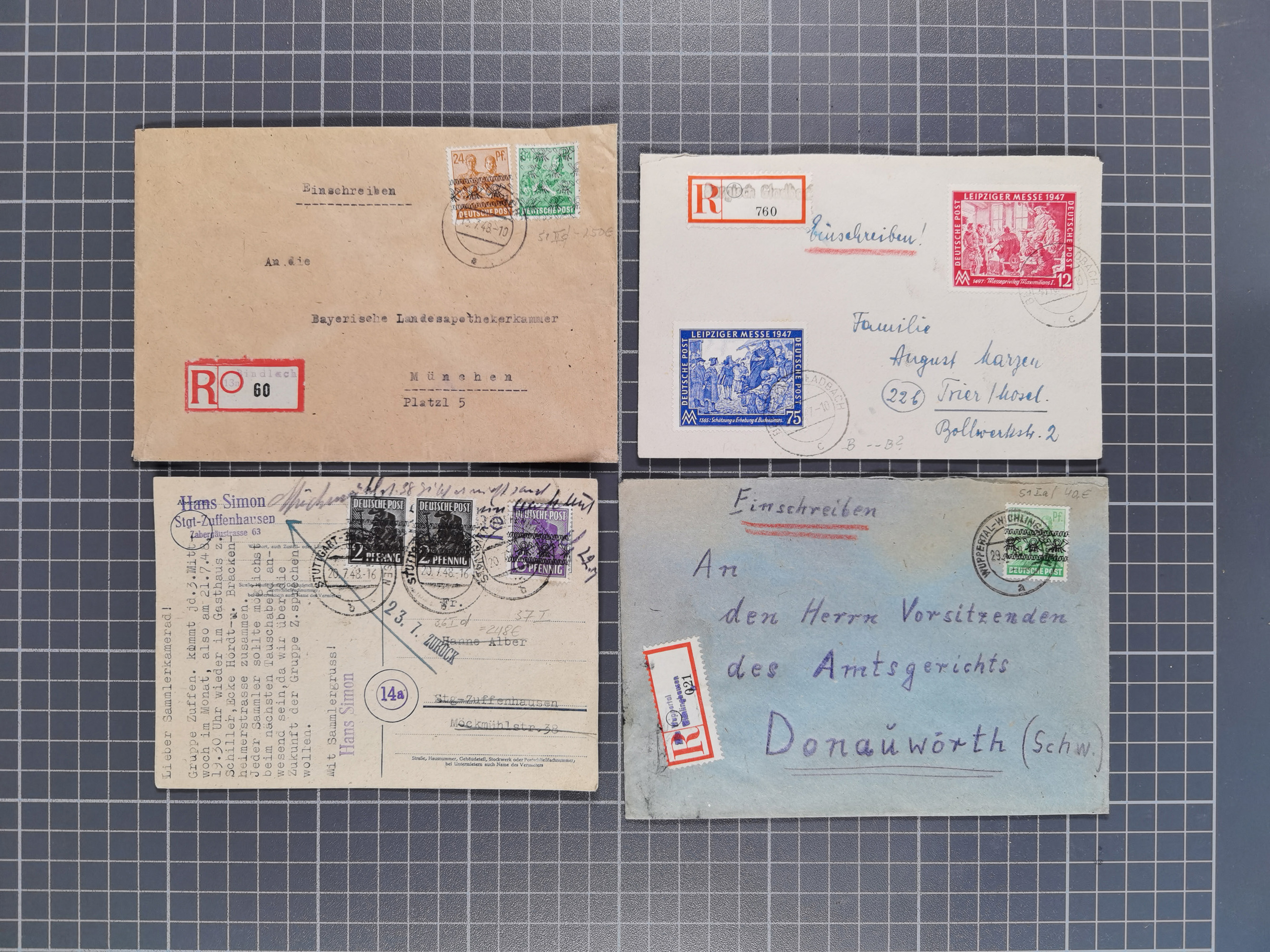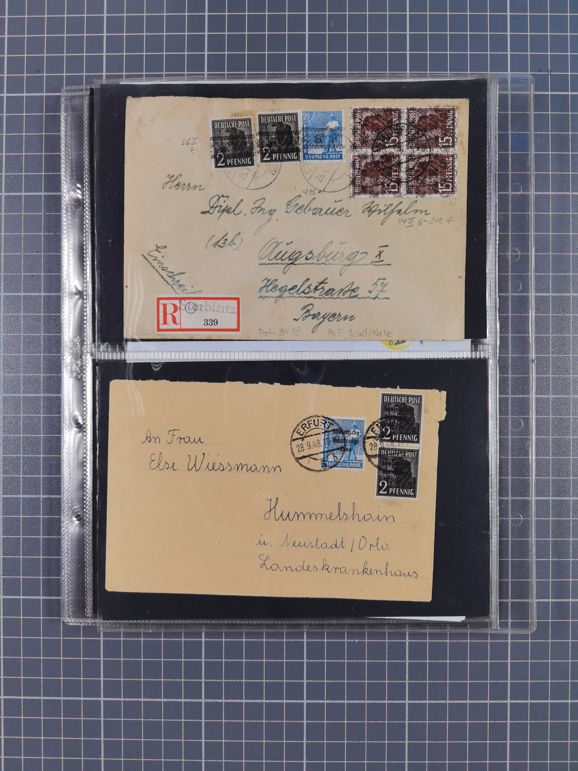 1928/48, über 40 Briefe, dabei u.a. Zeppelinpost mit Islandfahrt, Polarpost 1 M., Holztaube, Liechtenstein, etc., ferner Nothilfe Zusammendruck mit Zufrankatur von Ansbach nach Nürnberg, Berlin Mi.-Nr. 1-20 je auf Blanko-Briefen, Bezirkshandstempel, etc.
