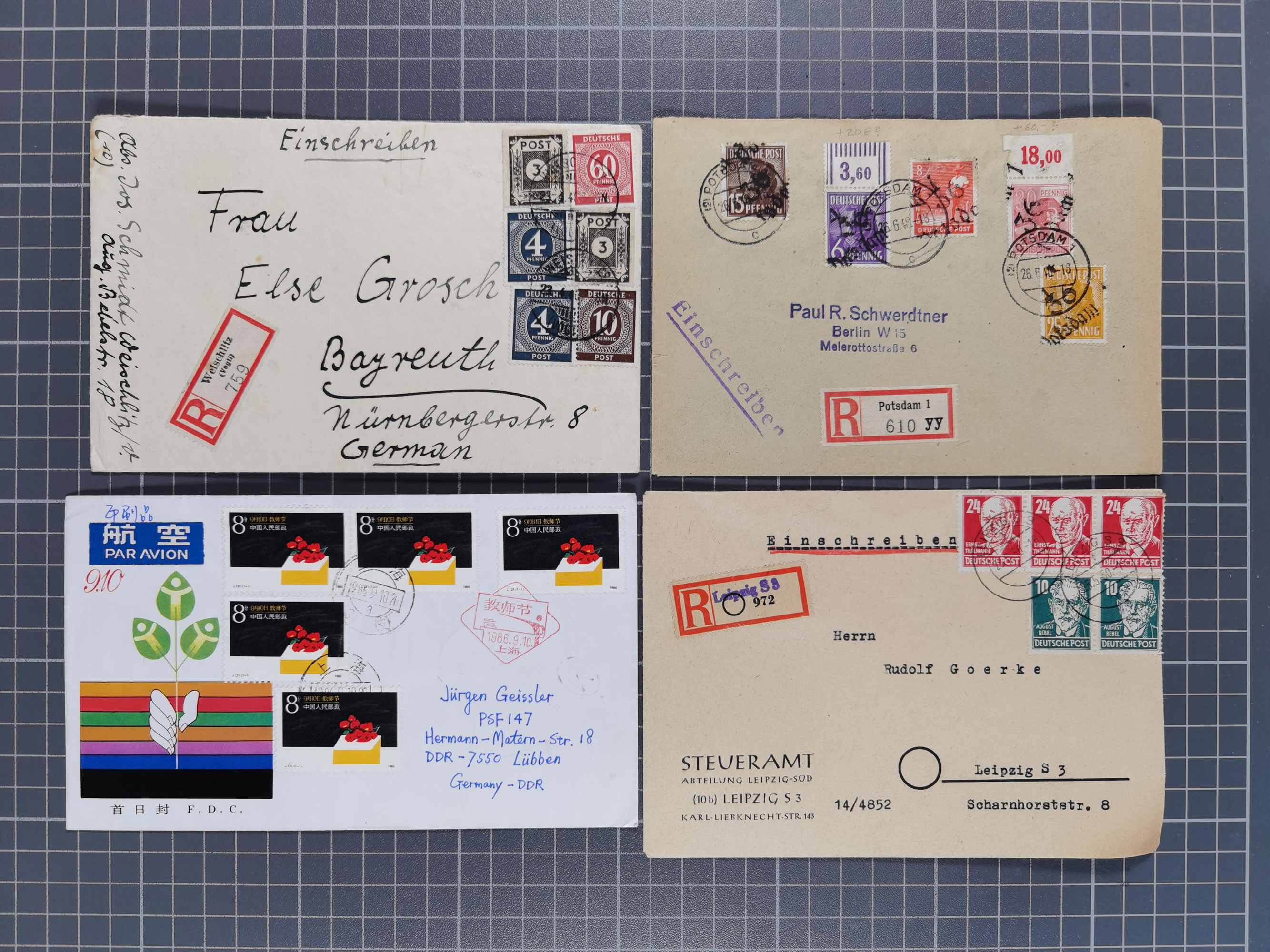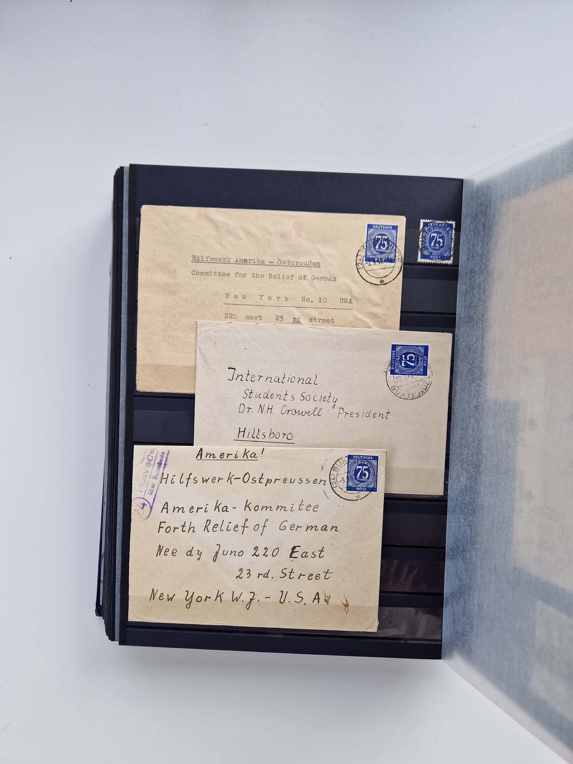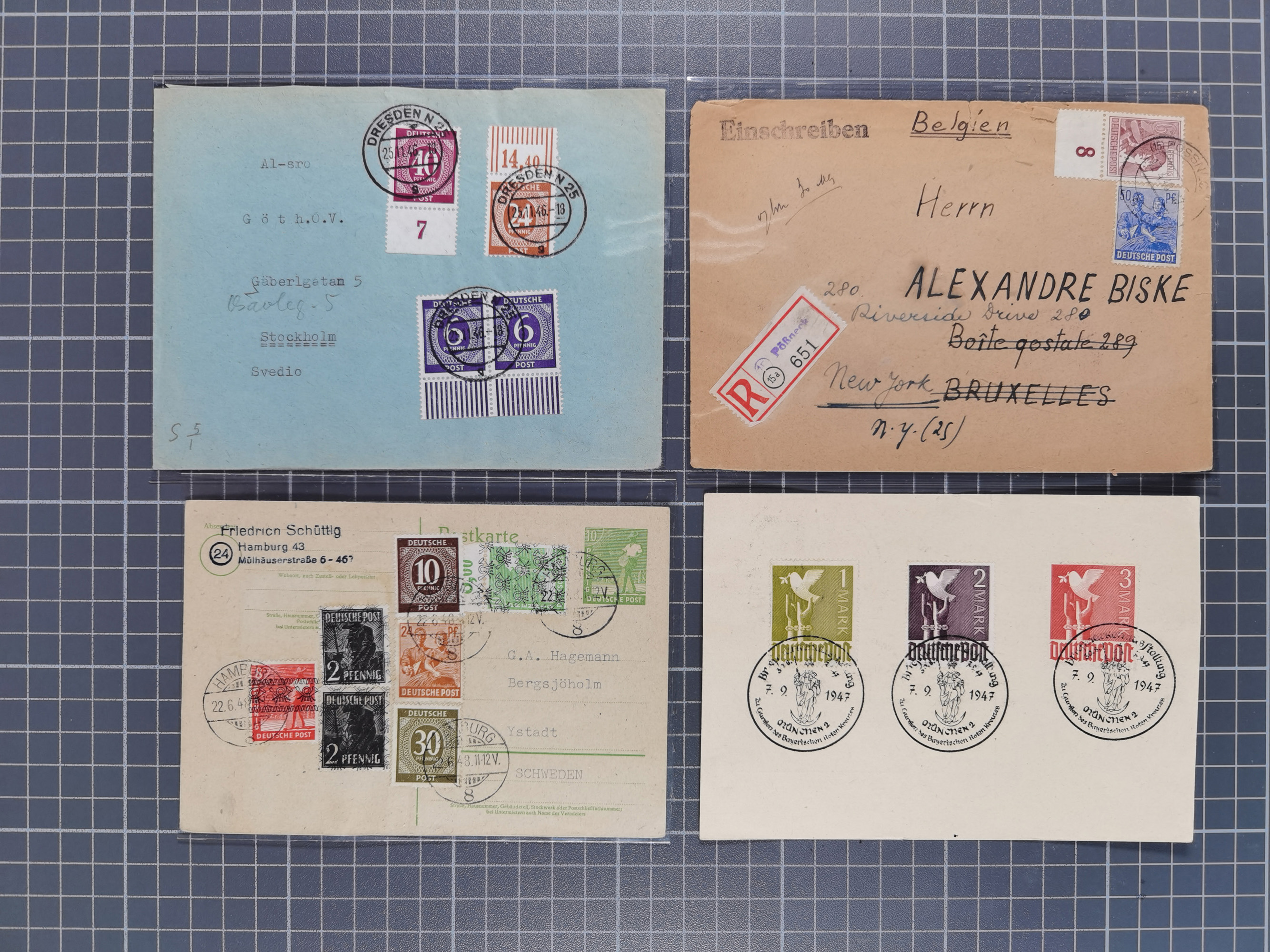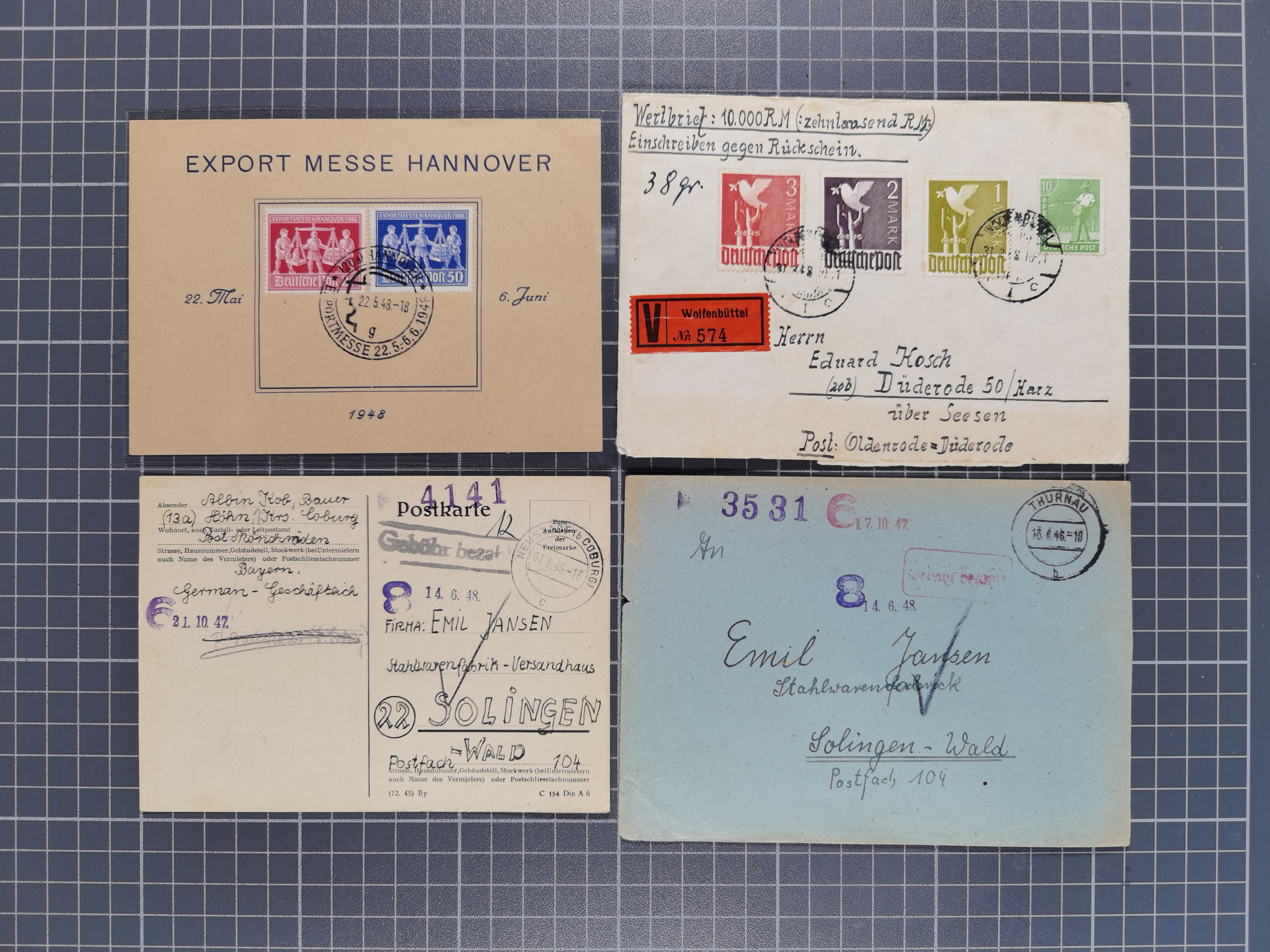 1928/48, über 40 Briefe, dabei u.a. Zeppelinpost mit Islandfahrt, Polarpost 1 M., Holztaube, Liechtenstein, etc., ferner Nothilfe Zusammendruck mit Zufrankatur von Ansbach nach Nürnberg, Berlin Mi.-Nr. 1-20 je auf Blanko-Briefen, Bezirkshandstempel, etc.