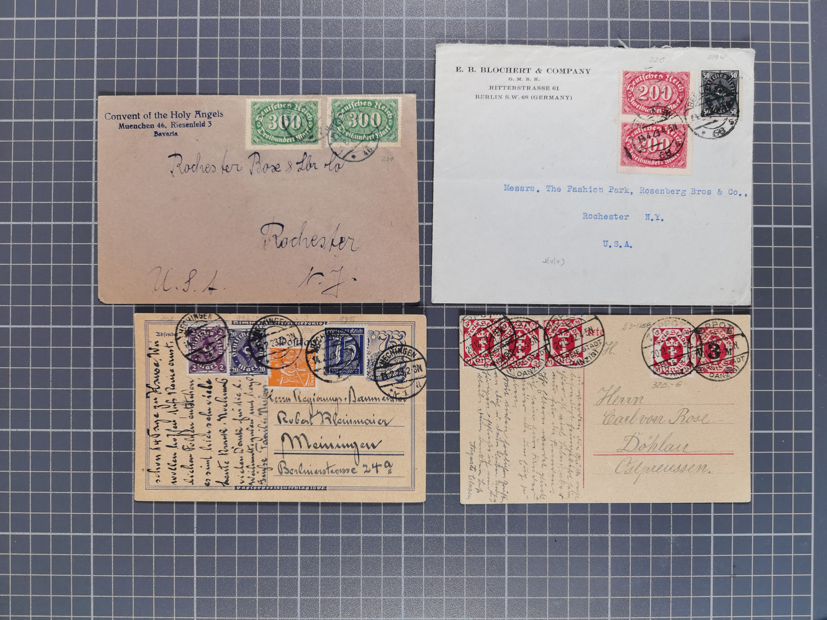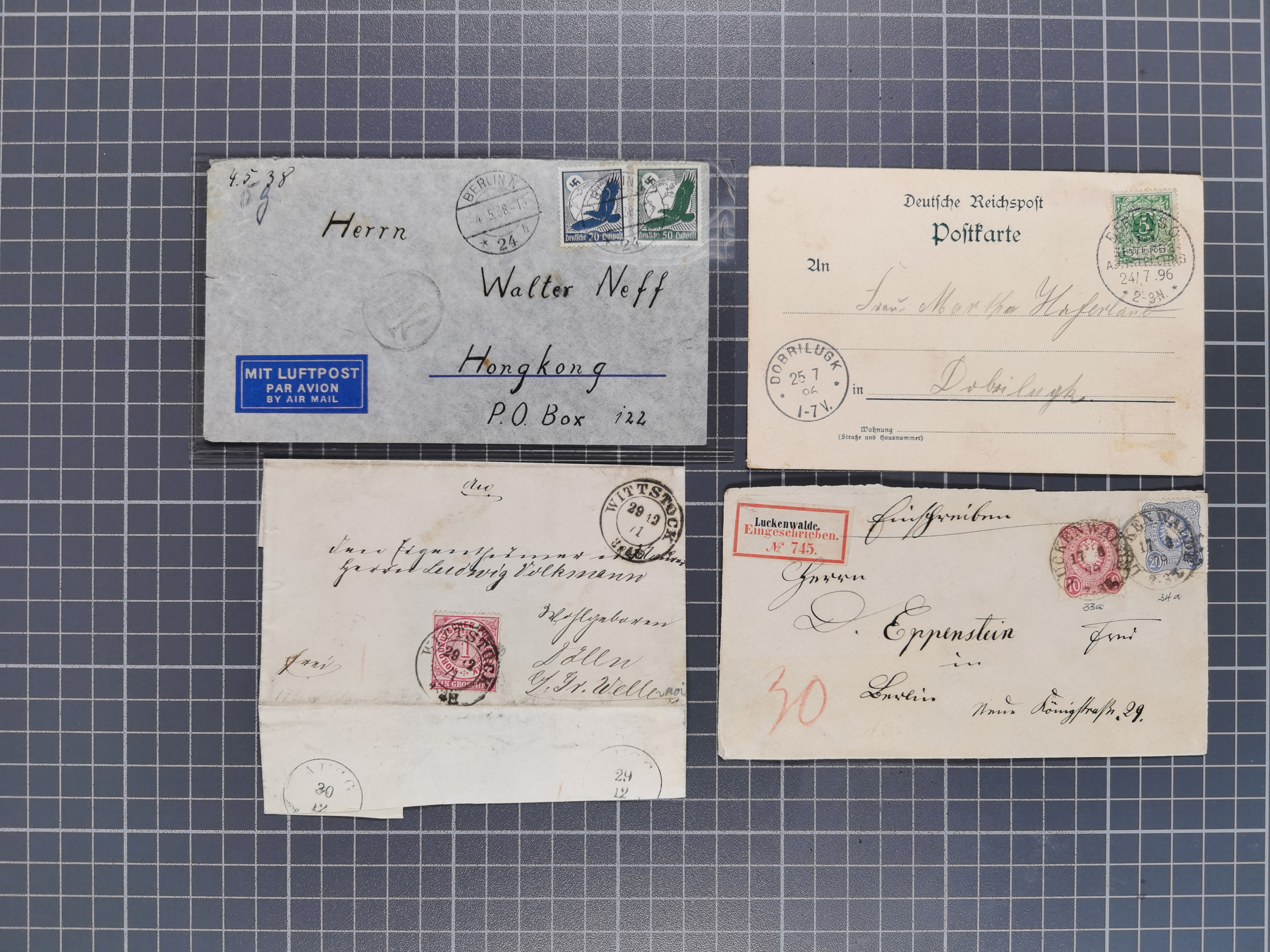 1829/1952, Partie mit 31 Belegen, inkl. Feldpost, Alt Württemberg, Danzig und Fr. Zone, etc., sauber im Album