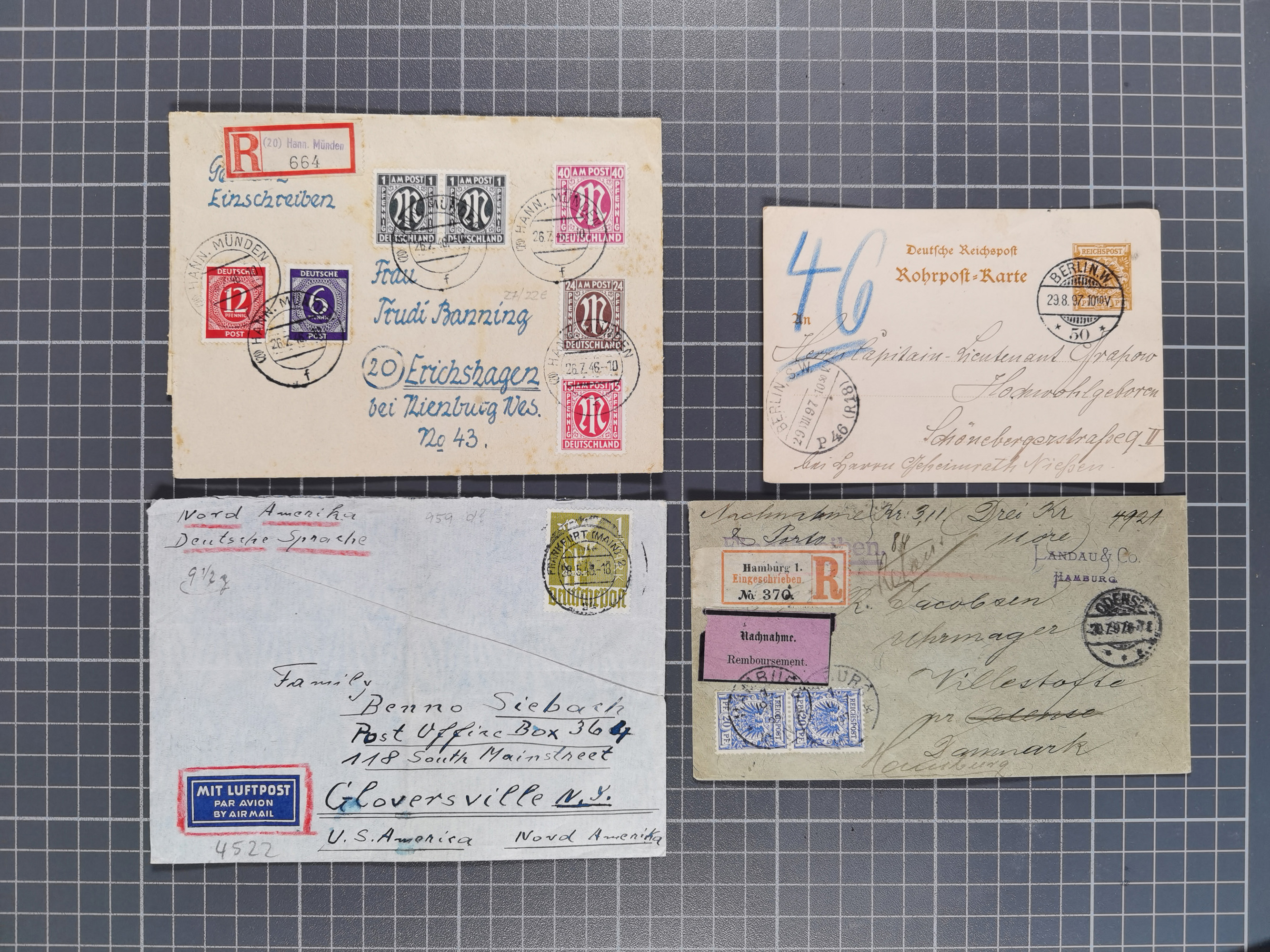 1888/1948 (ca.), “Zensurpost”, Partie mit über 85 Briefe und Karten, Schwerpunkt Alliierte Besetzung, dabei bessere Zensur-Stempeltypen inkl. Sowjet, interessante Frankaturen und weiteren Besonderheiten, dazu einige ausländische Briefe