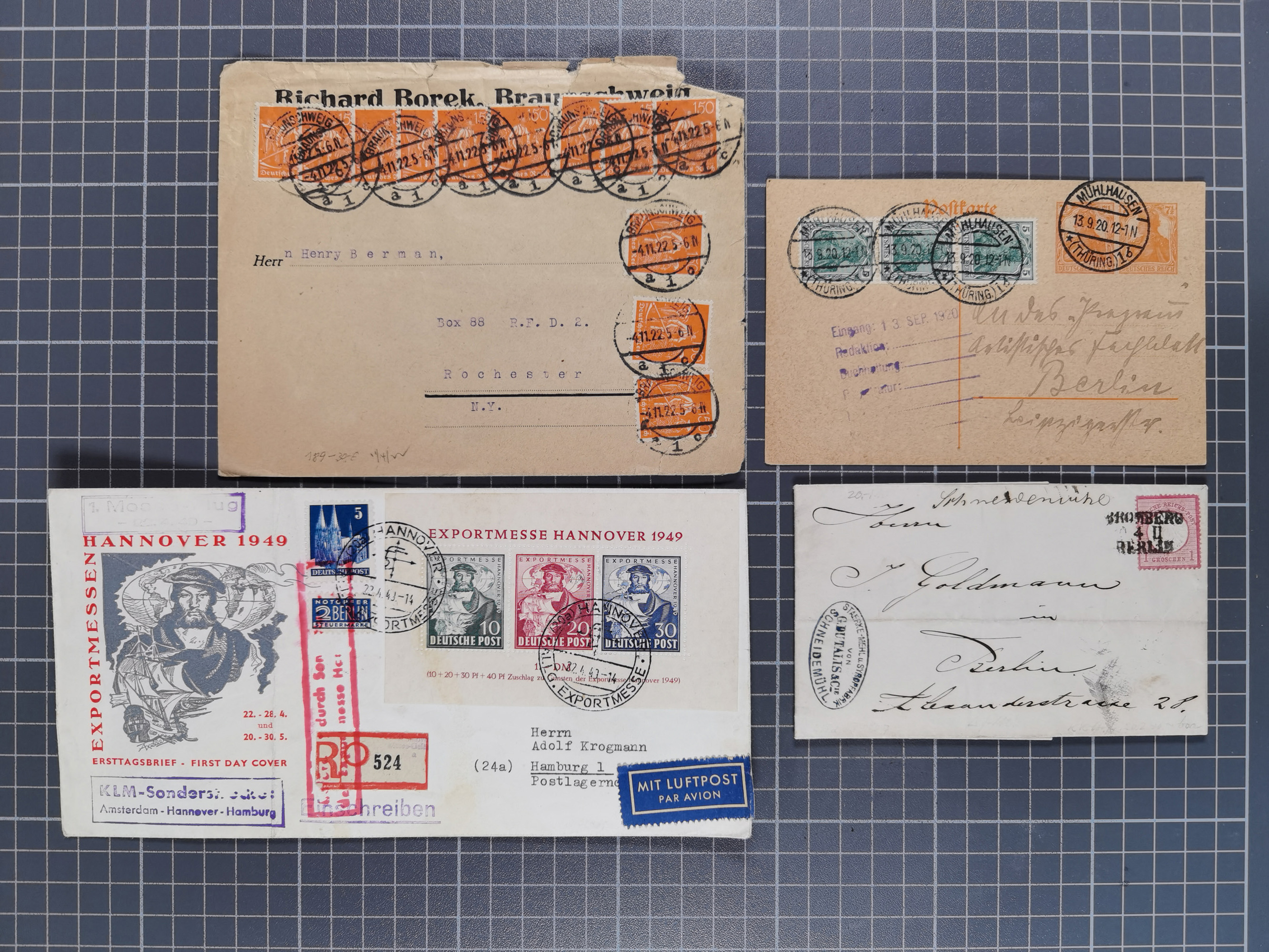 1834/2000 (ca.), Sammlung mit hunderten von Briefen und Karten ab Vorphila mit vielen besseren Einzel- und Mehrfachfrankaturen, Braunschweig, Post nach China und NDP nach Schweden (KFB Mehlmann BPP), Schwerpunkt vor 1950, etc., meist in guter Erhaltung, ein empfehlenswertes Objekt