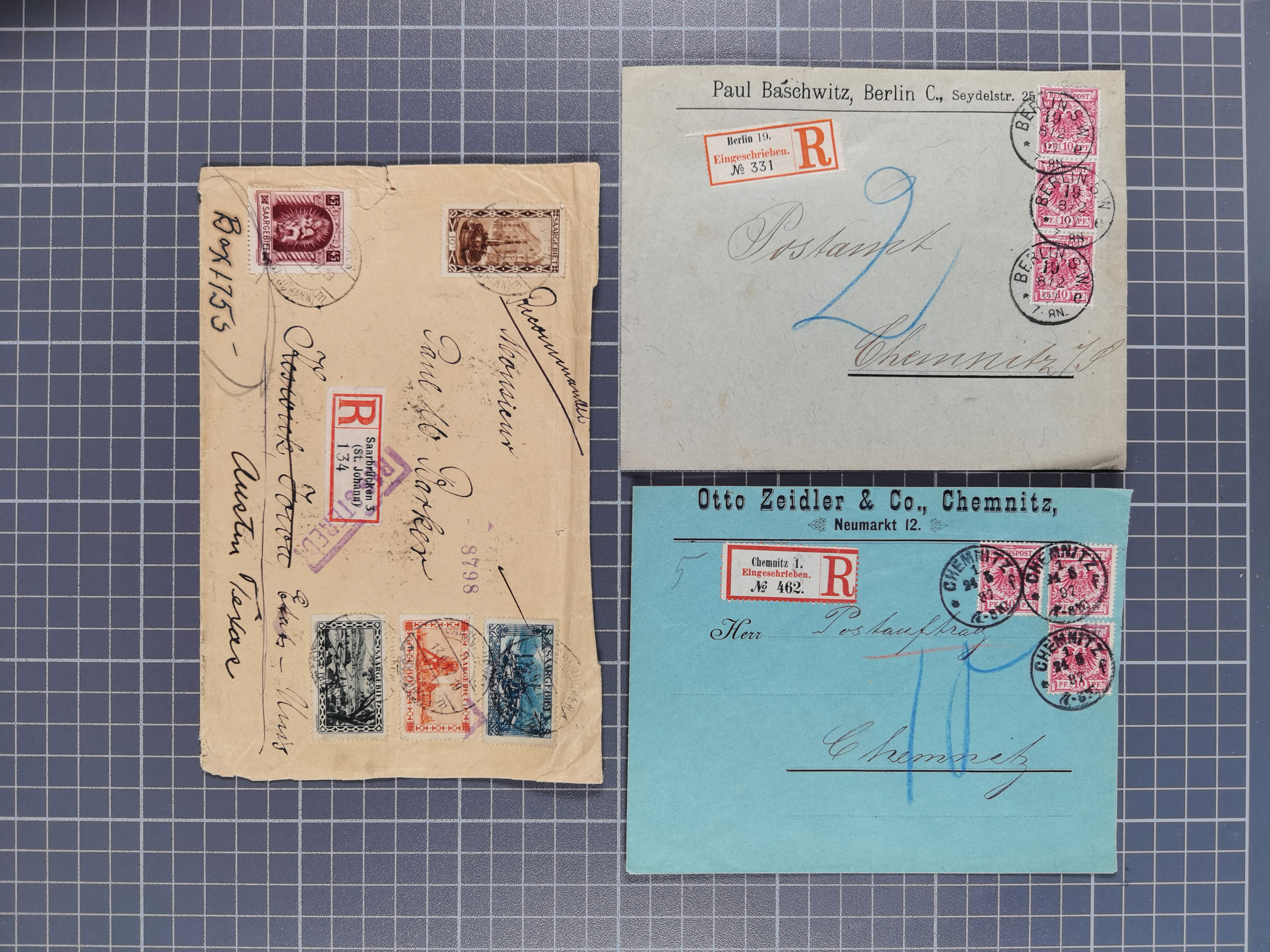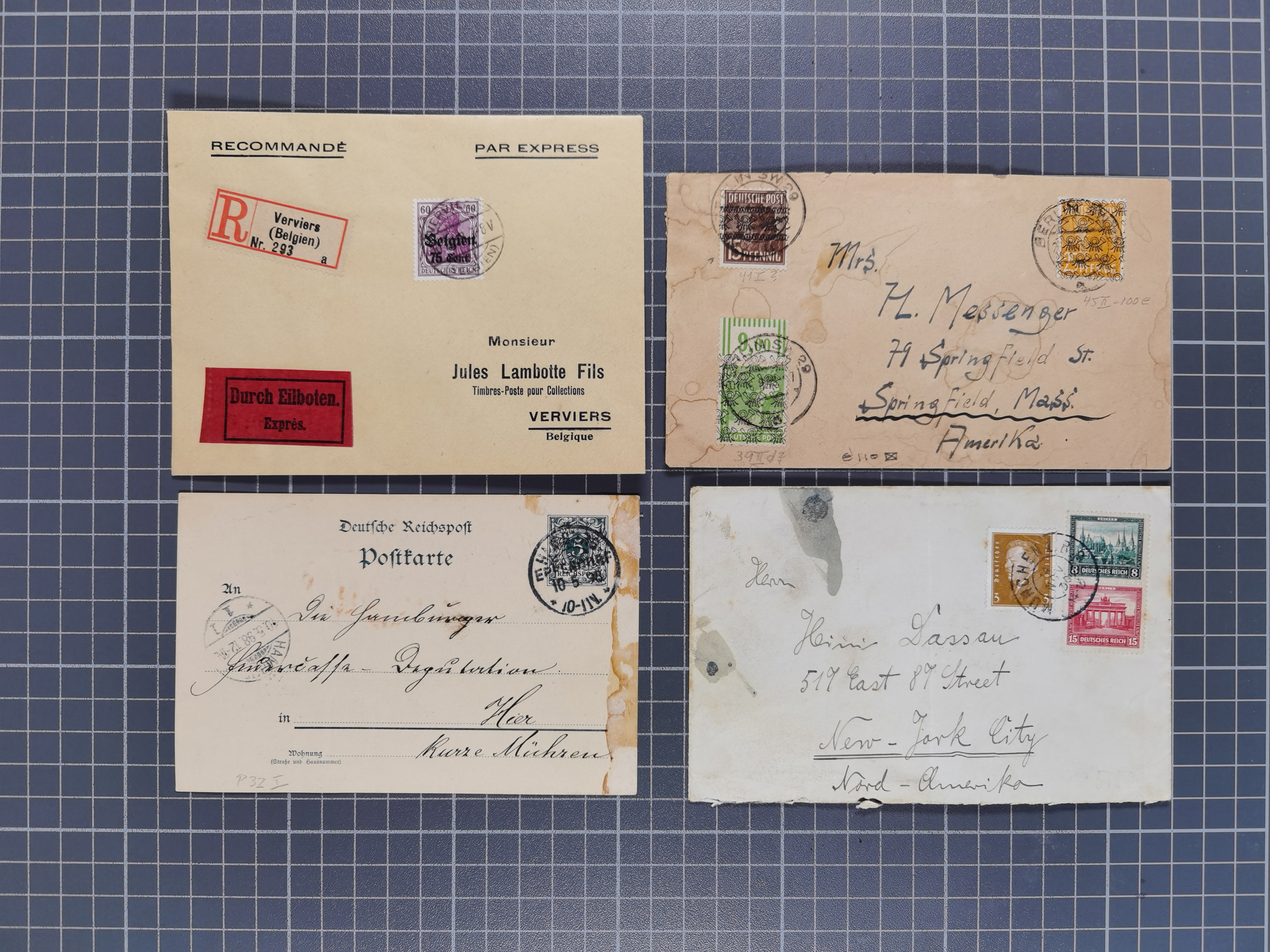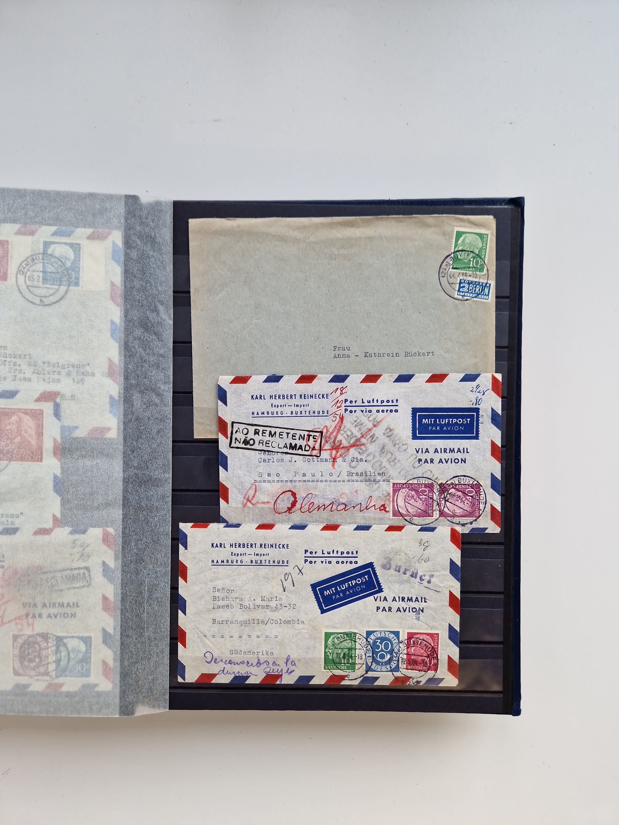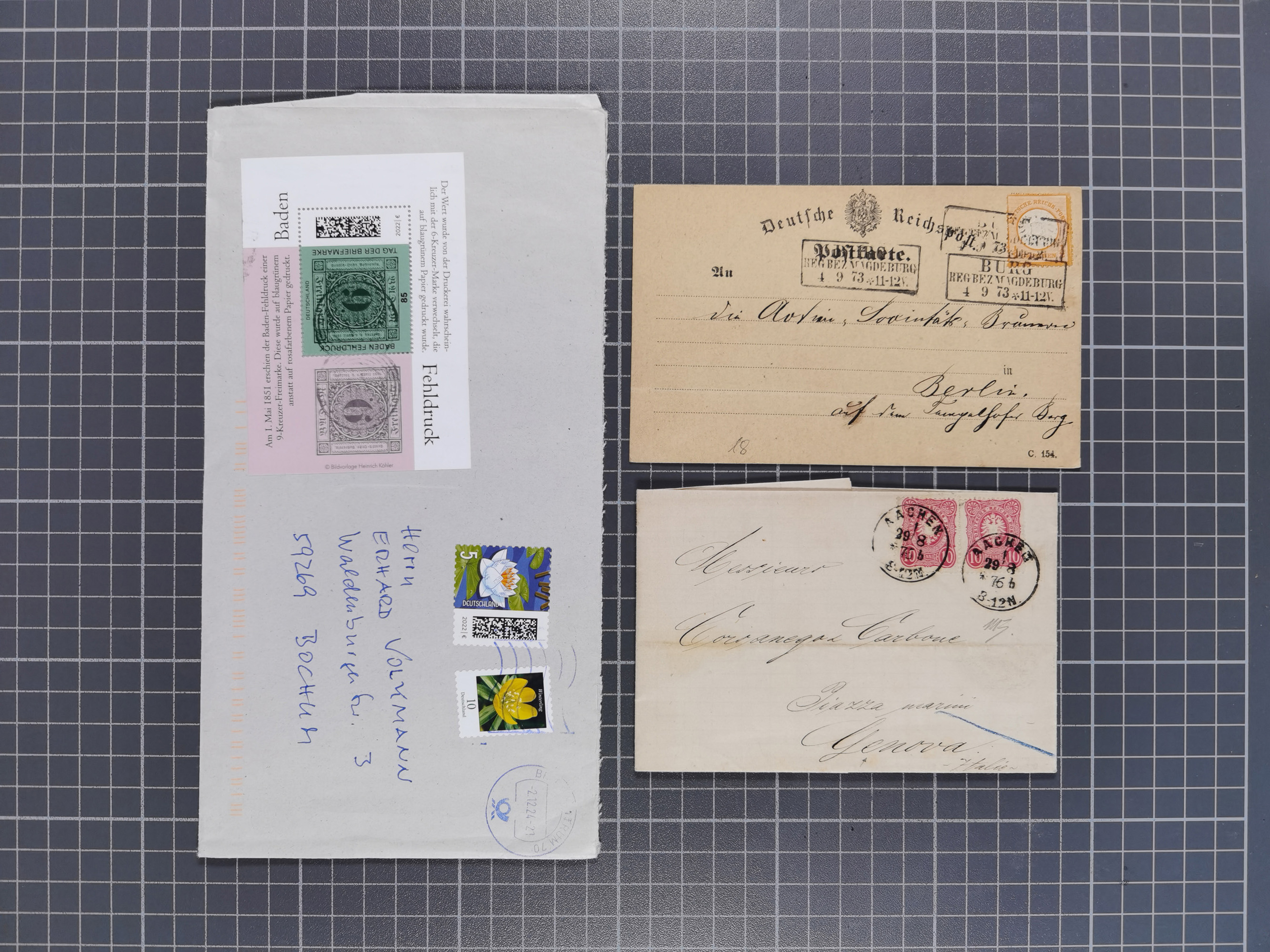1865/1950 (ca.), Album mit 122 hochwertigen Belegen, diese einzeln vom Einlieferer beschrieben und nach Michel bewertet 15.000 €. Dazu ein Karton mit über 170 Briefen, Karten und Ganzsachen, dabei etliche interessante Belege, meist gute Erhaltung