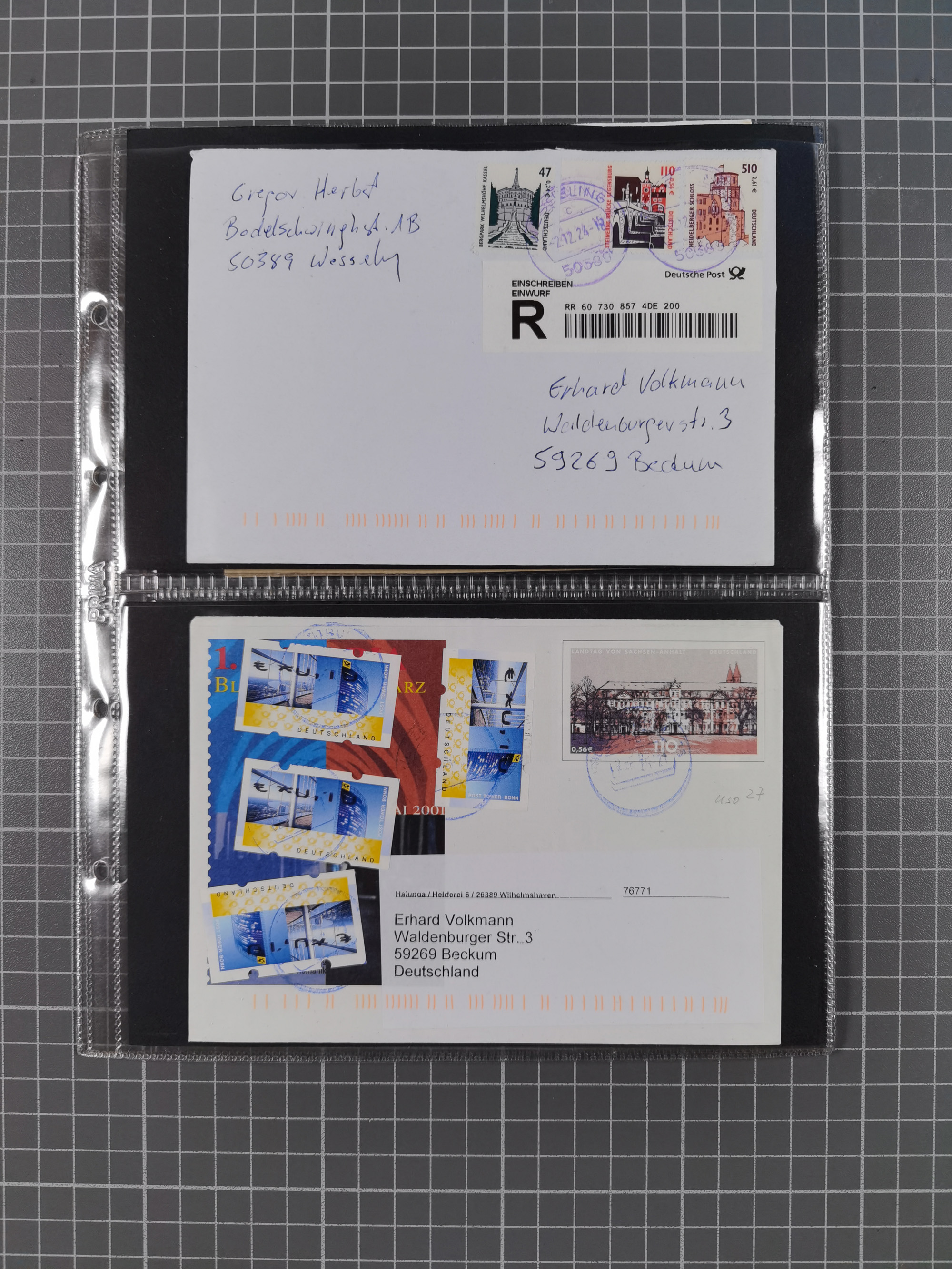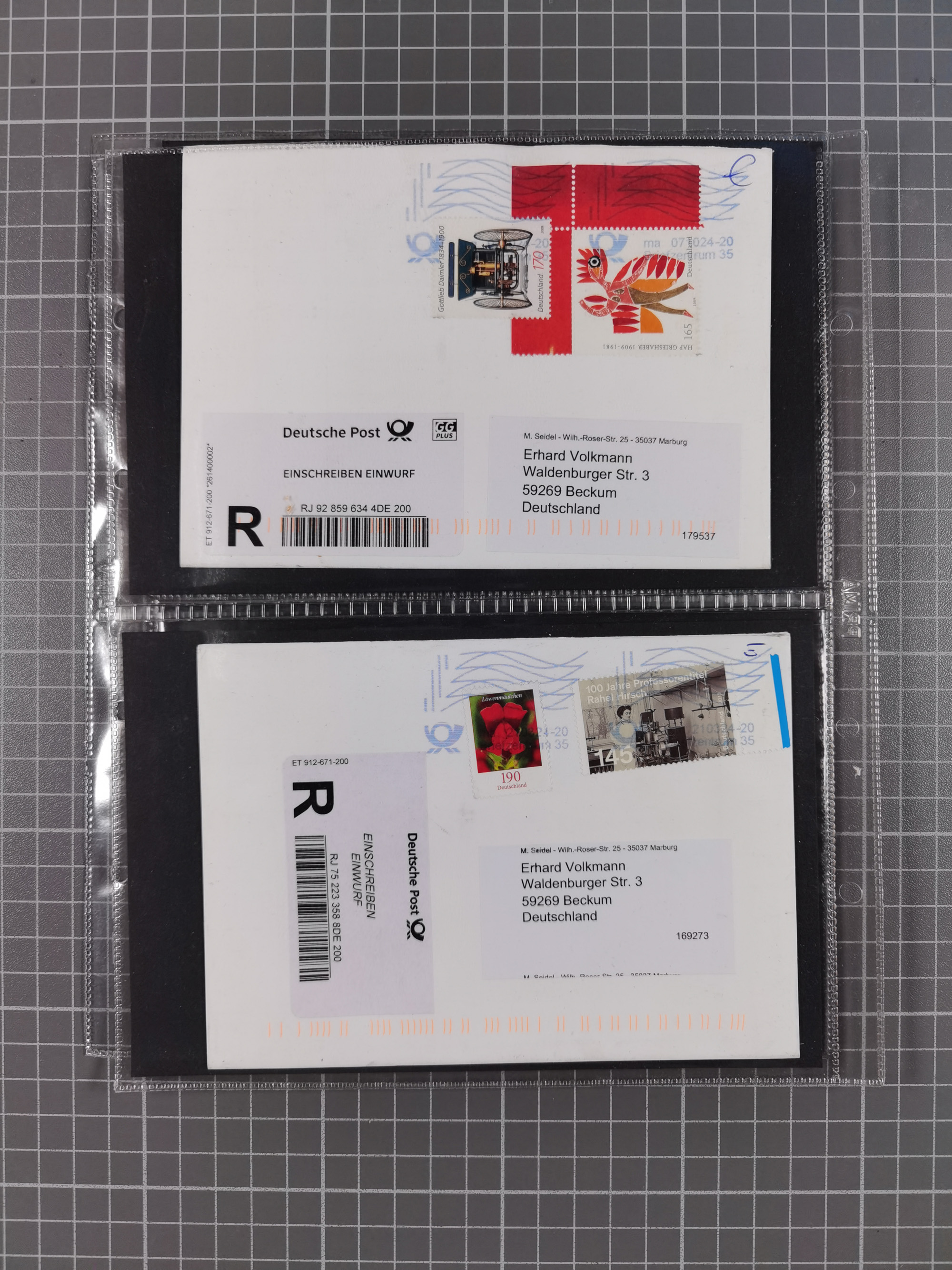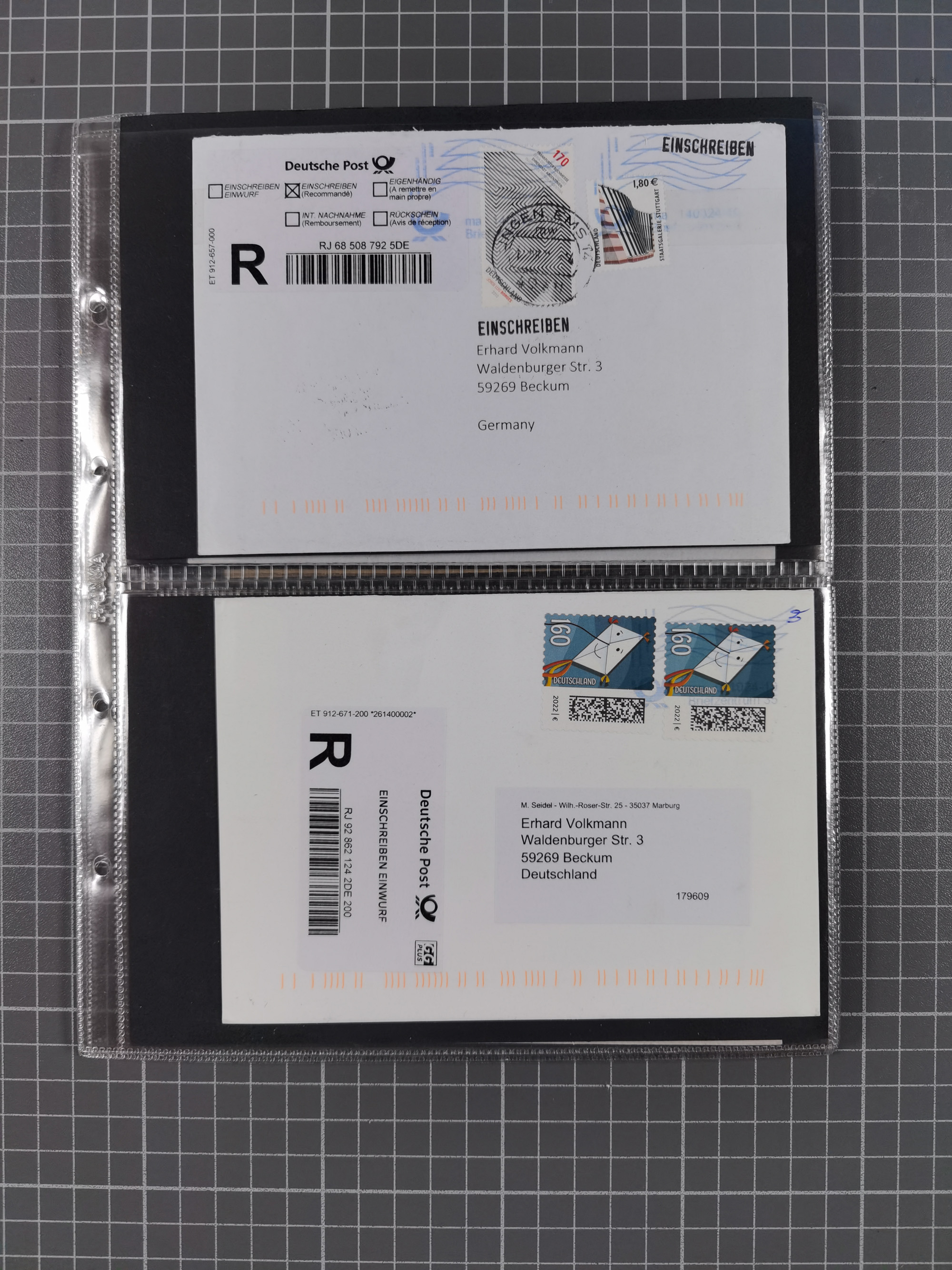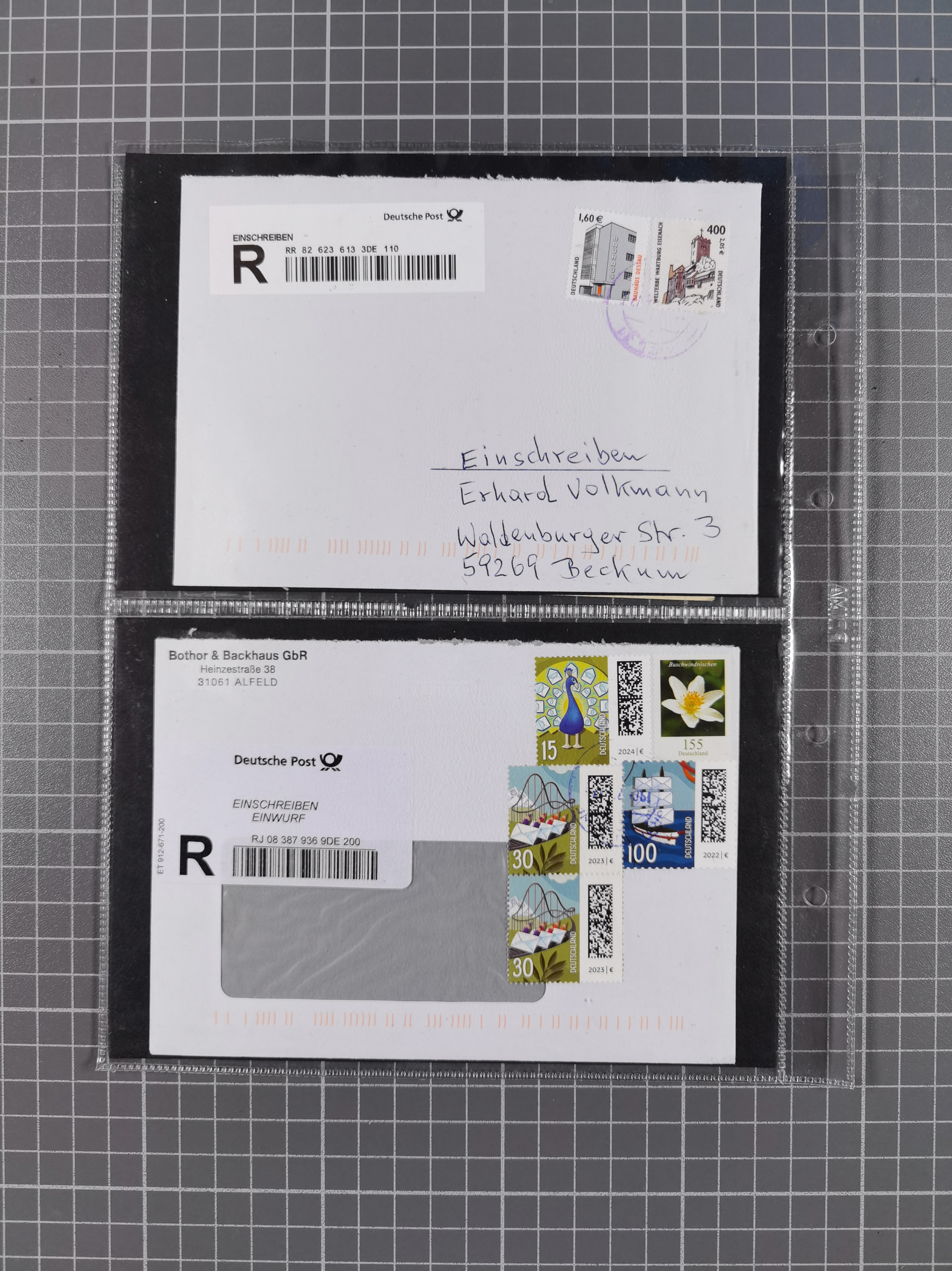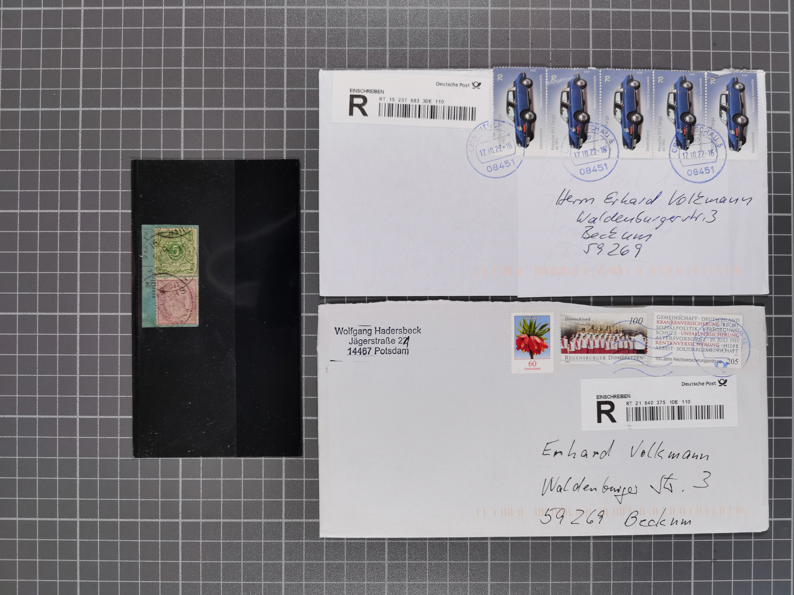 1865/1950 (ca.), Album mit 122 hochwertigen Belegen, diese einzeln vom Einlieferer beschrieben und nach Michel bewertet 15.000 €. Dazu ein Karton mit über 170 Briefen, Karten und Ganzsachen, dabei etliche interessante Belege, meist gute Erhaltung
