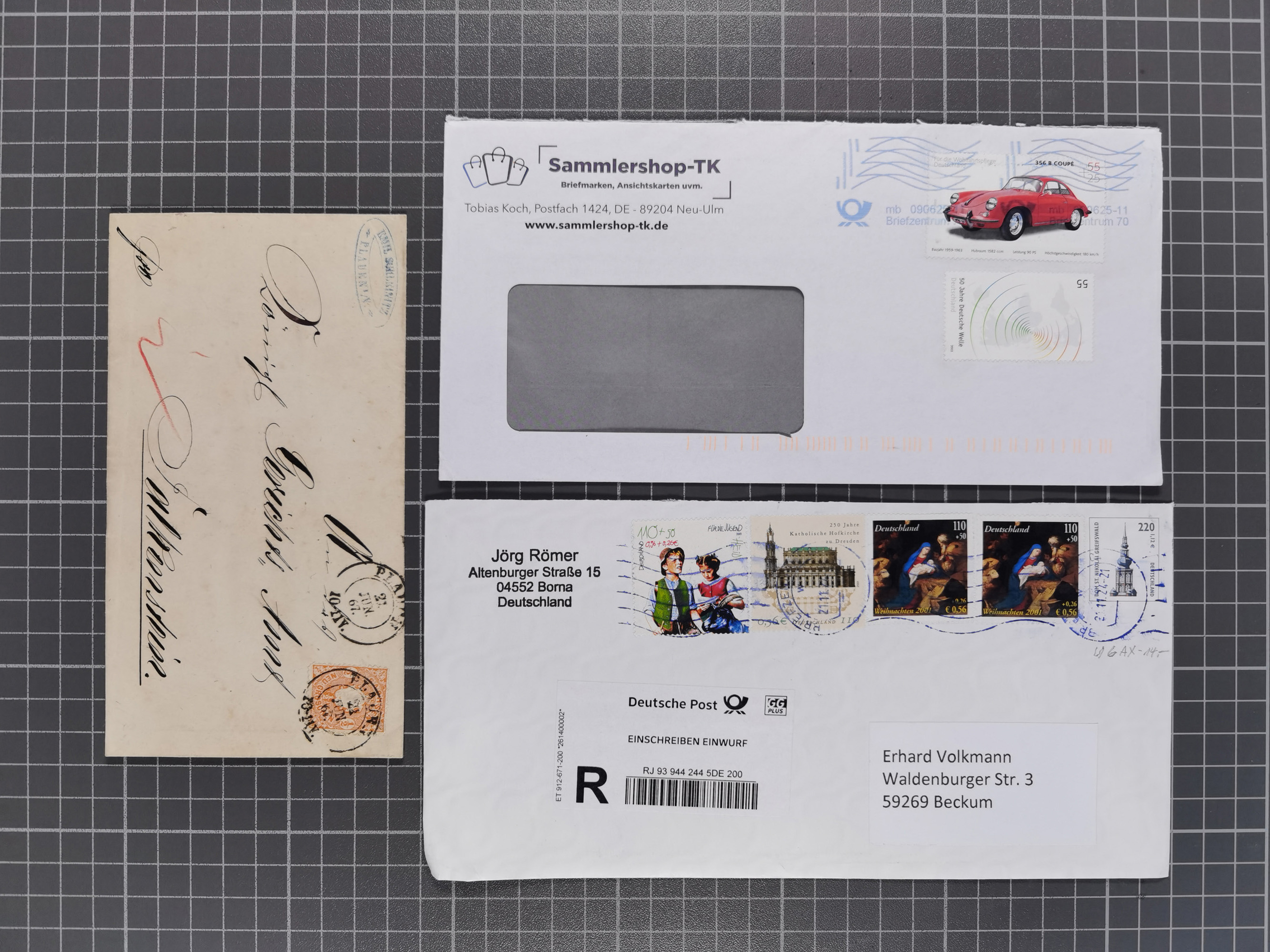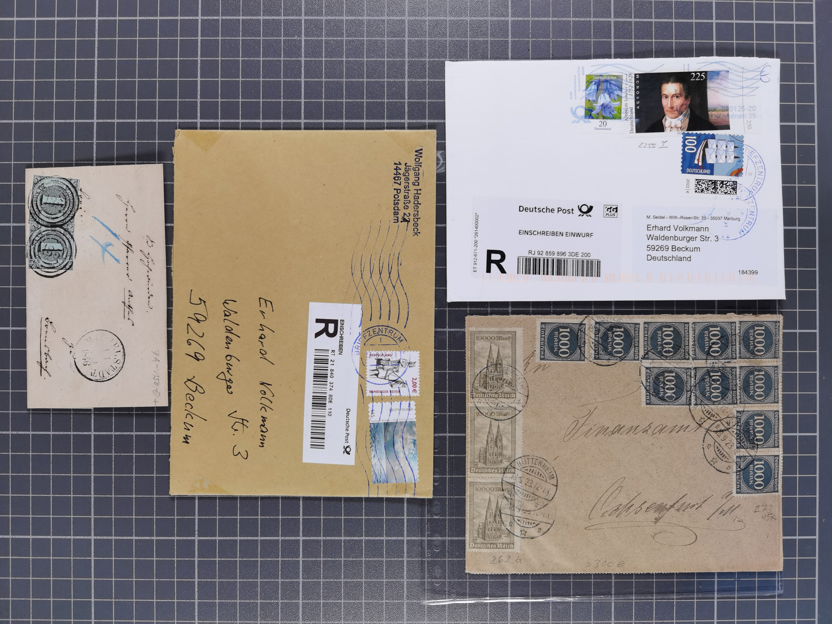 1836/1950(ca.), Partie mit über 300 Briefen und Karten, ab Altdeutschland mit einigen besseren Frankaturen u.a. Bayern Mi.-Nr. 7, bessere Ganzsachen, Einschreiben, Deutsches Reich mit einigen besseren u.a. “Trachten” auf R-Brief, etwas Ausland, meist gute Erhaltung