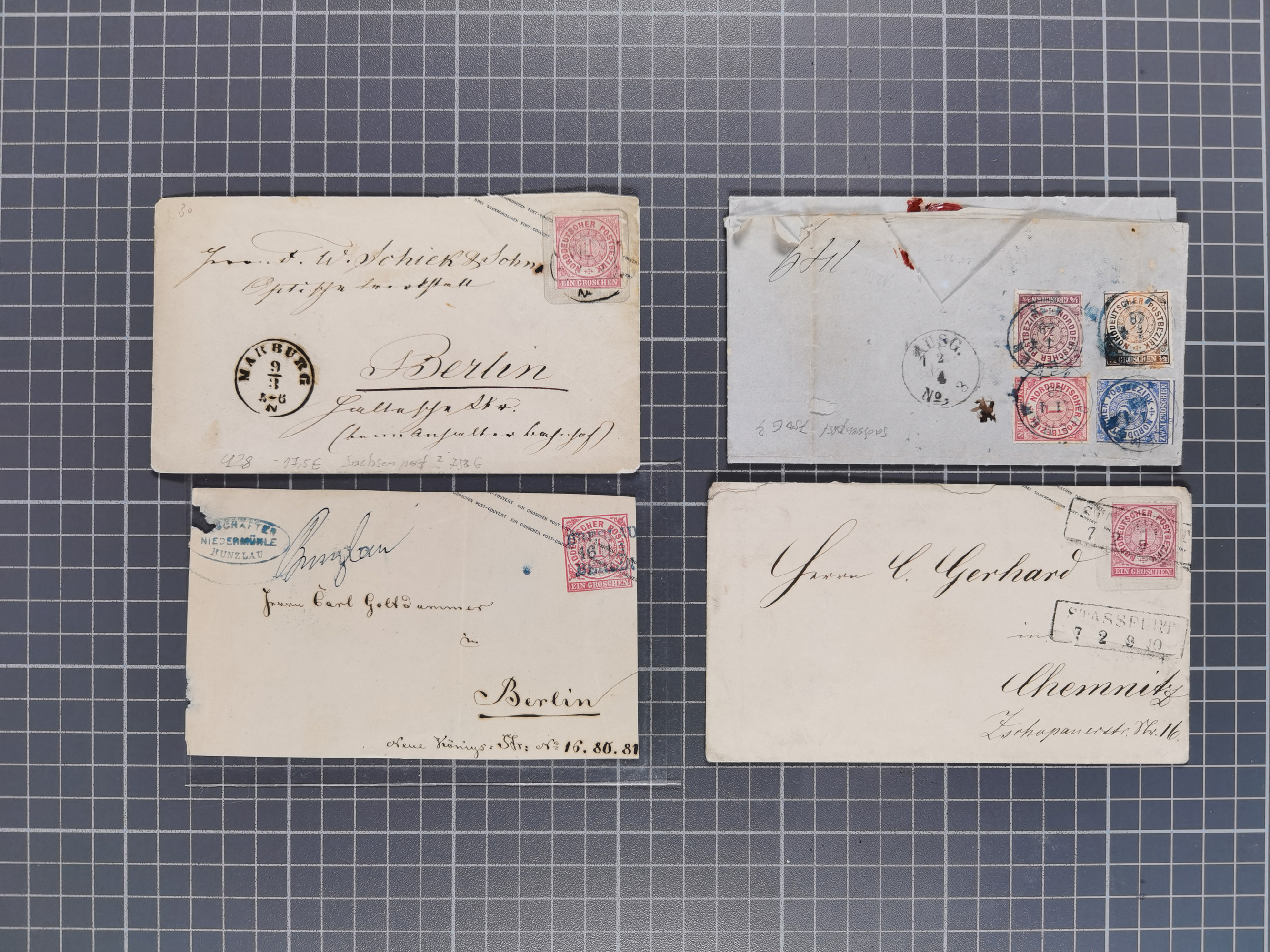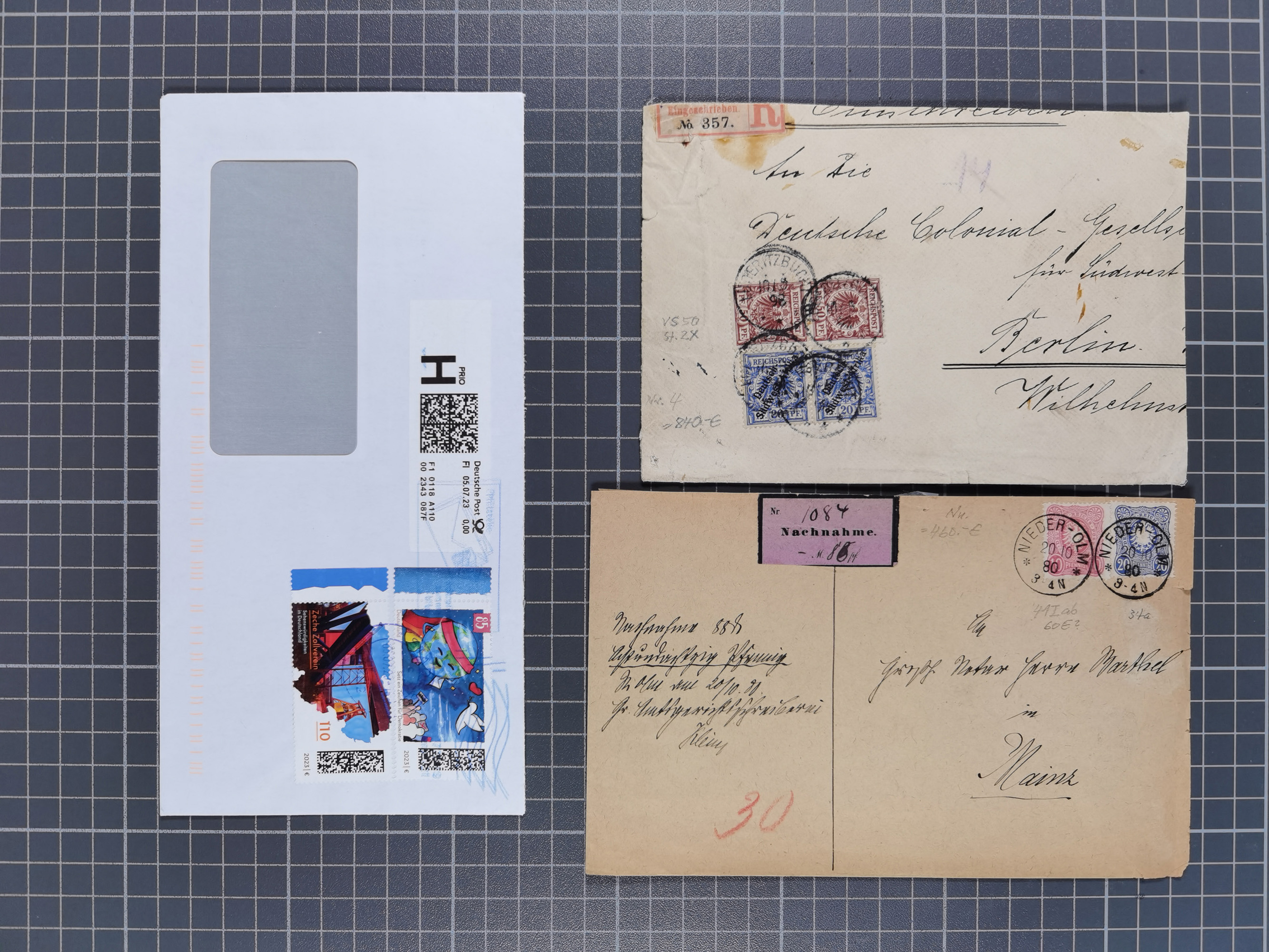 1845/1960 (ca.), interessanter Bestand inkl. etwas Ausland mit u.a. Dt. Kolonien mit interessanten Stempeln, Dt. Reich mit EF Mi.-Nr. 234 (FA Fleiner BPP), NDP mit u.a. MEF Mi.-Nr. 5 auf Brief in die USA und Dänisch-Westindien Halbierung auf Brief an die SMS. Panther mit vorderseitigem MSP-Stempel. Die Erhaltung ist zum Teil fehlerhaft, meist aber in guter Gesamterhaltung