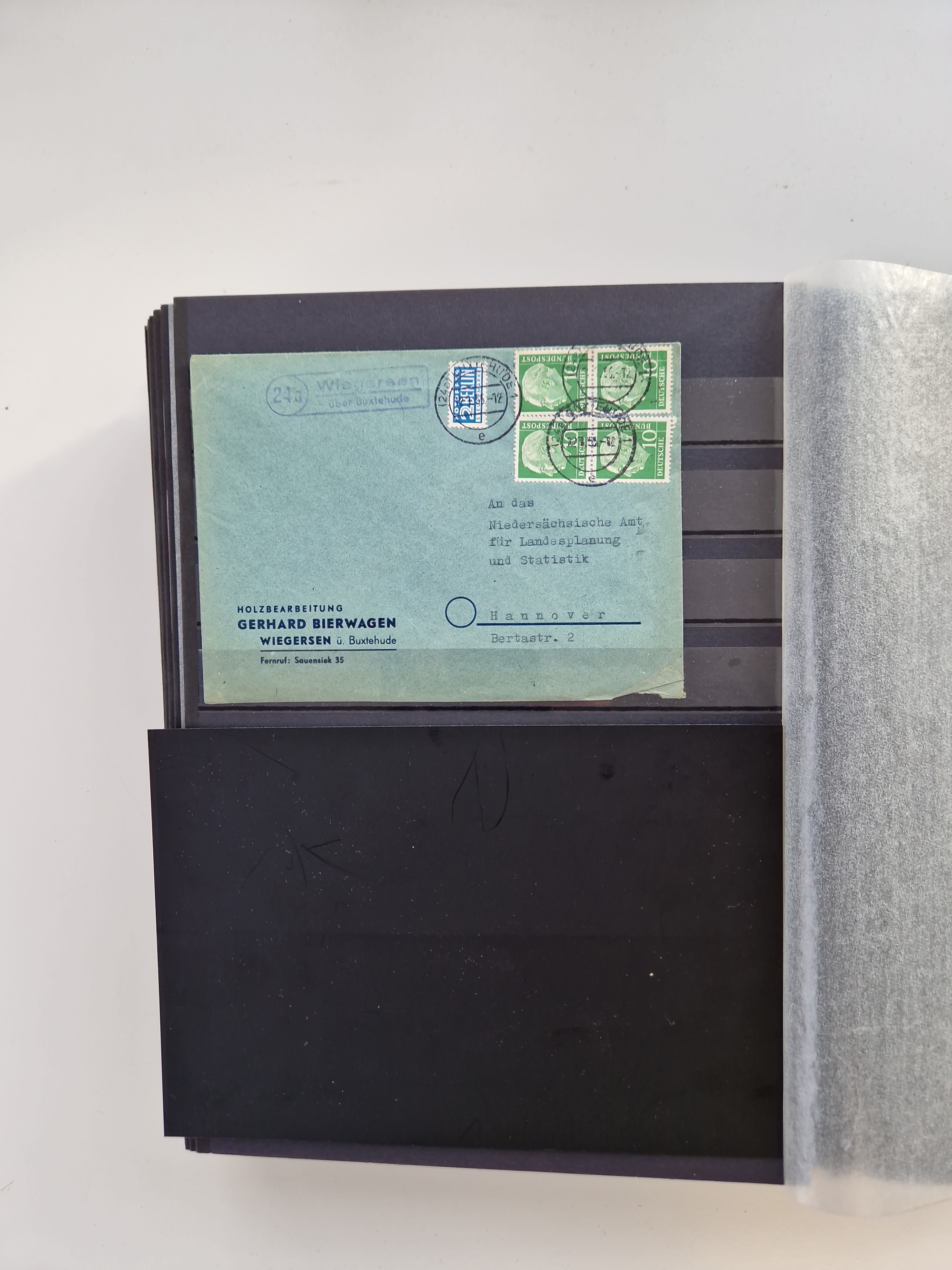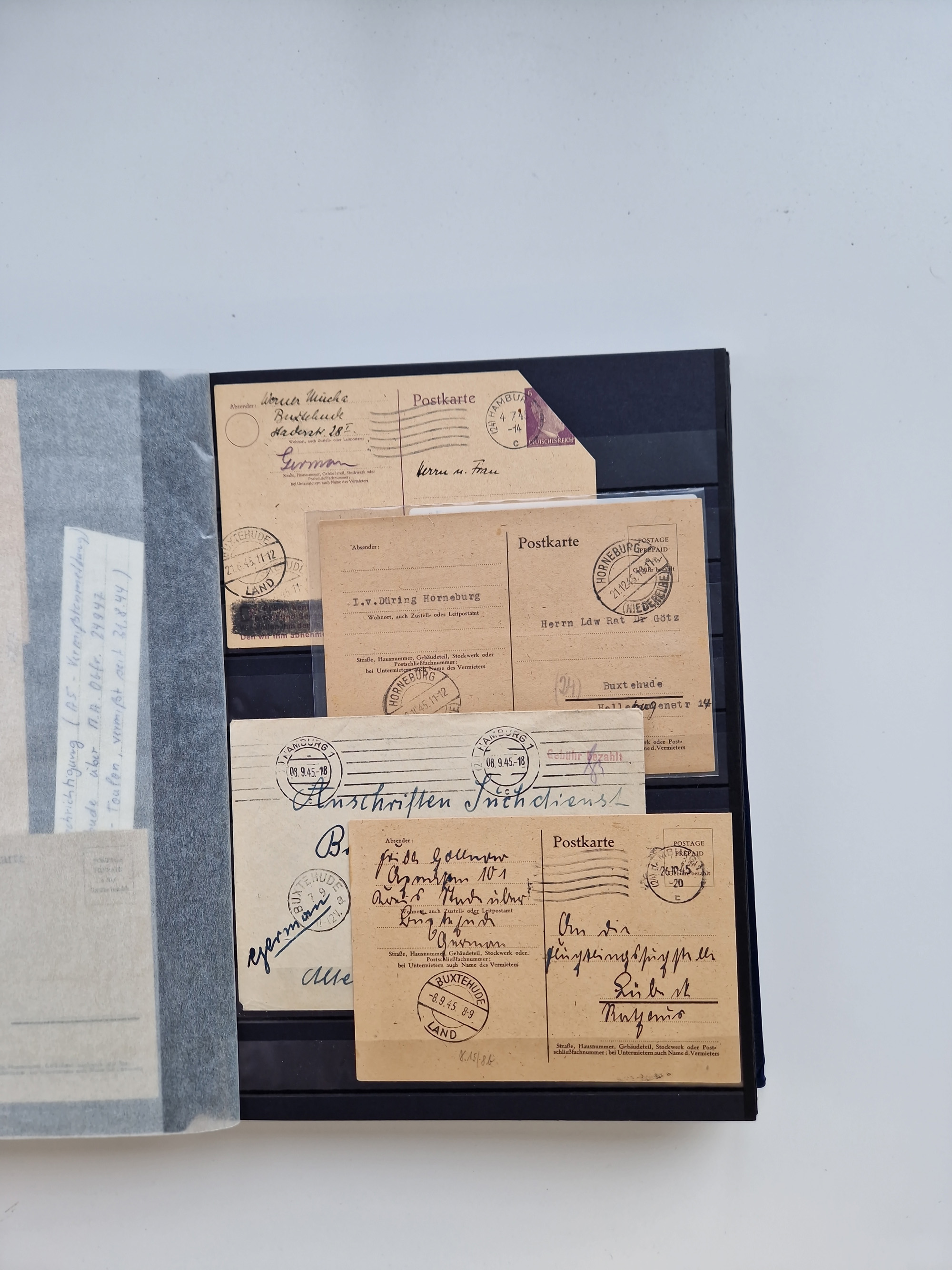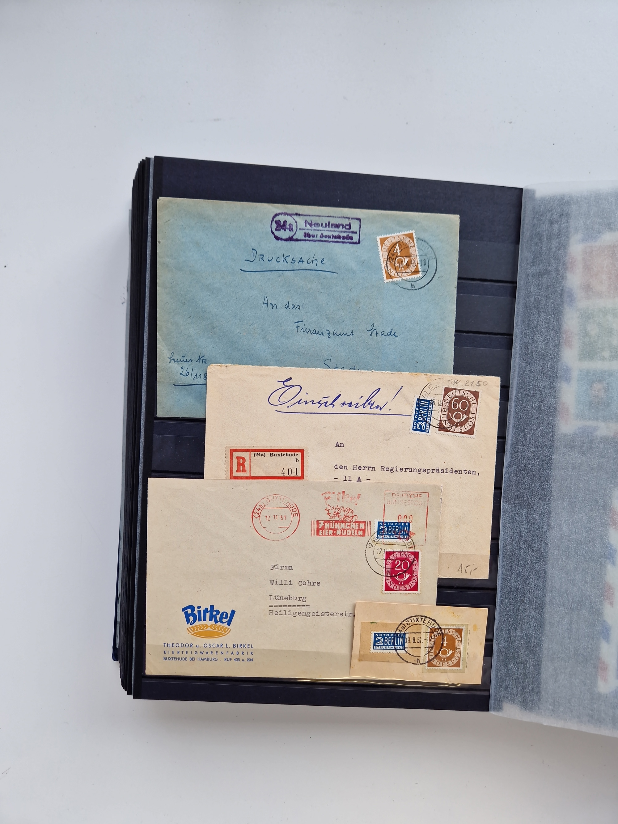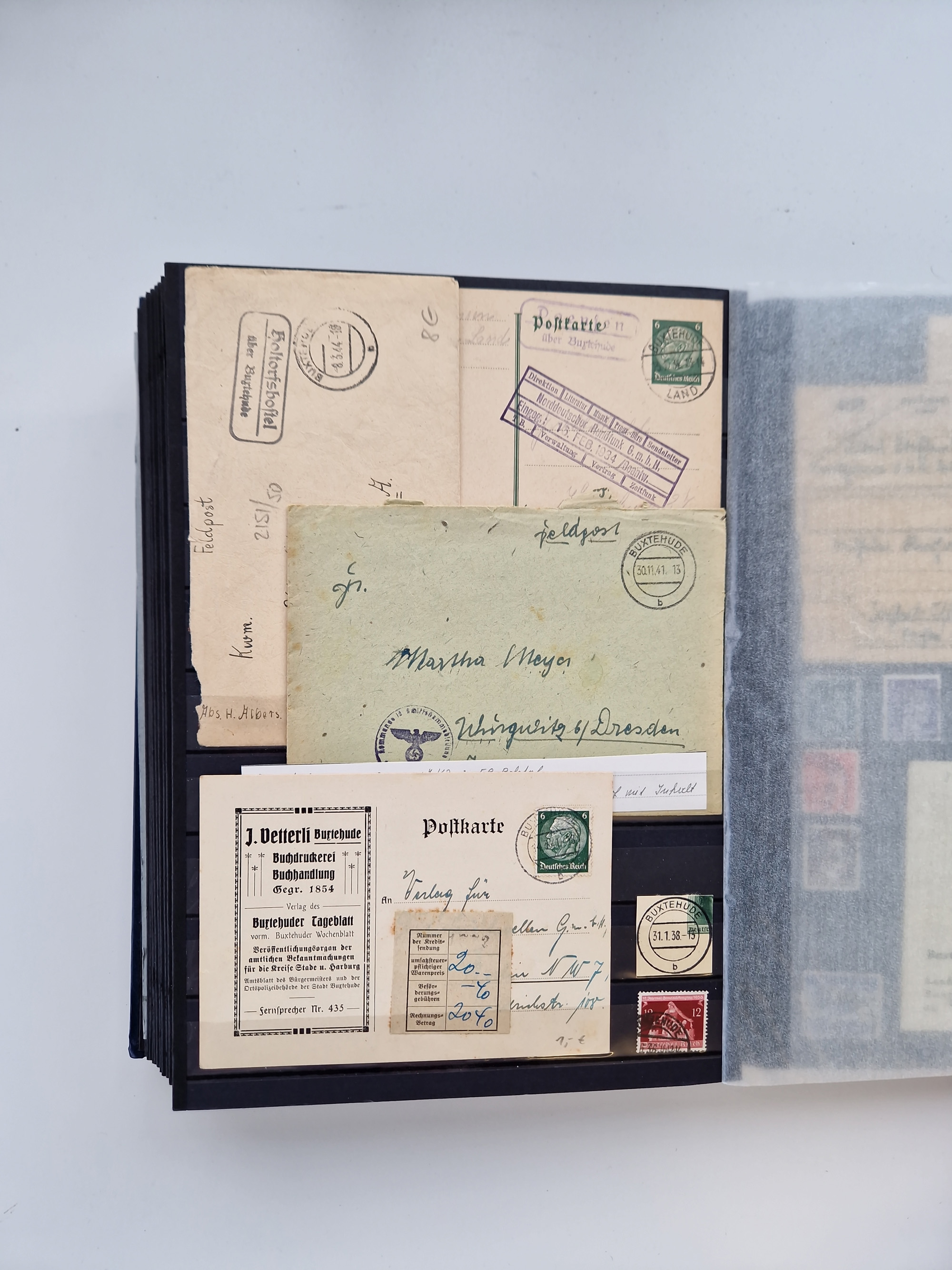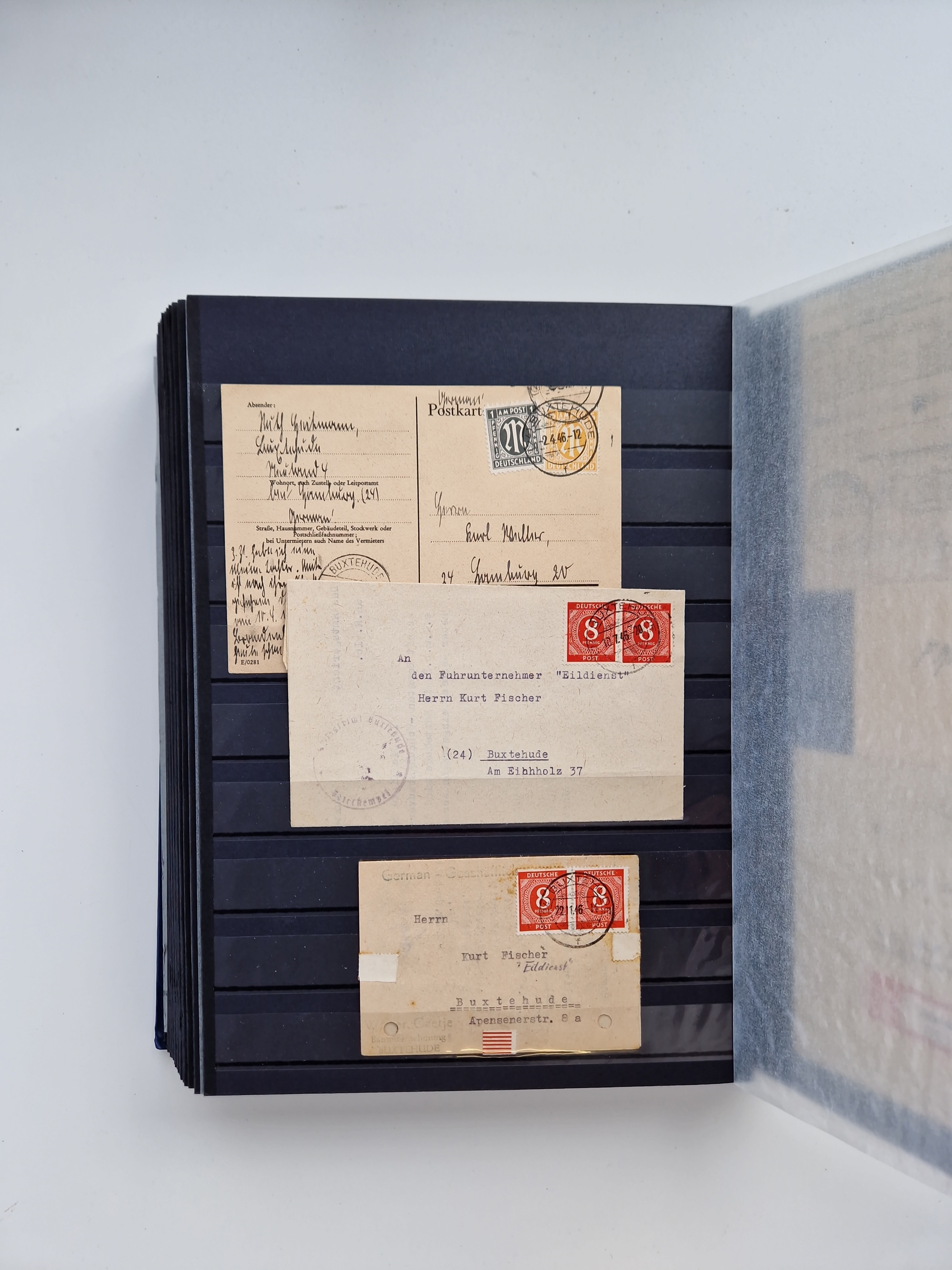 Buxtehude: 1787/2020, umfangreiche Sammlung ab Vorphila mit u.a. frühem Postschein von 1797, Botenbrief 1813 mit Dienstsiegel, Personenschein 1854 mit blauem L1 “BUXTEHUDE”, Hannover Mi.-Nr. 2a mit Vorausentwertung “(BUXT)EHUDE” und übergehendem handschriftlichem Vermerk “reicht nicht” auf Damenkuvert im Postverein (FA Berger BPP), Deutsches Reich ab Brustschild mit interessanten Frankaturen, Zonen-Ausgaben mit Paketkarten und Auslandsbriefe und Bund mit Anfangsausgaben und Luftpostbriefen sowie geschätzt weit über 1000 moderne Briefe inkl. sehr vieler Belege mit Freistempeln, in 16 Alben