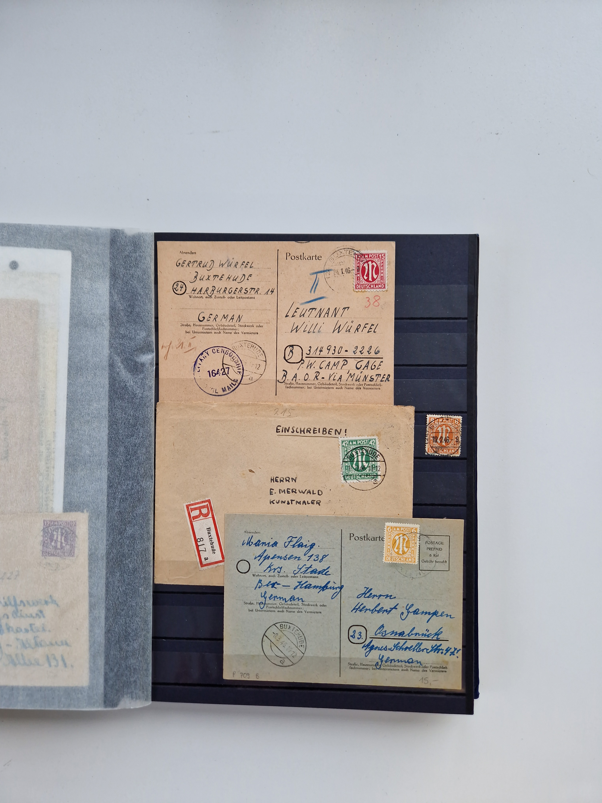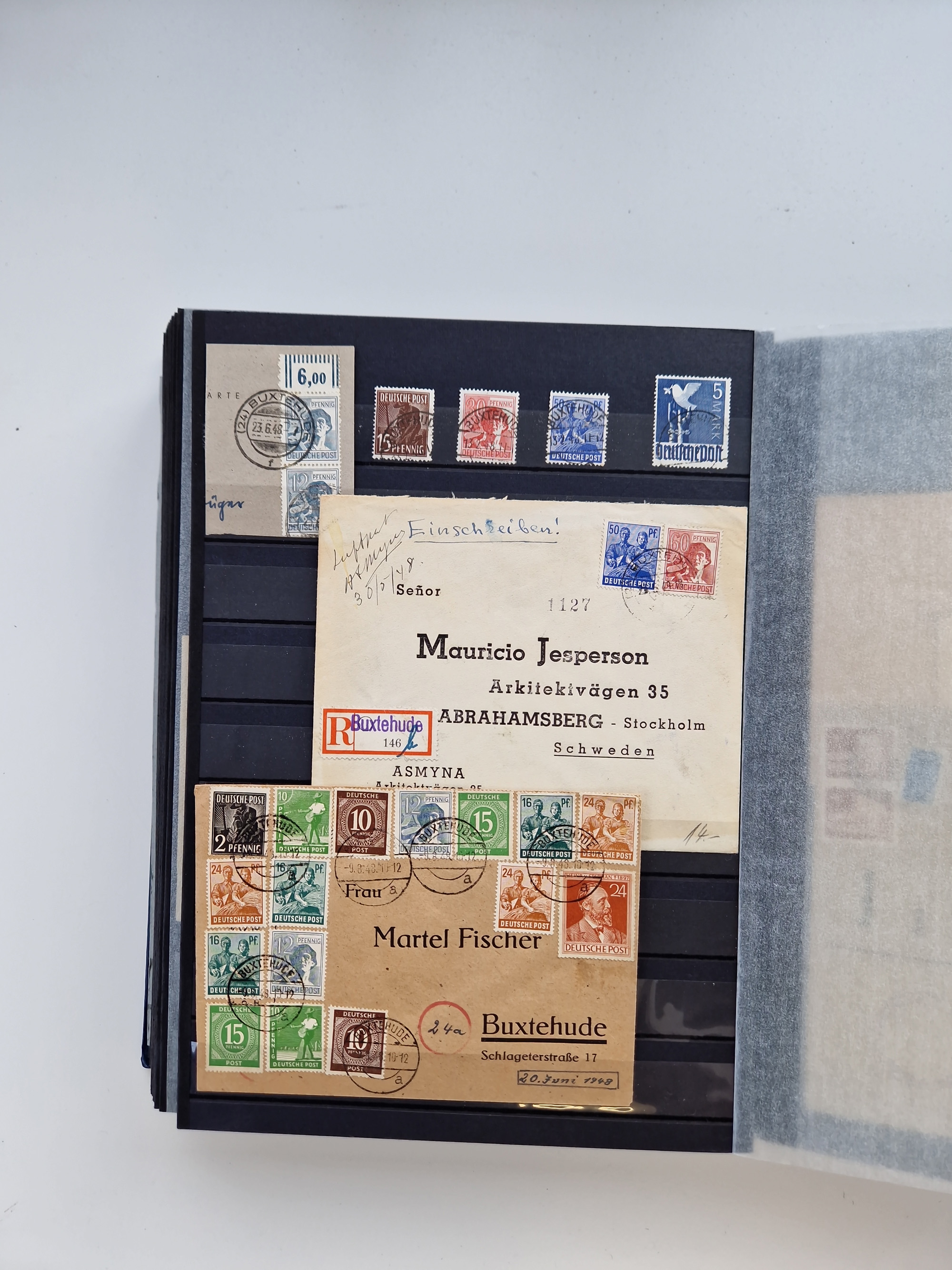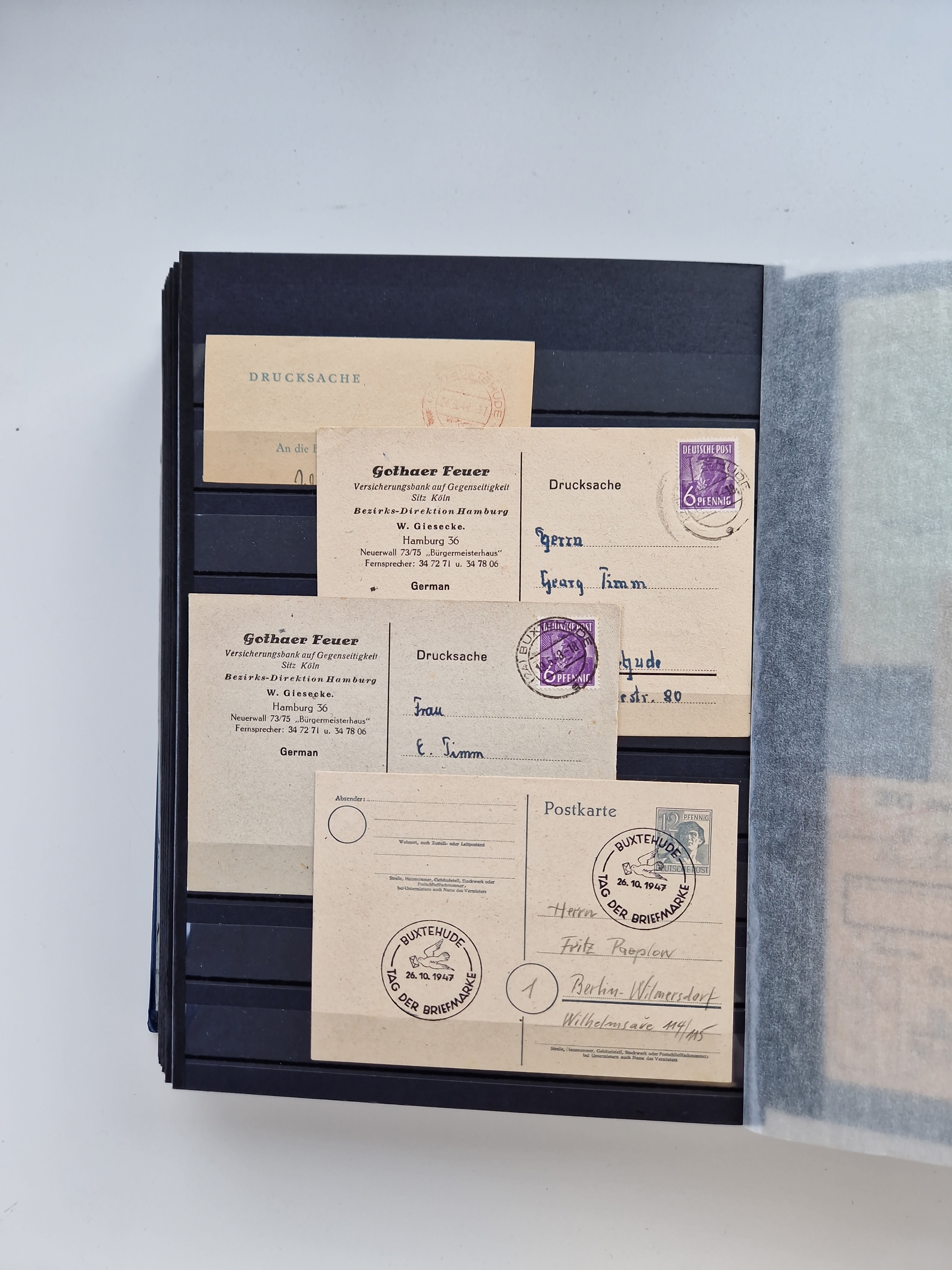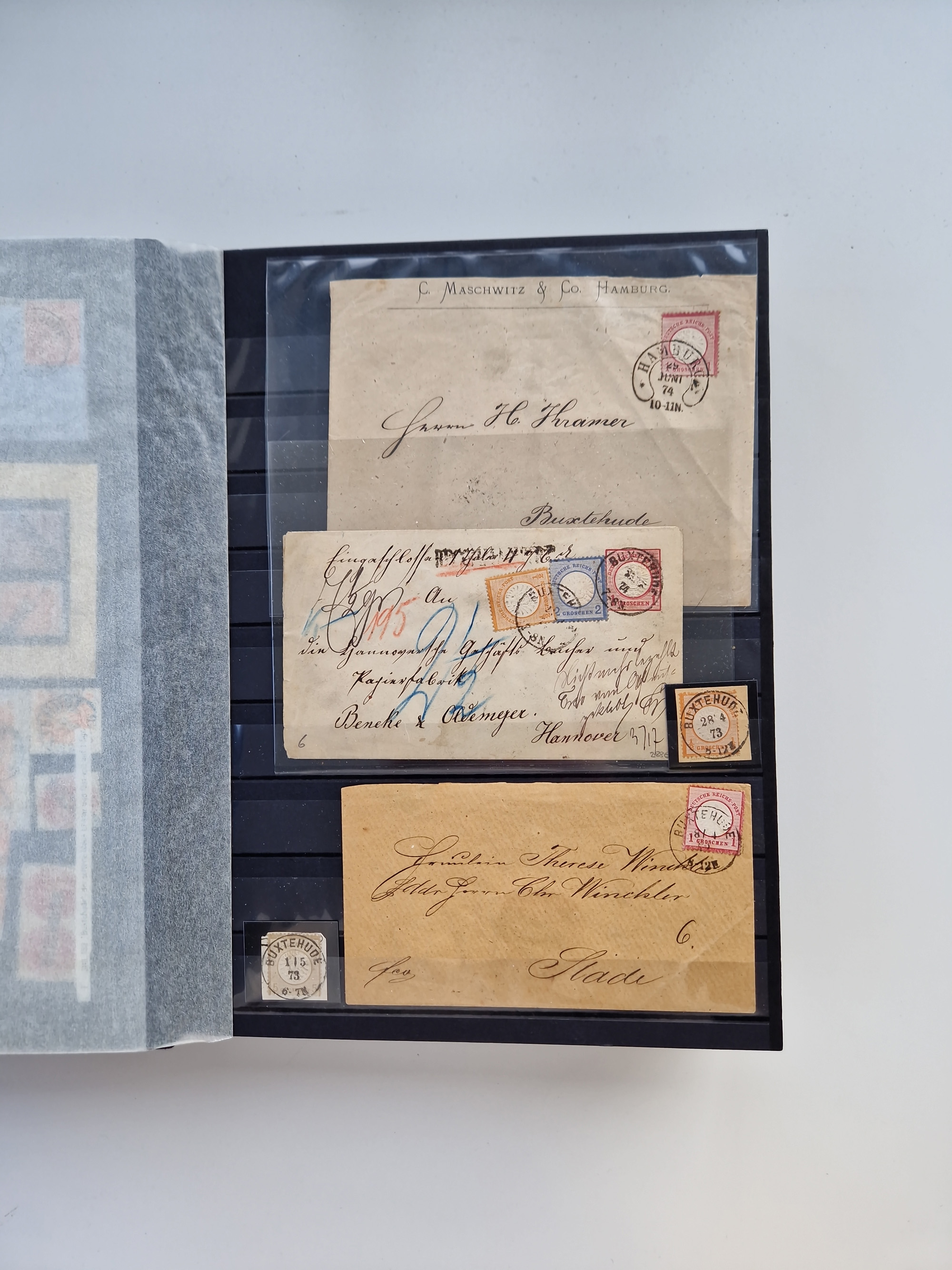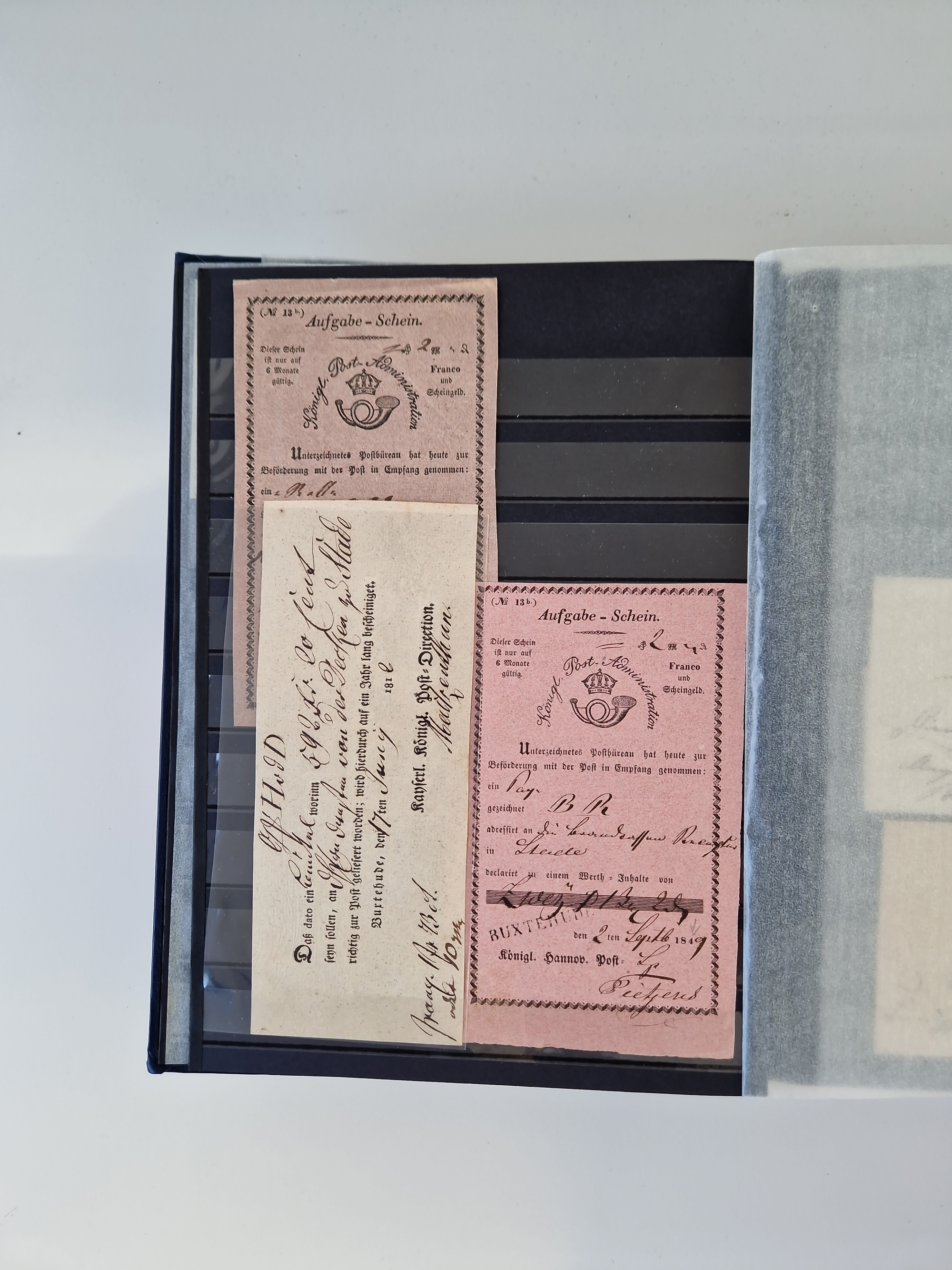 Buxtehude: 1787/2020, umfangreiche Sammlung ab Vorphila mit u.a. frühem Postschein von 1797, Botenbrief 1813 mit Dienstsiegel, Personenschein 1854 mit blauem L1 “BUXTEHUDE”, Hannover Mi.-Nr. 2a mit Vorausentwertung “(BUXT)EHUDE” und übergehendem handschriftlichem Vermerk “reicht nicht” auf Damenkuvert im Postverein (FA Berger BPP), Deutsches Reich ab Brustschild mit interessanten Frankaturen, Zonen-Ausgaben mit Paketkarten und Auslandsbriefe und Bund mit Anfangsausgaben und Luftpostbriefen sowie geschätzt weit über 1000 moderne Briefe inkl. sehr vieler Belege mit Freistempeln, in 16 Alben