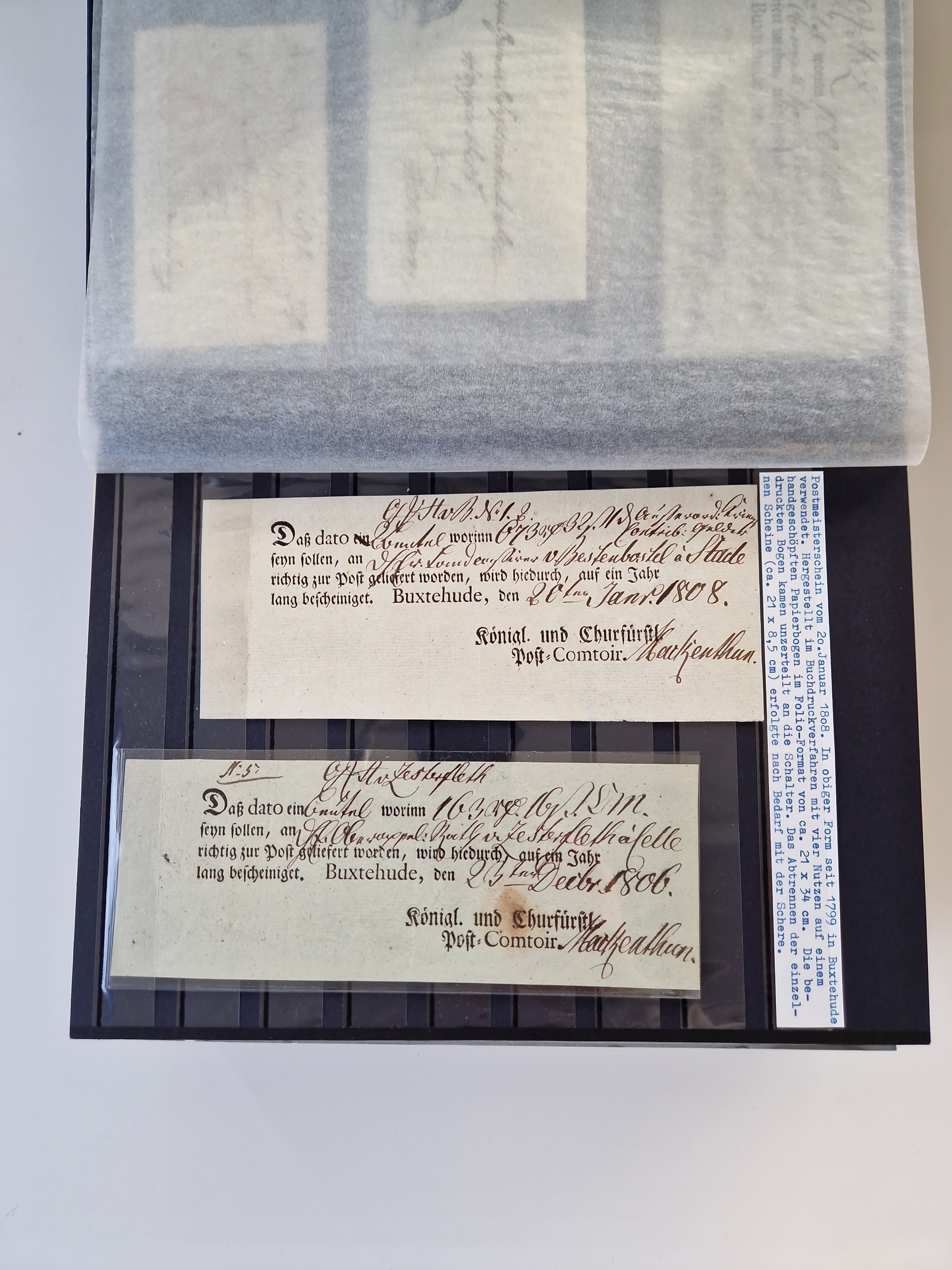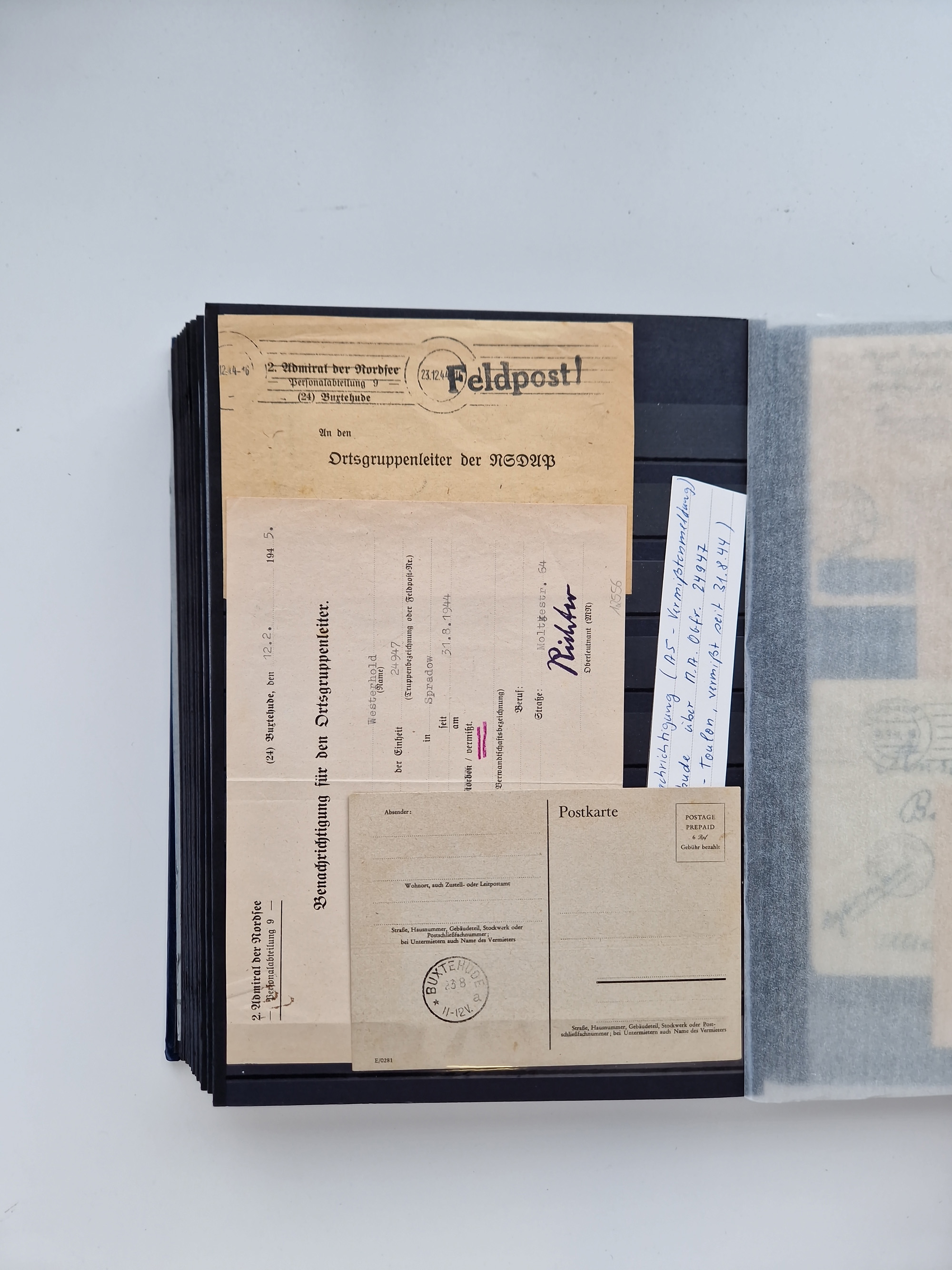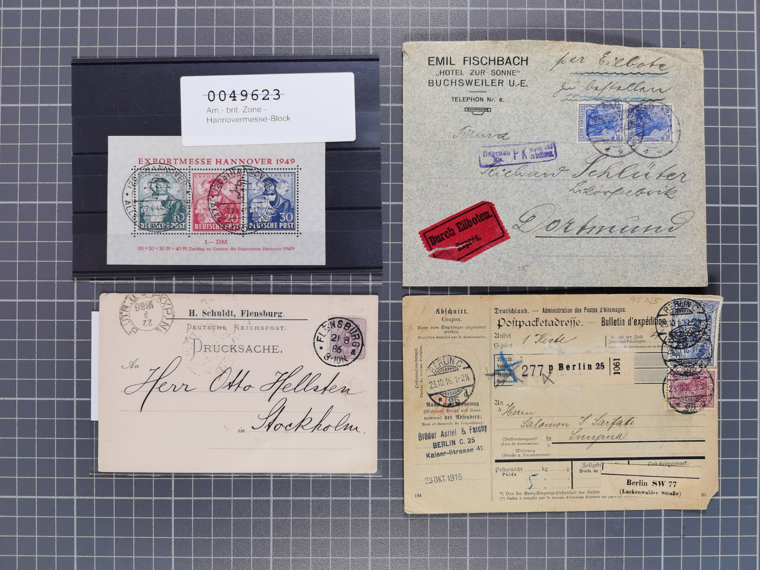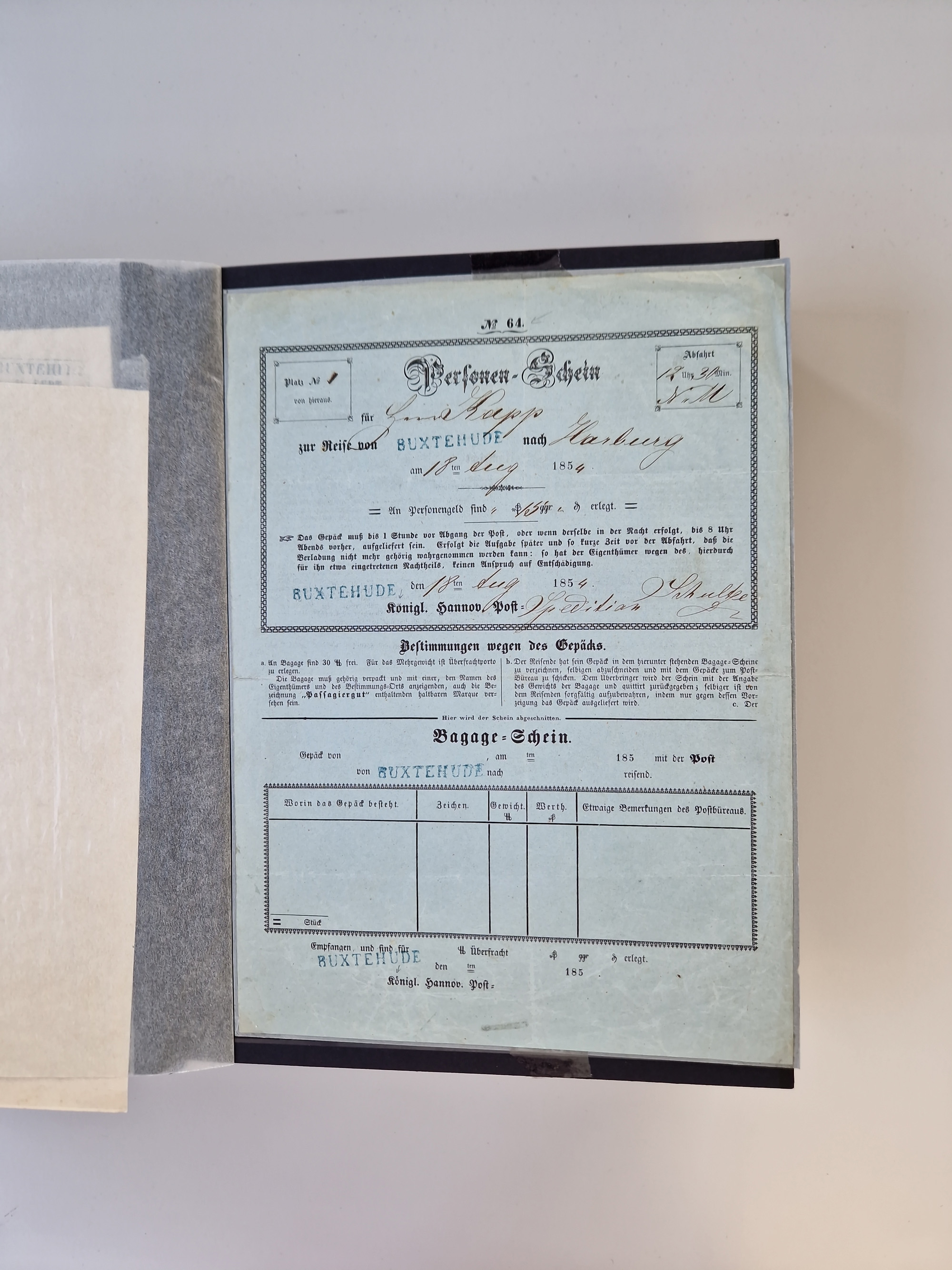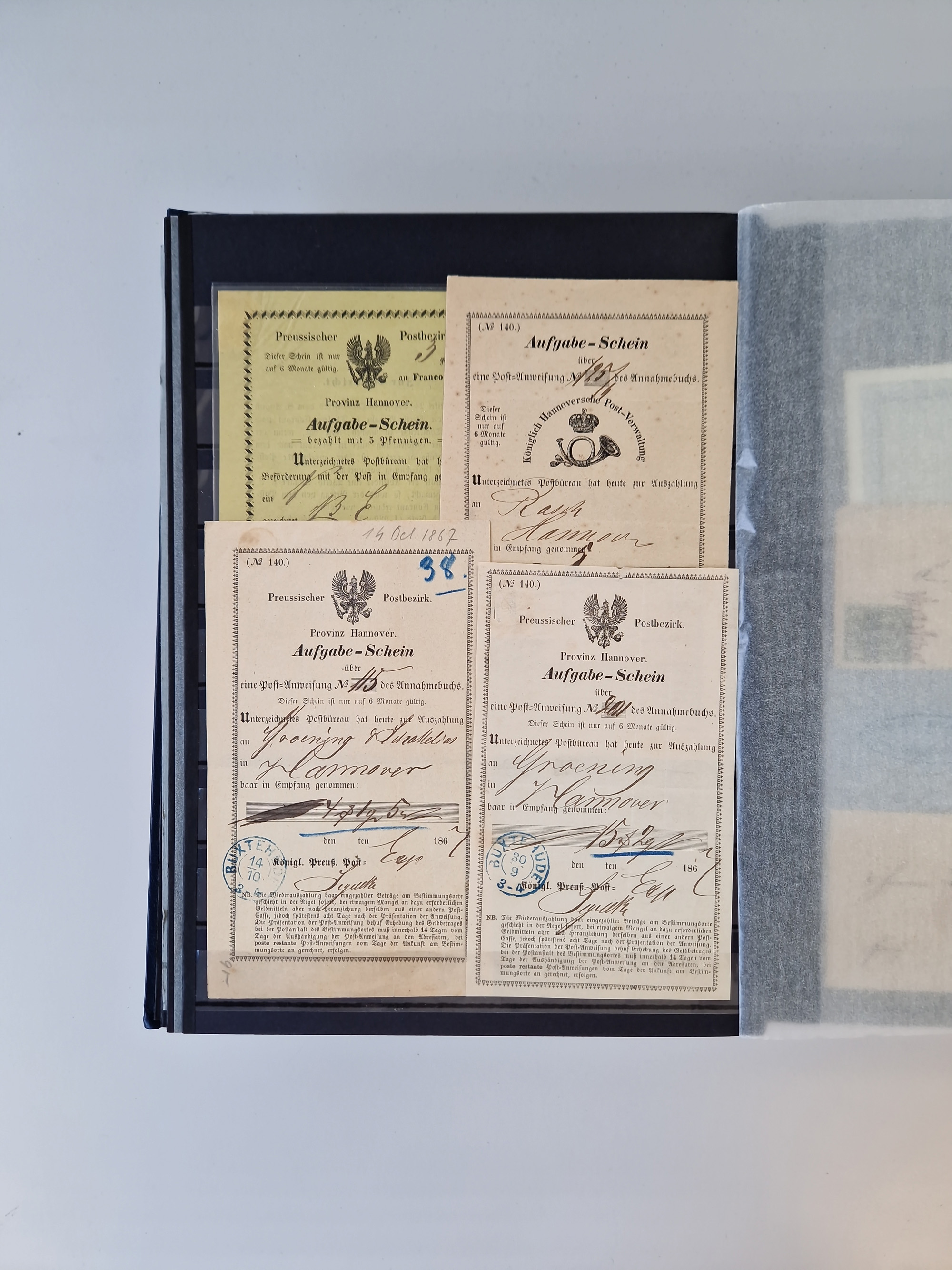 Buxtehude: 1787/2020, umfangreiche Sammlung ab Vorphila mit u.a. frühem Postschein von 1797, Botenbrief 1813 mit Dienstsiegel, Personenschein 1854 mit blauem L1 “BUXTEHUDE”, Hannover Mi.-Nr. 2a mit Vorausentwertung “(BUXT)EHUDE” und übergehendem handschriftlichem Vermerk “reicht nicht” auf Damenkuvert im Postverein (FA Berger BPP), Deutsches Reich ab Brustschild mit interessanten Frankaturen, Zonen-Ausgaben mit Paketkarten und Auslandsbriefe und Bund mit Anfangsausgaben und Luftpostbriefen sowie geschätzt weit über 1000 moderne Briefe inkl. sehr vieler Belege mit Freistempeln, in 16 Alben