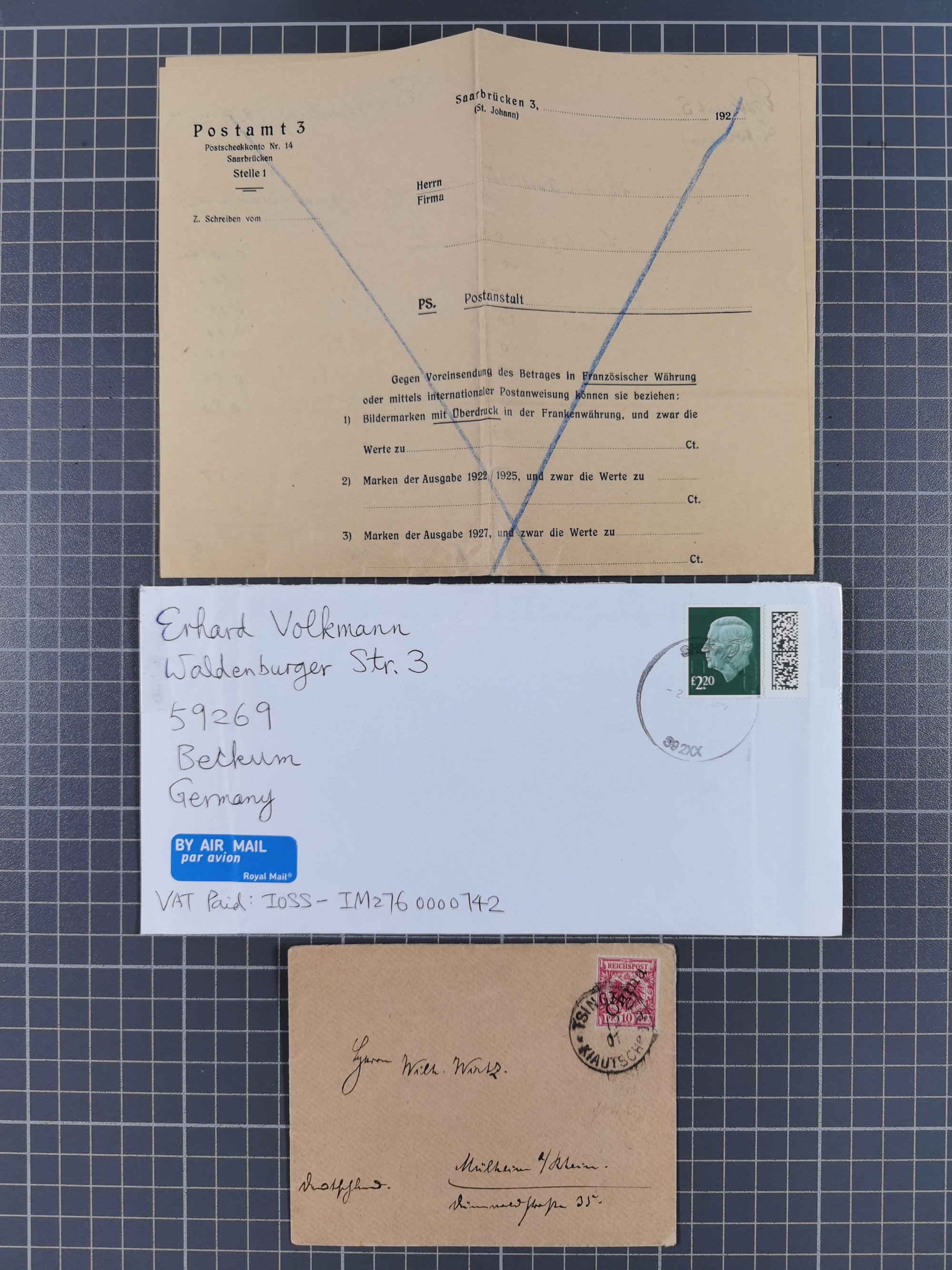 1912/61, Heimatsammlung Saarland mit Flugpost 1912, Erstflu Saarbrücken-Paris 1928, Firmenlochung, Feldpost, Einladungskarte zur Hochzeit 1911, sechs Originalfotographien zur Photoreportage ‘Trampus’ aus den 30er Jahren