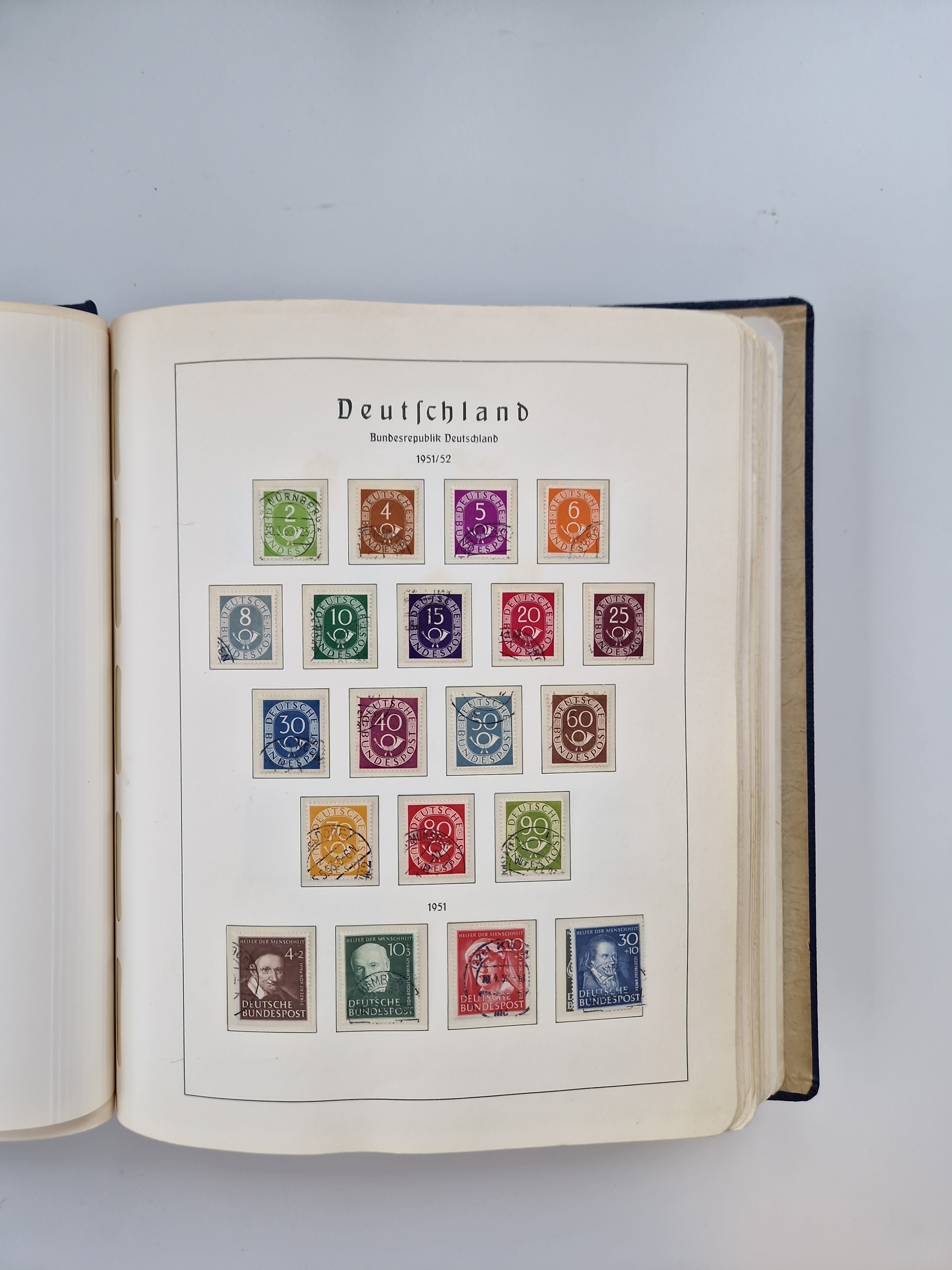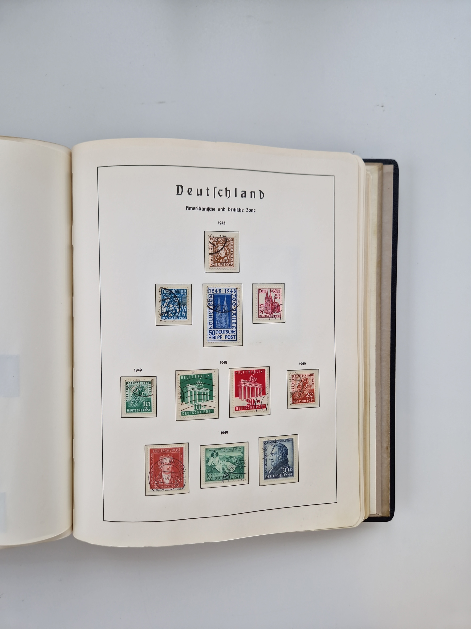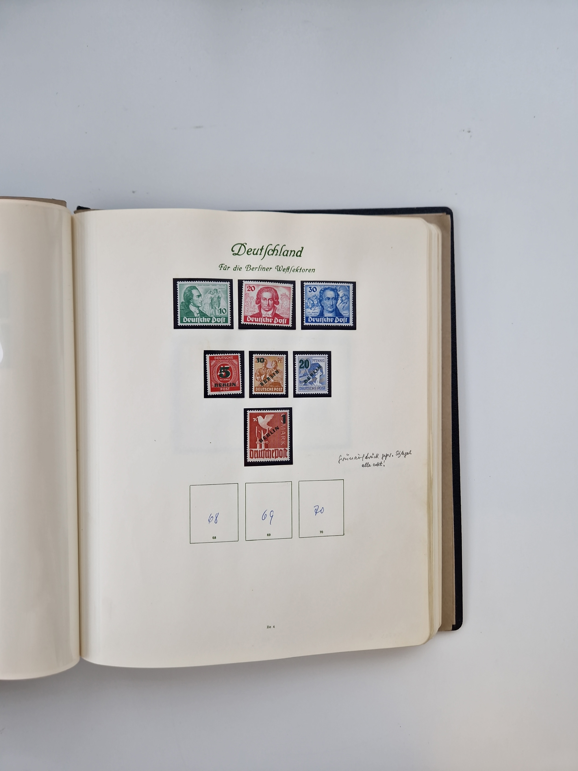1949/90, gestempelte Bund- und Berlin-Sammlung mit Berlin ab Rotaufdruck ohne Bl. 1 augenscheinlich komplett. Dabei u.a. Mi.-Nr. 33-34 sign. Schlegel BPP bzw. D. Schlegel BPP und Mi.-Nr. 68-70 (sign. Schlegel BPP), dazu fünf Jahrbücher