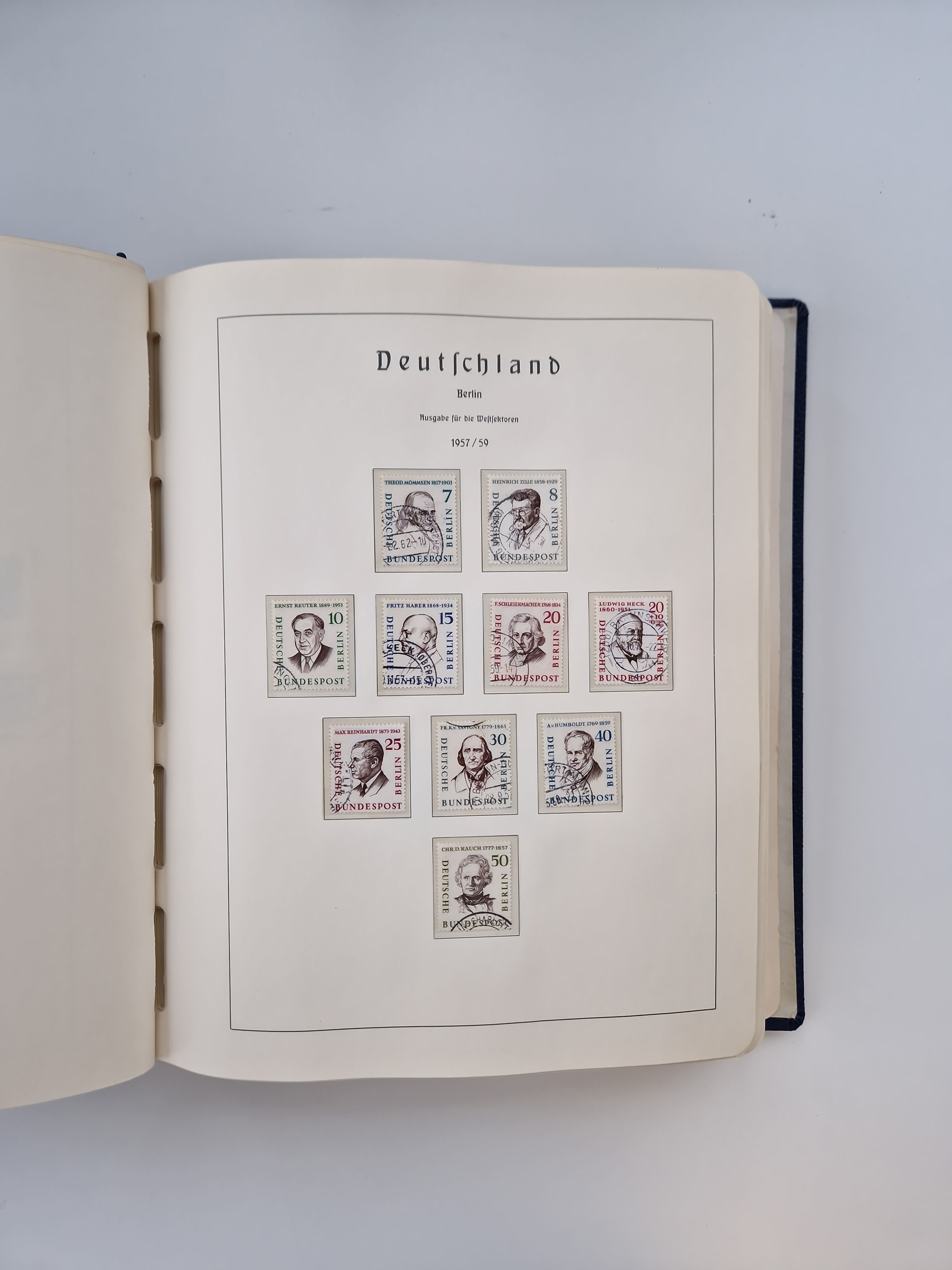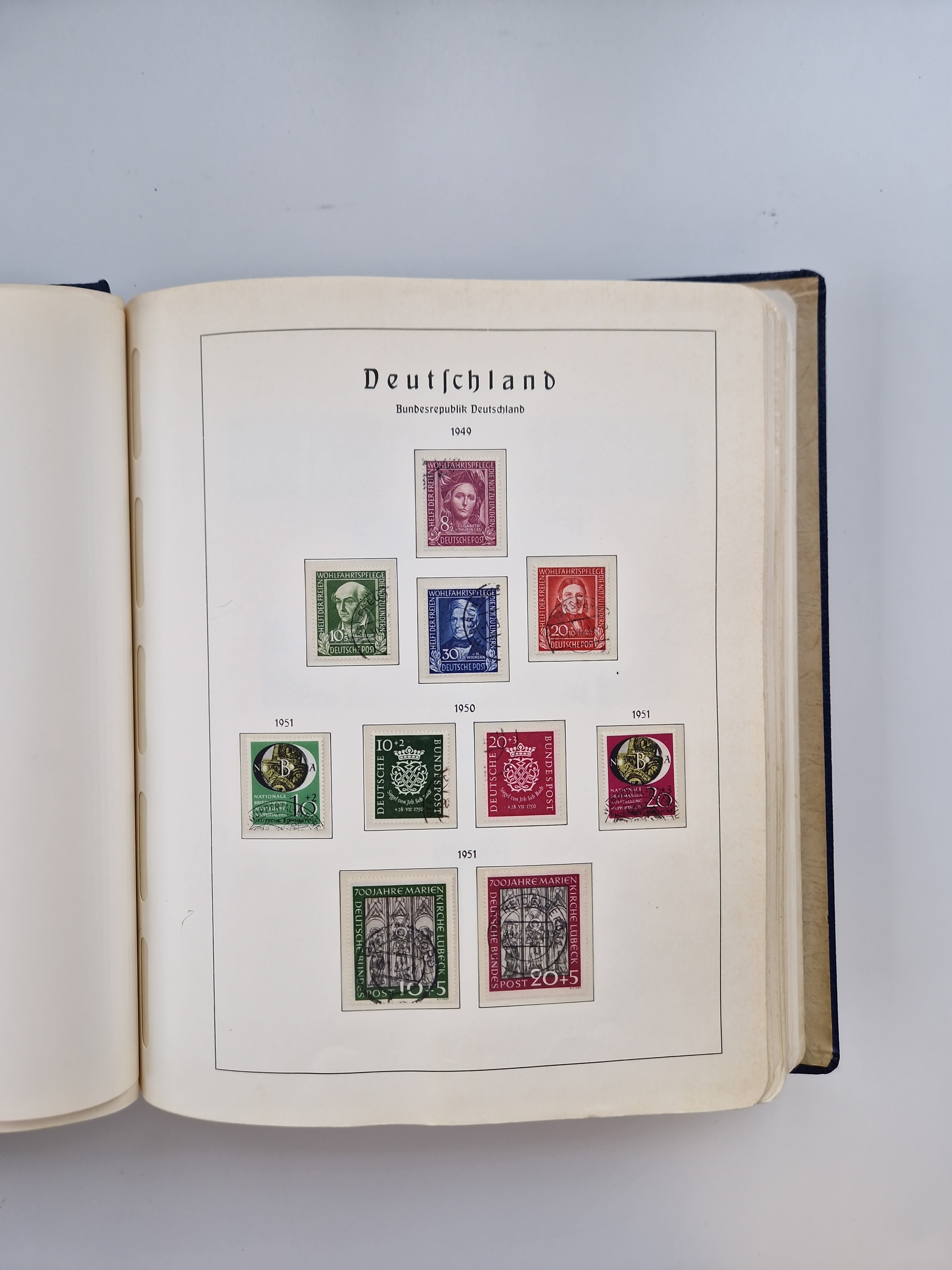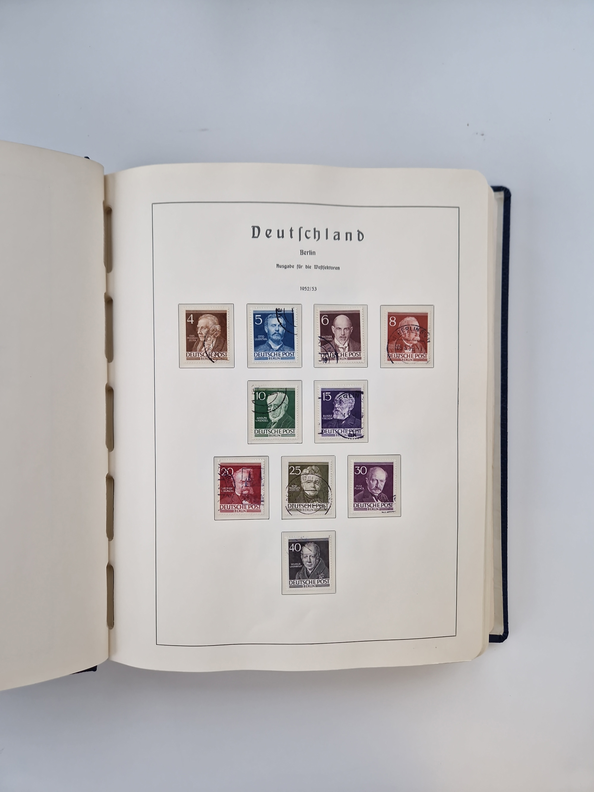 1949/90, gestempelte Bund- und Berlin-Sammlung mit Berlin ab Rotaufdruck ohne Bl. 1 augenscheinlich komplett. Dabei u.a. Mi.-Nr. 33-34 sign. Schlegel BPP bzw. D. Schlegel BPP und Mi.-Nr. 68-70 (sign. Schlegel BPP), dazu fünf Jahrbücher