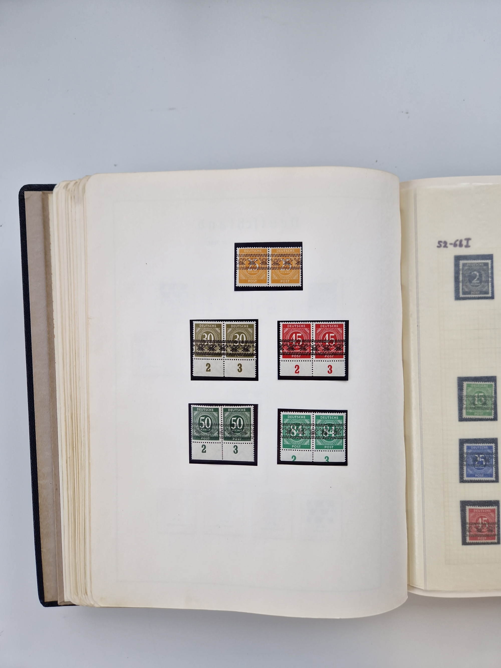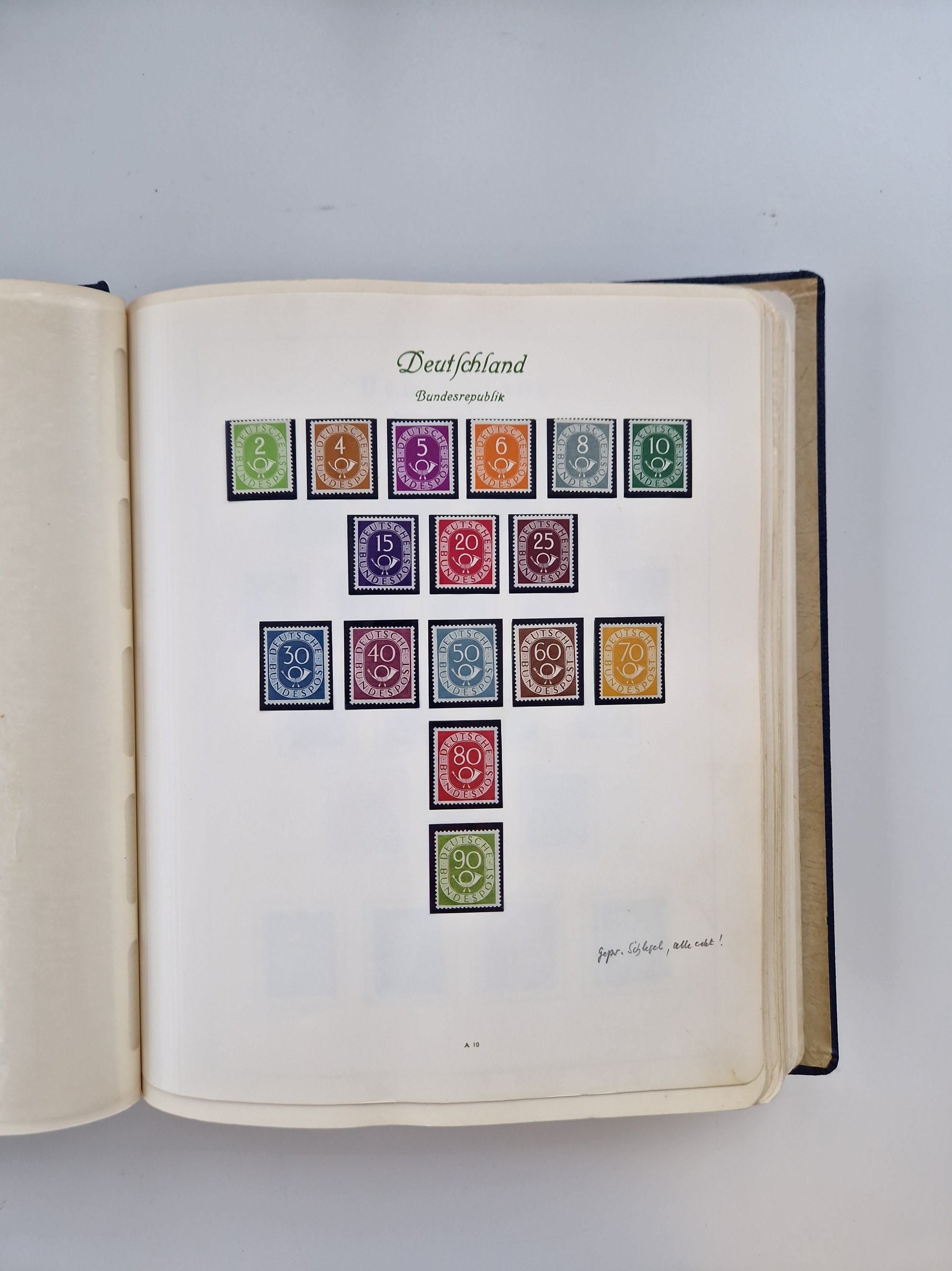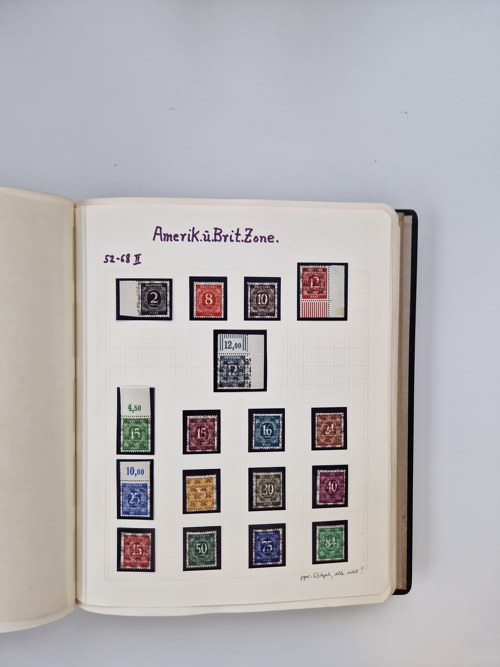1948/51, meist postfrischer und gestempelter Bestand, angefangen ab Posthornsatz kpl. postfrisch sign. bzw. 70-90 Pfg. unsigniert mit Kurzbefund/Fotoattest Schlegel BPP, ferner 50 Pfg. (1) und 60 (2) doppelt, sowie Französische Zone mit Baden Bl. 1B gestempelt, 1A (2) und 1B postfrisch, Rheinland-Pfalz mit u.a. Mi.-Nr. 36 gestempelt sign. Schlegel BPP, 42-45A Eckrand postfrisch, Bl. 1 (2), sowie unzählige ungezähnte Werte, teils mehrfach, dabei u.a. 2U im Paar (KB D. Schlegel BPP), 7PU sign., 1yL im Paar gestempelt (KB Wehner BPP), etc., im Steckbuch