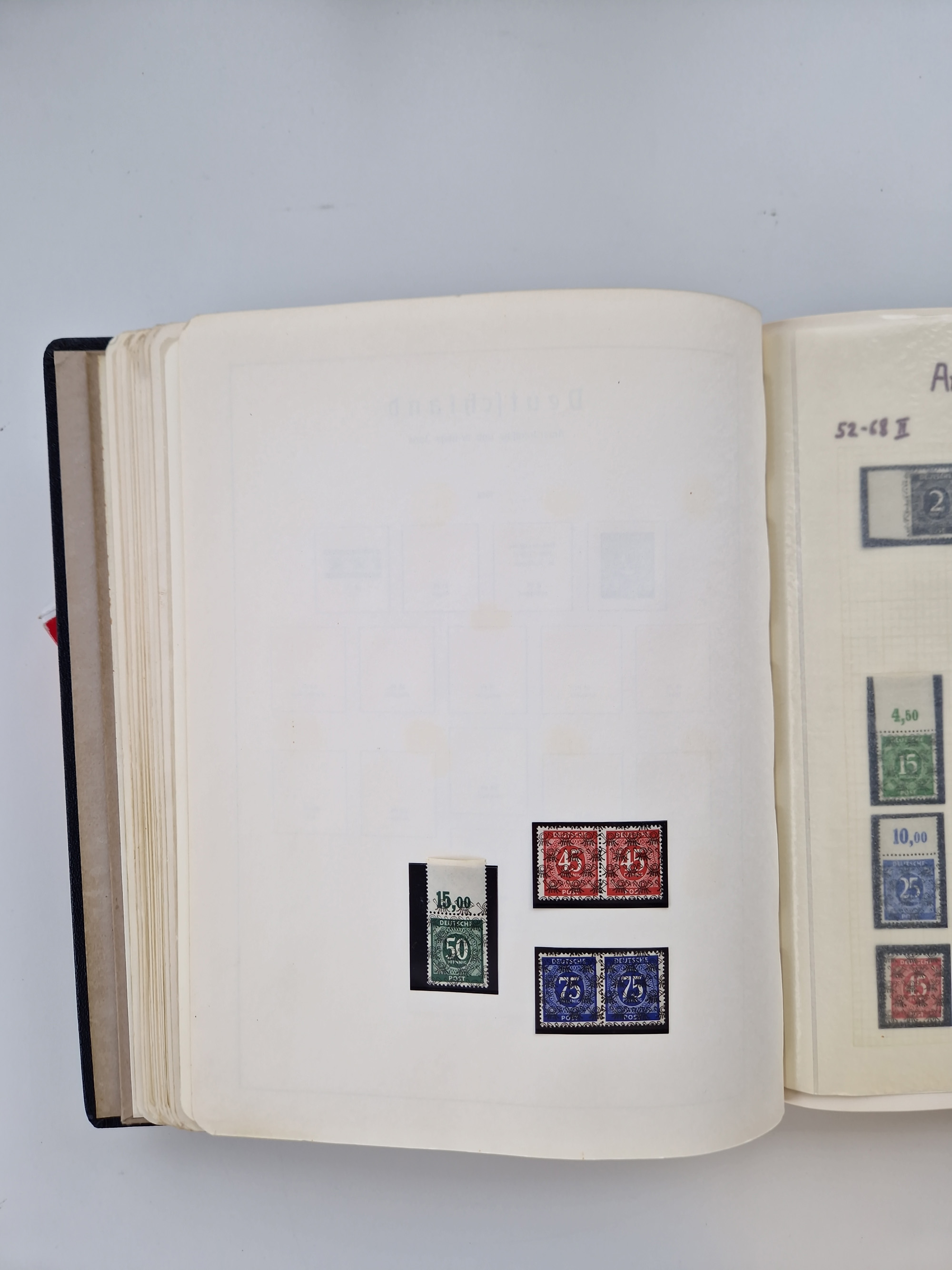 1945/53, ungebrauchte und postfrische Sammlung Zonen mit besseren und kpl. Ausgaben. Dabei u.a. Frz. Zone in den Hauptnummern bis auf einen Block postfrisch kpl. und Bizone mit Oberrandstück Mi.- 97eg postfrisch. Dazu einige postfrische Anfangsausgaben DDR mit u.a. Mi.-Nr. 261-70, 327-31, Bl.7 und Block 8-9A/B, sauber in zwei Vordruckalben