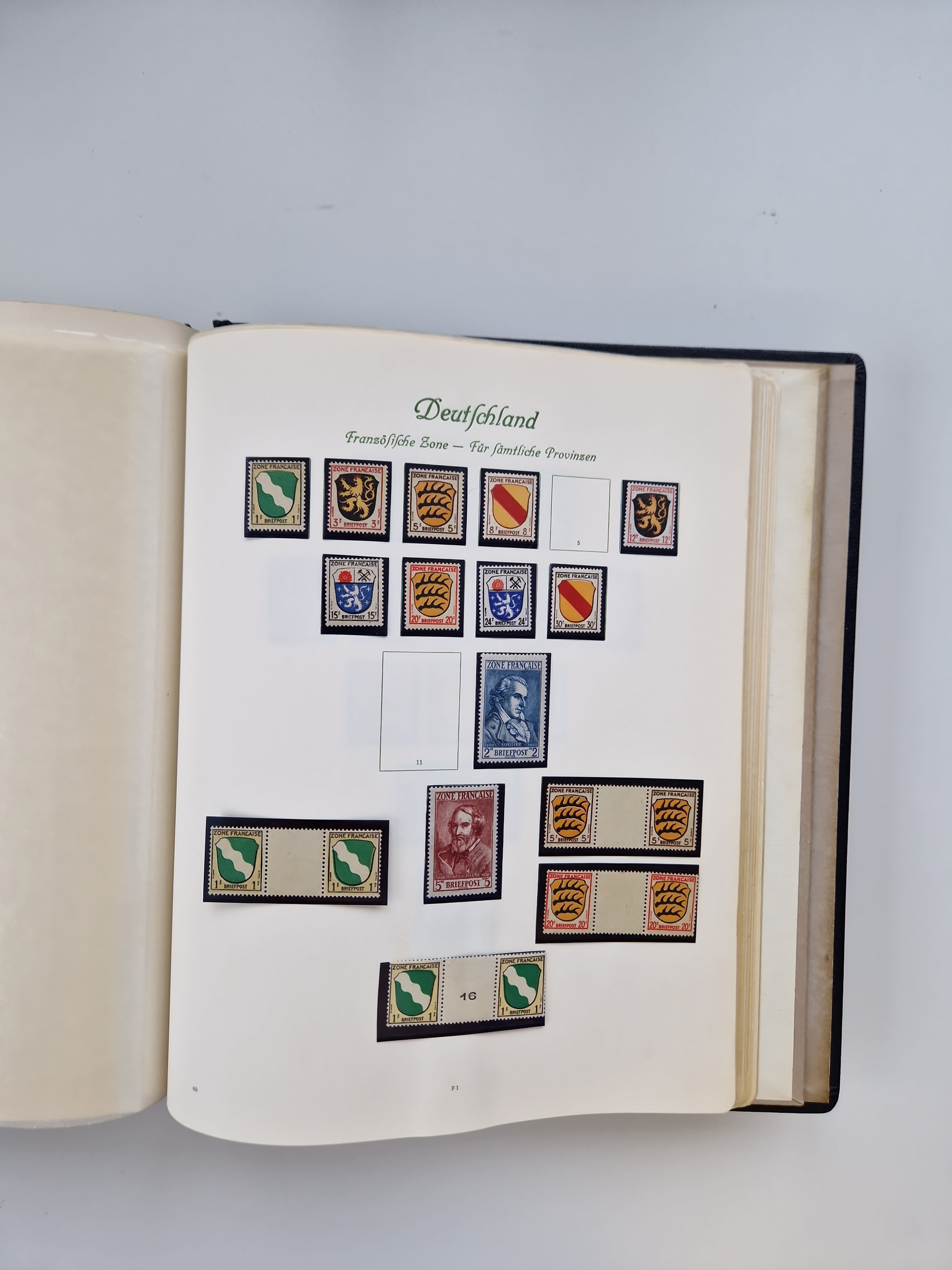 1945/49, in den Hauptnummern augenscheinlich bis auf Potschta (verlaufene Gummierung) postfrische komplette Sammlungen SBZ inkl. Blocks mit Bl. 1t und Französische Zone, inkl. Blocks mit Baden Mi.-Nr. 46II postfrisch sign. Schlegel BPP, dort einiges sign. Schlegel BPP, gute Erhaltung, im Vordruckalbum