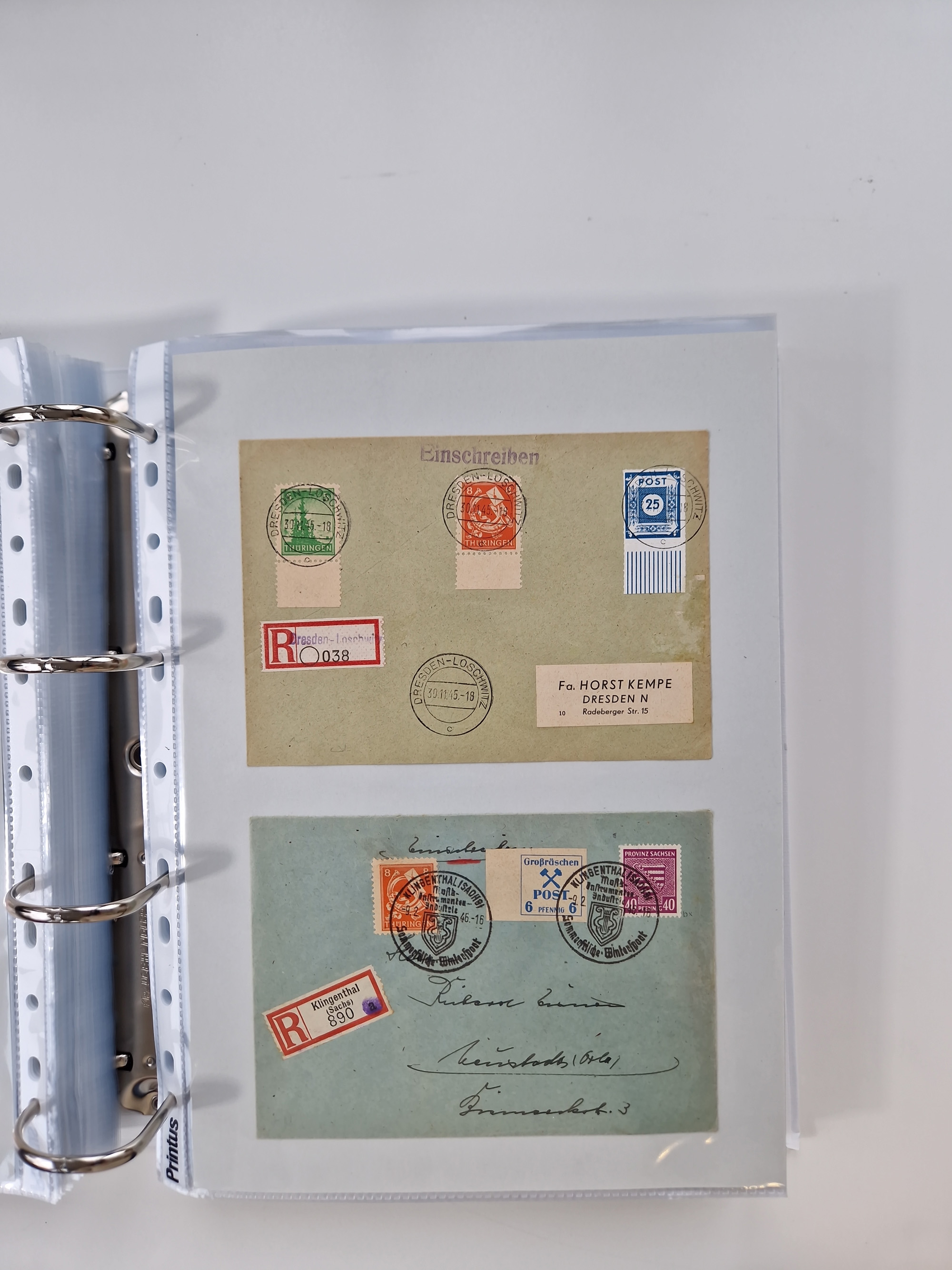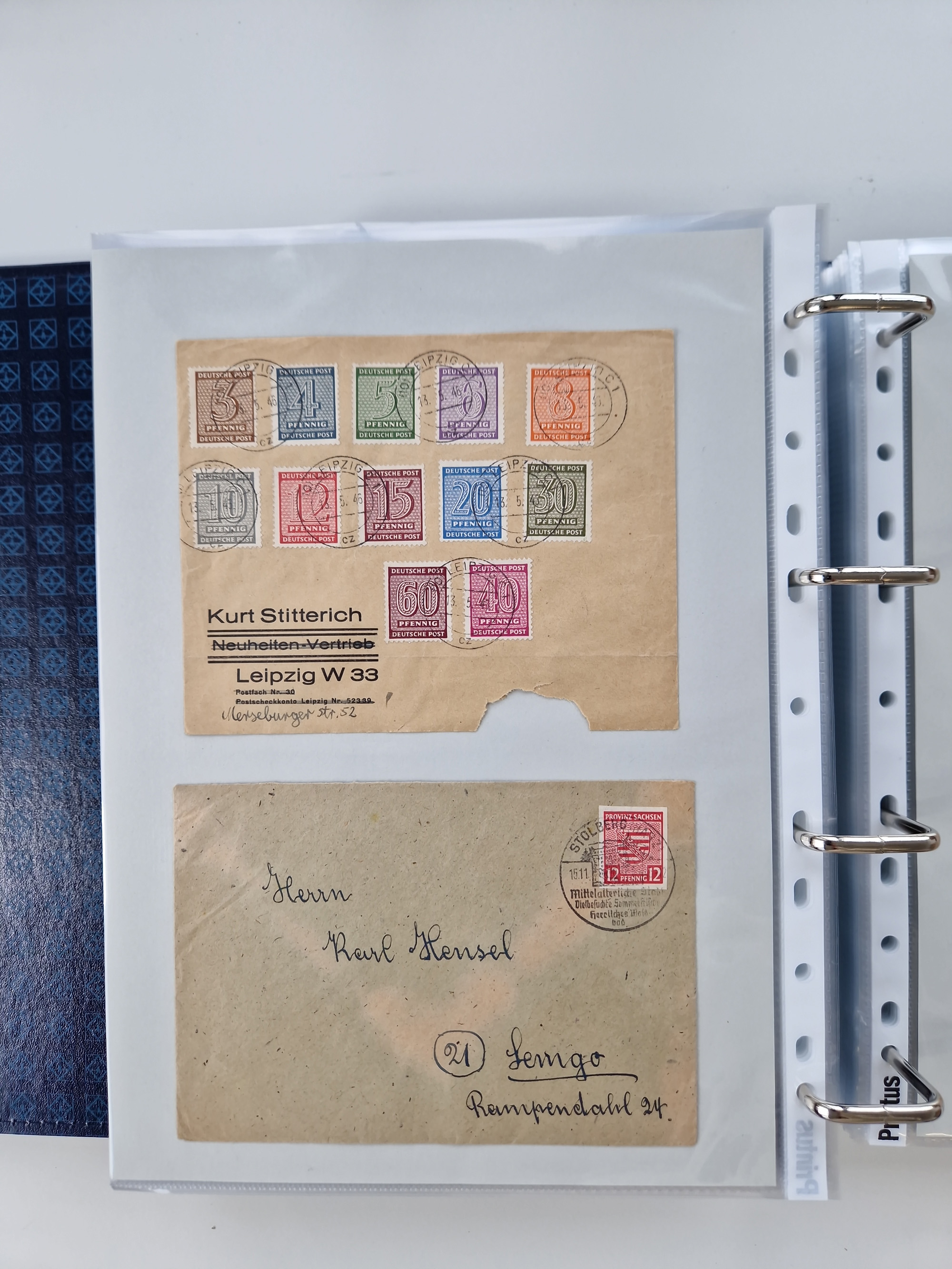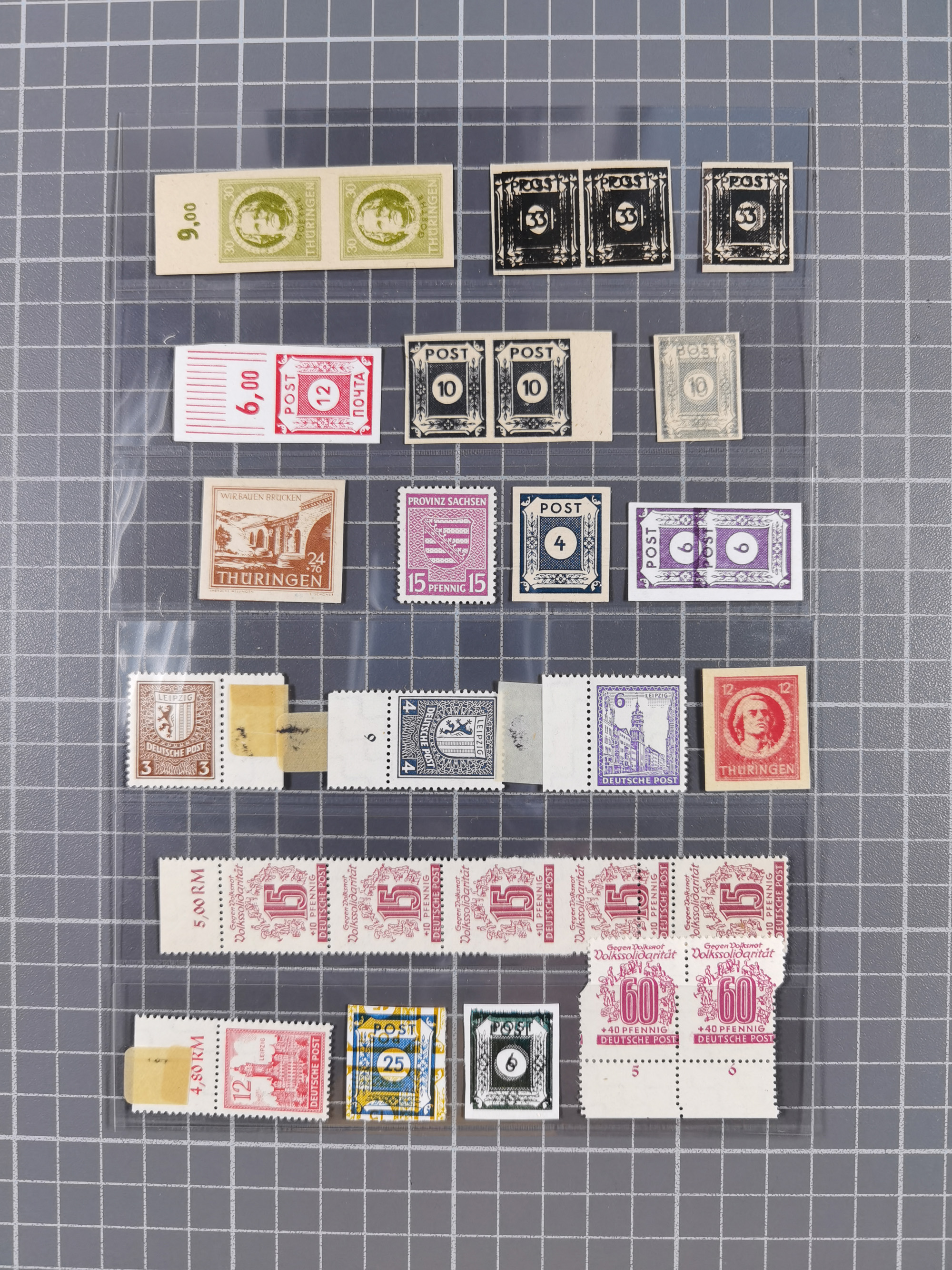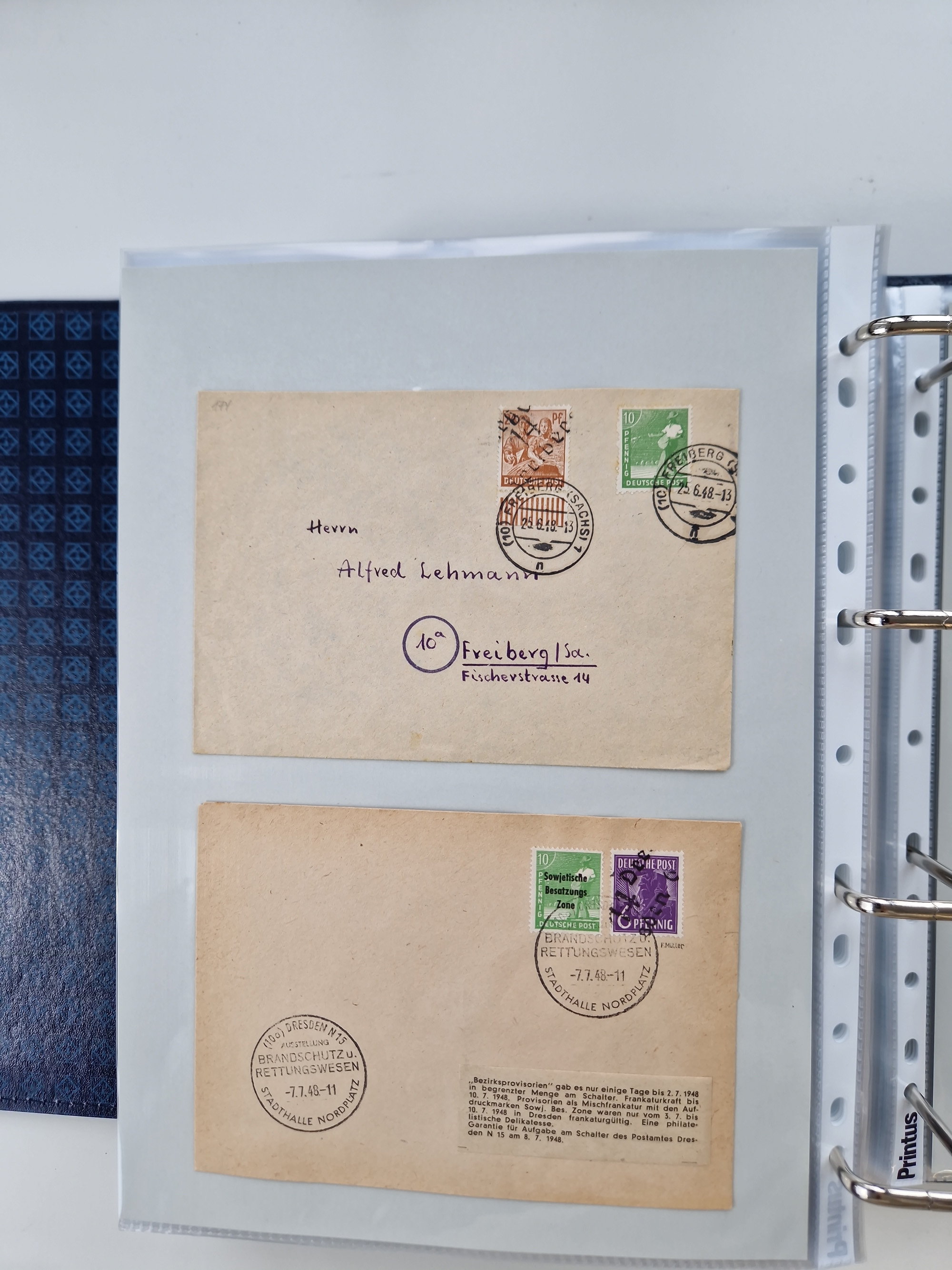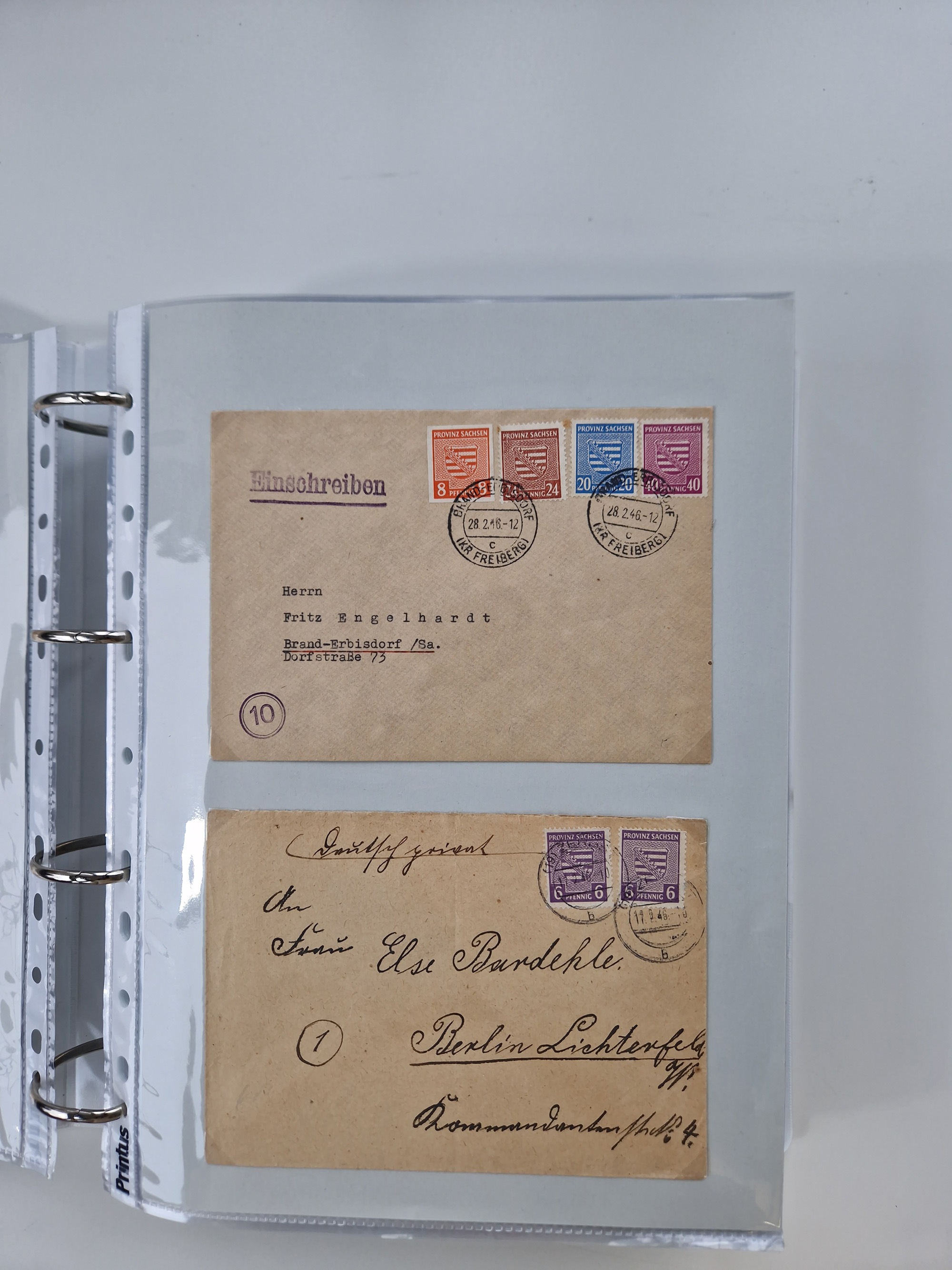 1945/48, ungebrauchte/postfrische und gestempelte Sammlungspartie, dabei Marken und Blocks, aber auch immer wieder bessere Briefe, dabei u.a. Fredersdorf Mi.-Nr. 53 u. 69 auf Karte, 39 Briefe mit Sächs. Schwärzungen, Ost-Sachsen Durchstiche auf Brief, ein Brief mit Notstempel, über 40 Briefe mit Bezirkshandstempeln sowie eine Paketkarte mit Mi.-Nr. 177VIII und 180VIII (6), etc., in vier Alben