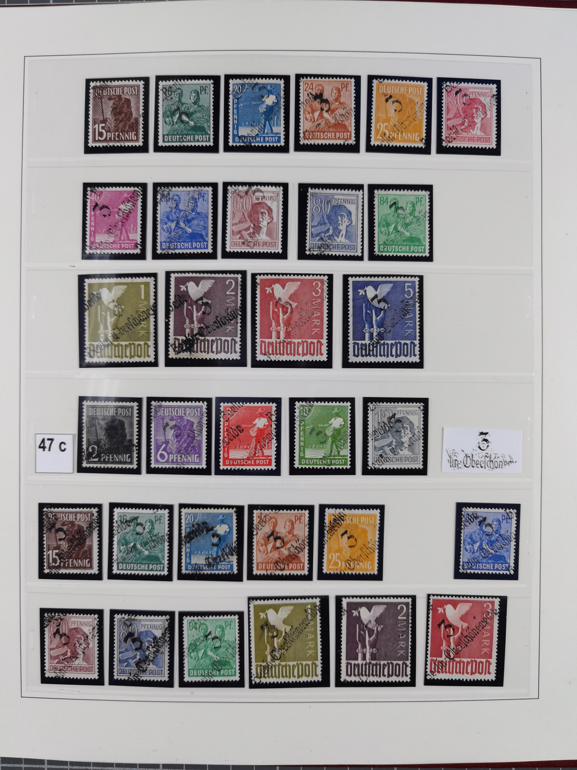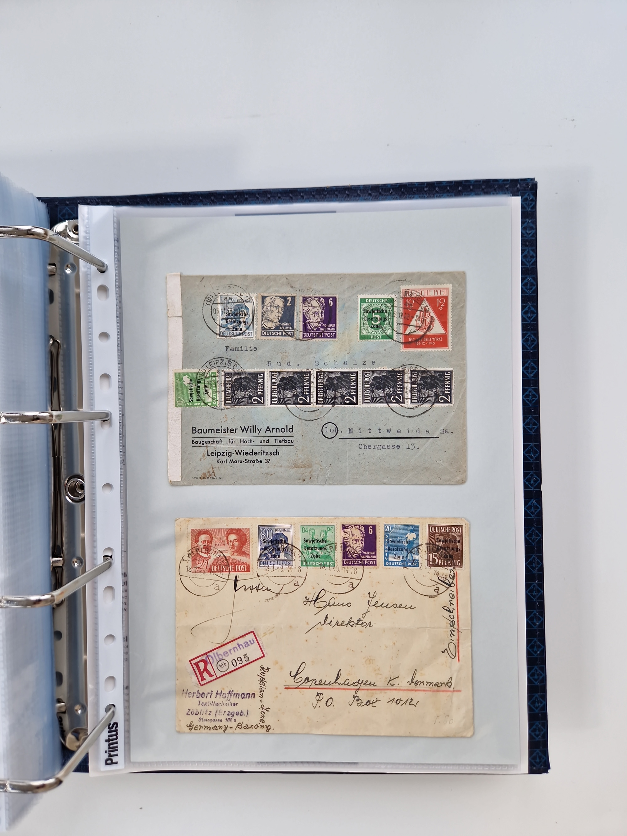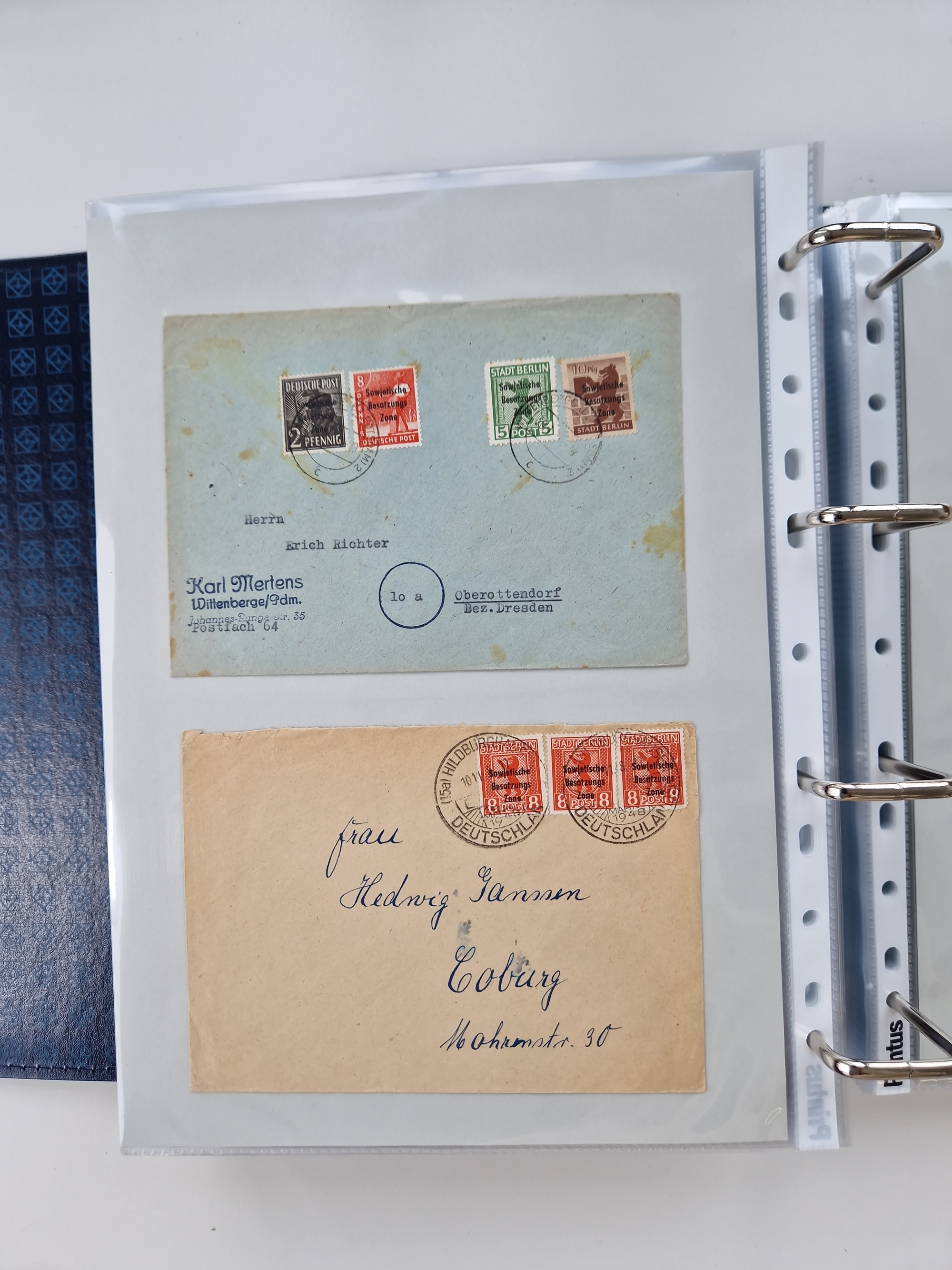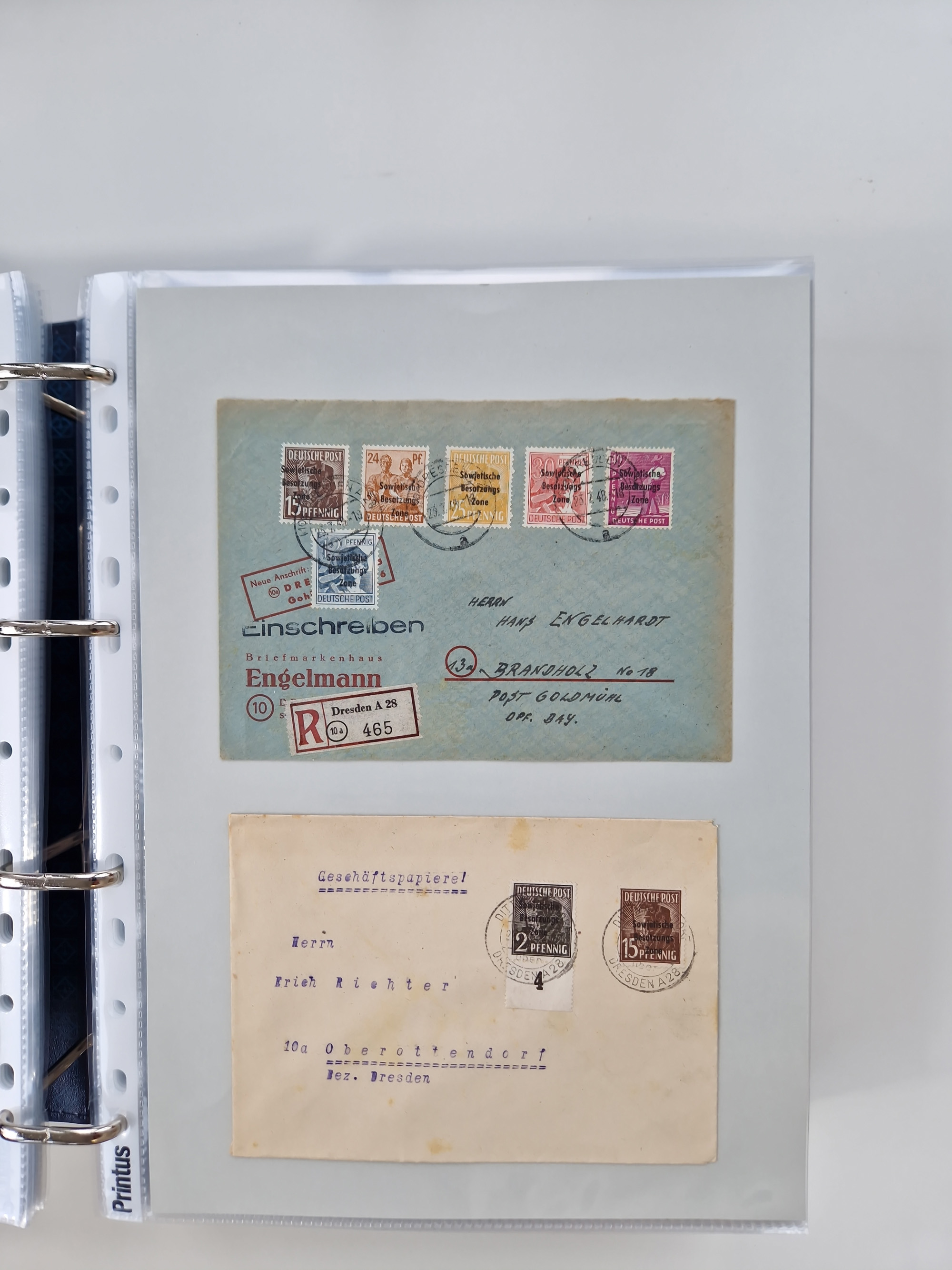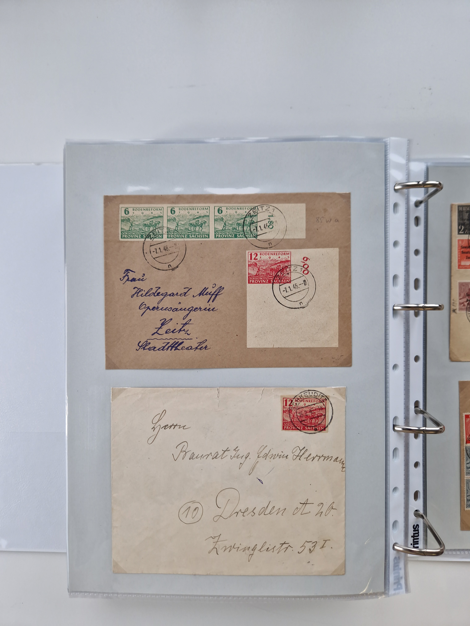 1945/48, ungebrauchte/postfrische und gestempelte Sammlungspartie, dabei Marken und Blocks, aber auch immer wieder bessere Briefe, dabei u.a. Fredersdorf Mi.-Nr. 53 u. 69 auf Karte, 39 Briefe mit Sächs. Schwärzungen, Ost-Sachsen Durchstiche auf Brief, ein Brief mit Notstempel, über 40 Briefe mit Bezirkshandstempeln sowie eine Paketkarte mit Mi.-Nr. 177VIII und 180VIII (6), etc., in vier Alben