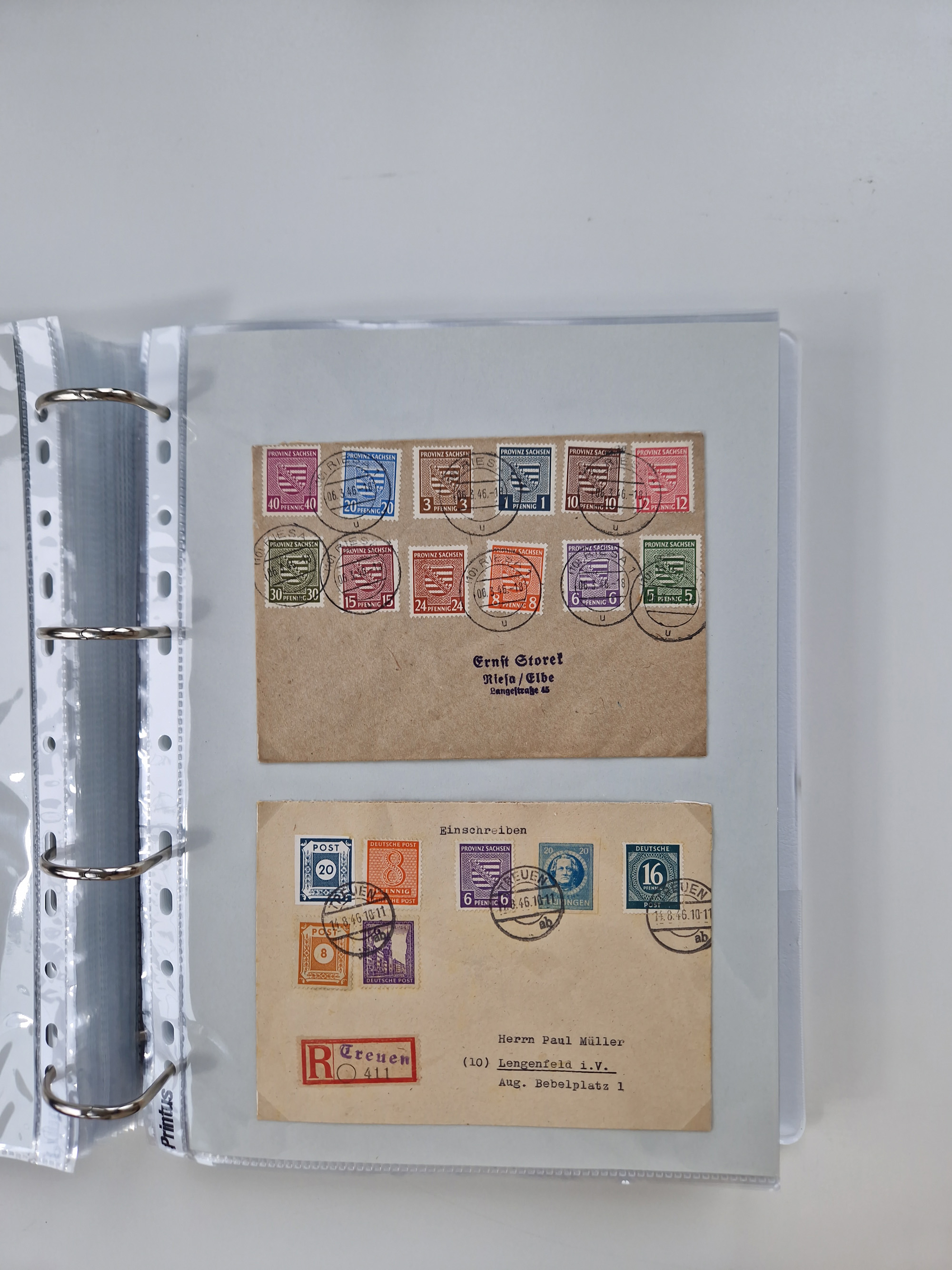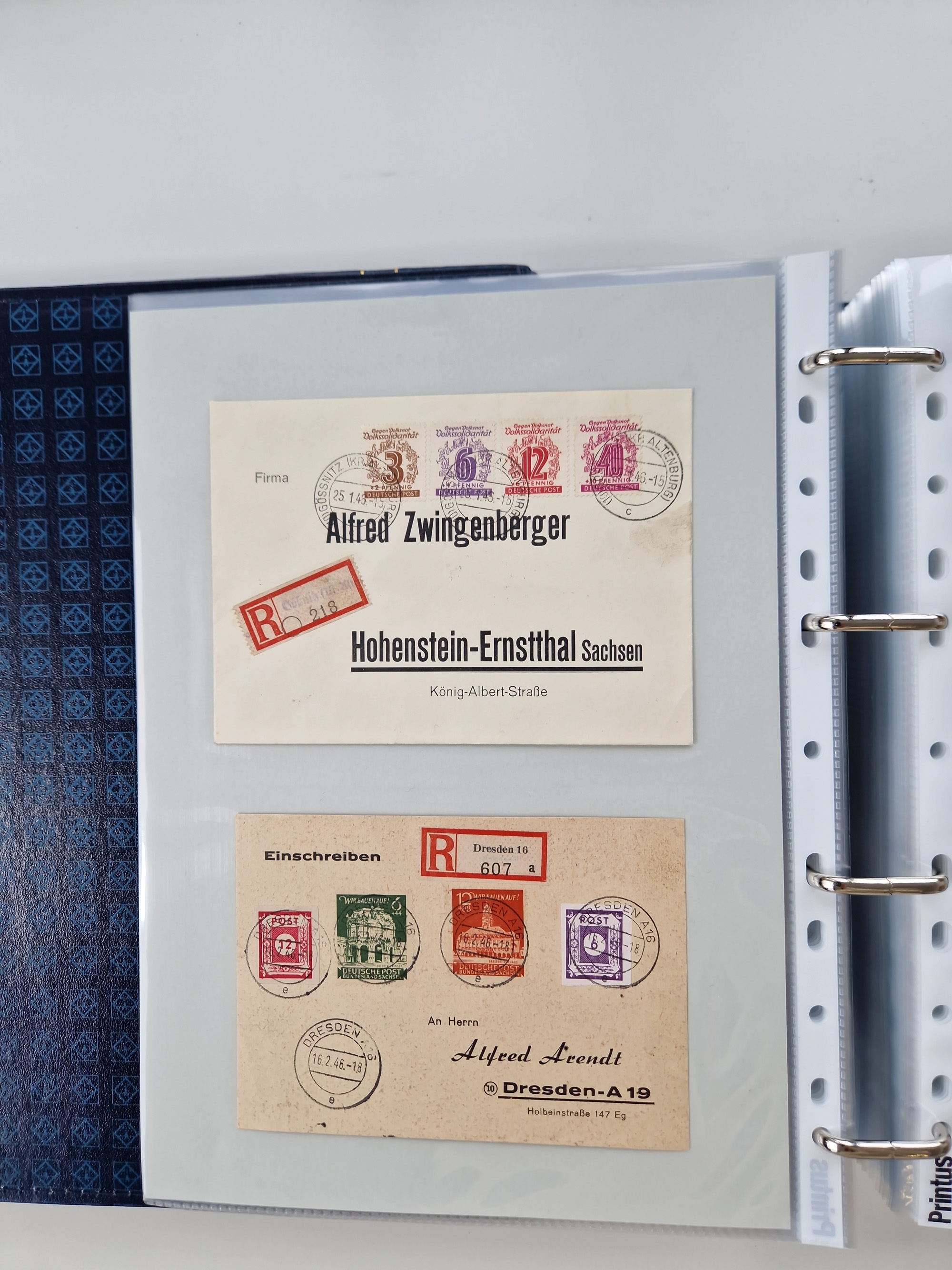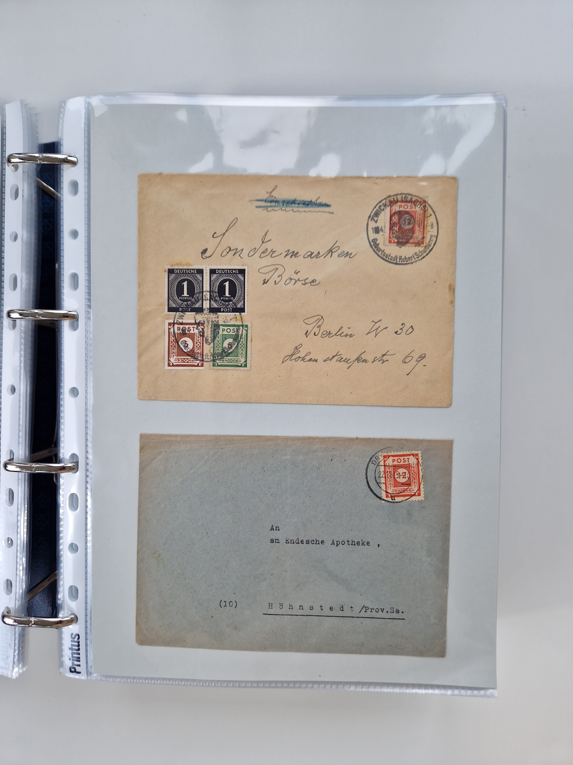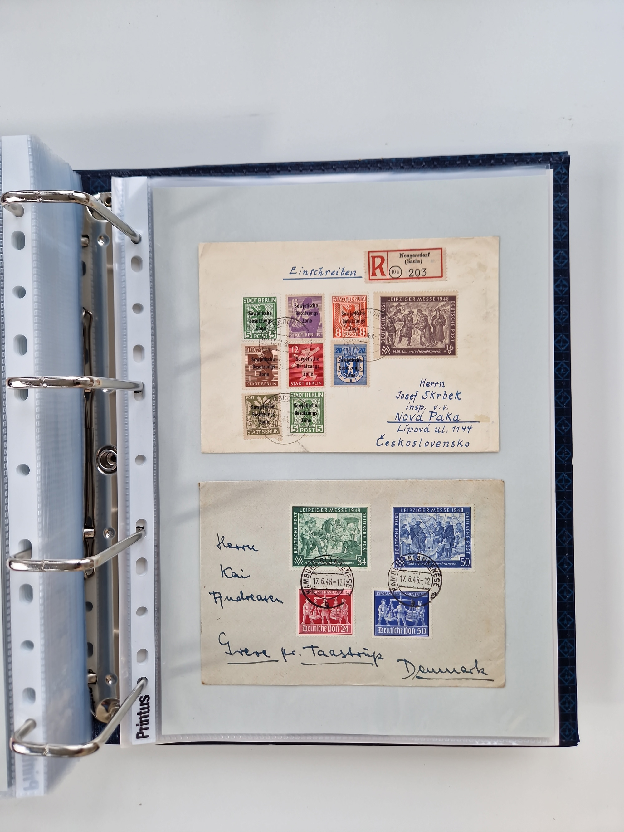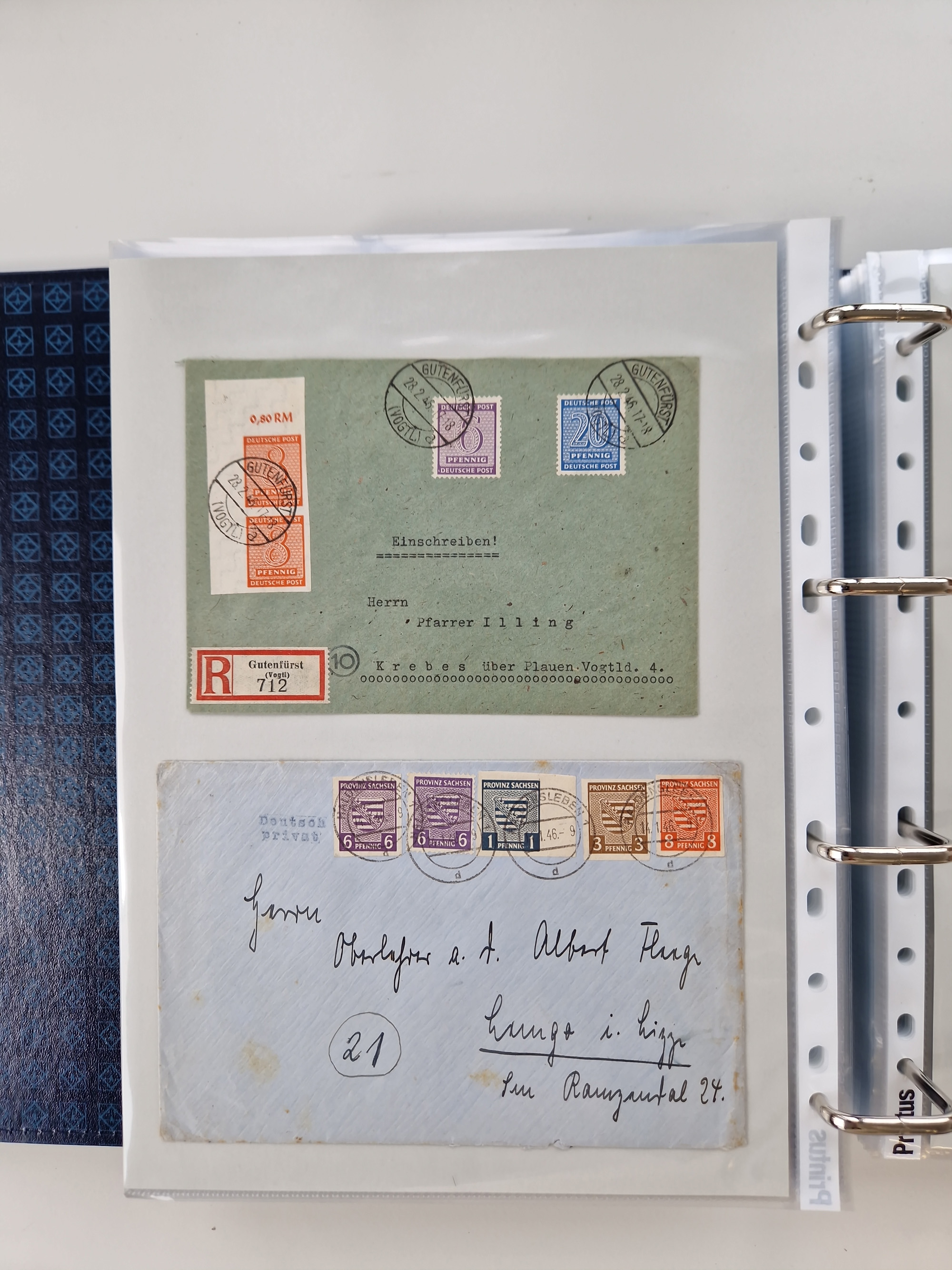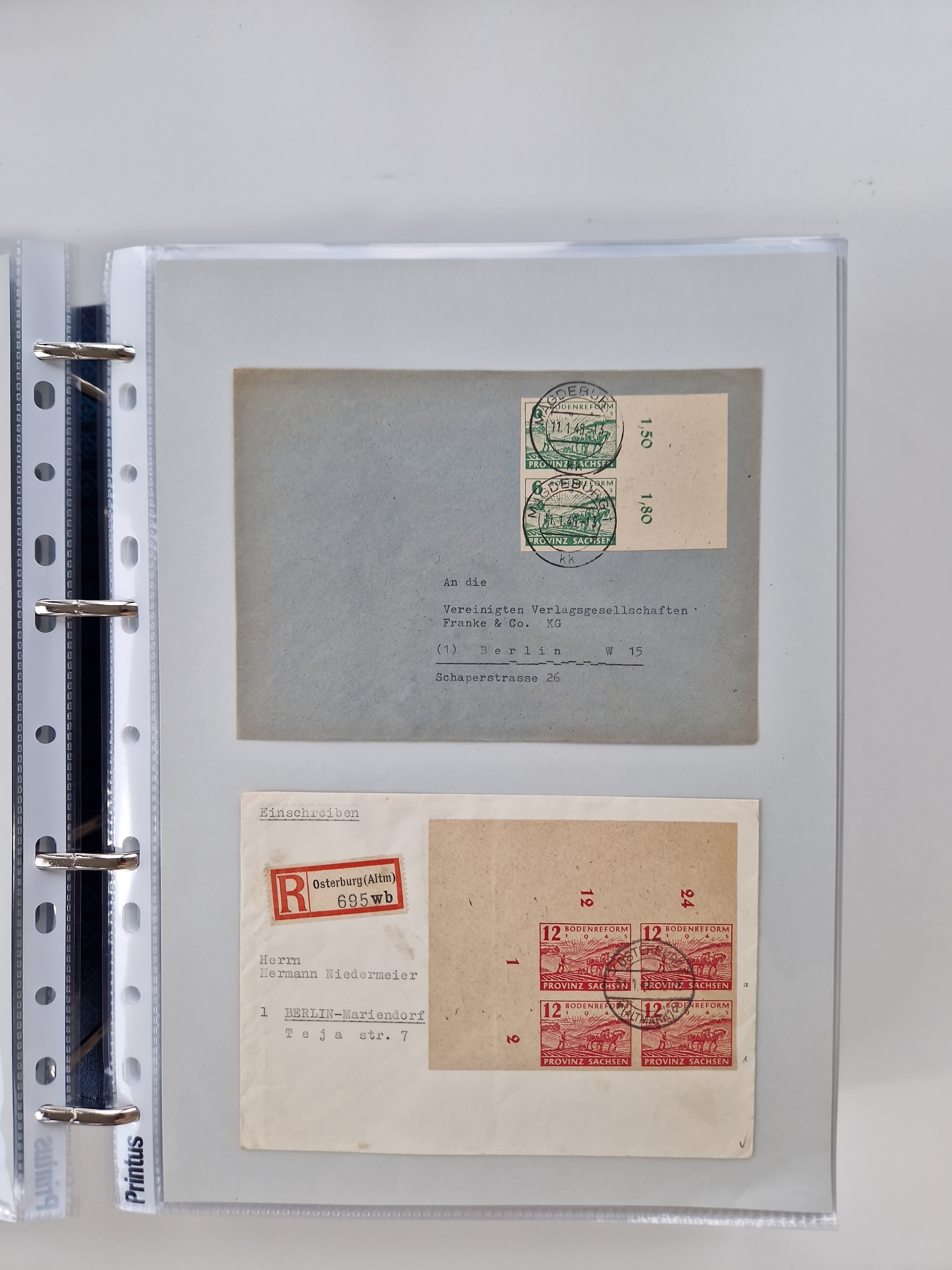 1945/48, ungebrauchte/postfrische und gestempelte Sammlungspartie, dabei Marken und Blocks, aber auch immer wieder bessere Briefe, dabei u.a. Fredersdorf Mi.-Nr. 53 u. 69 auf Karte, 39 Briefe mit Sächs. Schwärzungen, Ost-Sachsen Durchstiche auf Brief, ein Brief mit Notstempel, über 40 Briefe mit Bezirkshandstempeln sowie eine Paketkarte mit Mi.-Nr. 177VIII und 180VIII (6), etc., in vier Alben