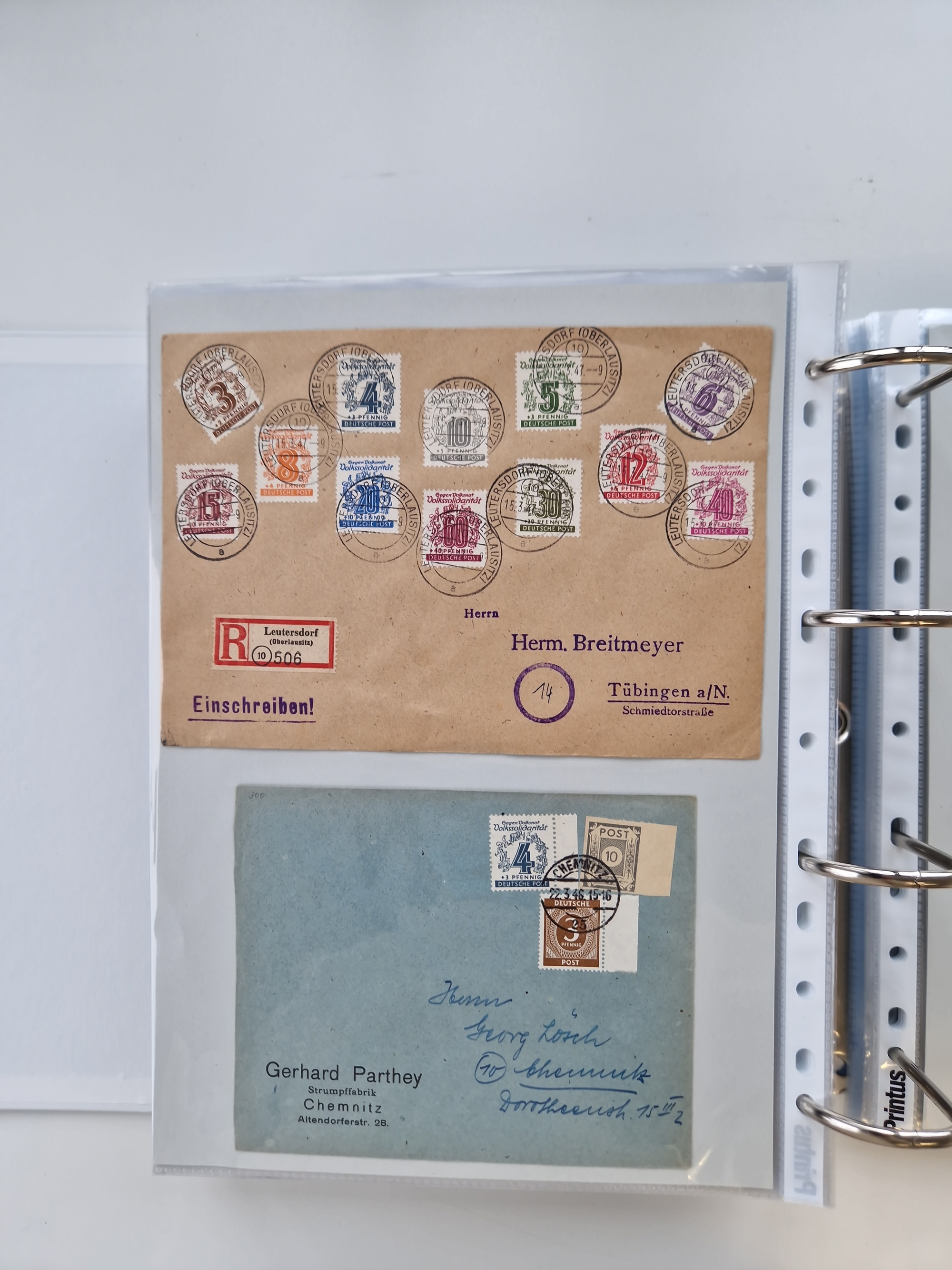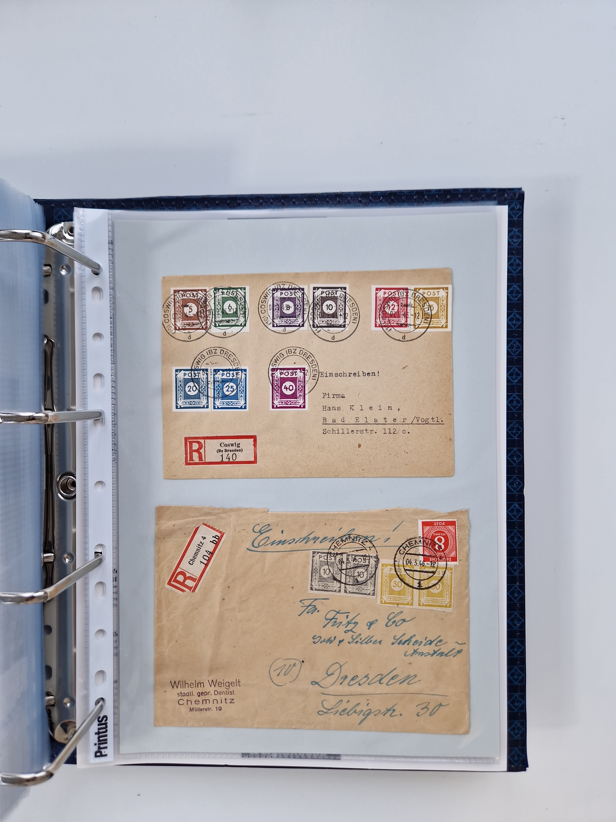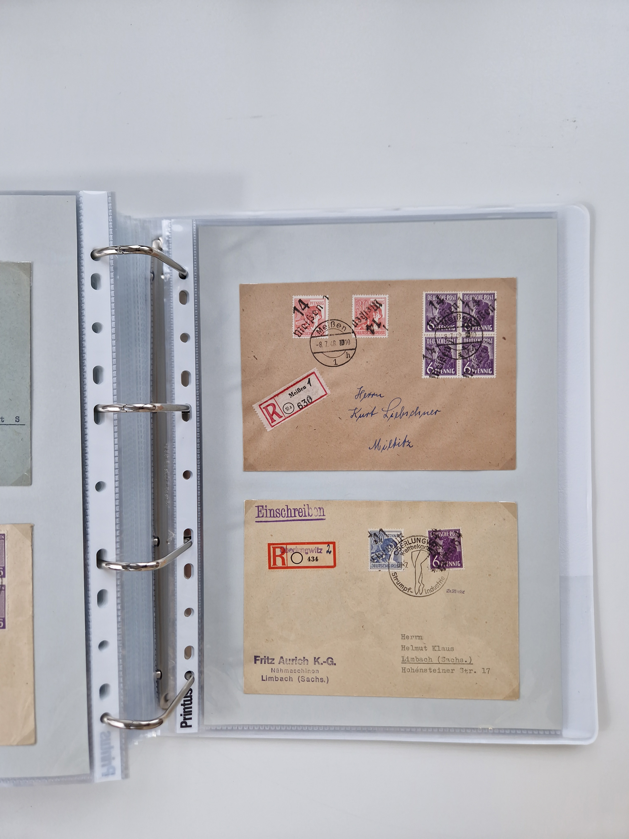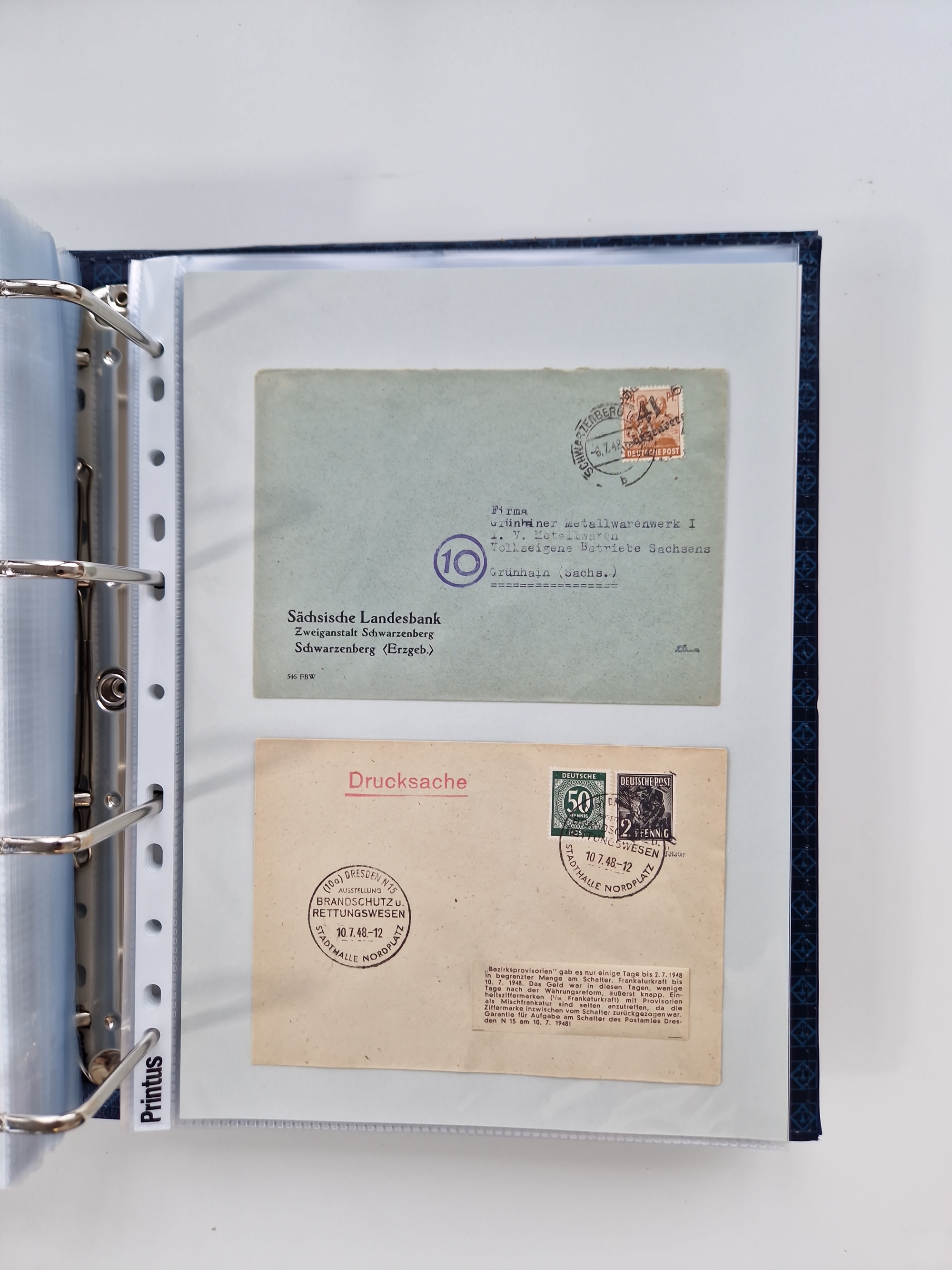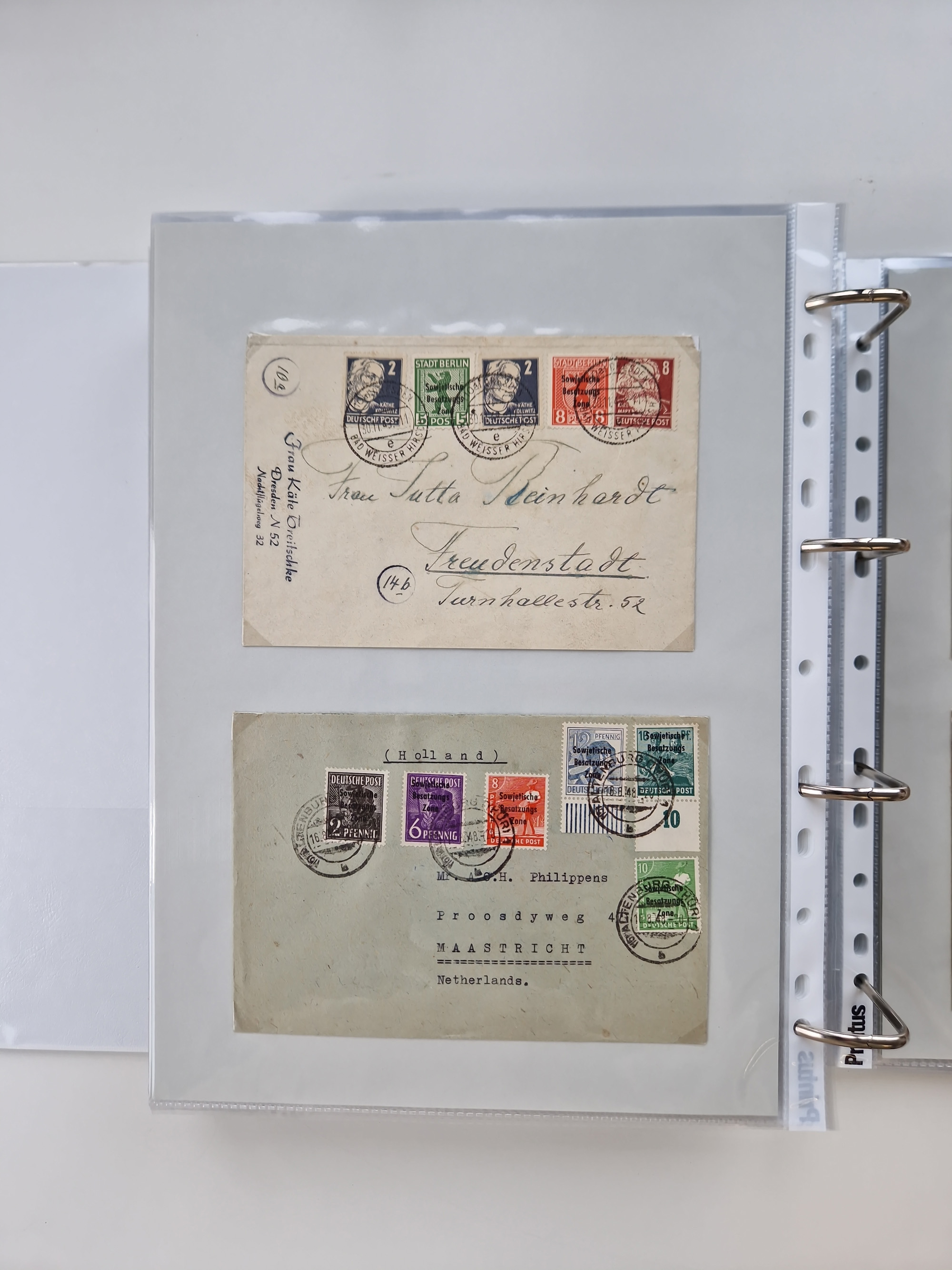 1945/48, ungebrauchte/postfrische und gestempelte Sammlungspartie, dabei Marken und Blocks, aber auch immer wieder bessere Briefe, dabei u.a. Fredersdorf Mi.-Nr. 53 u. 69 auf Karte, 39 Briefe mit Sächs. Schwärzungen, Ost-Sachsen Durchstiche auf Brief, ein Brief mit Notstempel, über 40 Briefe mit Bezirkshandstempeln sowie eine Paketkarte mit Mi.-Nr. 177VIII und 180VIII (6), etc., in vier Alben