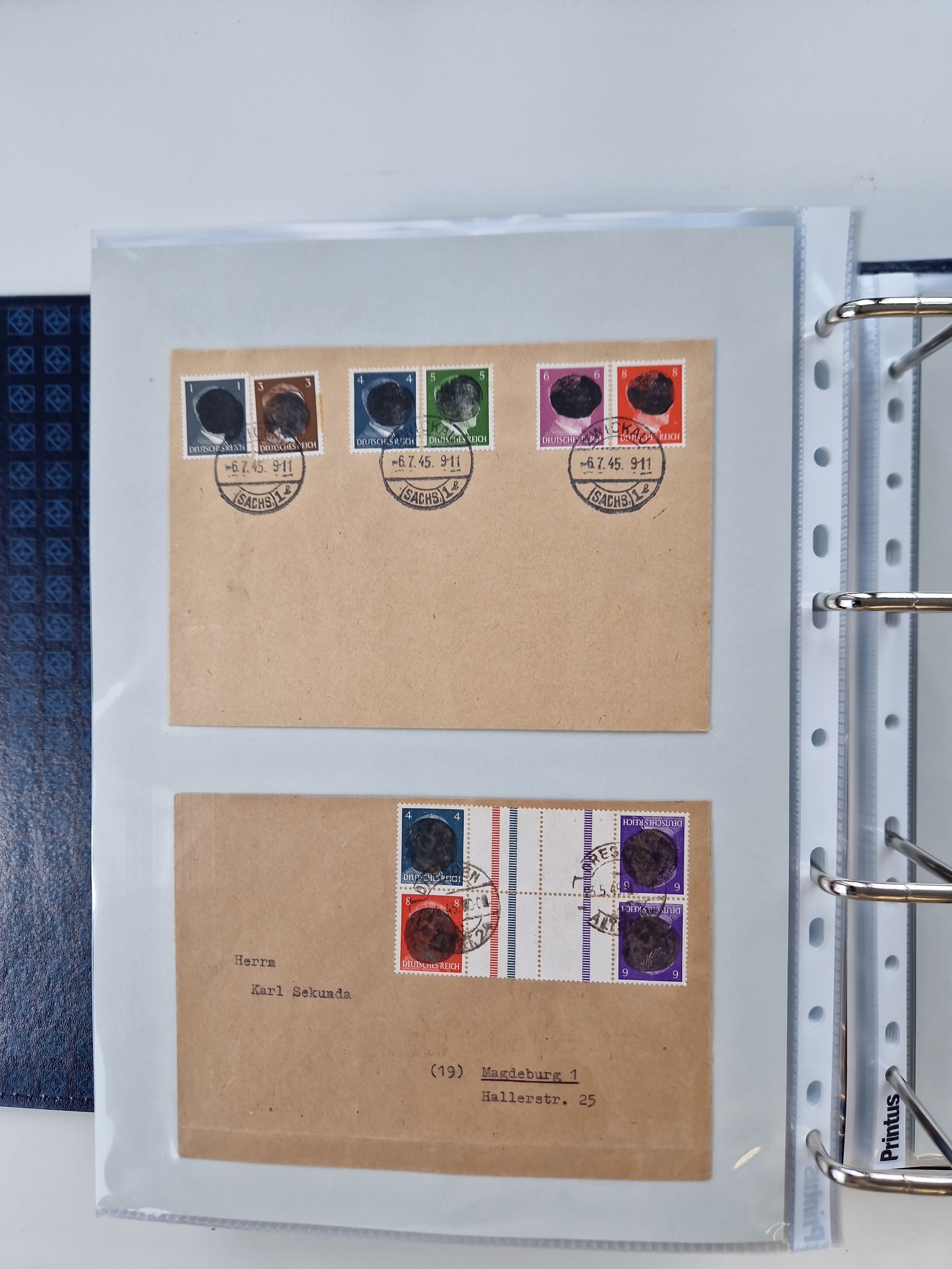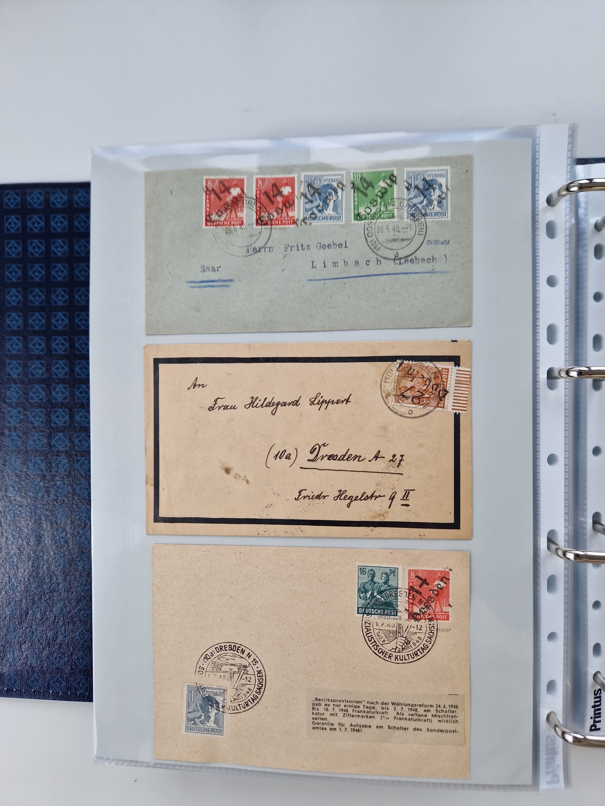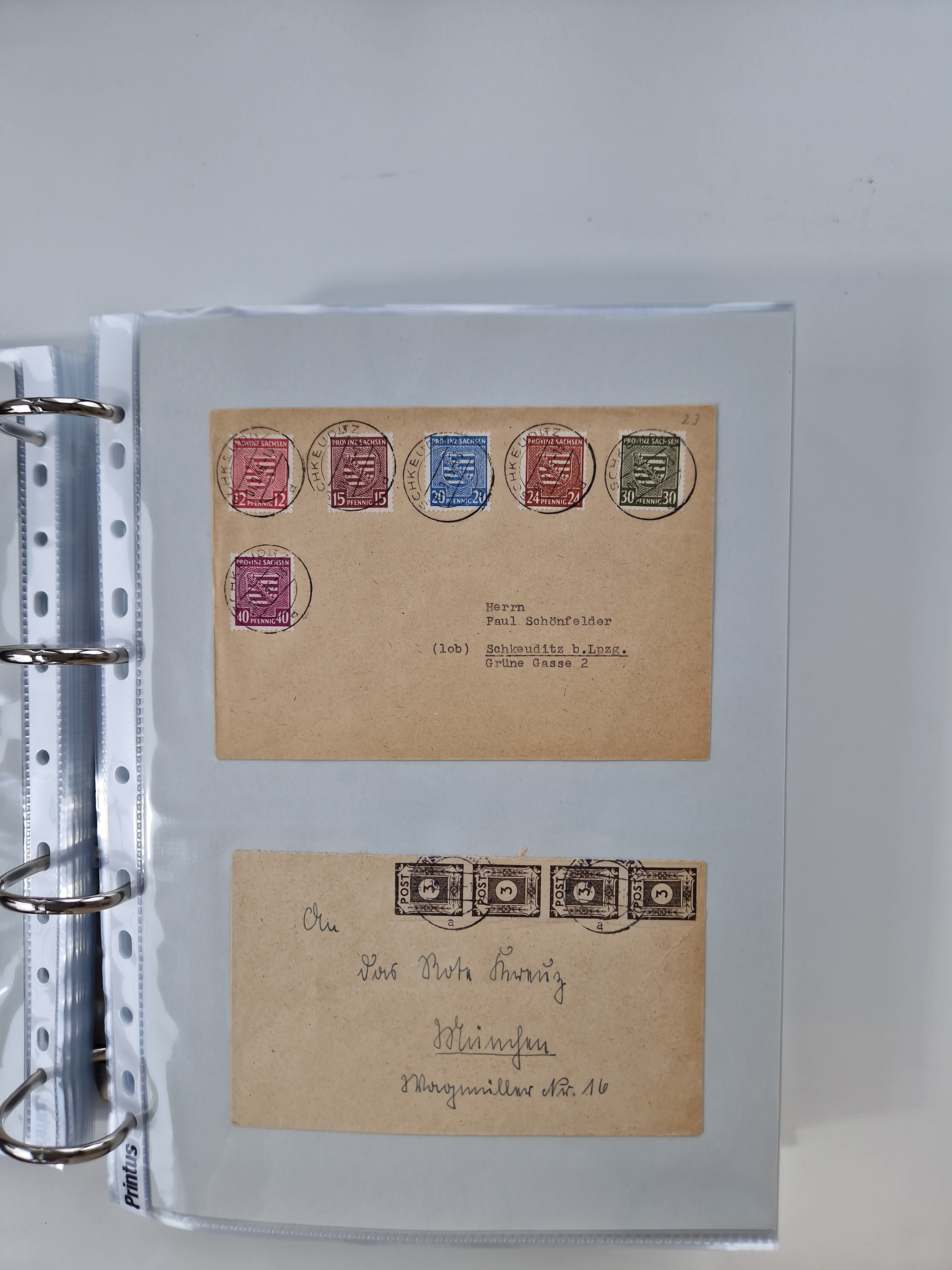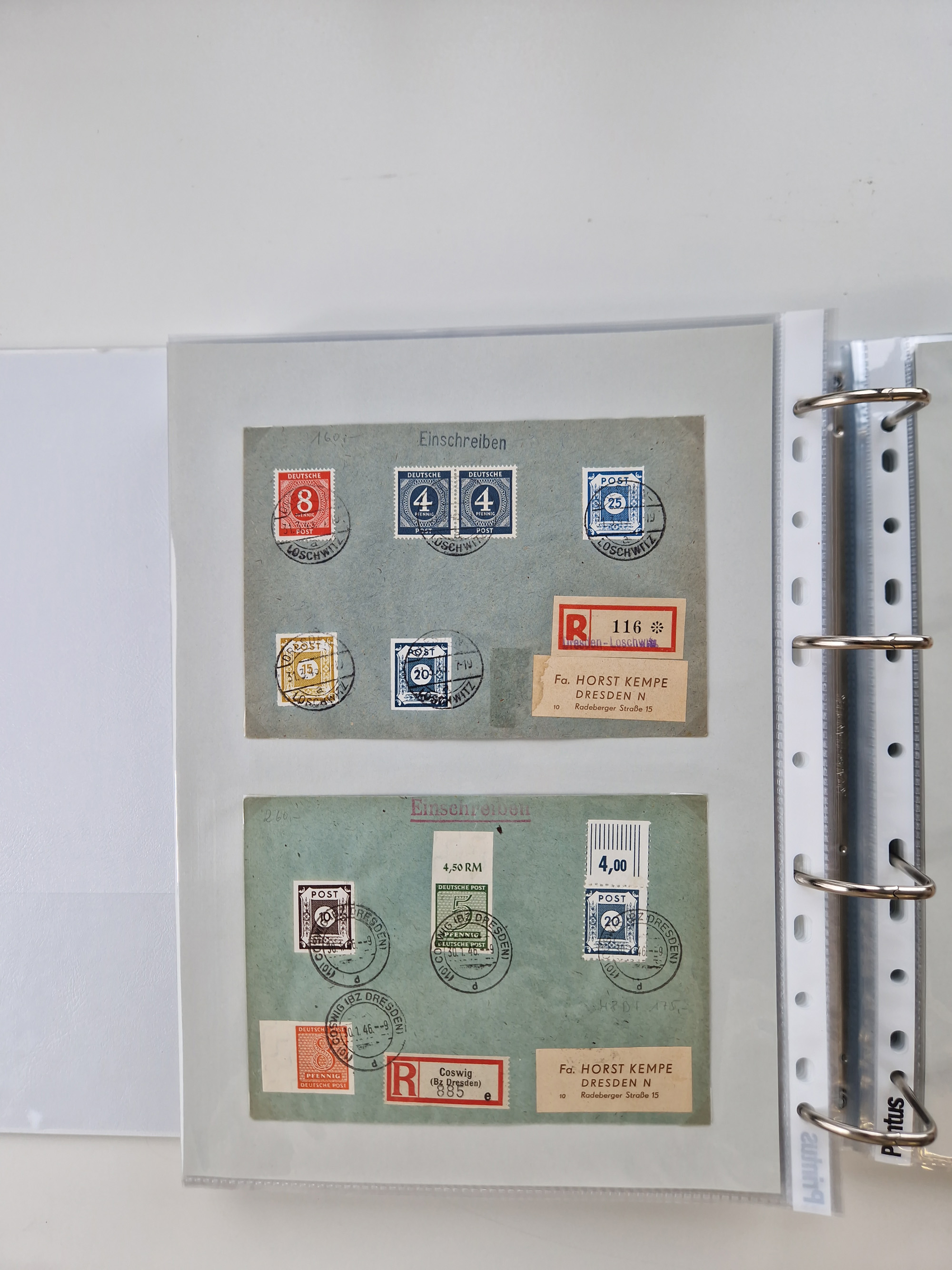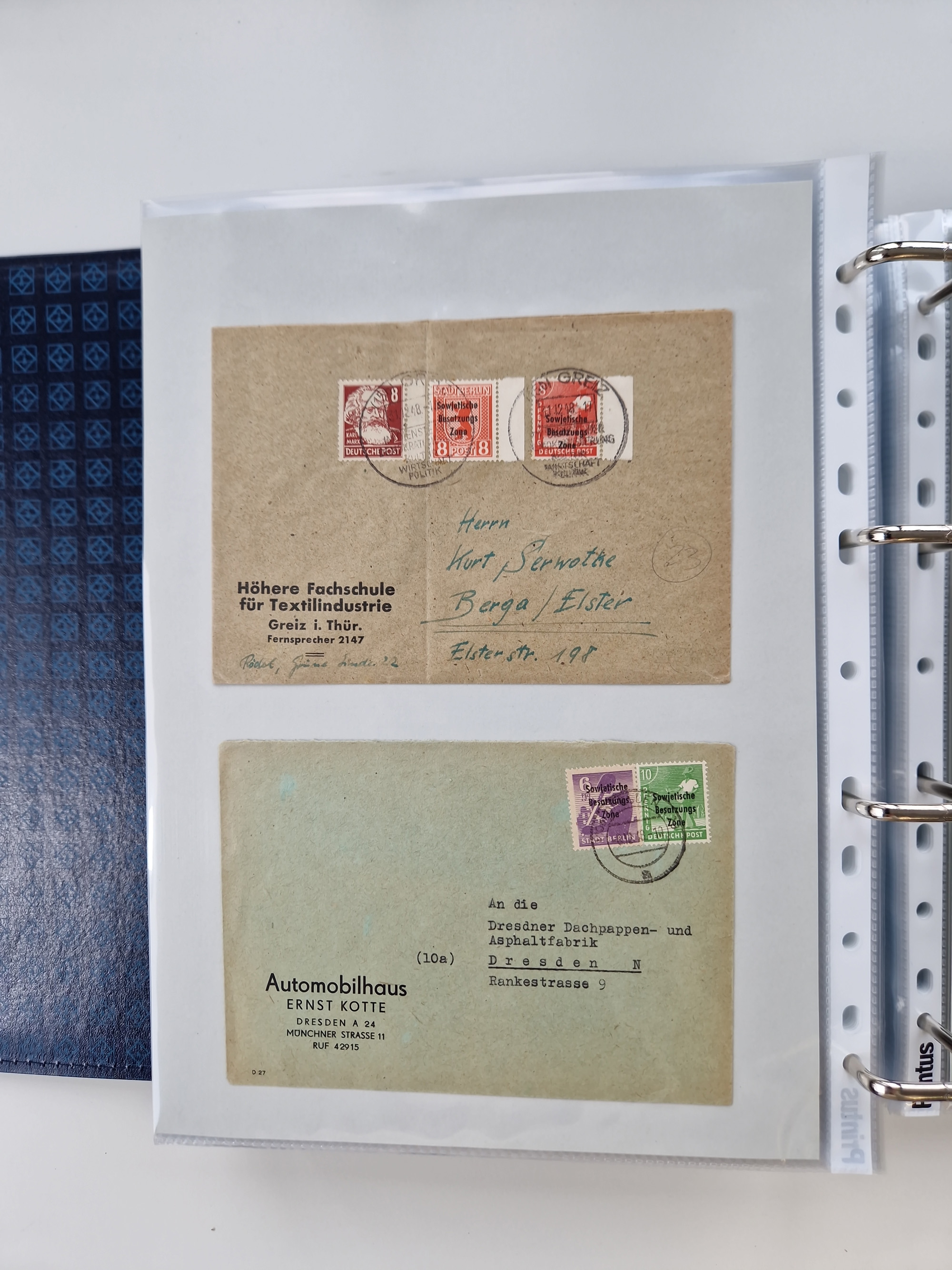 1945/48, ungebrauchte/postfrische und gestempelte Sammlungspartie, dabei Marken und Blocks, aber auch immer wieder bessere Briefe, dabei u.a. Fredersdorf Mi.-Nr. 53 u. 69 auf Karte, 39 Briefe mit Sächs. Schwärzungen, Ost-Sachsen Durchstiche auf Brief, ein Brief mit Notstempel, über 40 Briefe mit Bezirkshandstempeln sowie eine Paketkarte mit Mi.-Nr. 177VIII und 180VIII (6), etc., in vier Alben