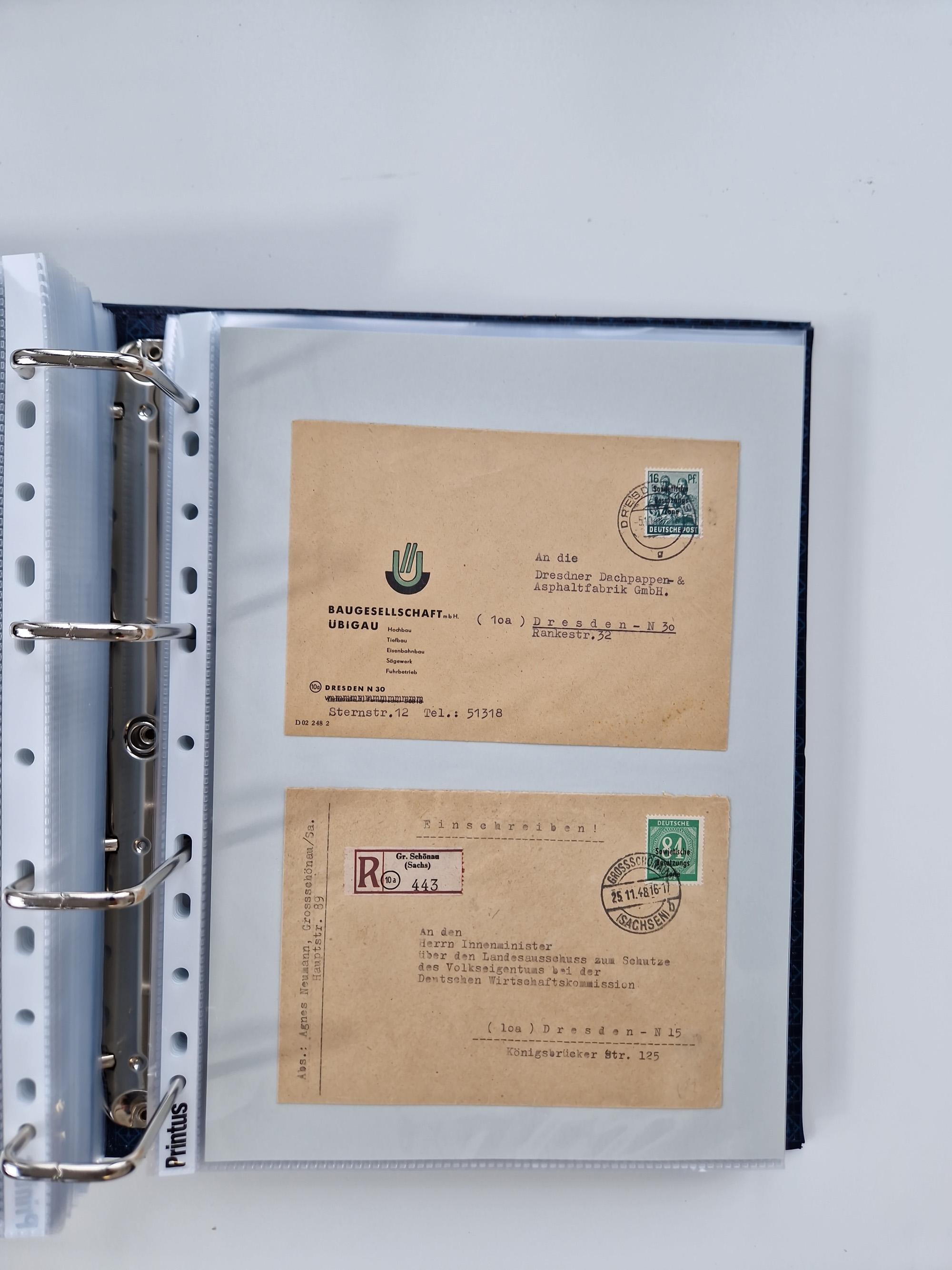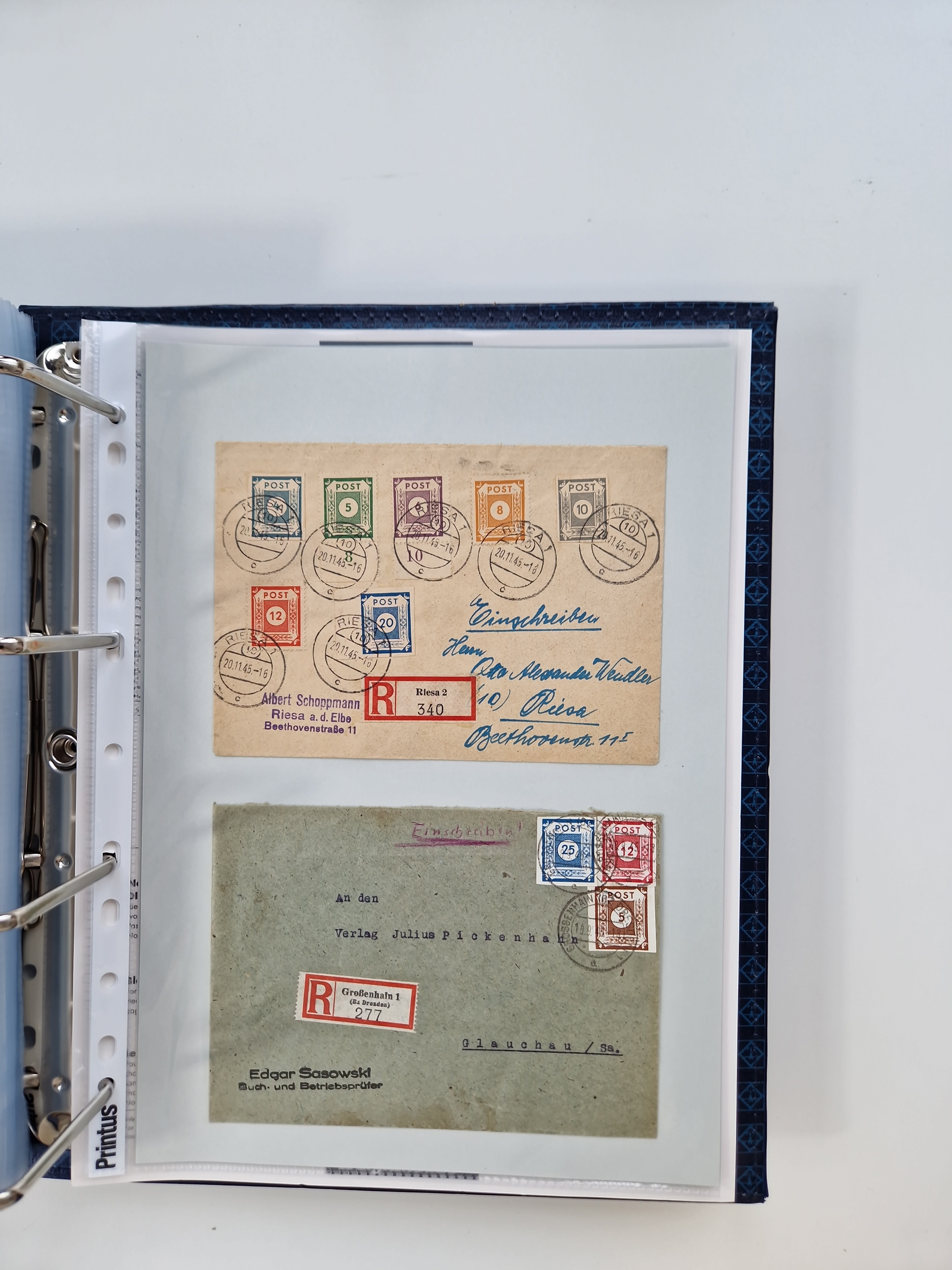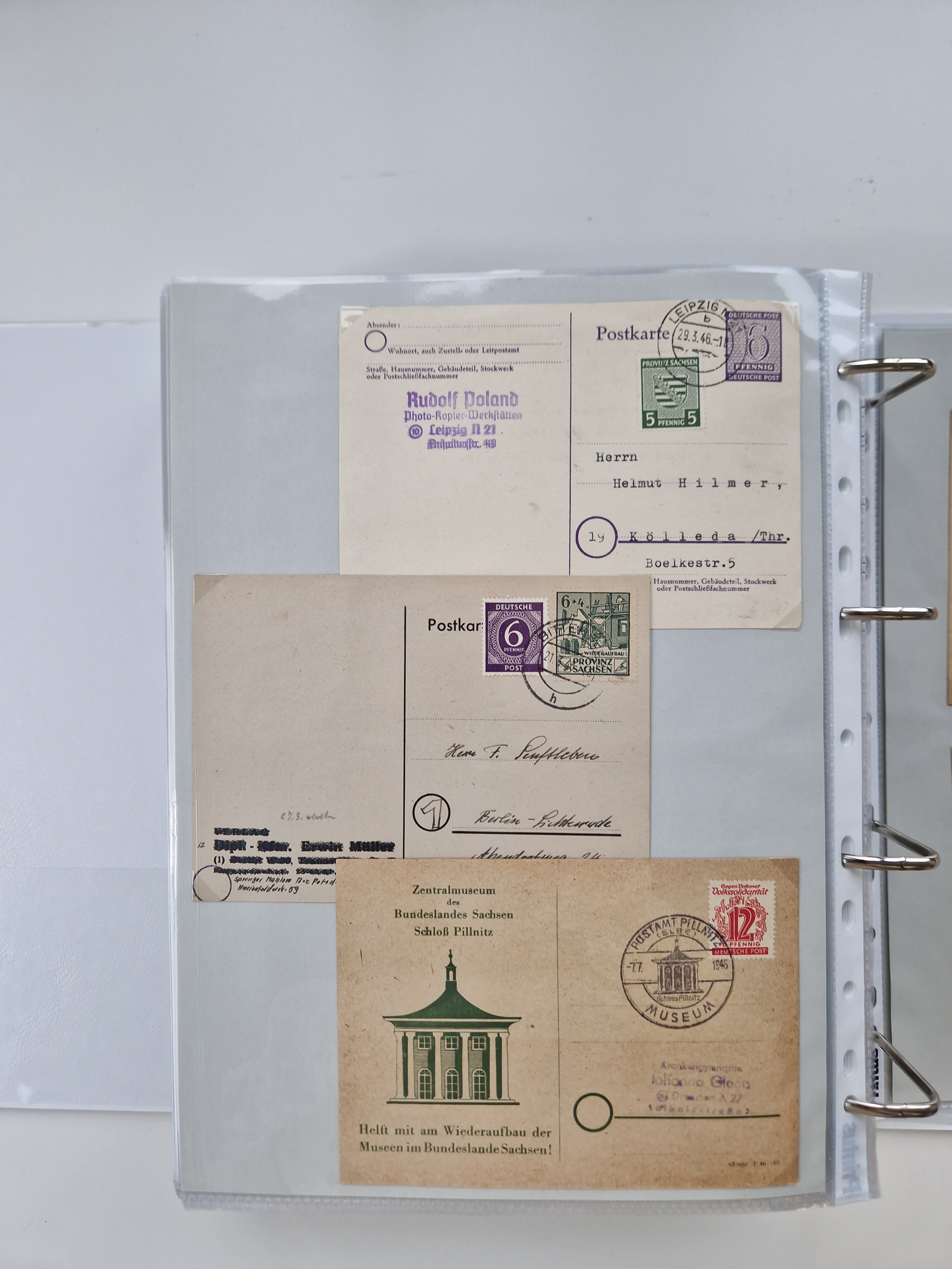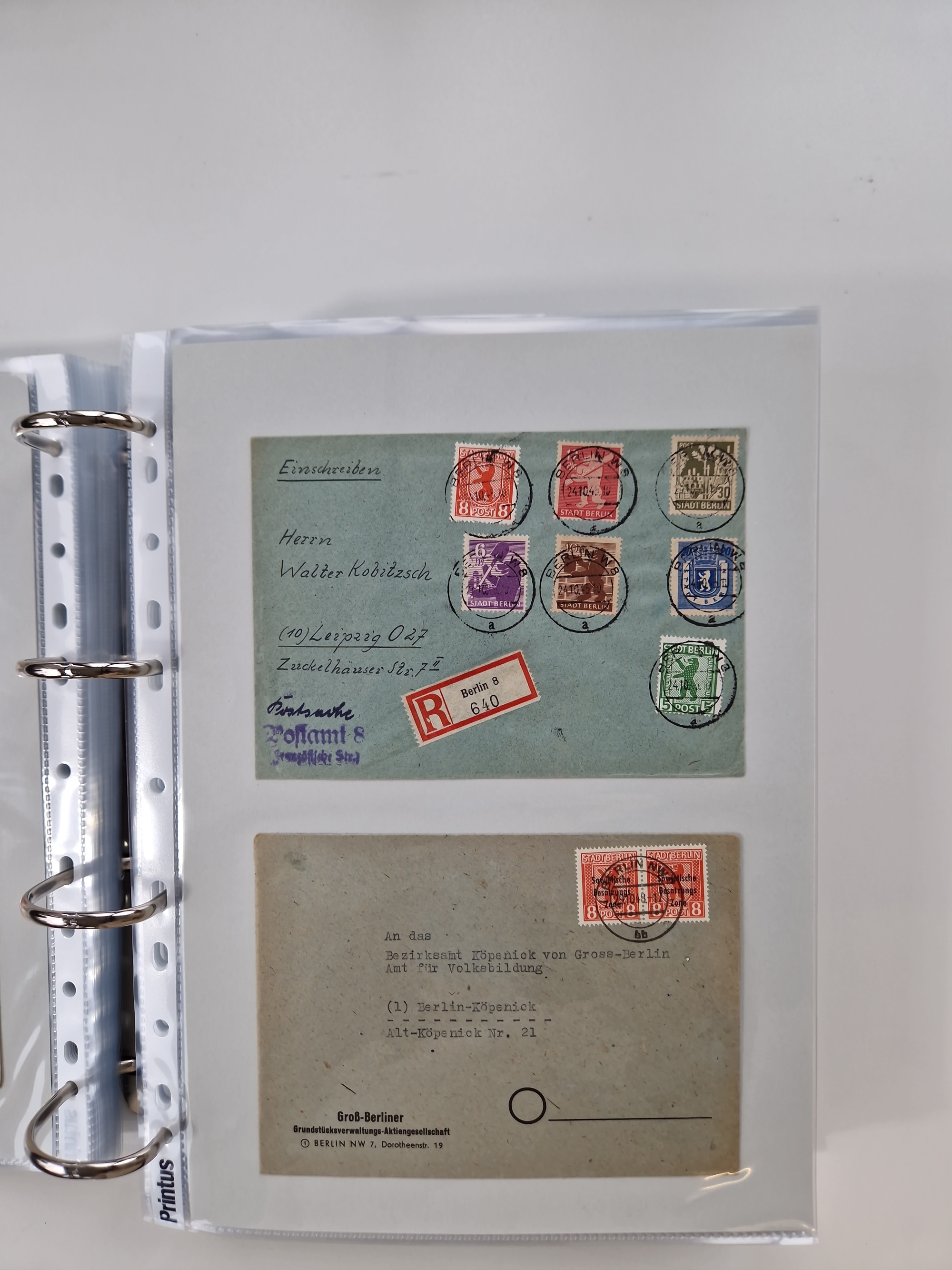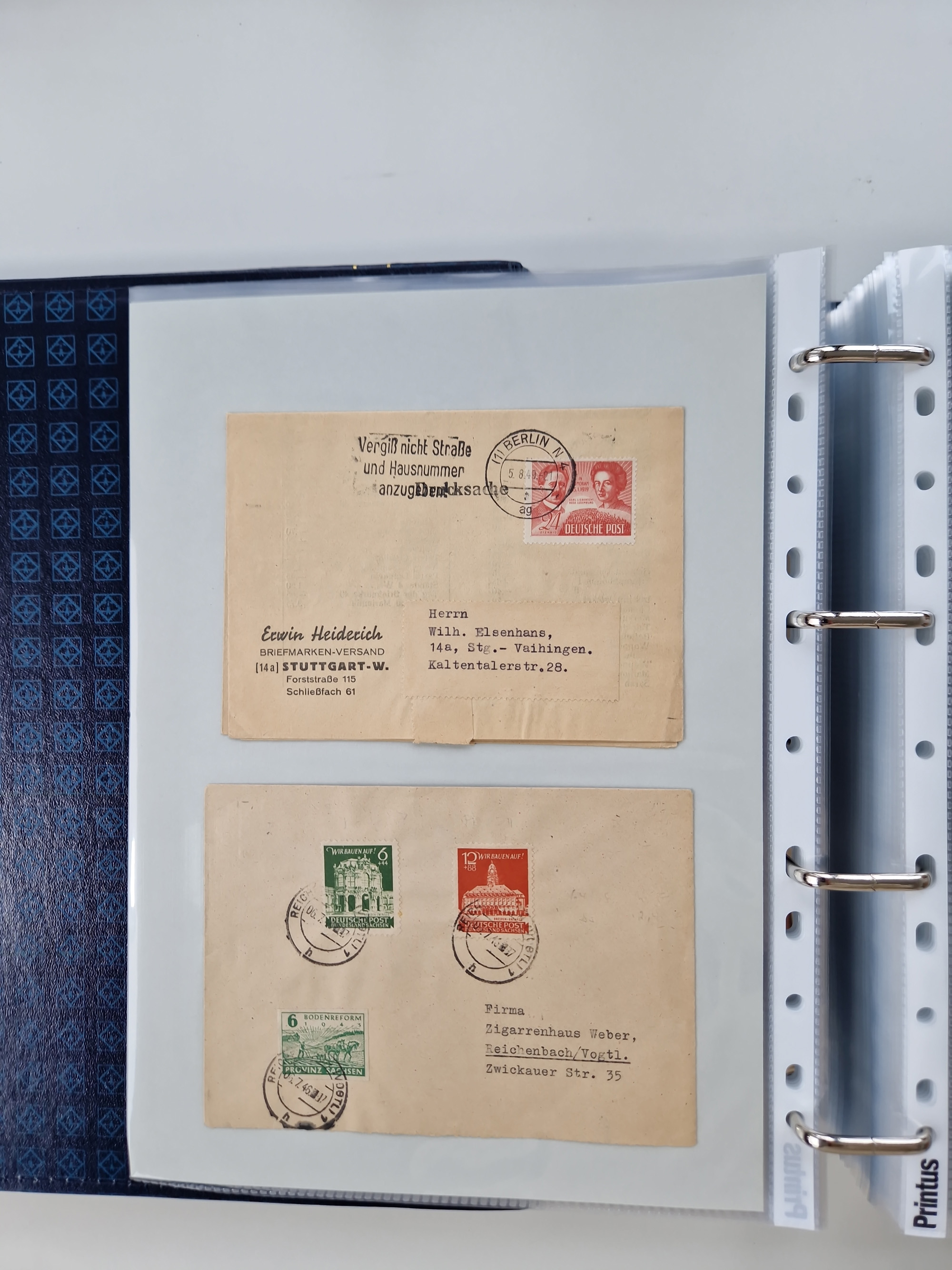 1945/48, ungebrauchte/postfrische und gestempelte Sammlungspartie, dabei Marken und Blocks, aber auch immer wieder bessere Briefe, dabei u.a. Fredersdorf Mi.-Nr. 53 u. 69 auf Karte, 39 Briefe mit Sächs. Schwärzungen, Ost-Sachsen Durchstiche auf Brief, ein Brief mit Notstempel, über 40 Briefe mit Bezirkshandstempeln sowie eine Paketkarte mit Mi.-Nr. 177VIII und 180VIII (6), etc., in vier Alben