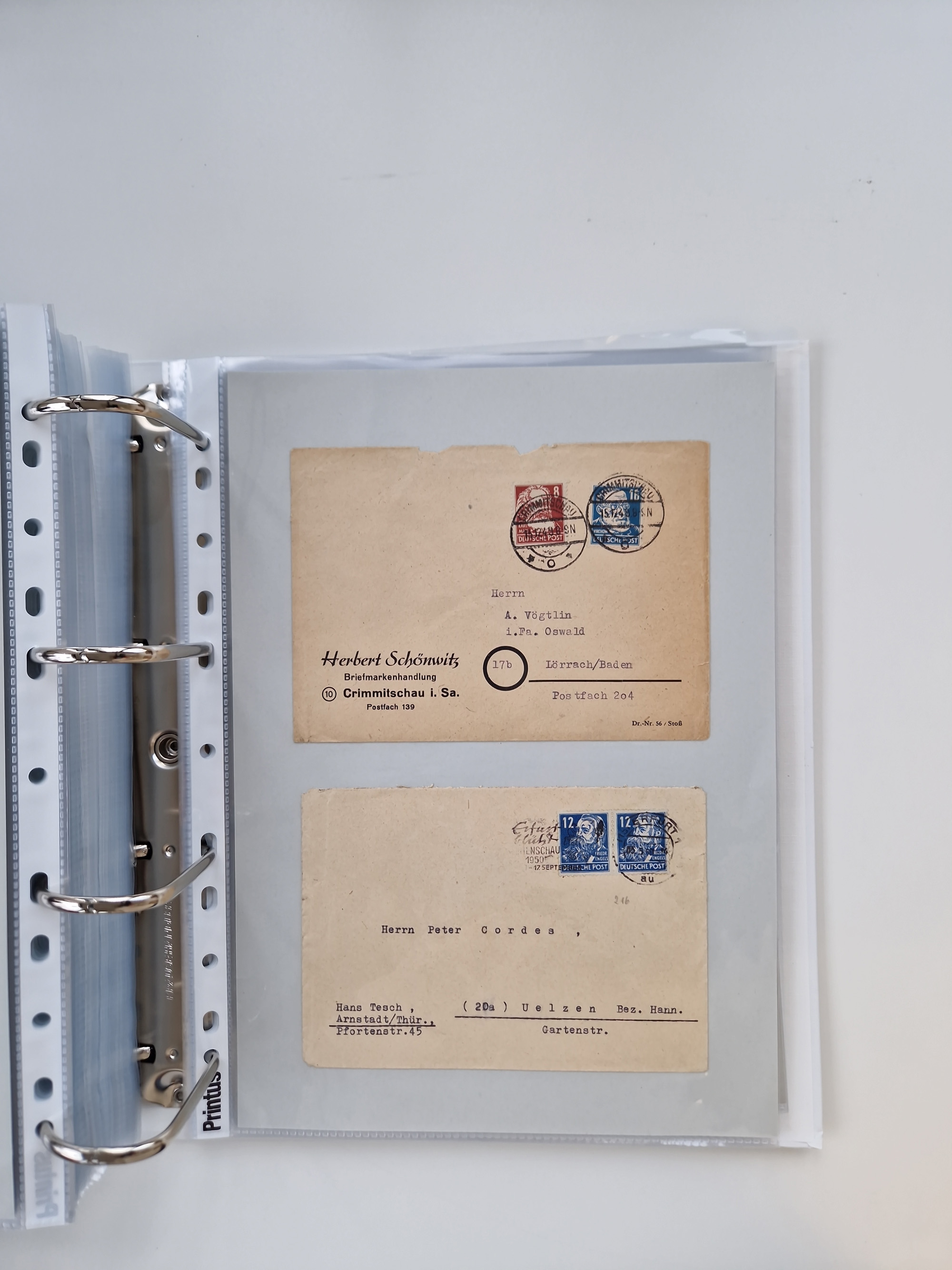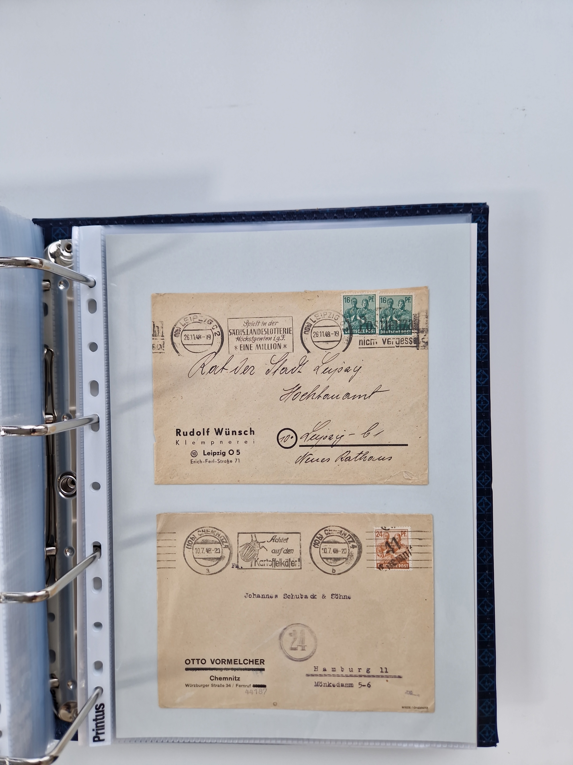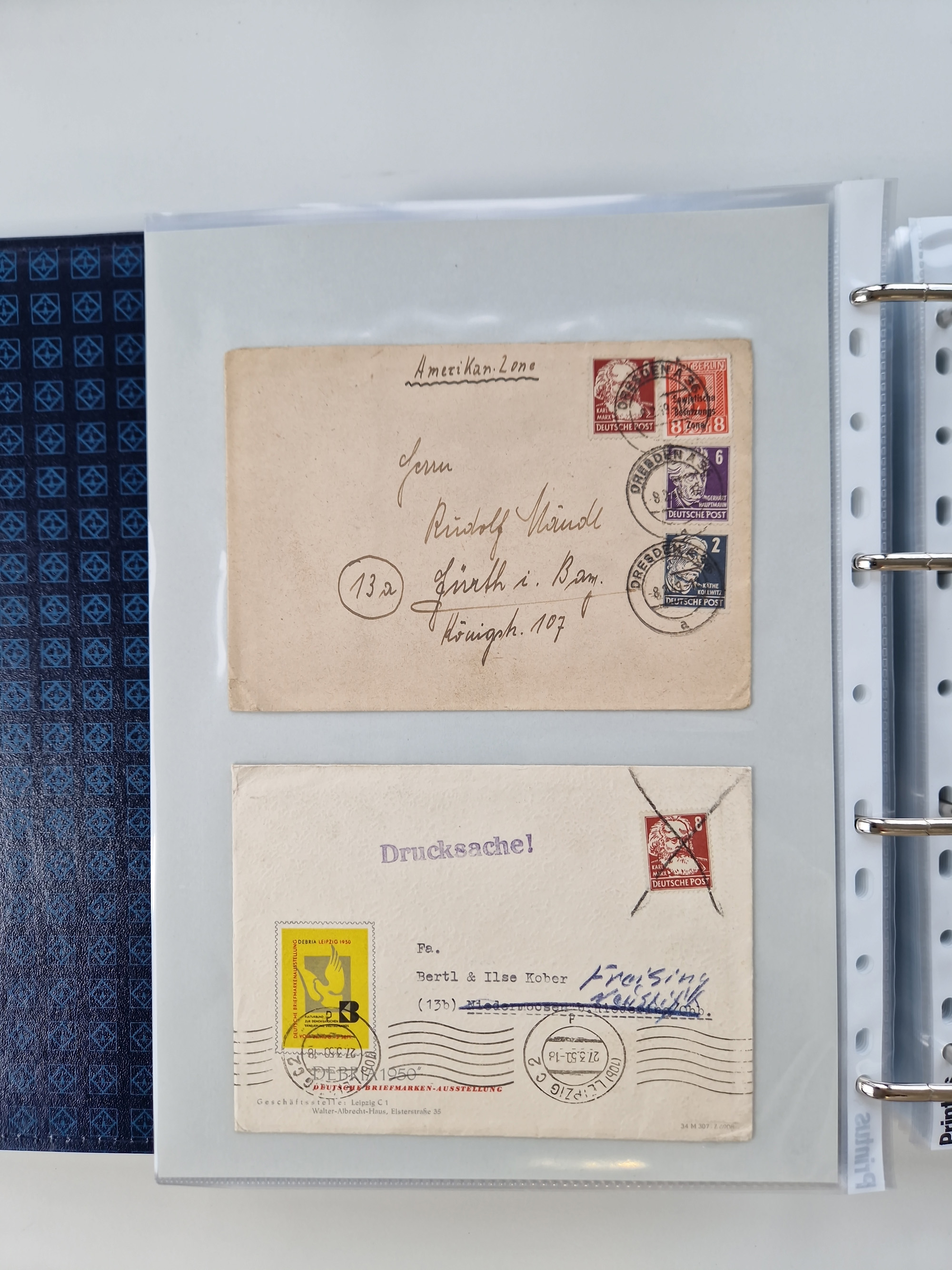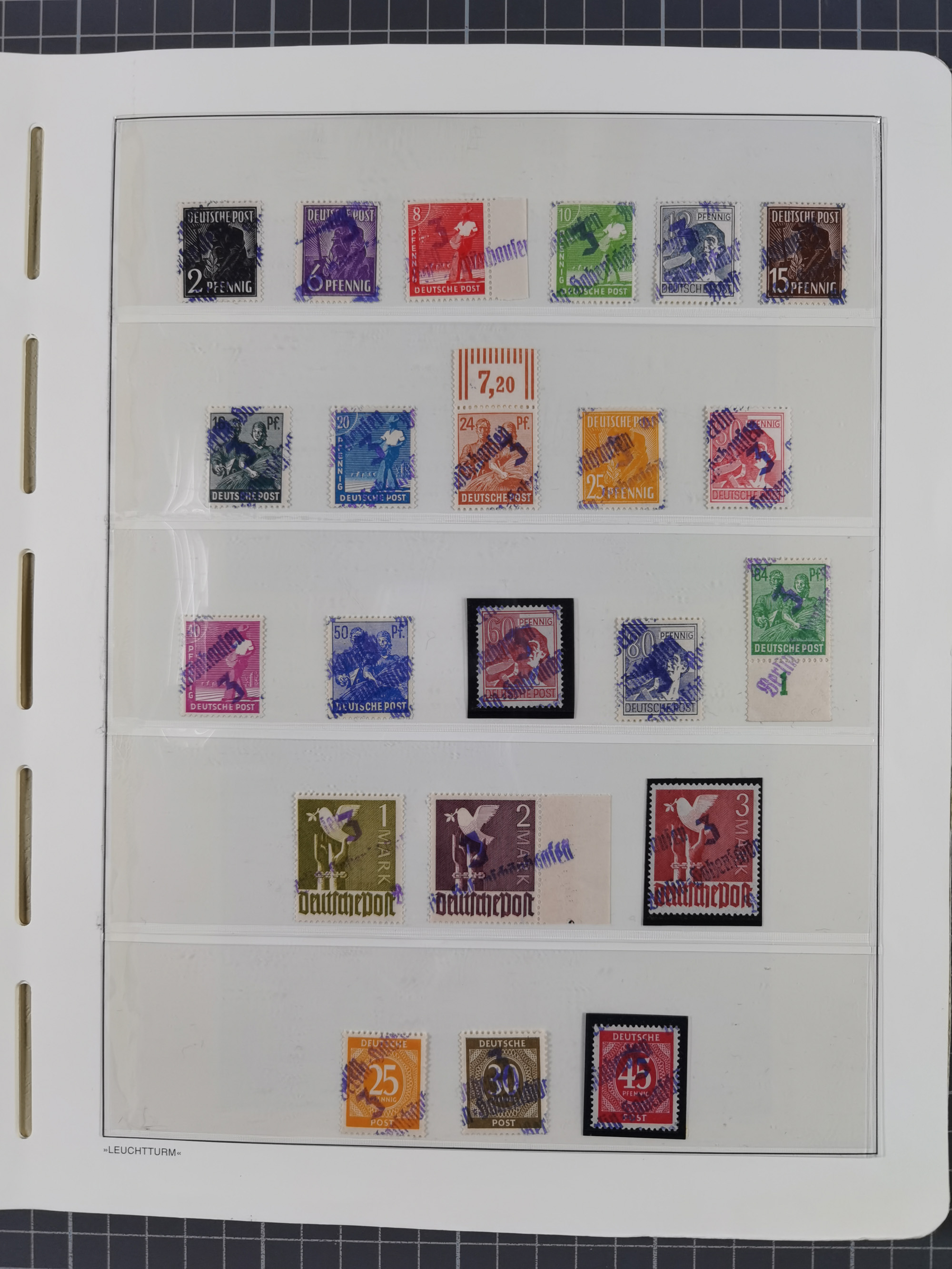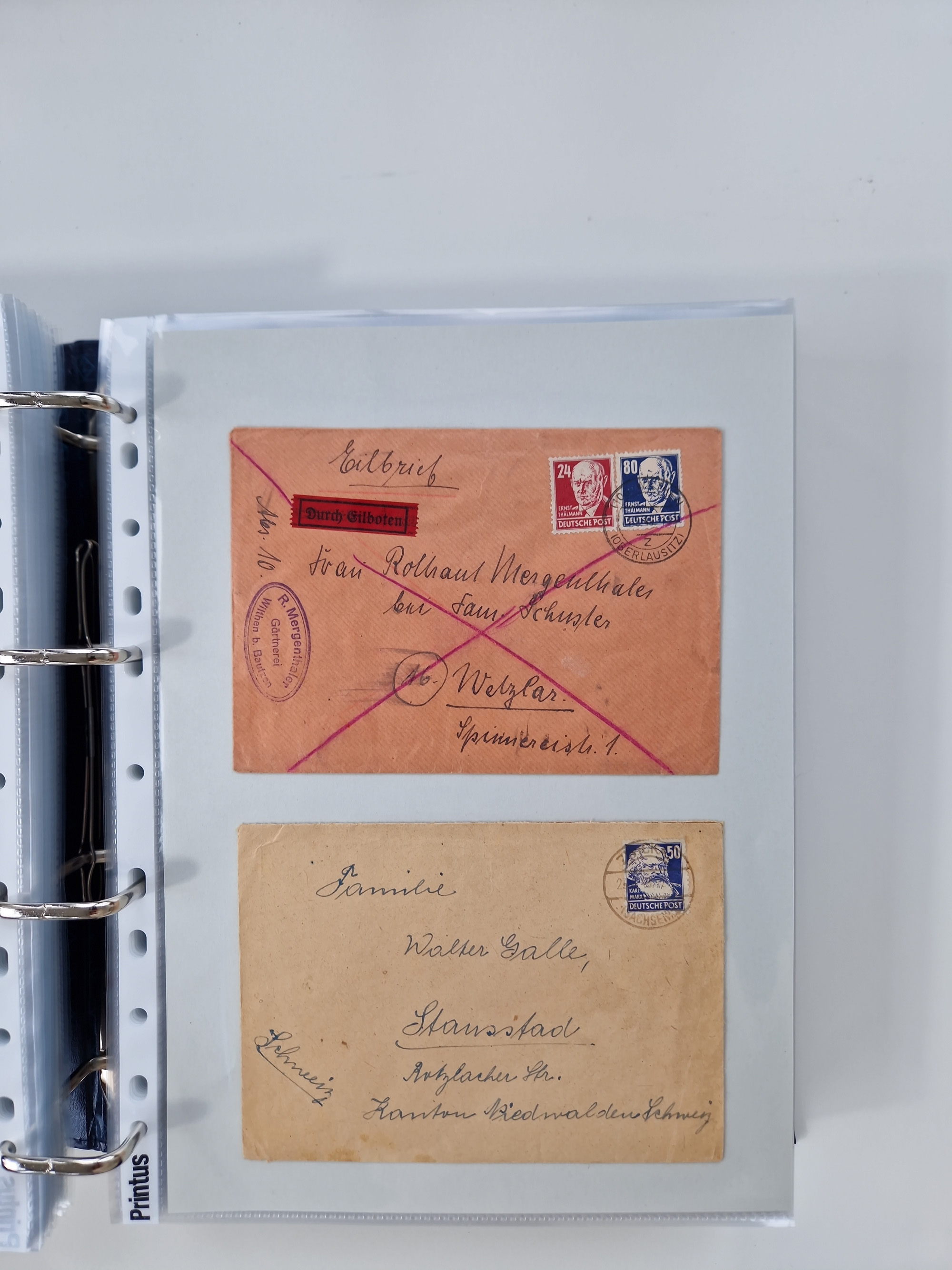 1945/48, ungebrauchte/postfrische und gestempelte Sammlungspartie, dabei Marken und Blocks, aber auch immer wieder bessere Briefe, dabei u.a. Fredersdorf Mi.-Nr. 53 u. 69 auf Karte, 39 Briefe mit Sächs. Schwärzungen, Ost-Sachsen Durchstiche auf Brief, ein Brief mit Notstempel, über 40 Briefe mit Bezirkshandstempeln sowie eine Paketkarte mit Mi.-Nr. 177VIII und 180VIII (6), etc., in vier Alben
