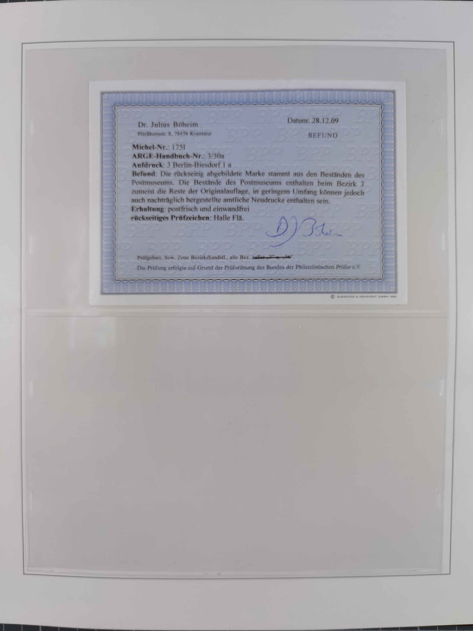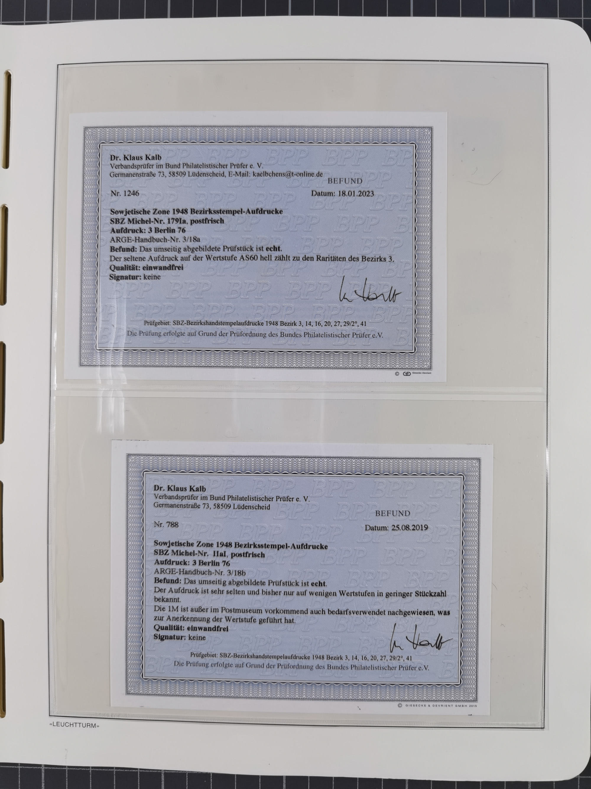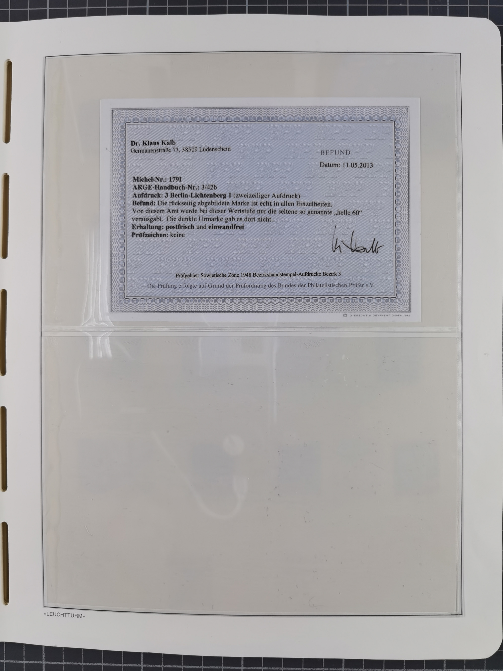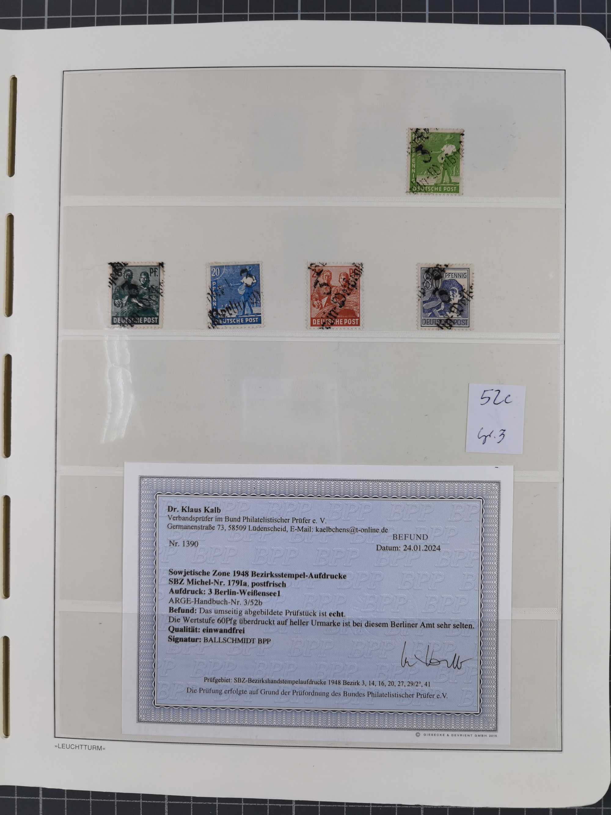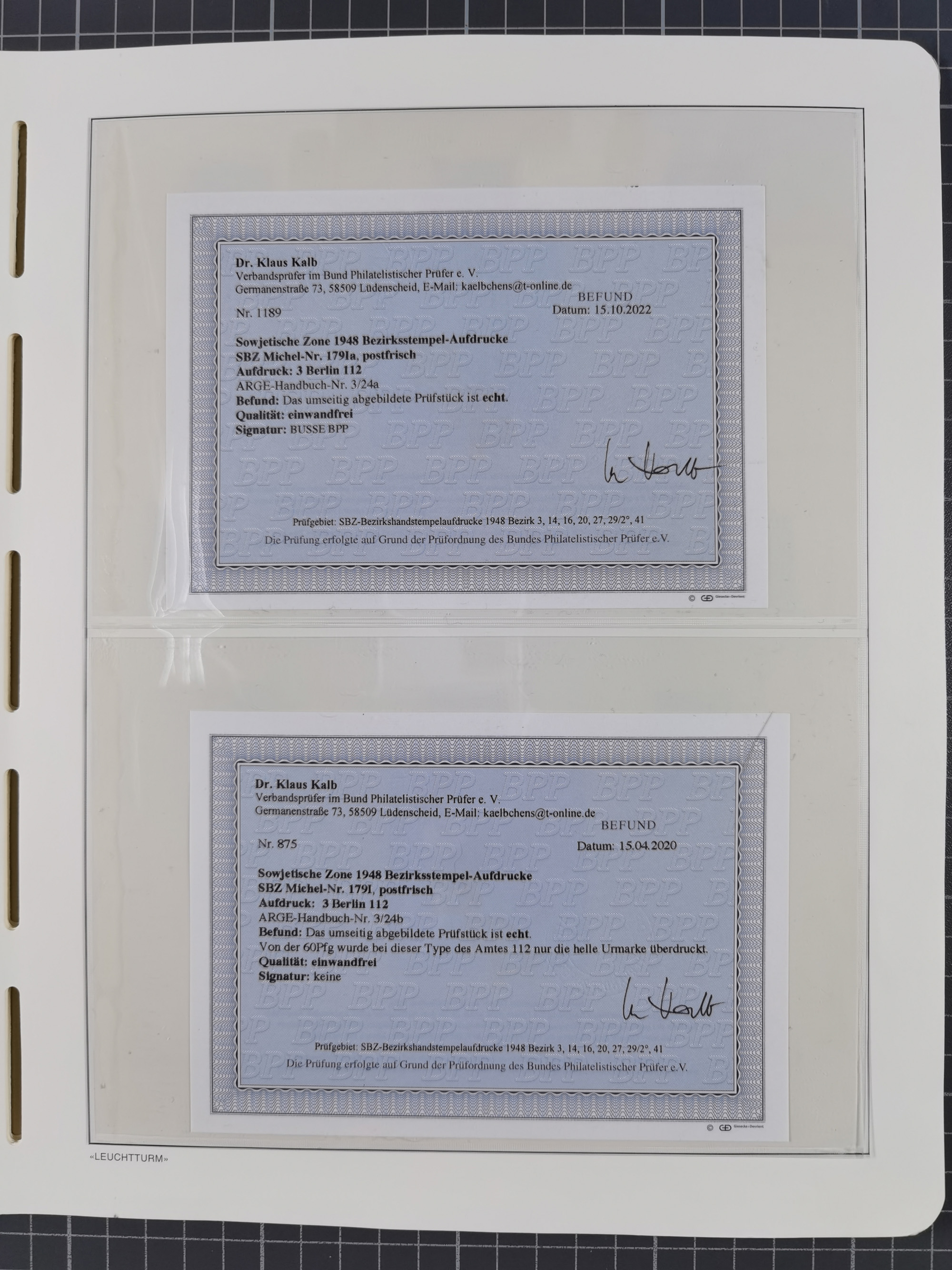 1948, sehr reichhaltige fast ausschließlich postfrische Material-Sammlung des Bezirk 3 mit vielen hunderten Marken sauber sortiert nach Handstempelvarianten, inkl. 45 Ganzsachen, dabei viele kpl. Ausgaben, seltene Handstempel sowie bessere Wertstufen, dabei u.a. schablonierte Aufdrucke, farbige Aufdrucke, Marken aus Postmuseumsbeständen aus z.B. Biesdorf, Blankenburg, Buchholz, etc., ferner Mi.-Nr. 168I und 177I mit ARGE-Nr. 39a aus Postmuseumsbestand, 174I mit 41f in violett, IIaIc, 170 mit 2e in violett, 179bI mit 2d ungebraucht, IIaI mit 18b, 179aI mit 36, IsI mit 36, IIdI mit 38b sowie 38d, 174I mit 41f in violett, 179aI mit 42b, sechs Werte mit seltenem 49a (5) bzw. 49b (1), etc. etc., insgesamt über 40 Exemplare Mi.-Nr. 179Ia sowie 10 Exemplare Mi.-Nr. IIdI, fast ausnahmslos sign. Busse BPP, Kalb BPP, Herbst BPP, Böheim BPP bzw. 38 Befunde und 2 Garantie-Atteste, wenige Fälschungen, gute Erhaltung, in drei Alben und auf Blättern