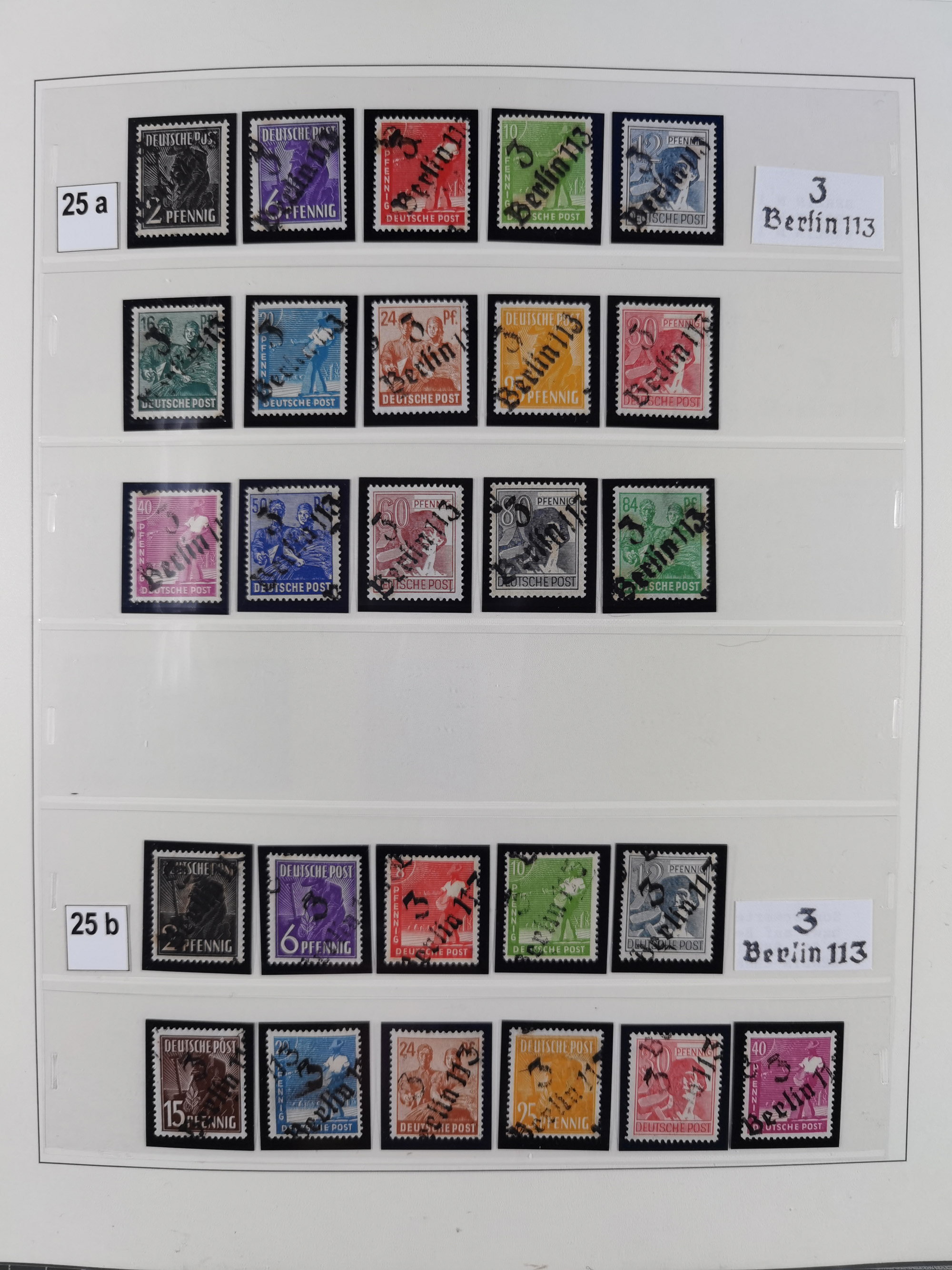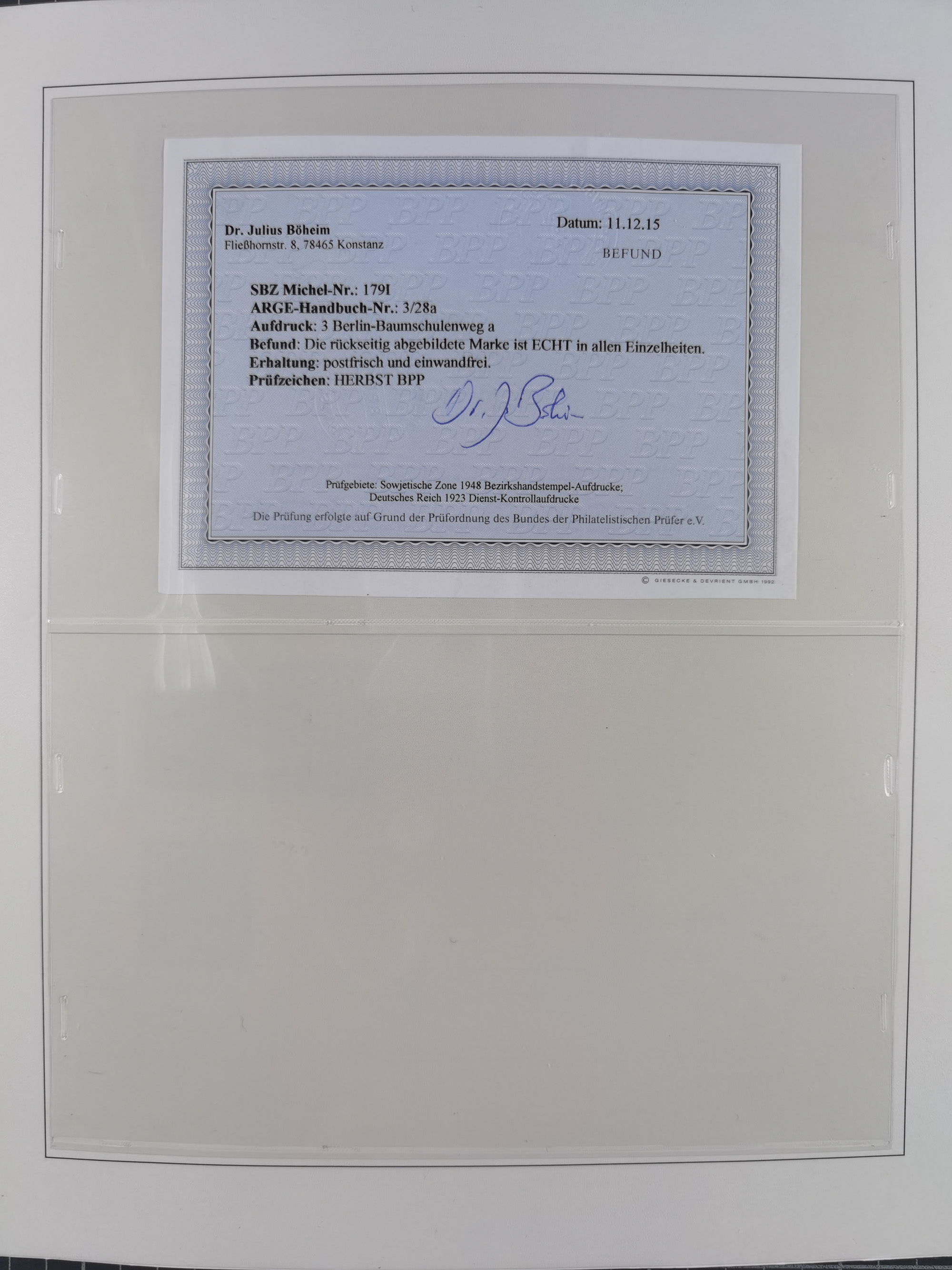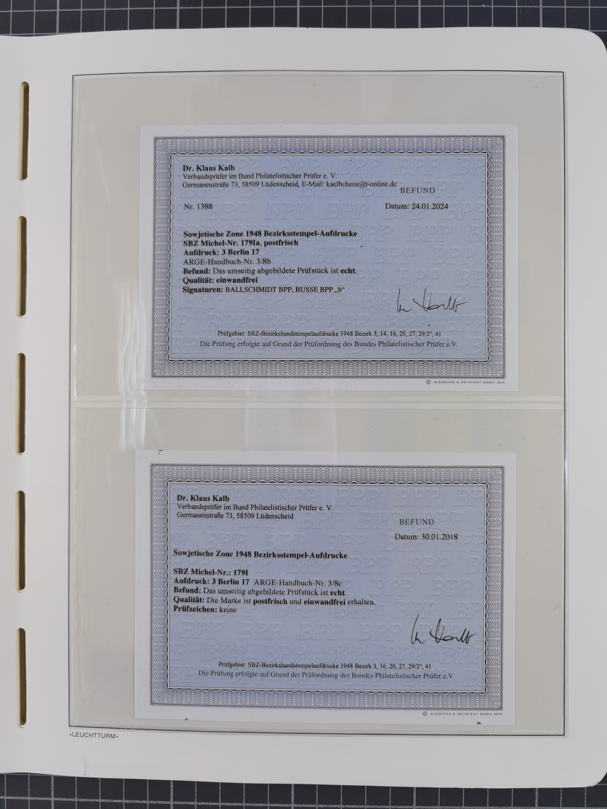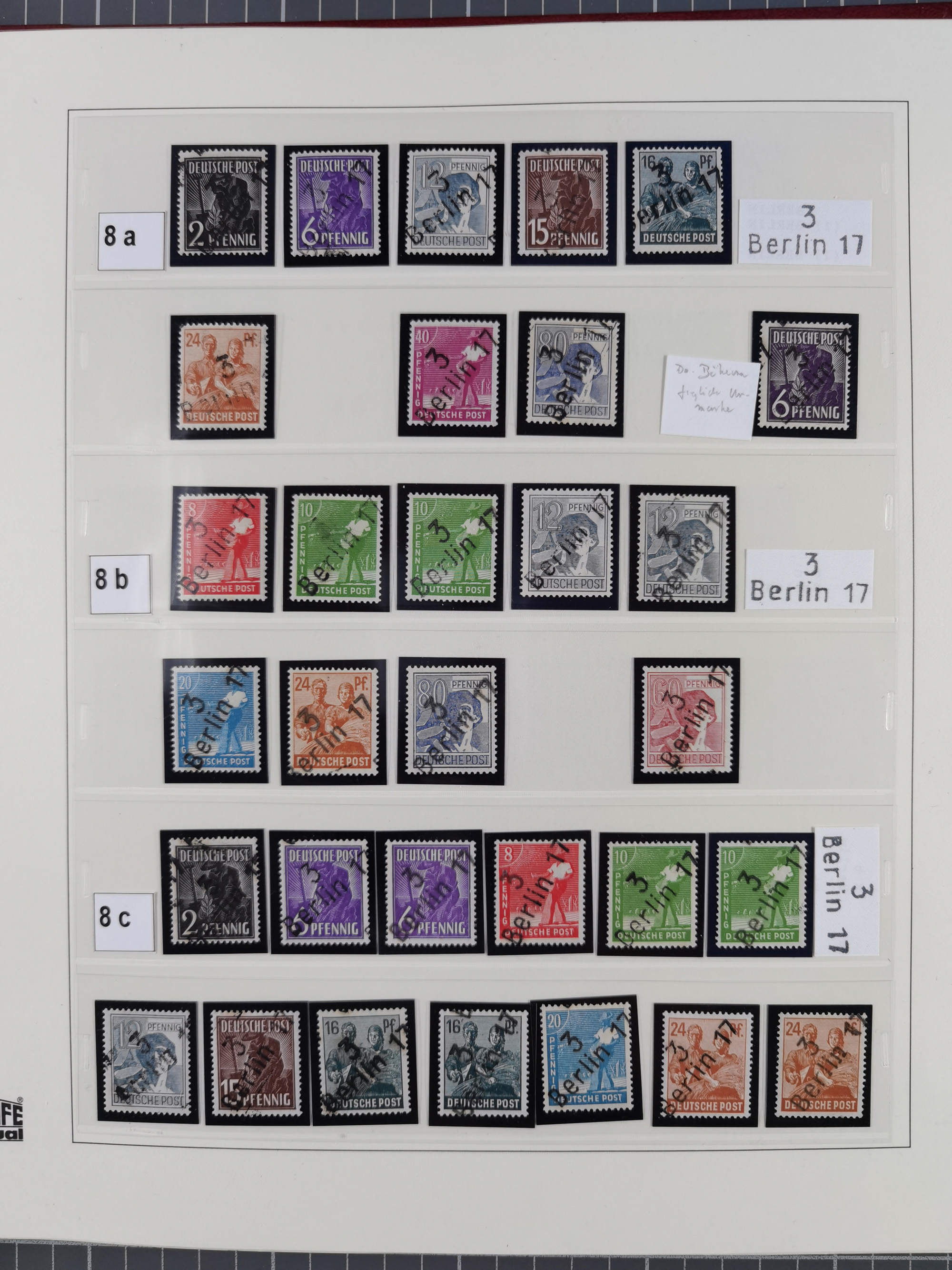 1948, sehr reichhaltige fast ausschließlich postfrische Material-Sammlung des Bezirk 3 mit vielen hunderten Marken sauber sortiert nach Handstempelvarianten, inkl. 45 Ganzsachen, dabei viele kpl. Ausgaben, seltene Handstempel sowie bessere Wertstufen, dabei u.a. schablonierte Aufdrucke, farbige Aufdrucke, Marken aus Postmuseumsbeständen aus z.B. Biesdorf, Blankenburg, Buchholz, etc., ferner Mi.-Nr. 168I und 177I mit ARGE-Nr. 39a aus Postmuseumsbestand, 174I mit 41f in violett, IIaIc, 170 mit 2e in violett, 179bI mit 2d ungebraucht, IIaI mit 18b, 179aI mit 36, IsI mit 36, IIdI mit 38b sowie 38d, 174I mit 41f in violett, 179aI mit 42b, sechs Werte mit seltenem 49a (5) bzw. 49b (1), etc. etc., insgesamt über 40 Exemplare Mi.-Nr. 179Ia sowie 10 Exemplare Mi.-Nr. IIdI, fast ausnahmslos sign. Busse BPP, Kalb BPP, Herbst BPP, Böheim BPP bzw. 38 Befunde und 2 Garantie-Atteste, wenige Fälschungen, gute Erhaltung, in drei Alben und auf Blättern