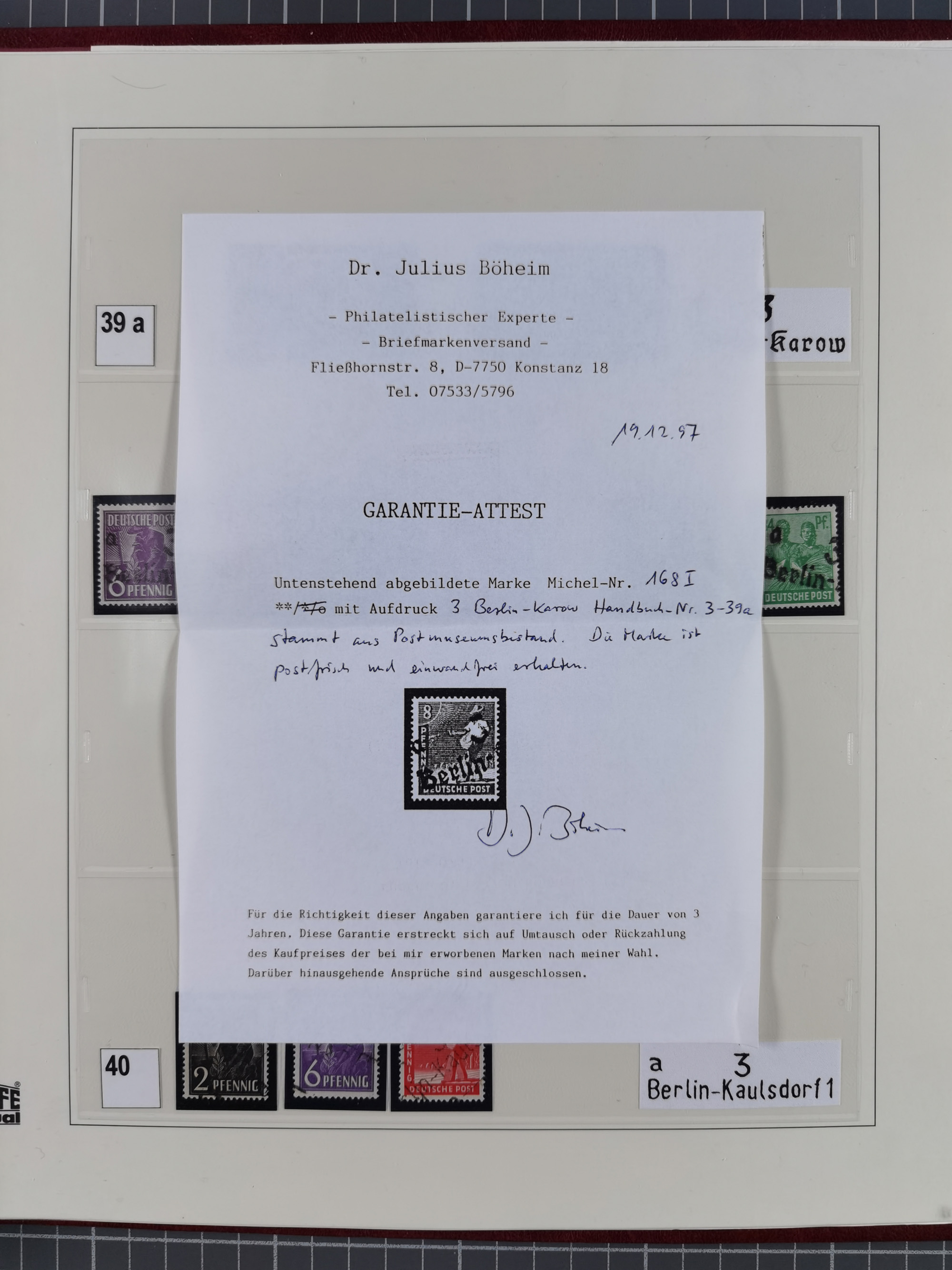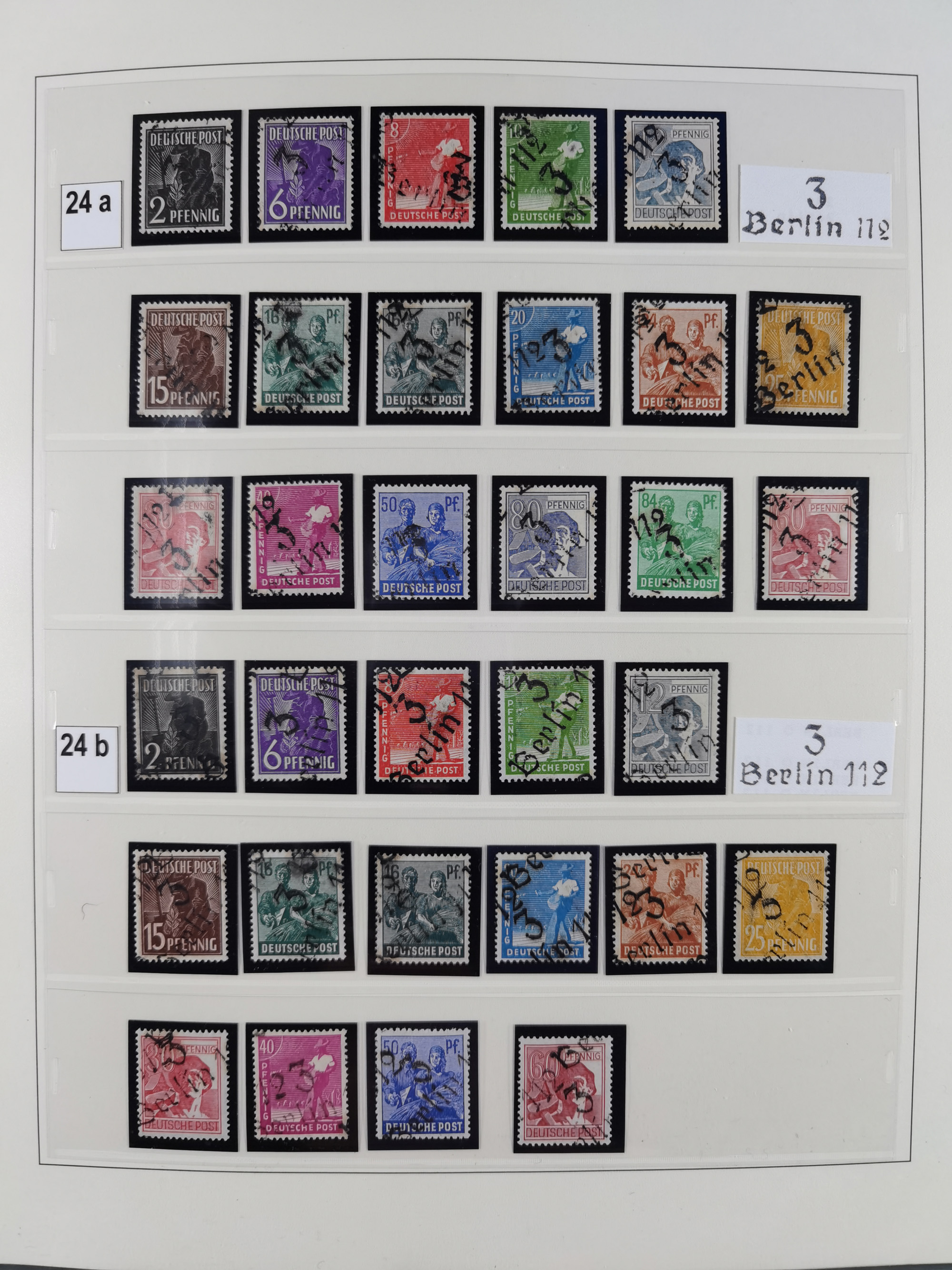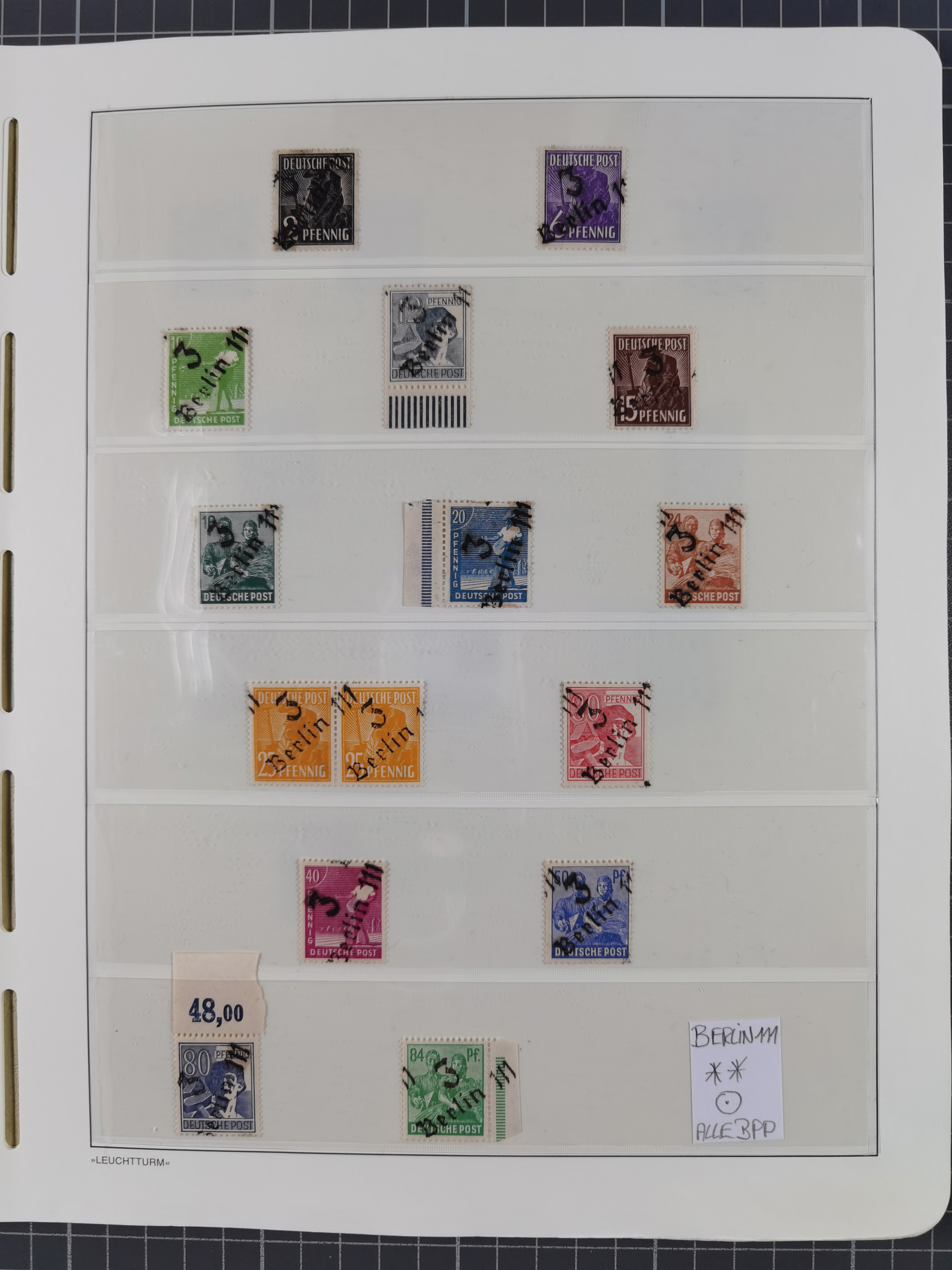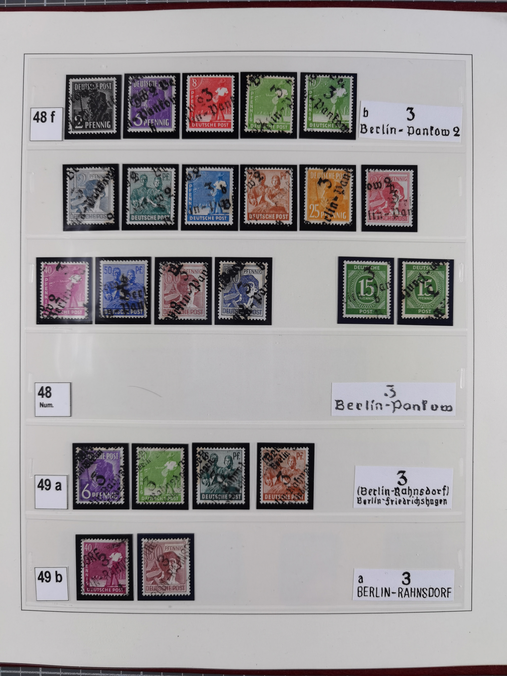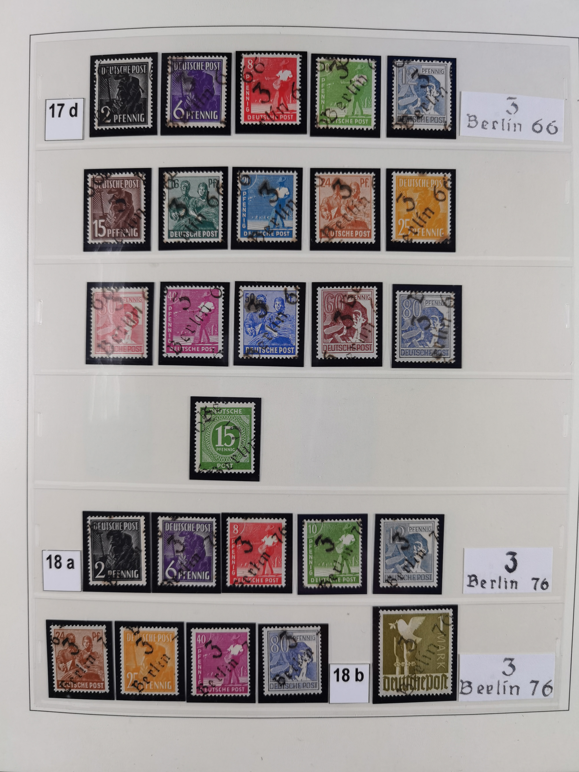 1948, sehr reichhaltige fast ausschließlich postfrische Material-Sammlung des Bezirk 3 mit vielen hunderten Marken sauber sortiert nach Handstempelvarianten, inkl. 45 Ganzsachen, dabei viele kpl. Ausgaben, seltene Handstempel sowie bessere Wertstufen, dabei u.a. schablonierte Aufdrucke, farbige Aufdrucke, Marken aus Postmuseumsbeständen aus z.B. Biesdorf, Blankenburg, Buchholz, etc., ferner Mi.-Nr. 168I und 177I mit ARGE-Nr. 39a aus Postmuseumsbestand, 174I mit 41f in violett, IIaIc, 170 mit 2e in violett, 179bI mit 2d ungebraucht, IIaI mit 18b, 179aI mit 36, IsI mit 36, IIdI mit 38b sowie 38d, 174I mit 41f in violett, 179aI mit 42b, sechs Werte mit seltenem 49a (5) bzw. 49b (1), etc. etc., insgesamt über 40 Exemplare Mi.-Nr. 179Ia sowie 10 Exemplare Mi.-Nr. IIdI, fast ausnahmslos sign. Busse BPP, Kalb BPP, Herbst BPP, Böheim BPP bzw. 38 Befunde und 2 Garantie-Atteste, wenige Fälschungen, gute Erhaltung, in drei Alben und auf Blättern