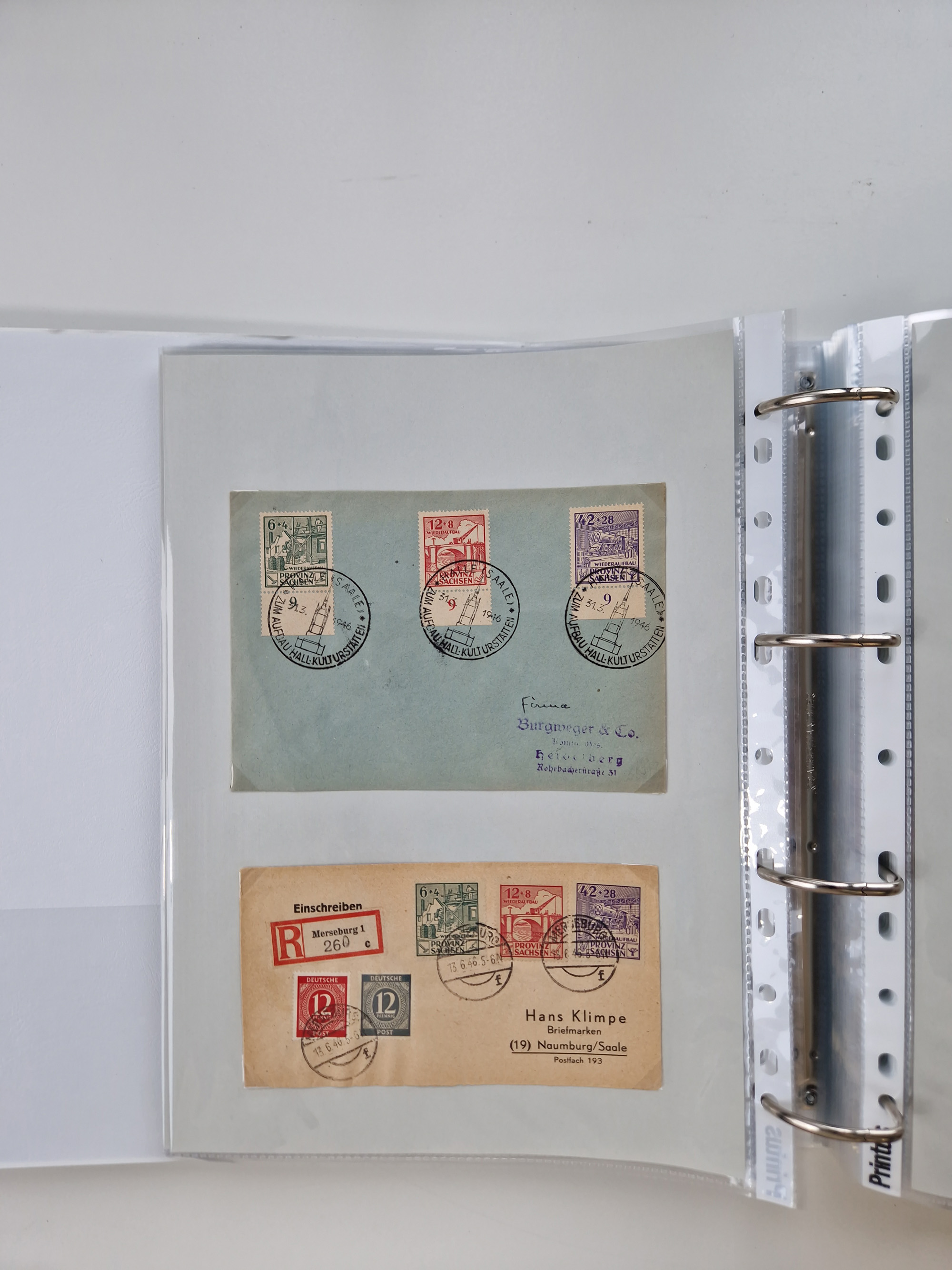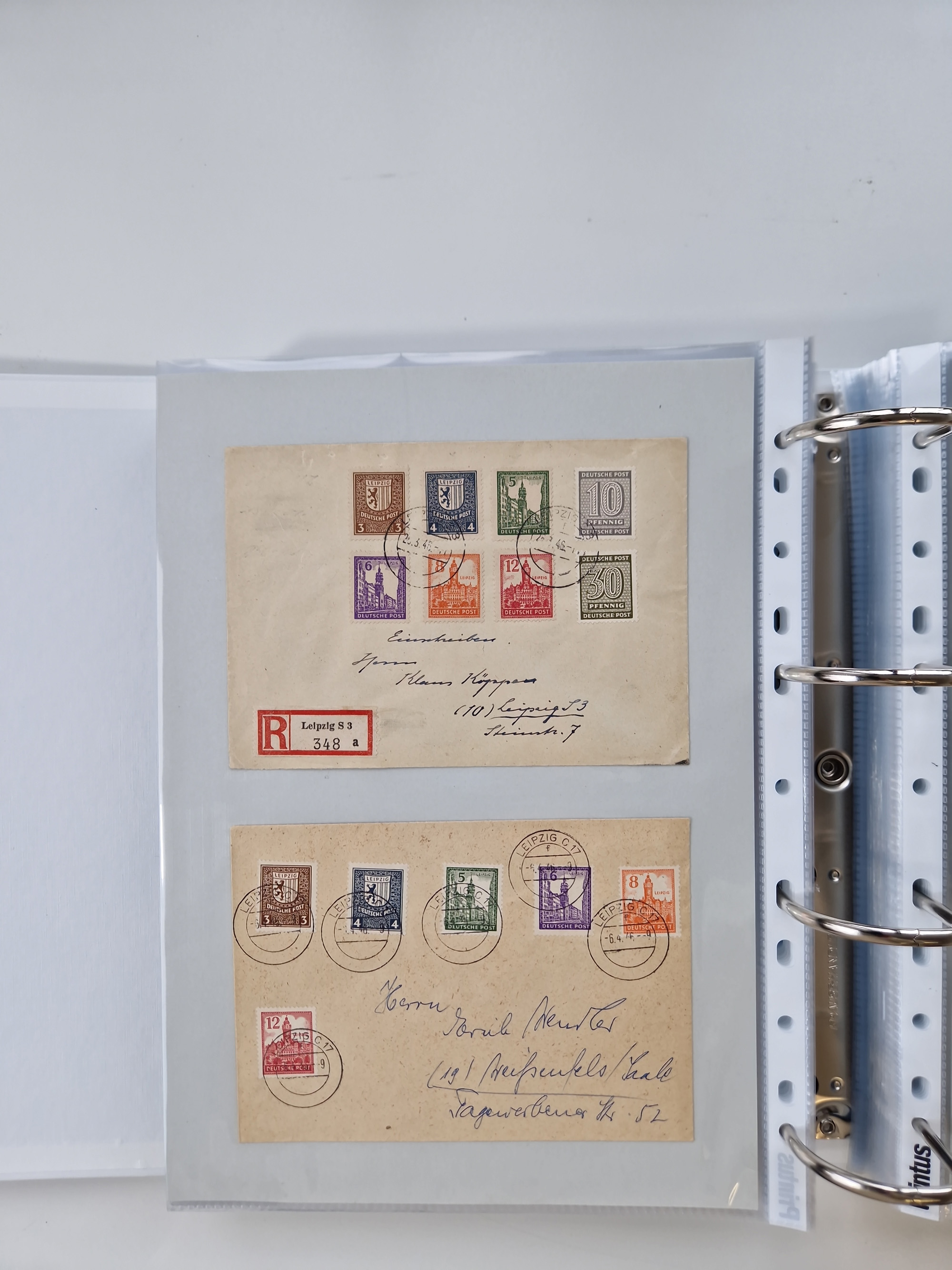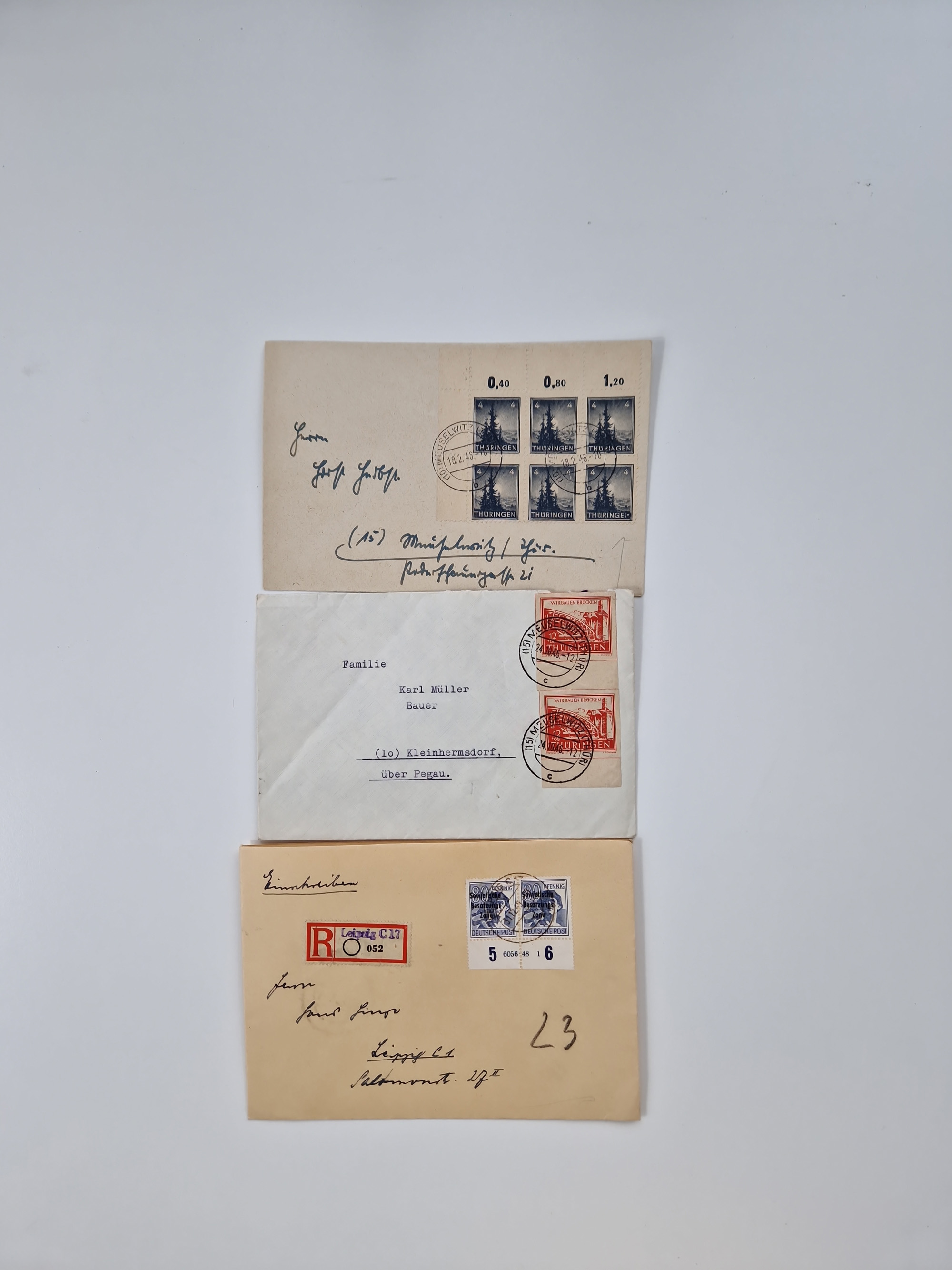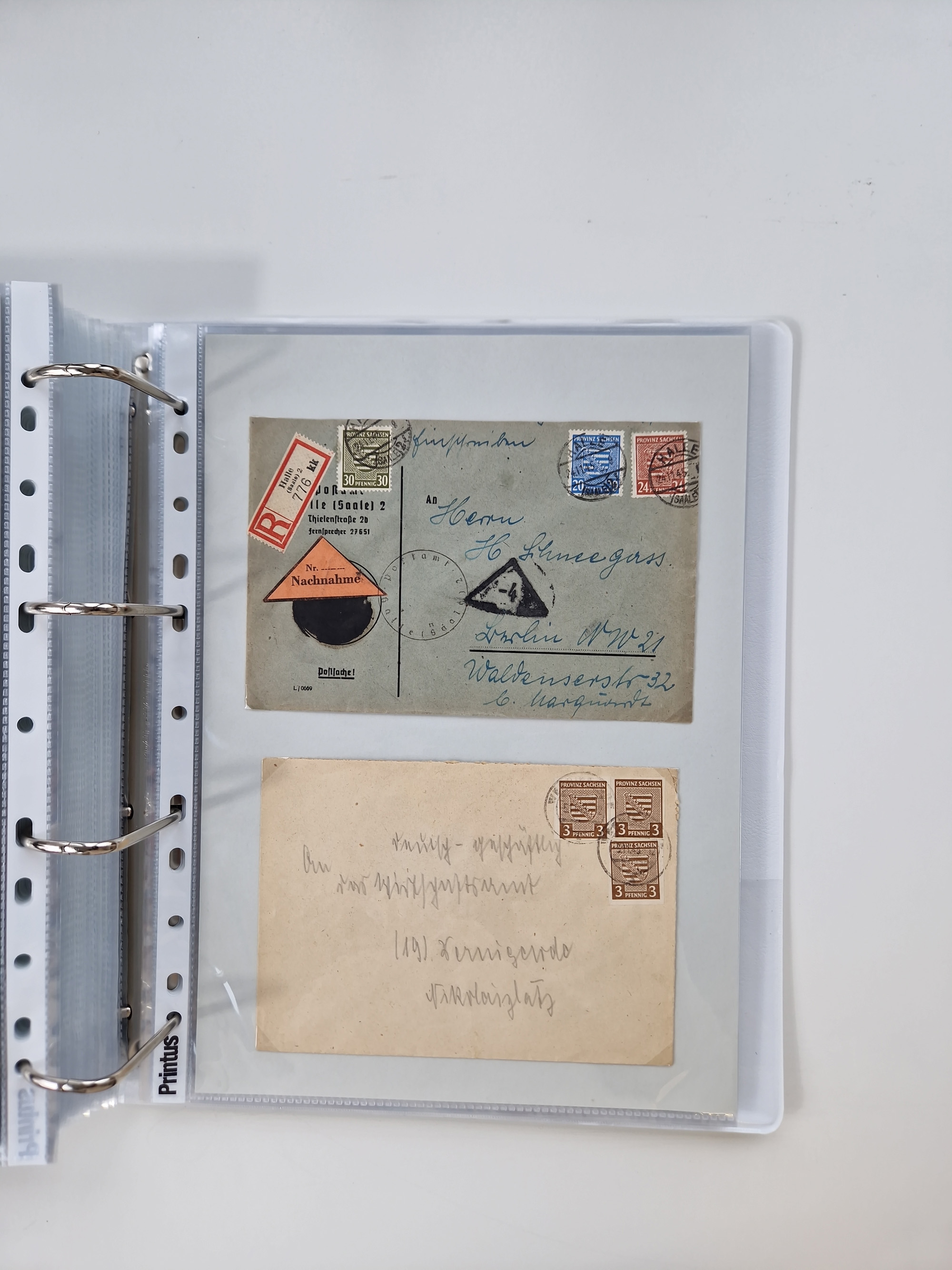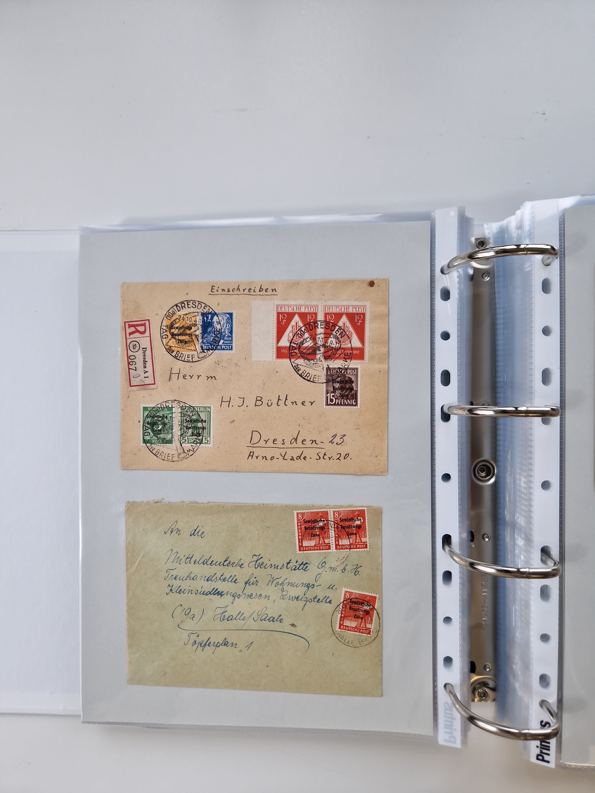 1945/48, geschätzt 200-300 Briefe mit Sammlerpost, vielen R-Briefen, mehrere Briefe mit POL-Lochungen aus Halle inkl. Briefe mit ZU, Notstempel, Gebühr bezahlt, Zensuren, Gebührenmeldung mit senkrechtem Paar Arbeiter 60 Pfg., Zehnfachfrankaturen mit Mehrfachfrankaturen bis 84 Pfg. und fünf R-Briefe mit Amts-R-Zettel von Bad Nauheim mit Buchstaben “B", “E”, “G” und “J” (einmal ohne Buchstaben), meist in guter Erhaltung