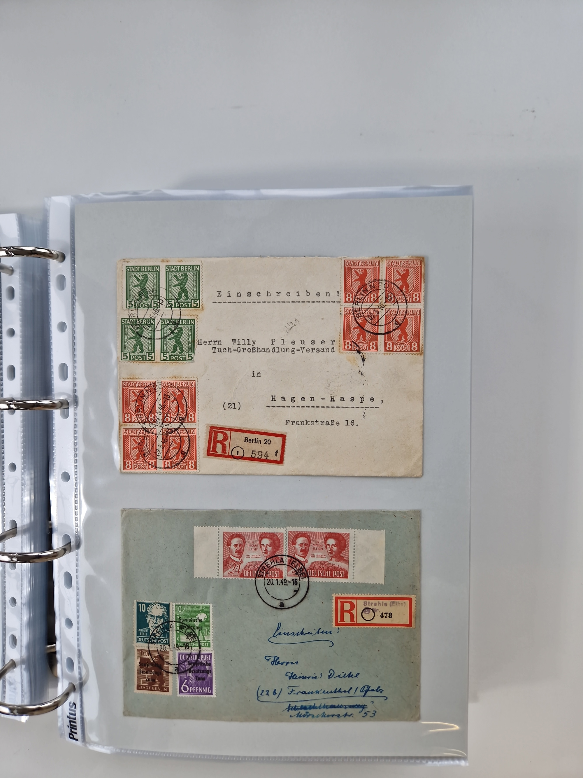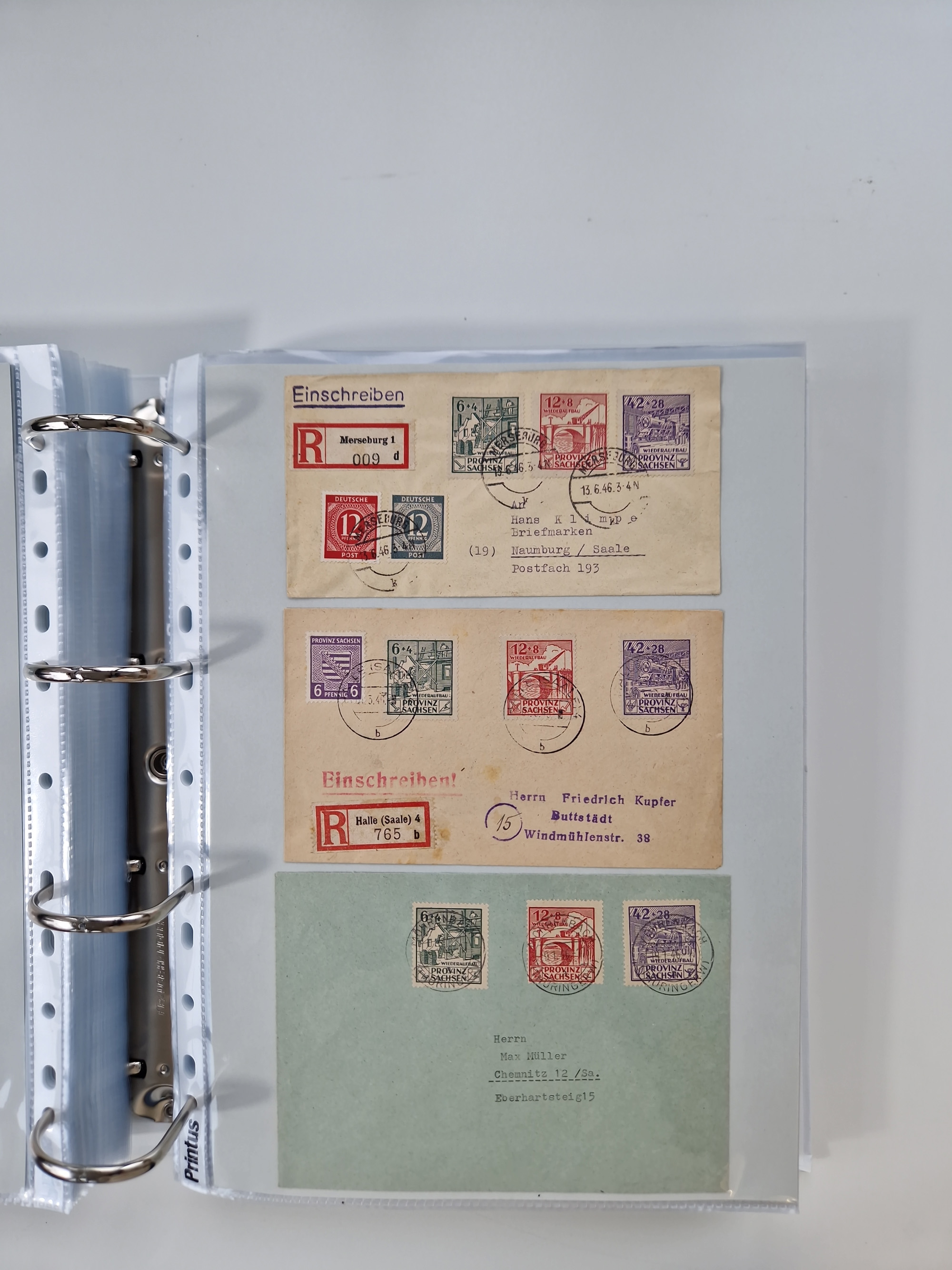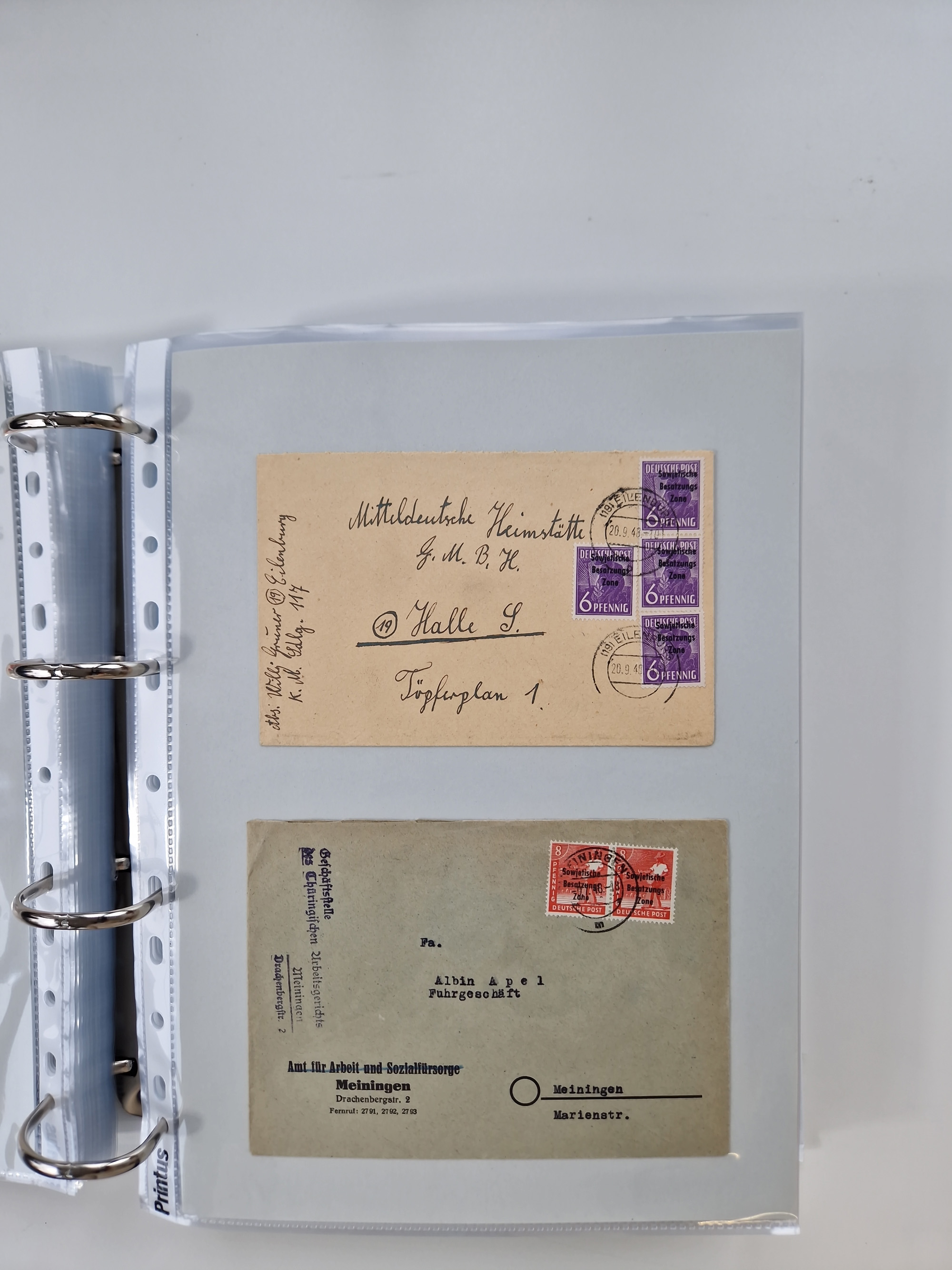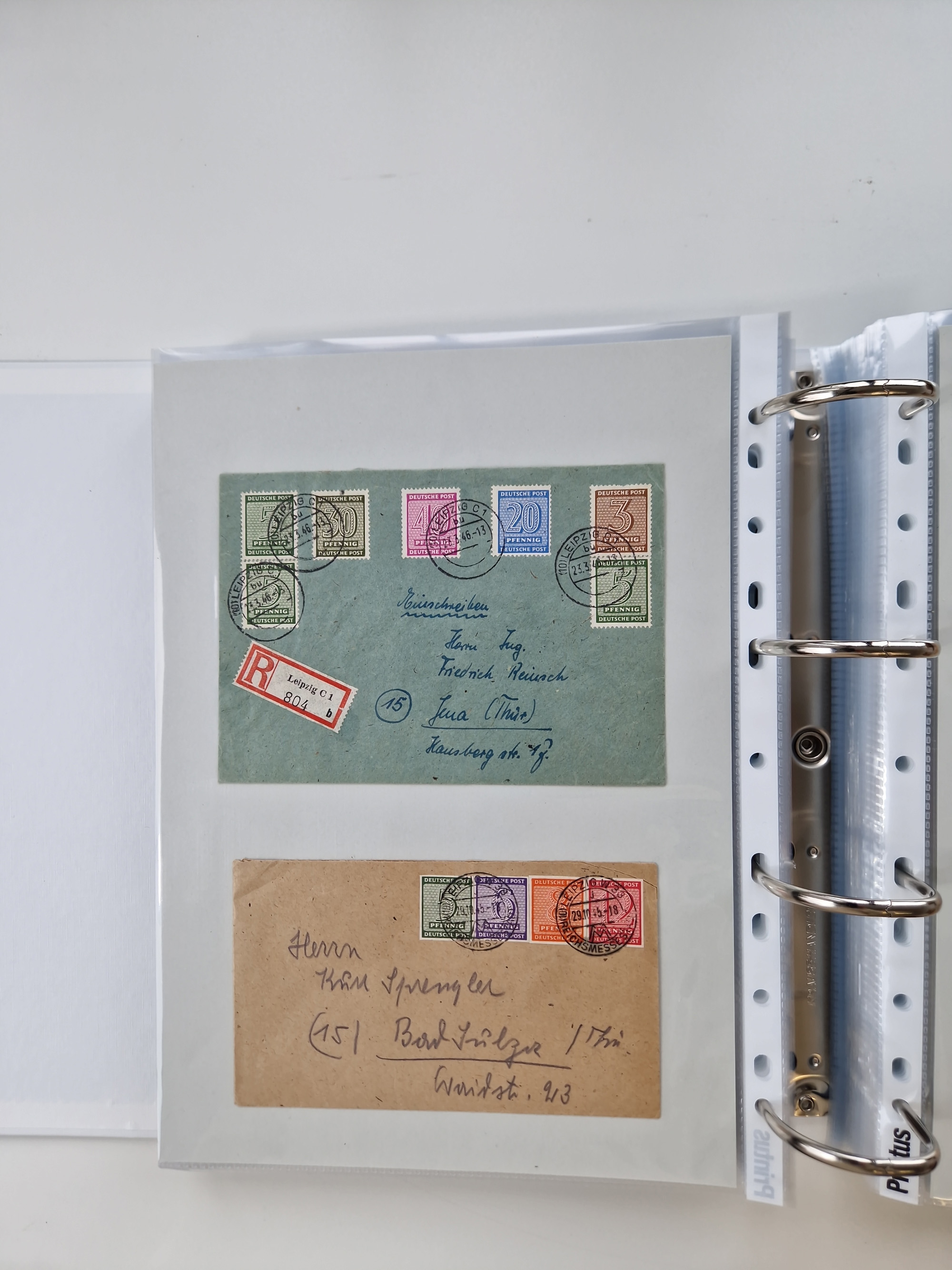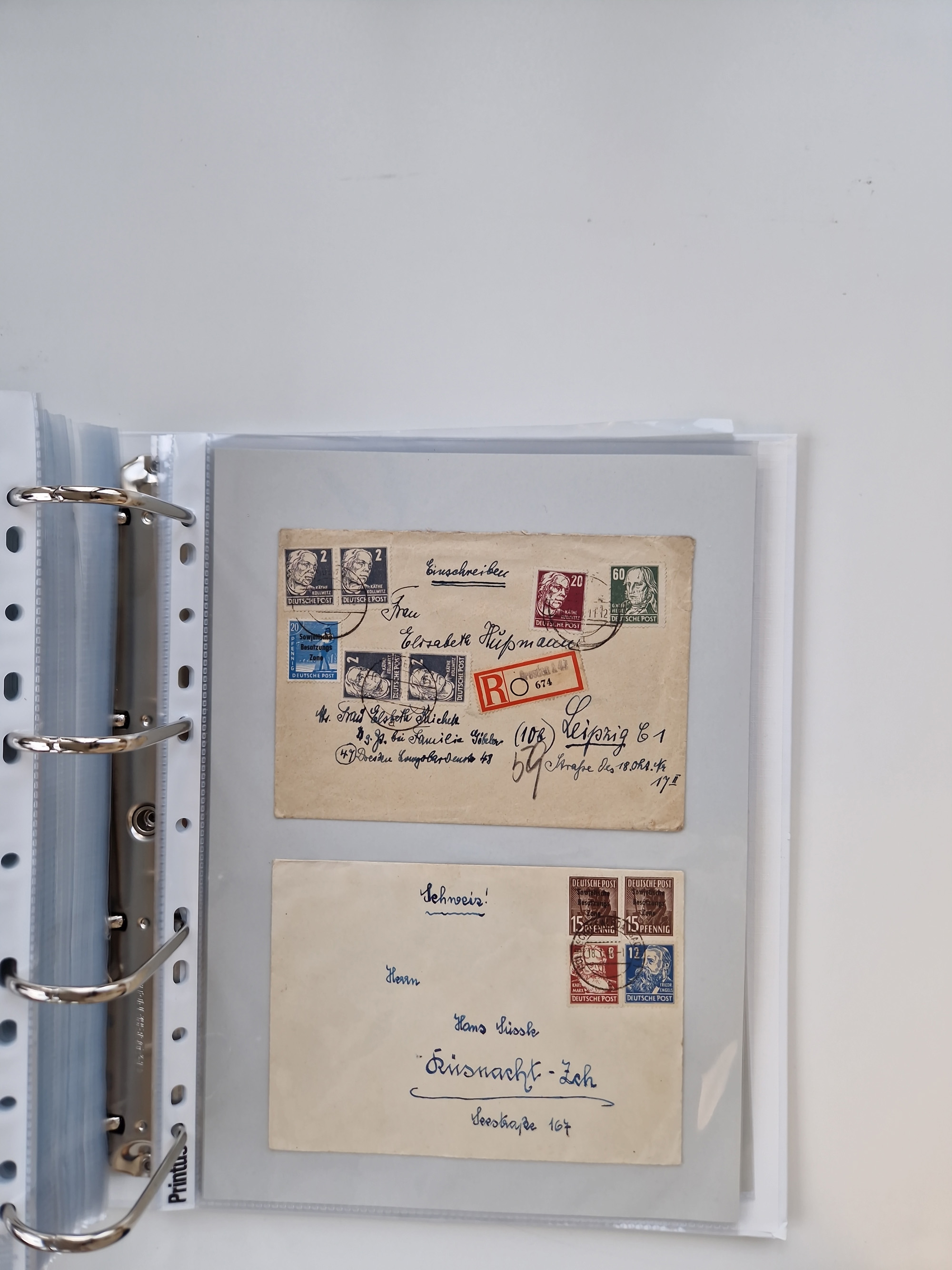 1945/48, geschätzt 200-300 Briefe mit Sammlerpost, vielen R-Briefen, mehrere Briefe mit POL-Lochungen aus Halle inkl. Briefe mit ZU, Notstempel, Gebühr bezahlt, Zensuren, Gebührenmeldung mit senkrechtem Paar Arbeiter 60 Pfg., Zehnfachfrankaturen mit Mehrfachfrankaturen bis 84 Pfg. und fünf R-Briefe mit Amts-R-Zettel von Bad Nauheim mit Buchstaben “B", “E”, “G” und “J” (einmal ohne Buchstaben), meist in guter Erhaltung