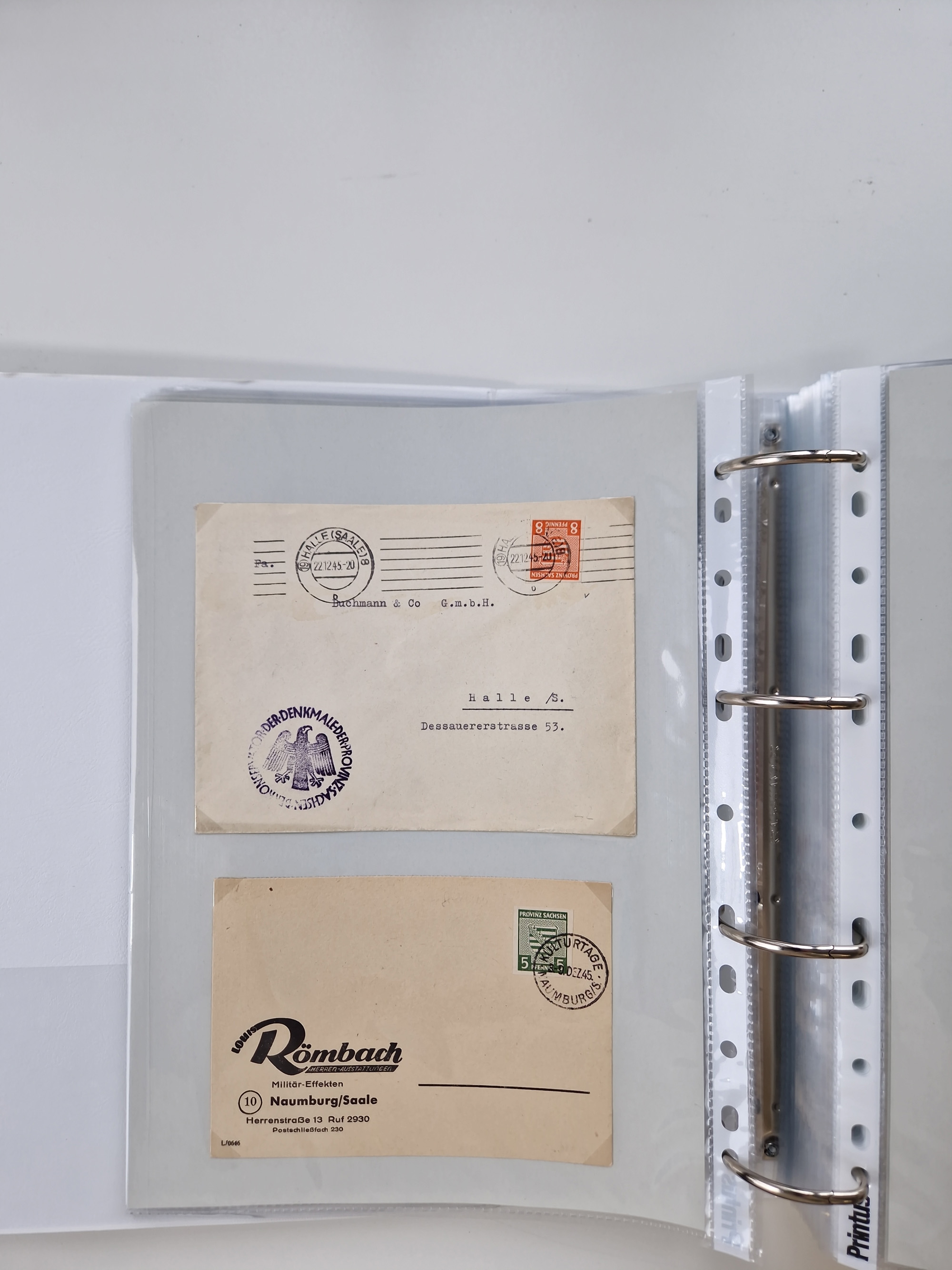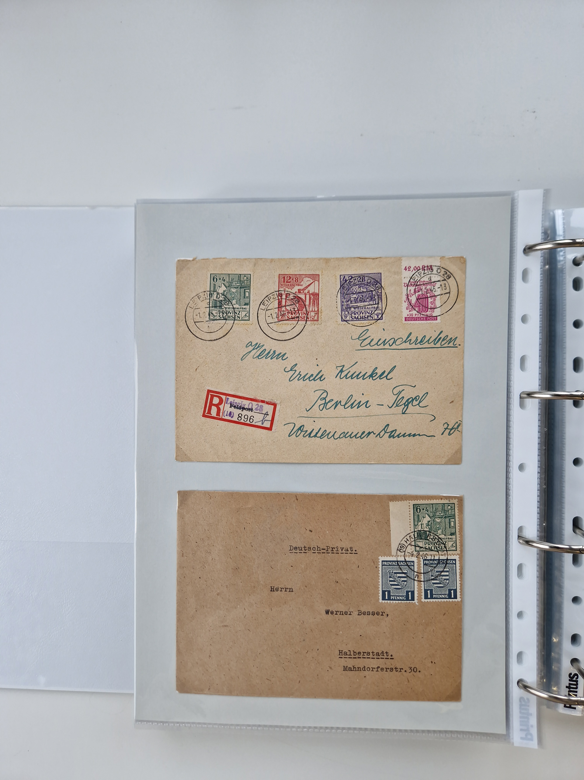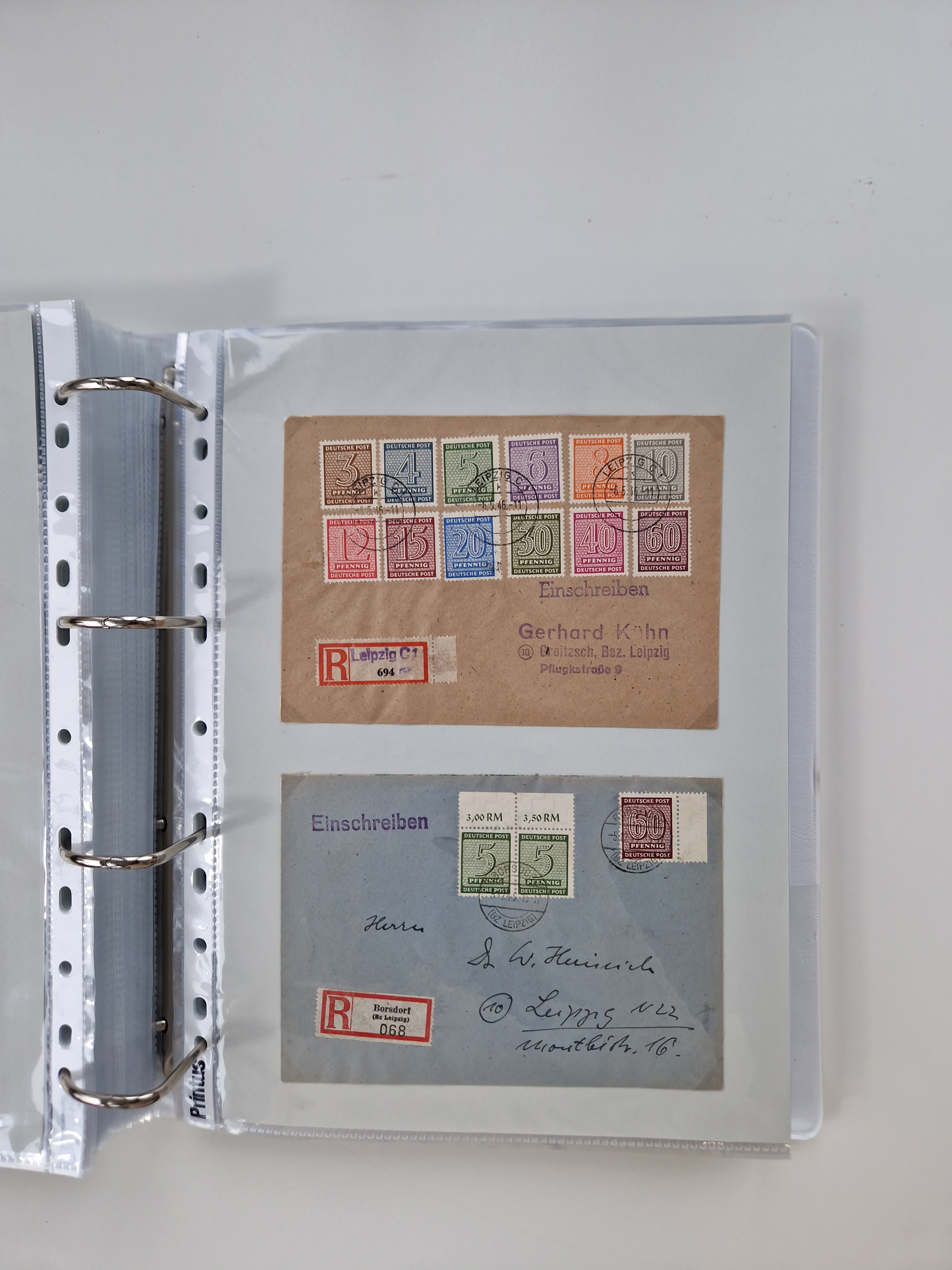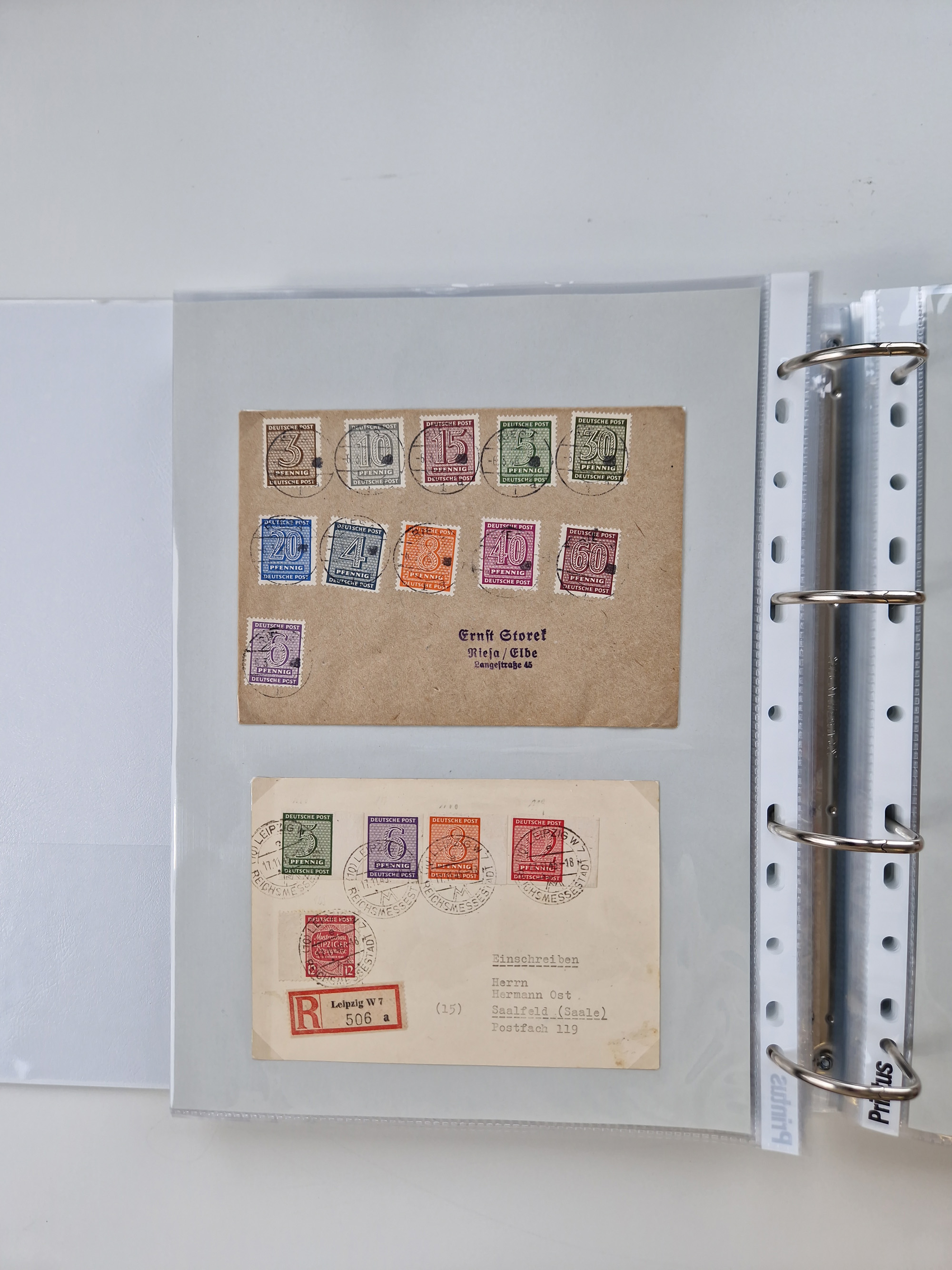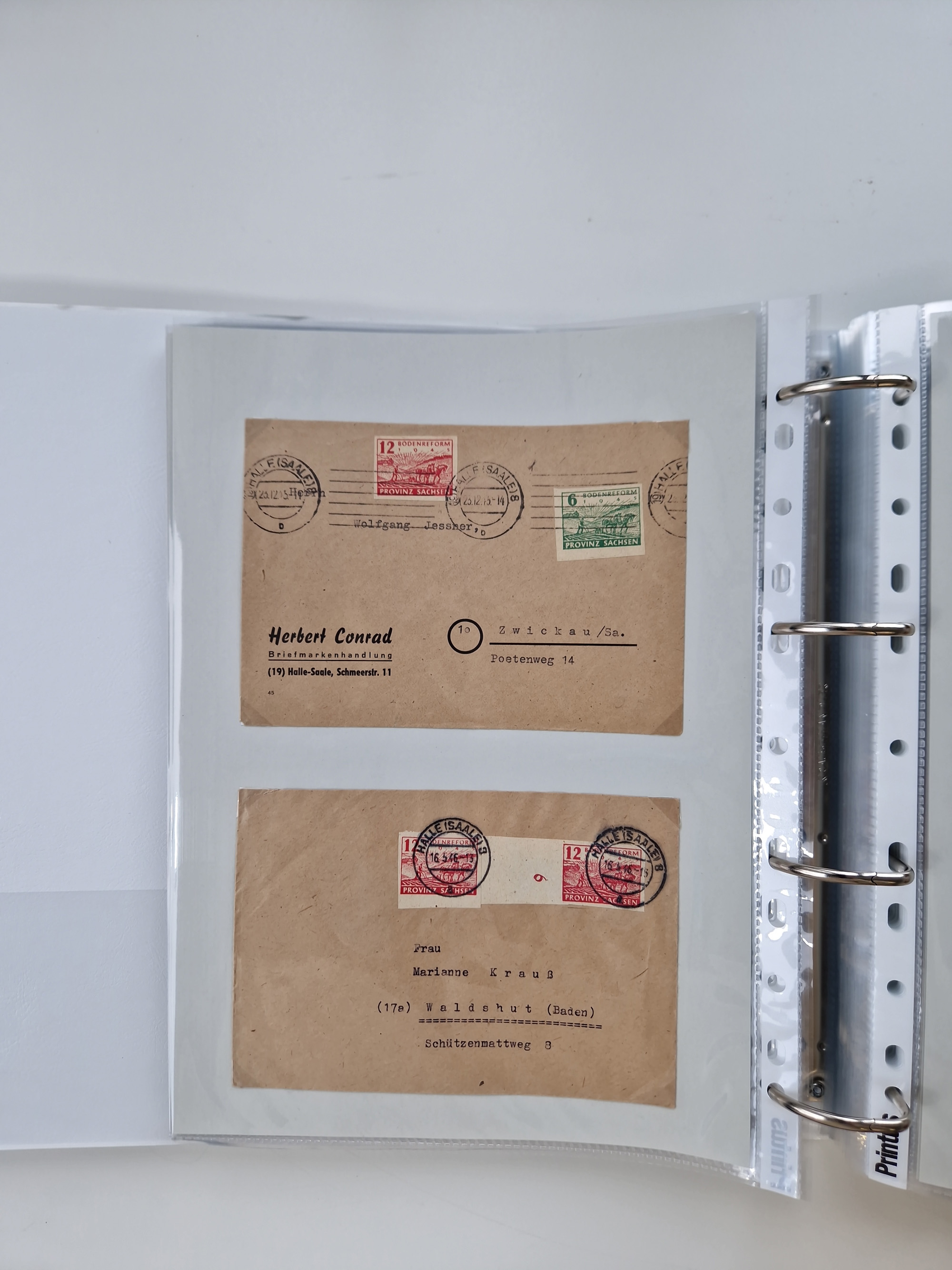 1945/48, geschätzt 200-300 Briefe mit Sammlerpost, vielen R-Briefen, mehrere Briefe mit POL-Lochungen aus Halle inkl. Briefe mit ZU, Notstempel, Gebühr bezahlt, Zensuren, Gebührenmeldung mit senkrechtem Paar Arbeiter 60 Pfg., Zehnfachfrankaturen mit Mehrfachfrankaturen bis 84 Pfg. und fünf R-Briefe mit Amts-R-Zettel von Bad Nauheim mit Buchstaben “B", “E”, “G” und “J” (einmal ohne Buchstaben), meist in guter Erhaltung