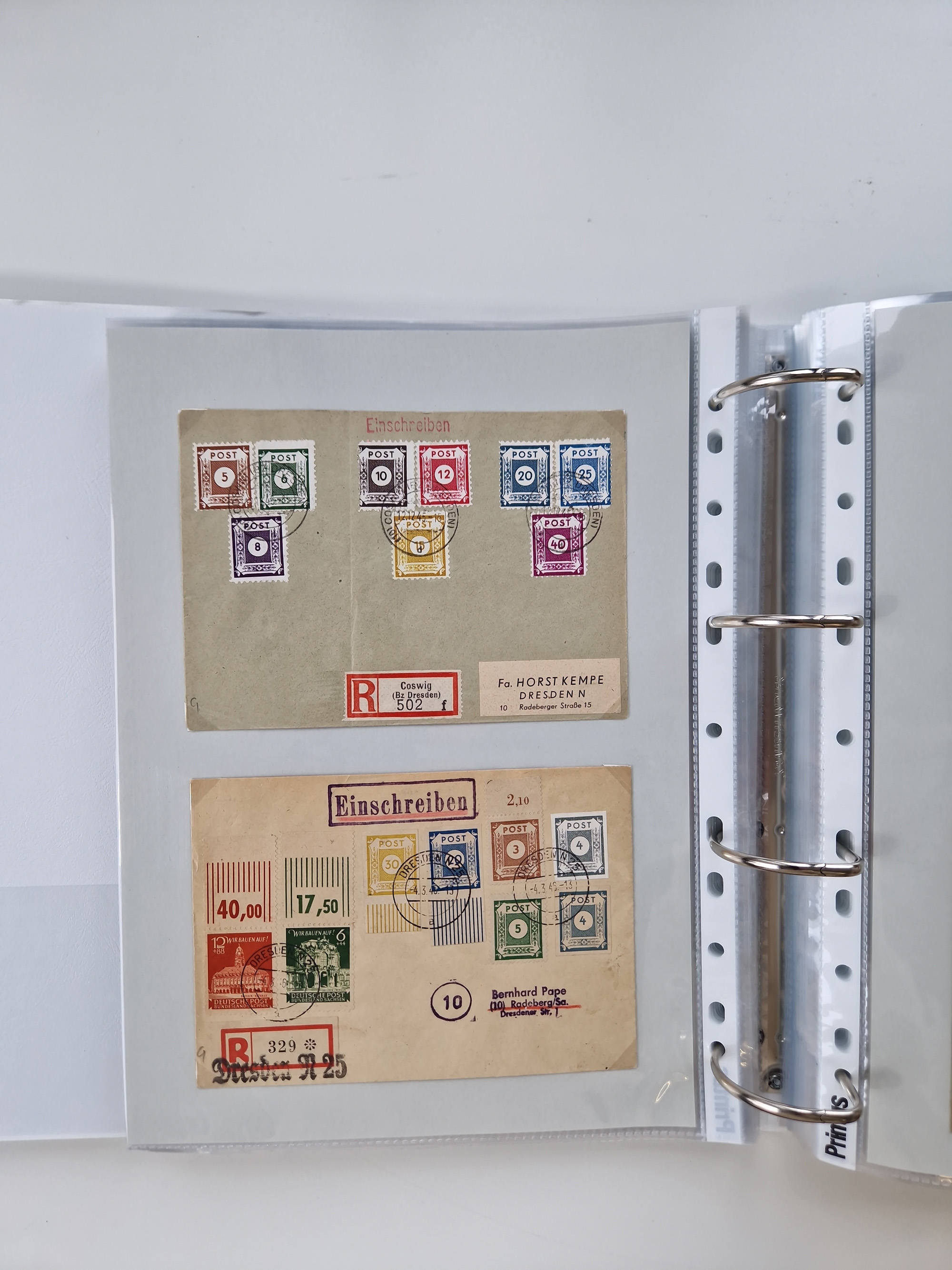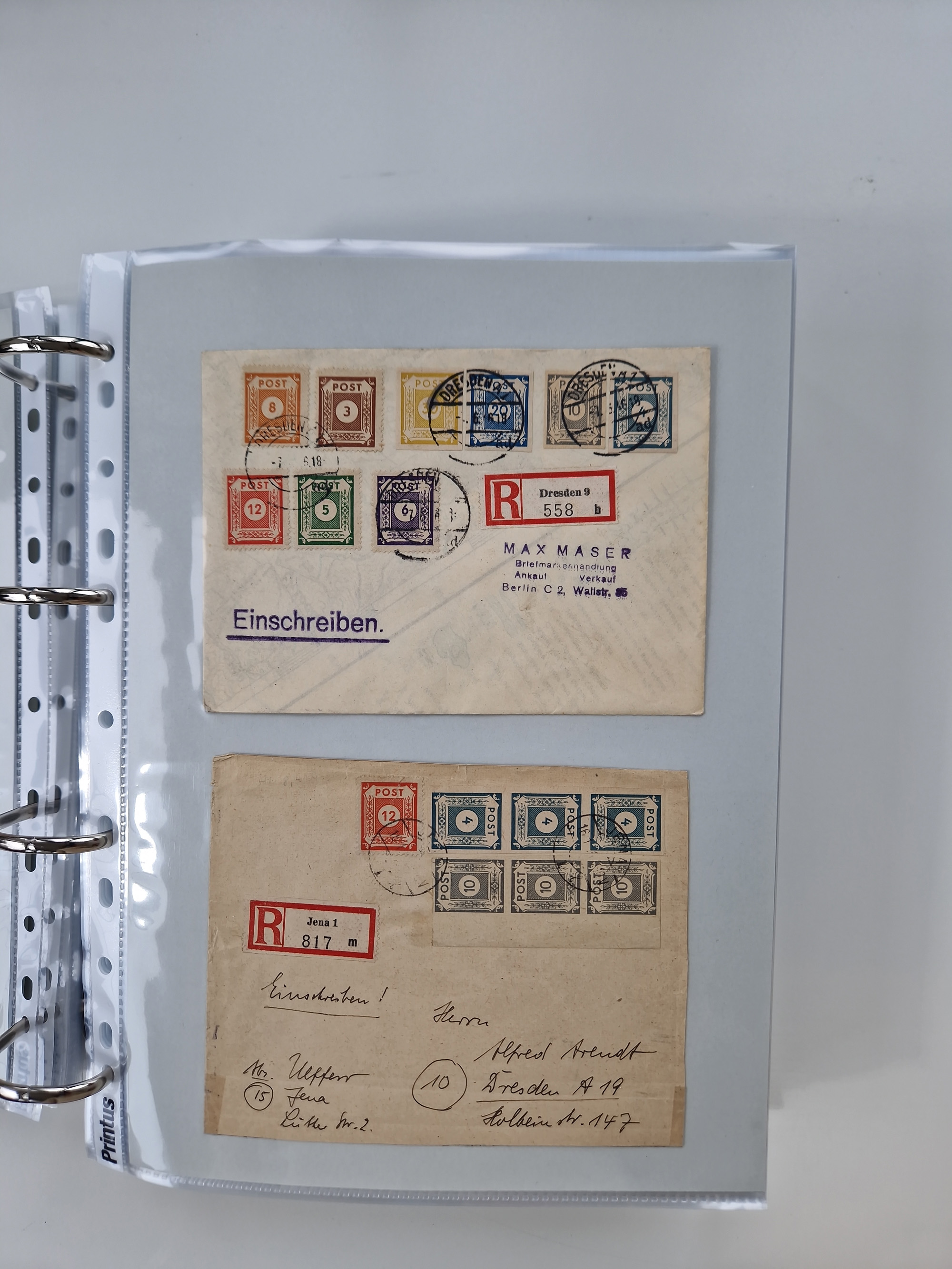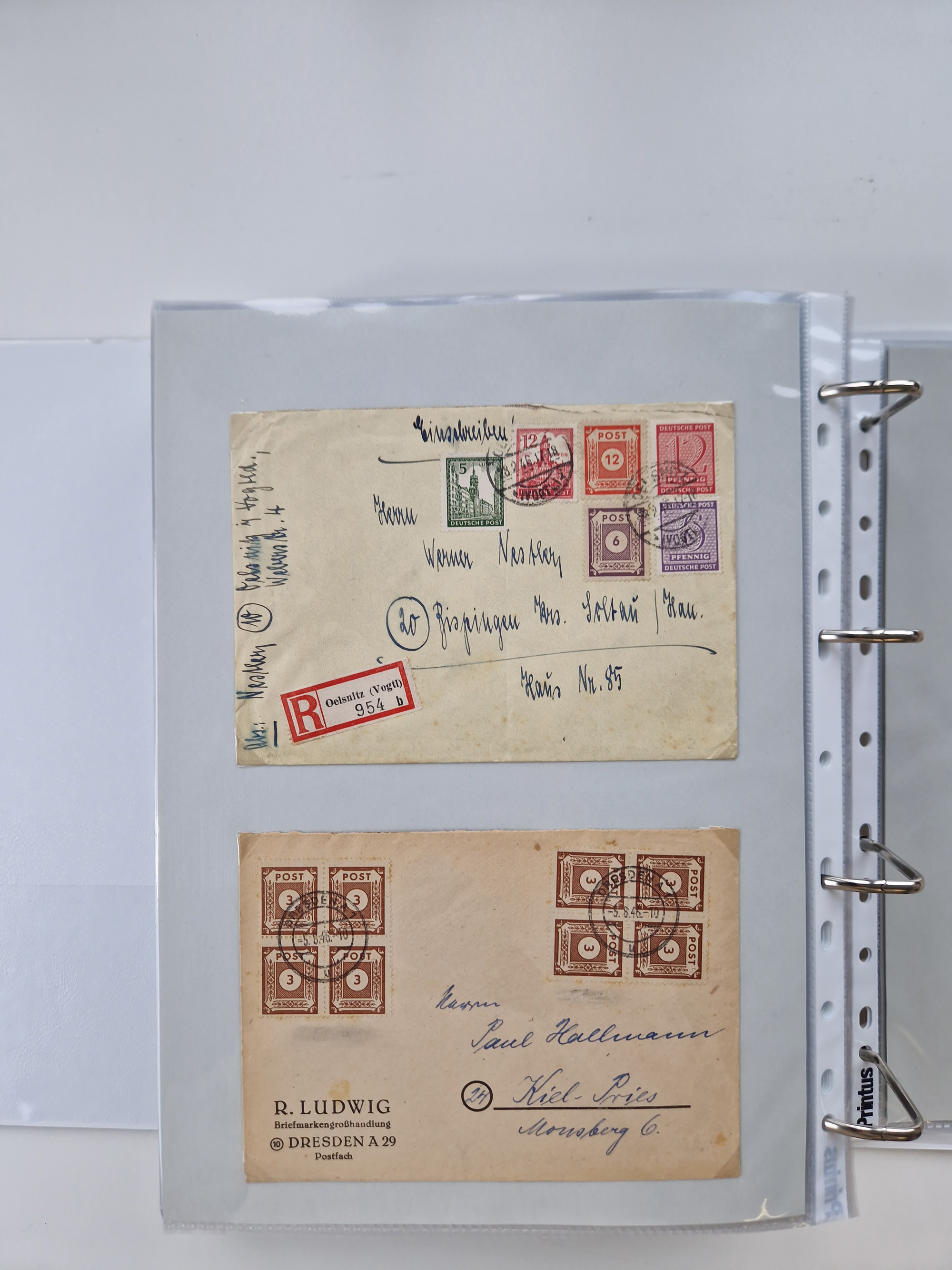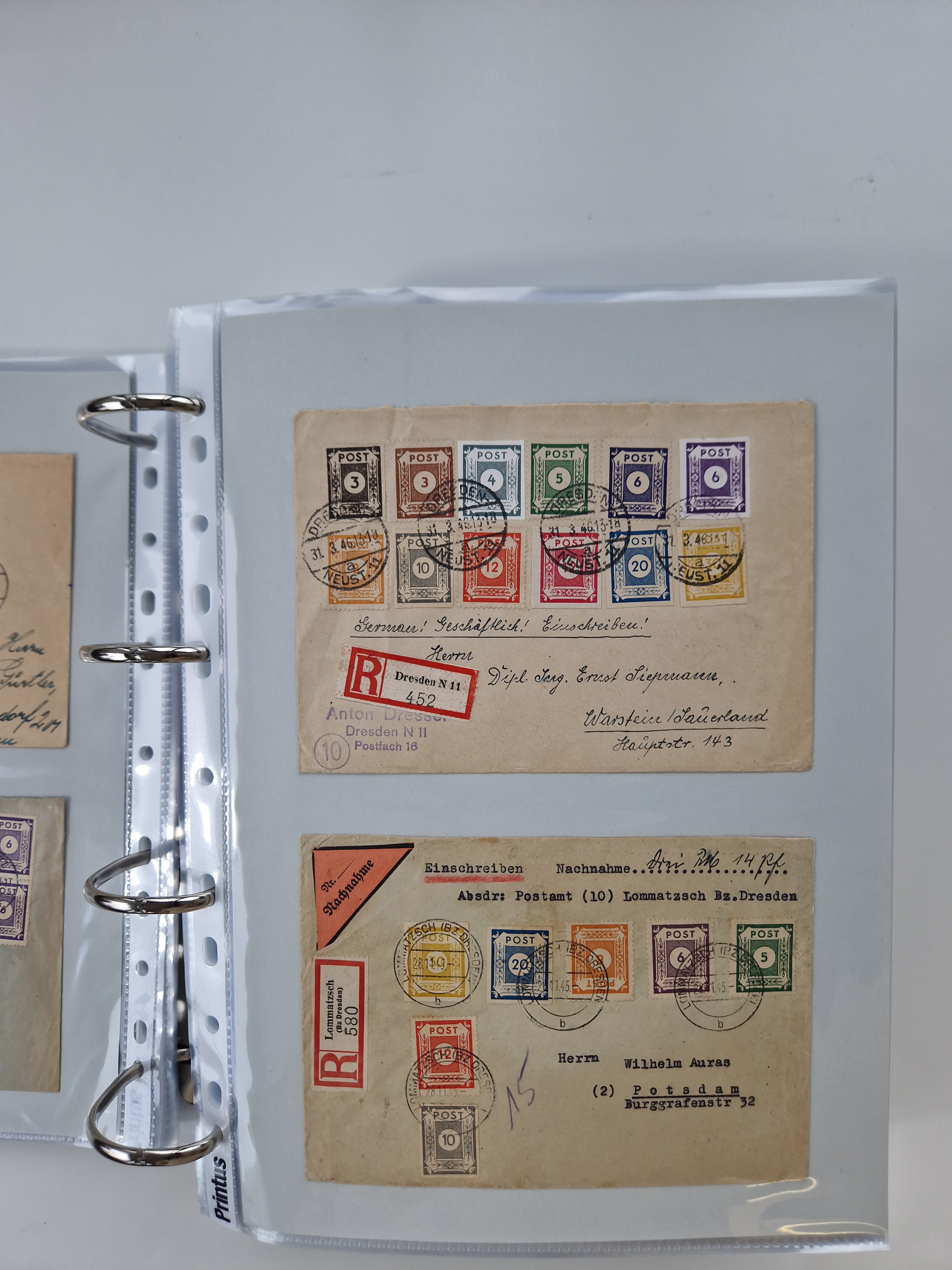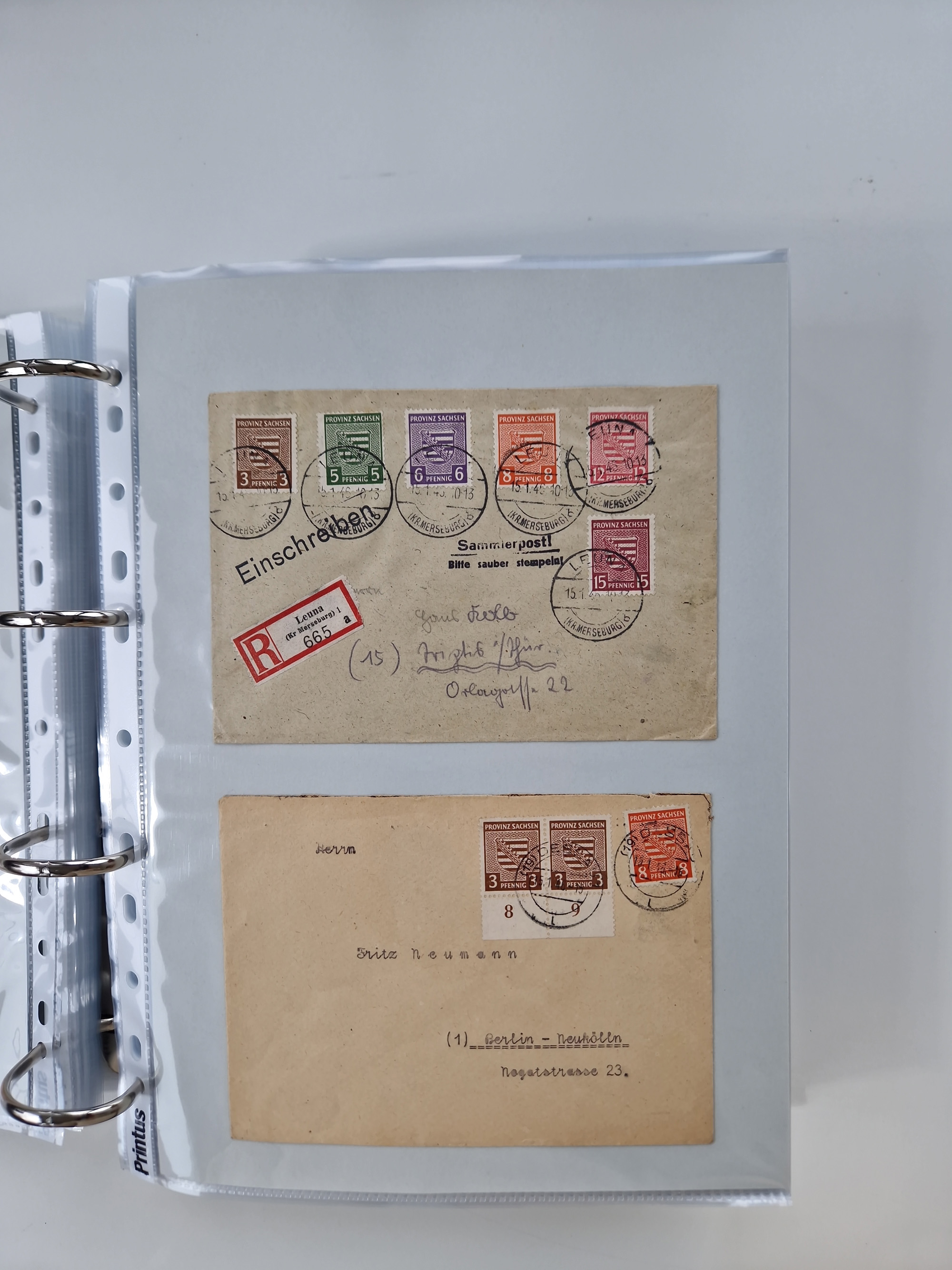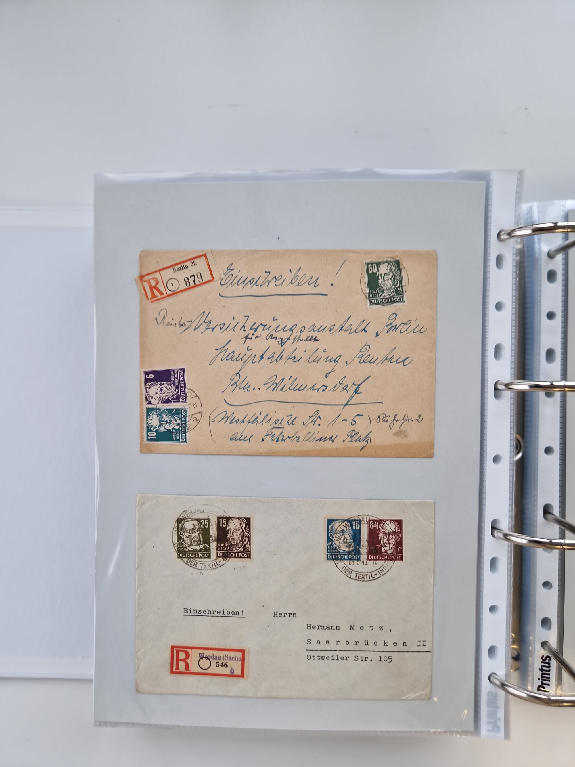 1945/48, geschätzt 200-300 Briefe mit Sammlerpost, vielen R-Briefen, mehrere Briefe mit POL-Lochungen aus Halle inkl. Briefe mit ZU, Notstempel, Gebühr bezahlt, Zensuren, Gebührenmeldung mit senkrechtem Paar Arbeiter 60 Pfg., Zehnfachfrankaturen mit Mehrfachfrankaturen bis 84 Pfg. und fünf R-Briefe mit Amts-R-Zettel von Bad Nauheim mit Buchstaben “B", “E”, “G” und “J” (einmal ohne Buchstaben), meist in guter Erhaltung