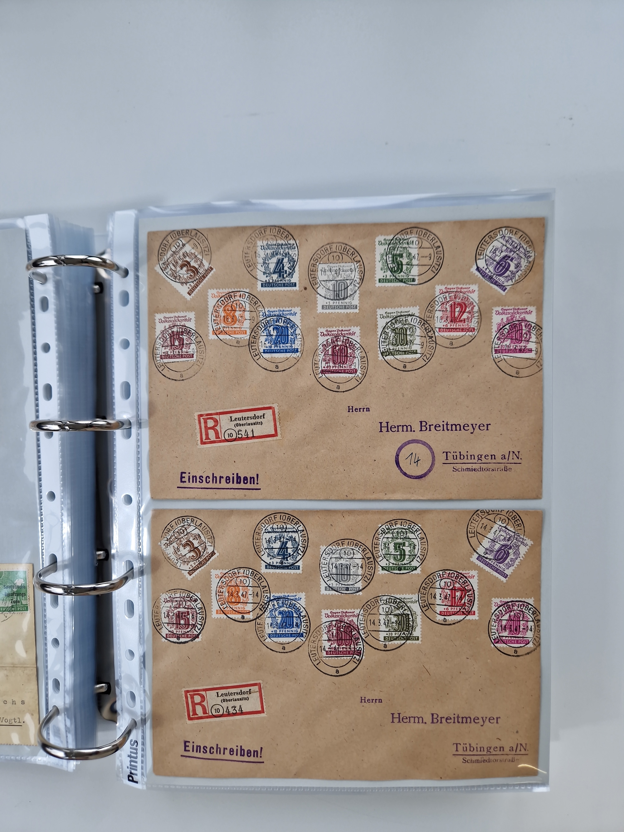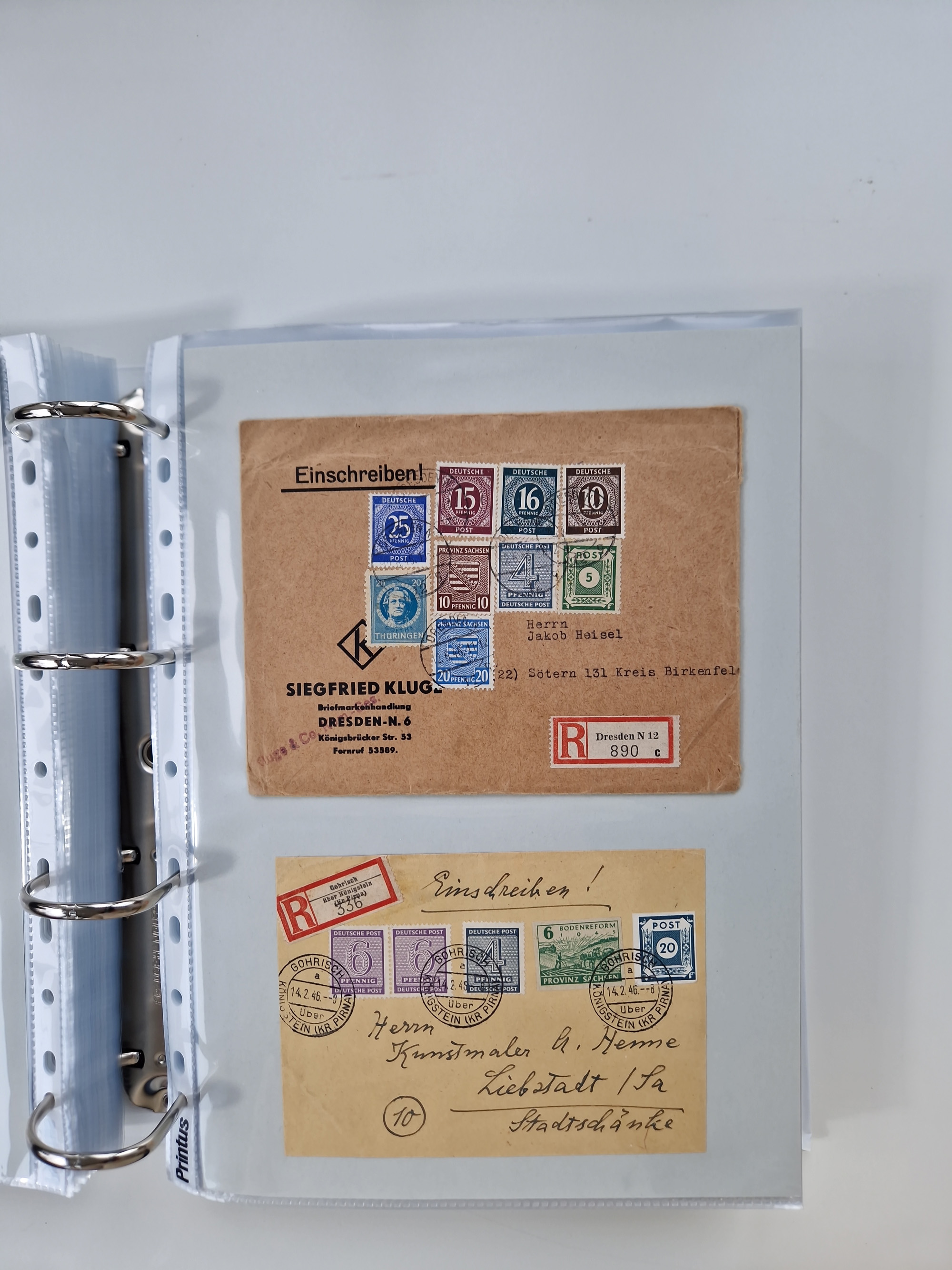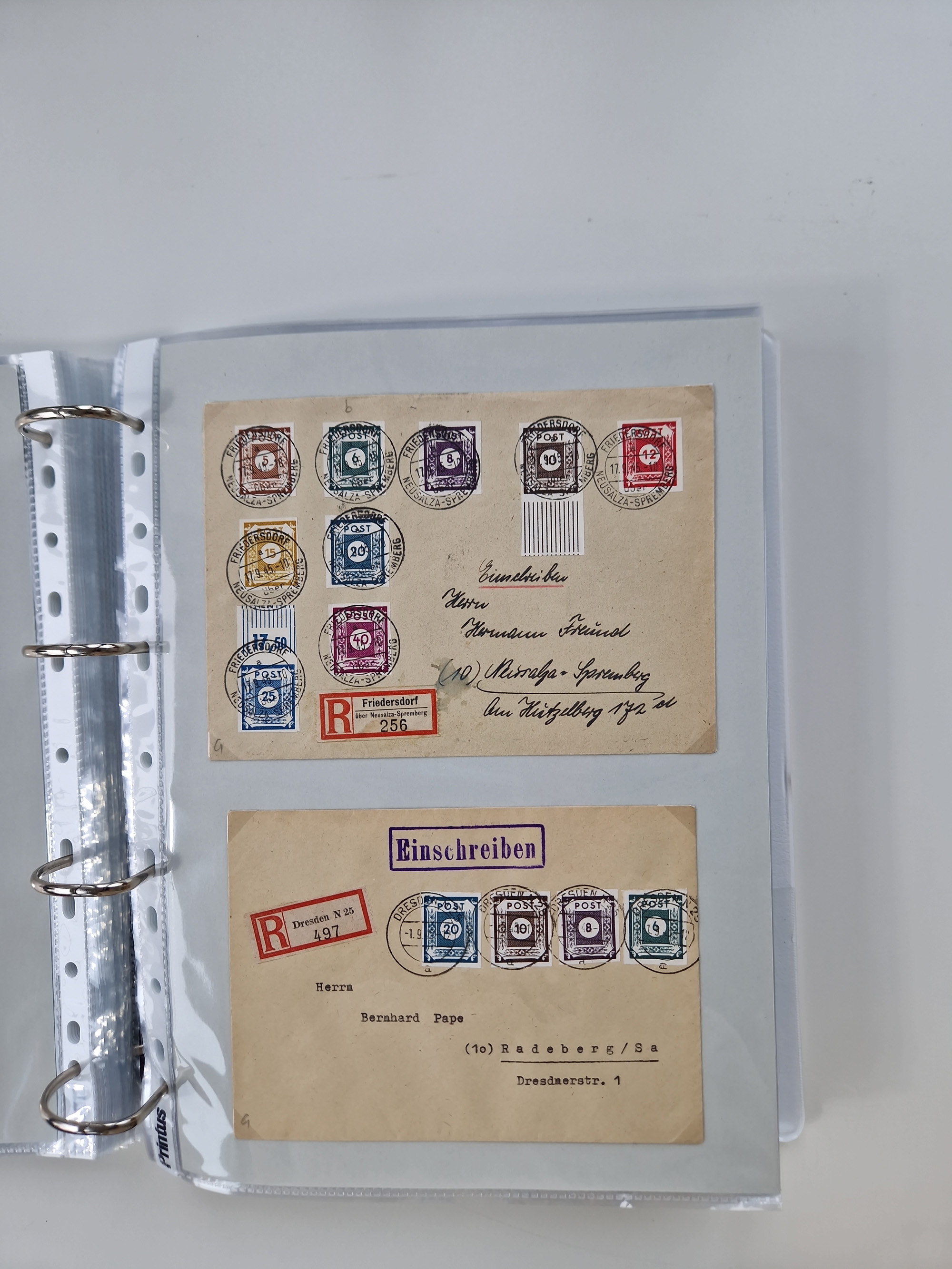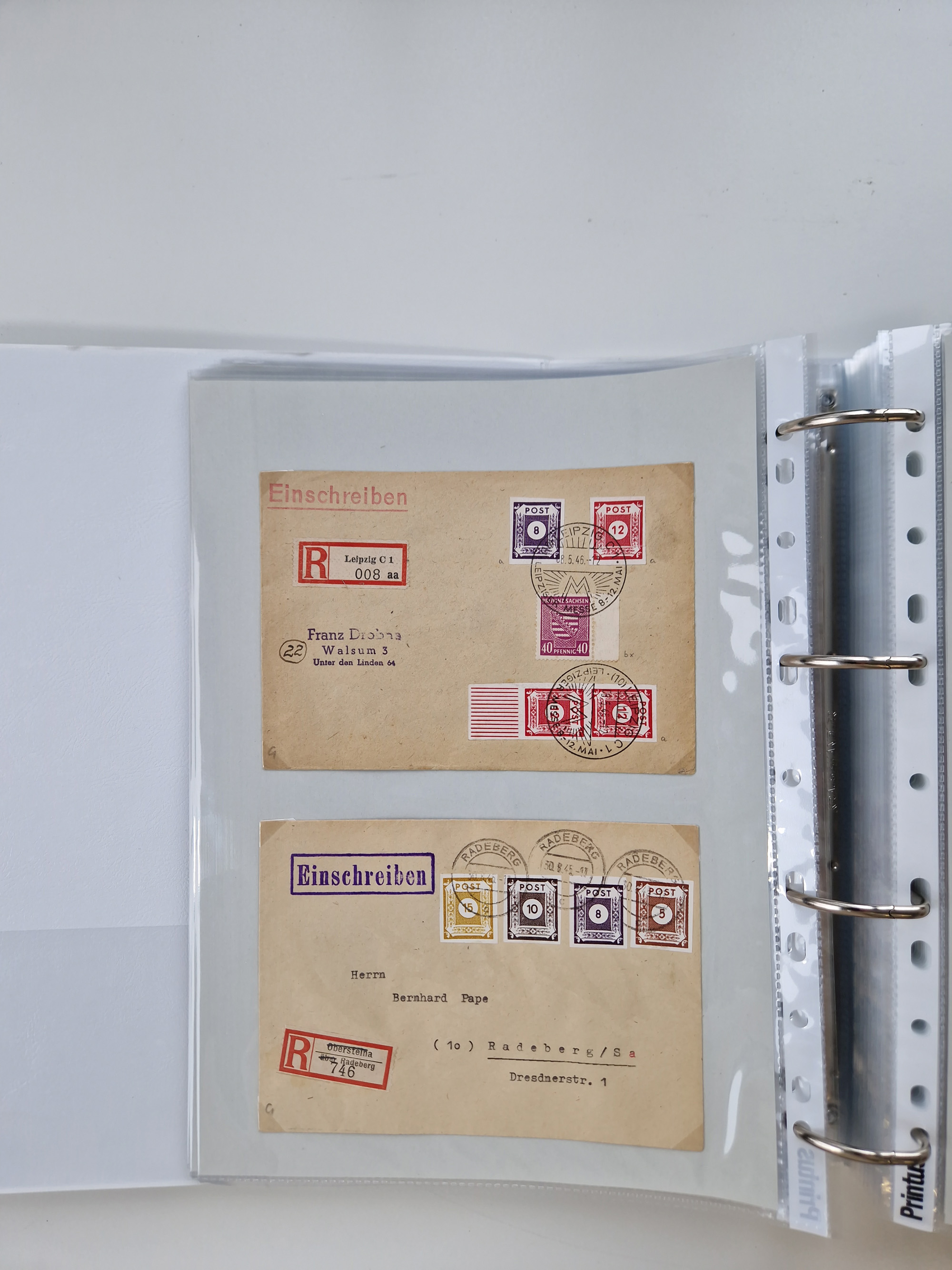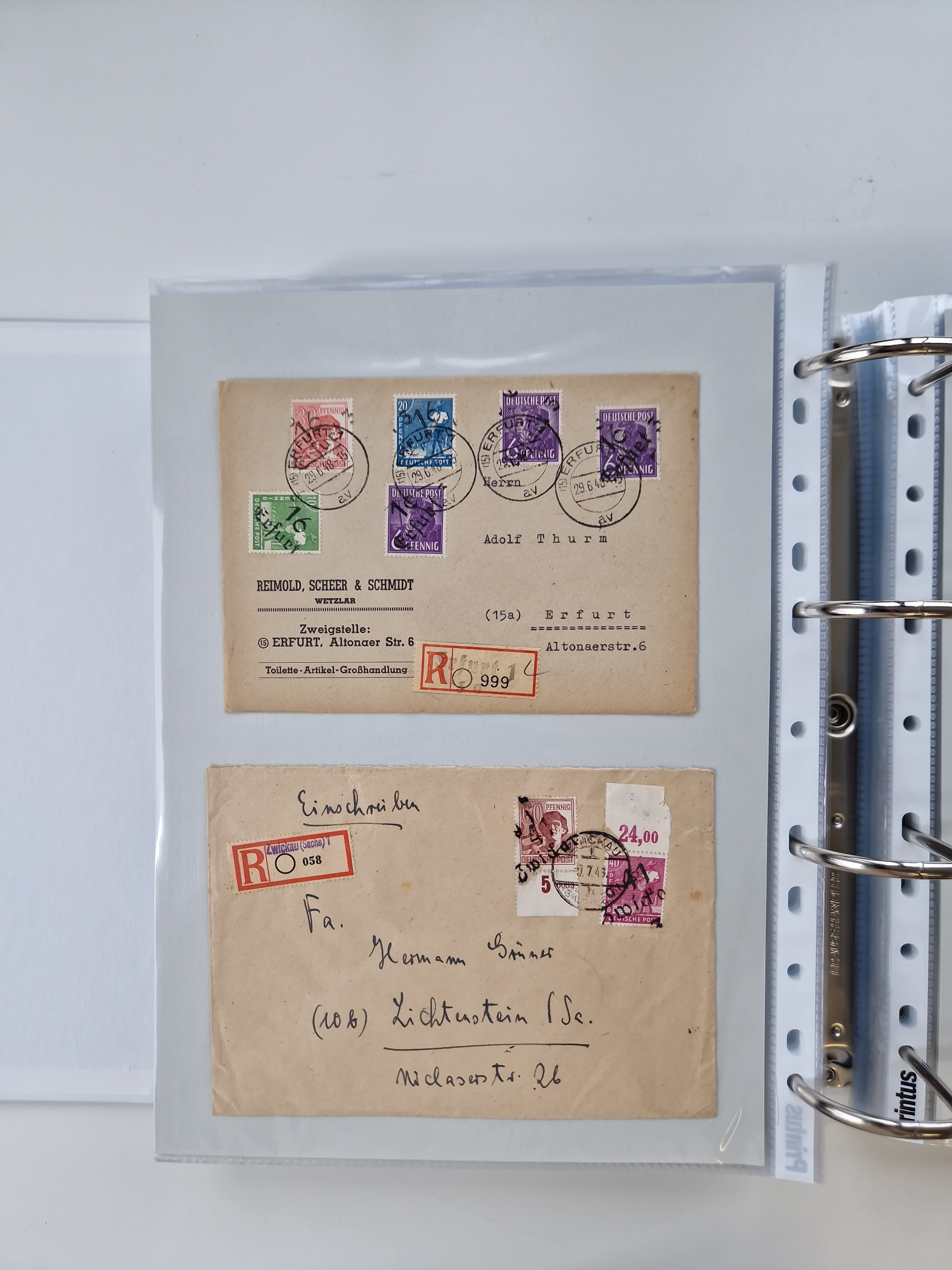 1945/48, geschätzt 200-300 Briefe mit Sammlerpost, vielen R-Briefen, mehrere Briefe mit POL-Lochungen aus Halle inkl. Briefe mit ZU, Notstempel, Gebühr bezahlt, Zensuren, Gebührenmeldung mit senkrechtem Paar Arbeiter 60 Pfg., Zehnfachfrankaturen mit Mehrfachfrankaturen bis 84 Pfg. und fünf R-Briefe mit Amts-R-Zettel von Bad Nauheim mit Buchstaben “B", “E”, “G” und “J” (einmal ohne Buchstaben), meist in guter Erhaltung