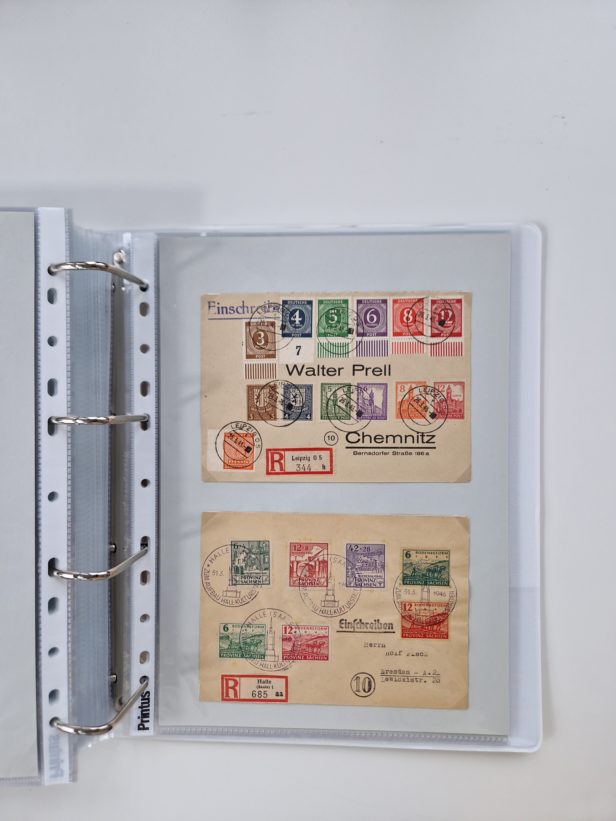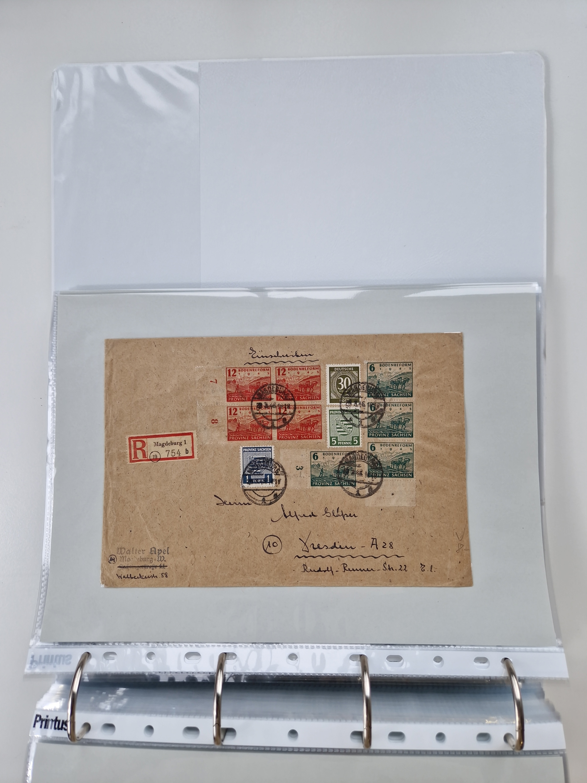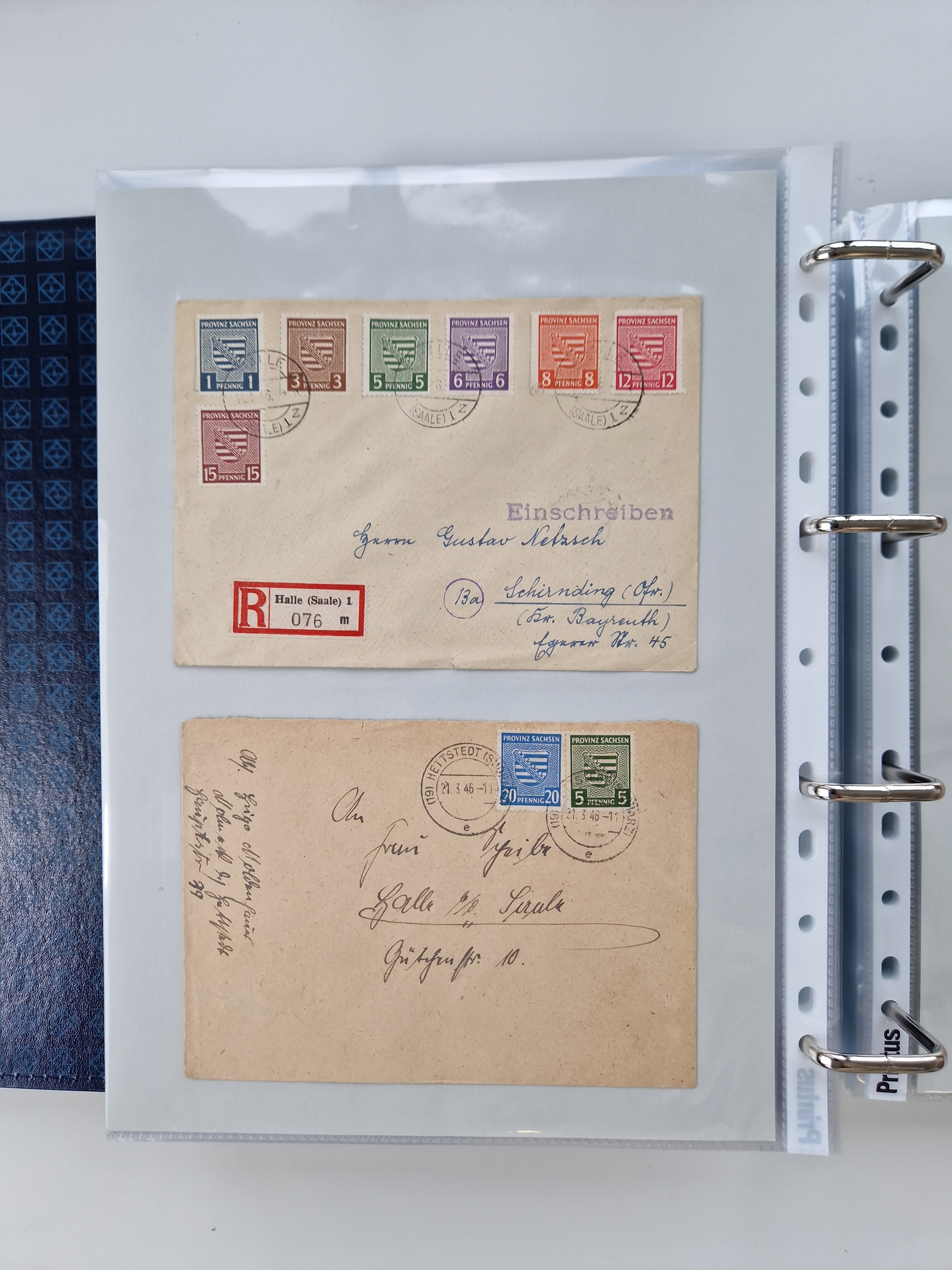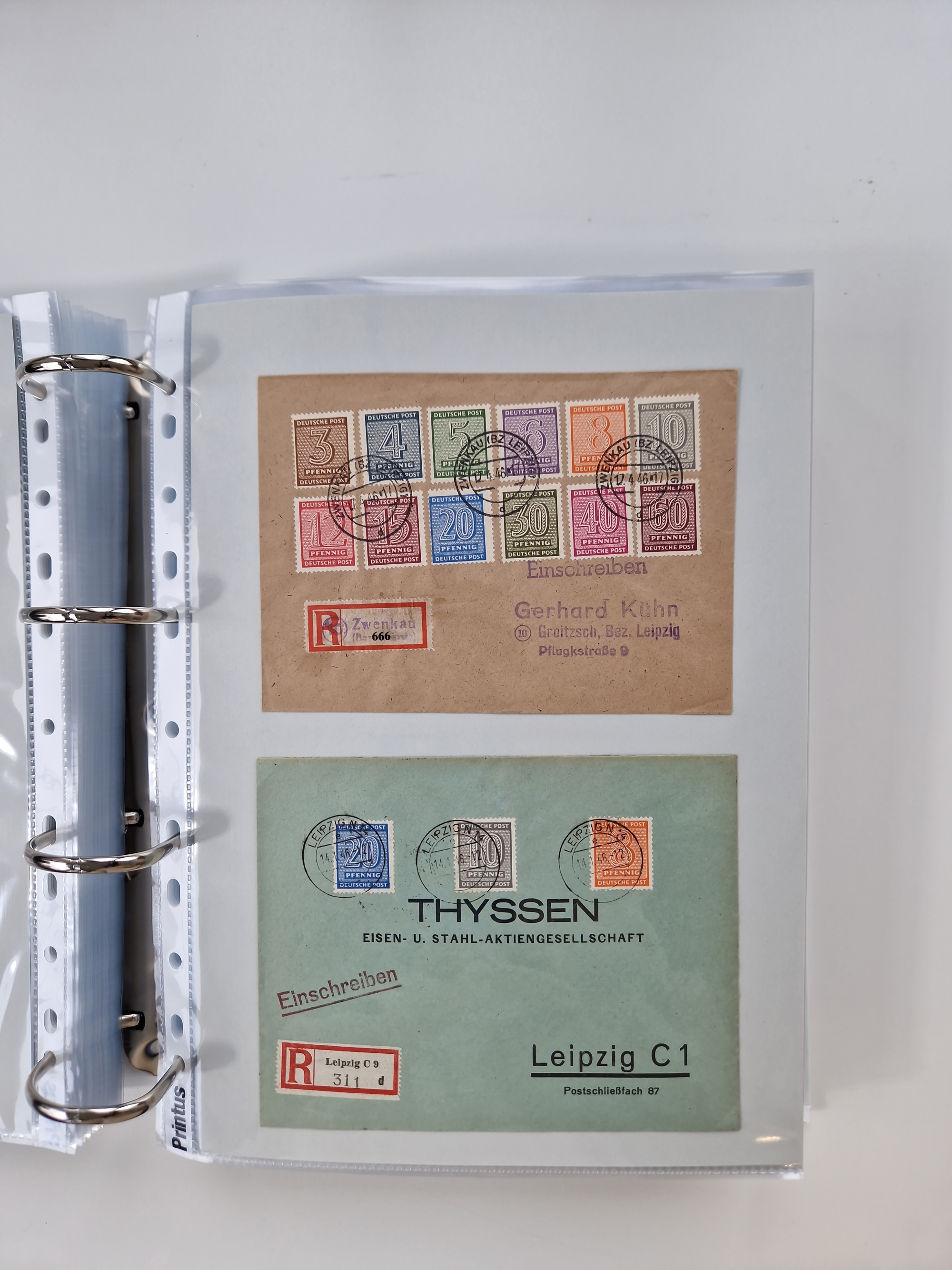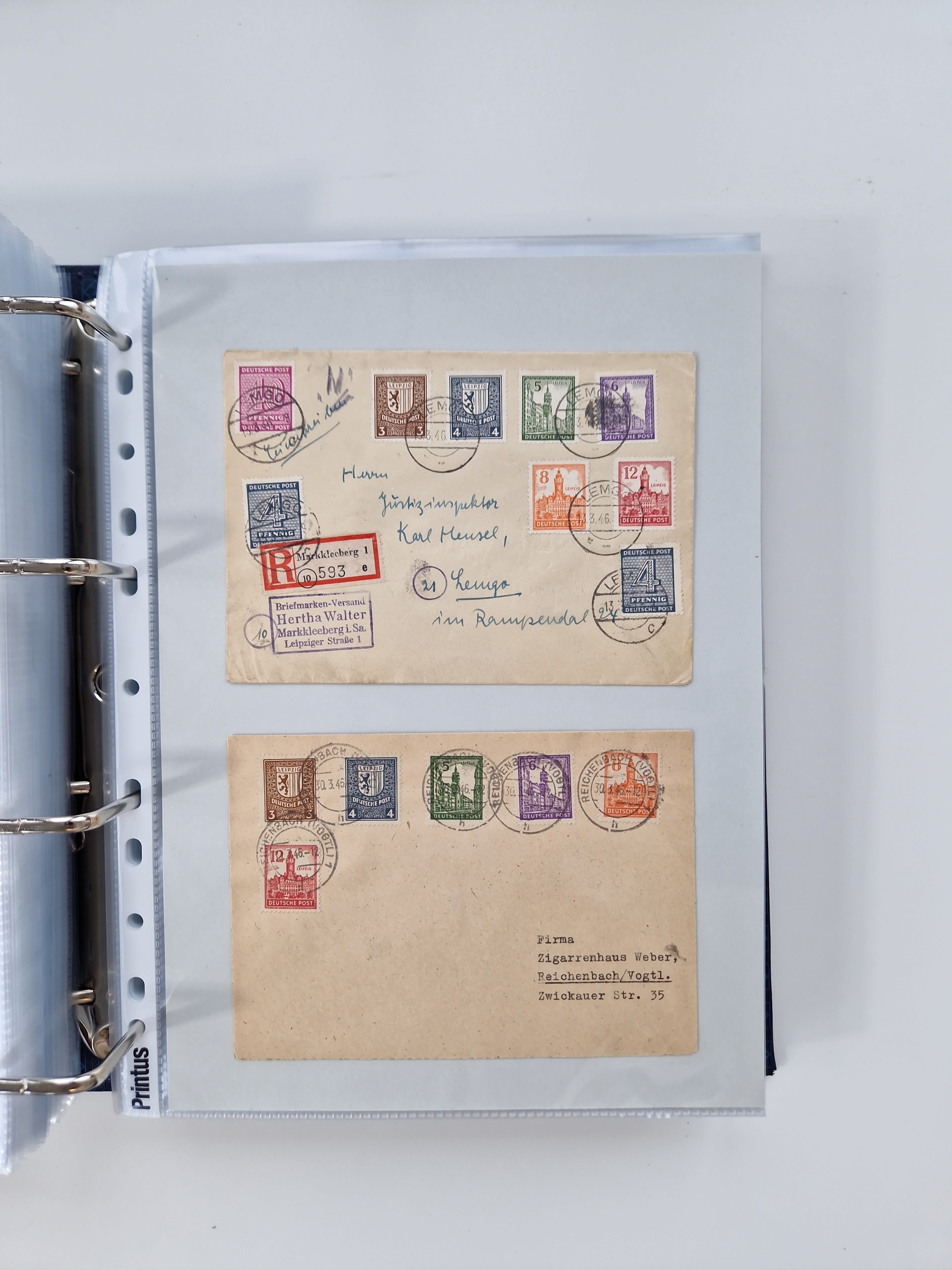 1945/48, geschätzt 200-300 Briefe mit Sammlerpost, vielen R-Briefen, mehrere Briefe mit POL-Lochungen aus Halle inkl. Briefe mit ZU, Notstempel, Gebühr bezahlt, Zensuren, Gebührenmeldung mit senkrechtem Paar Arbeiter 60 Pfg., Zehnfachfrankaturen mit Mehrfachfrankaturen bis 84 Pfg. und fünf R-Briefe mit Amts-R-Zettel von Bad Nauheim mit Buchstaben “B", “E”, “G” und “J” (einmal ohne Buchstaben), meist in guter Erhaltung