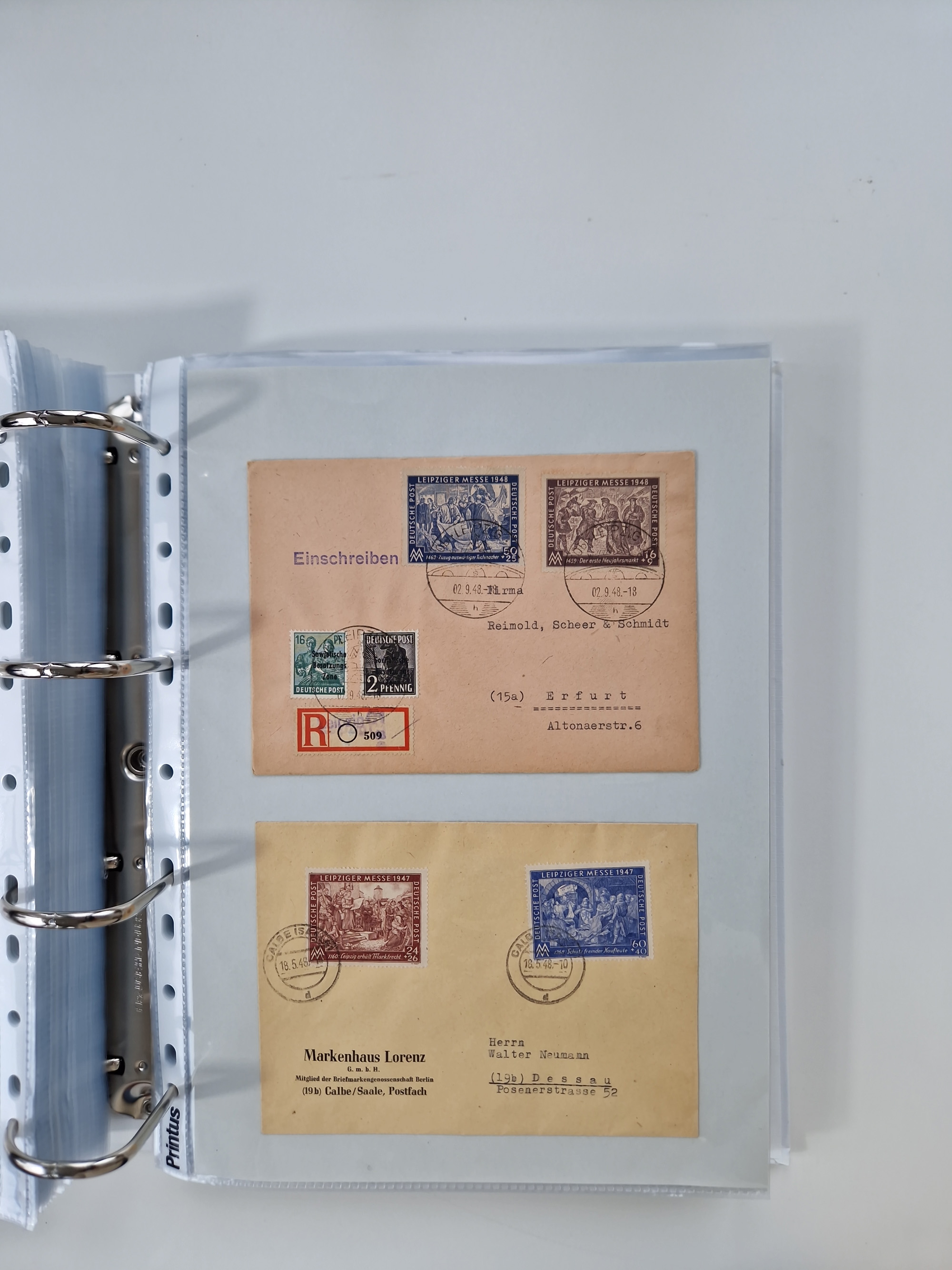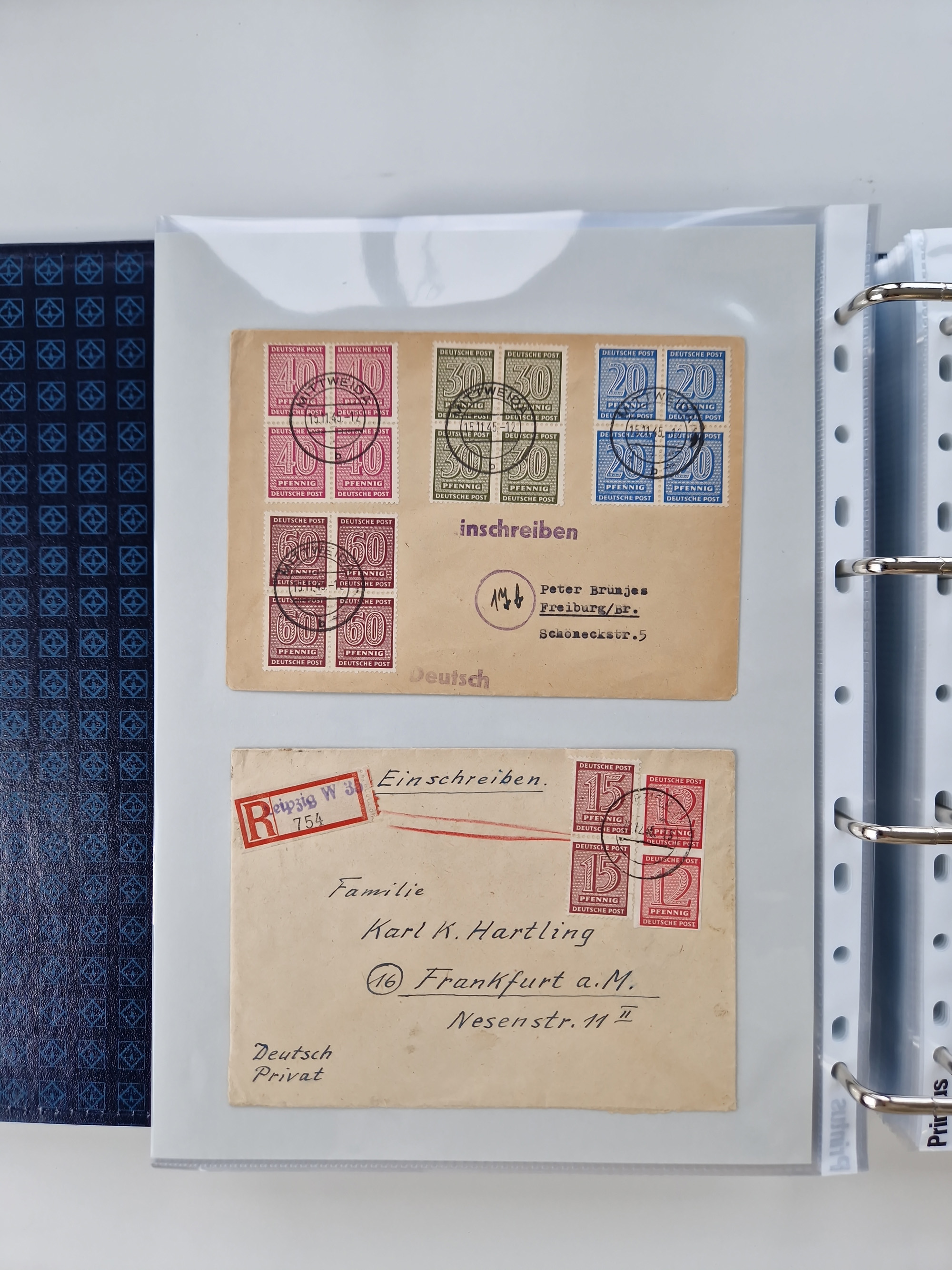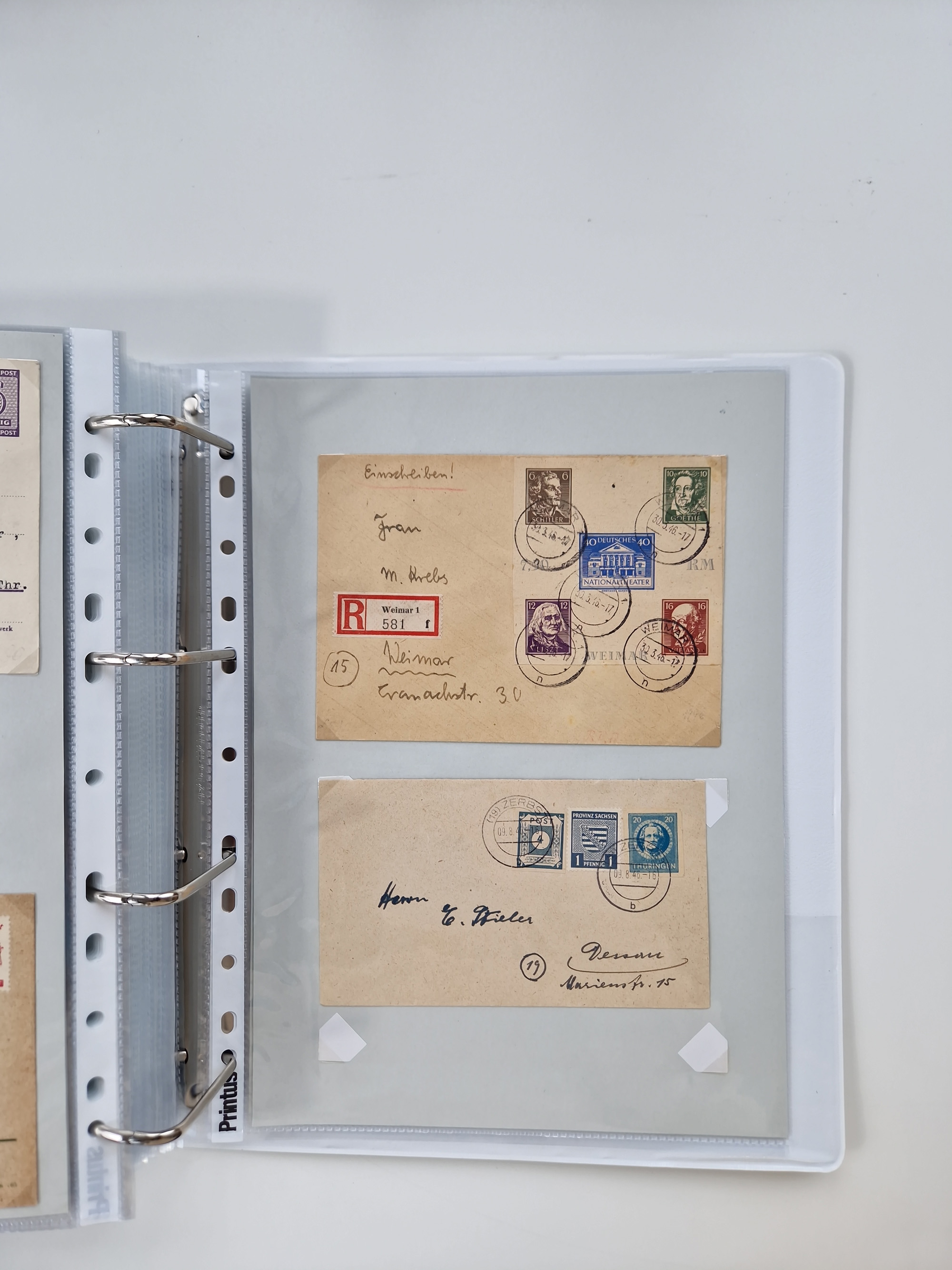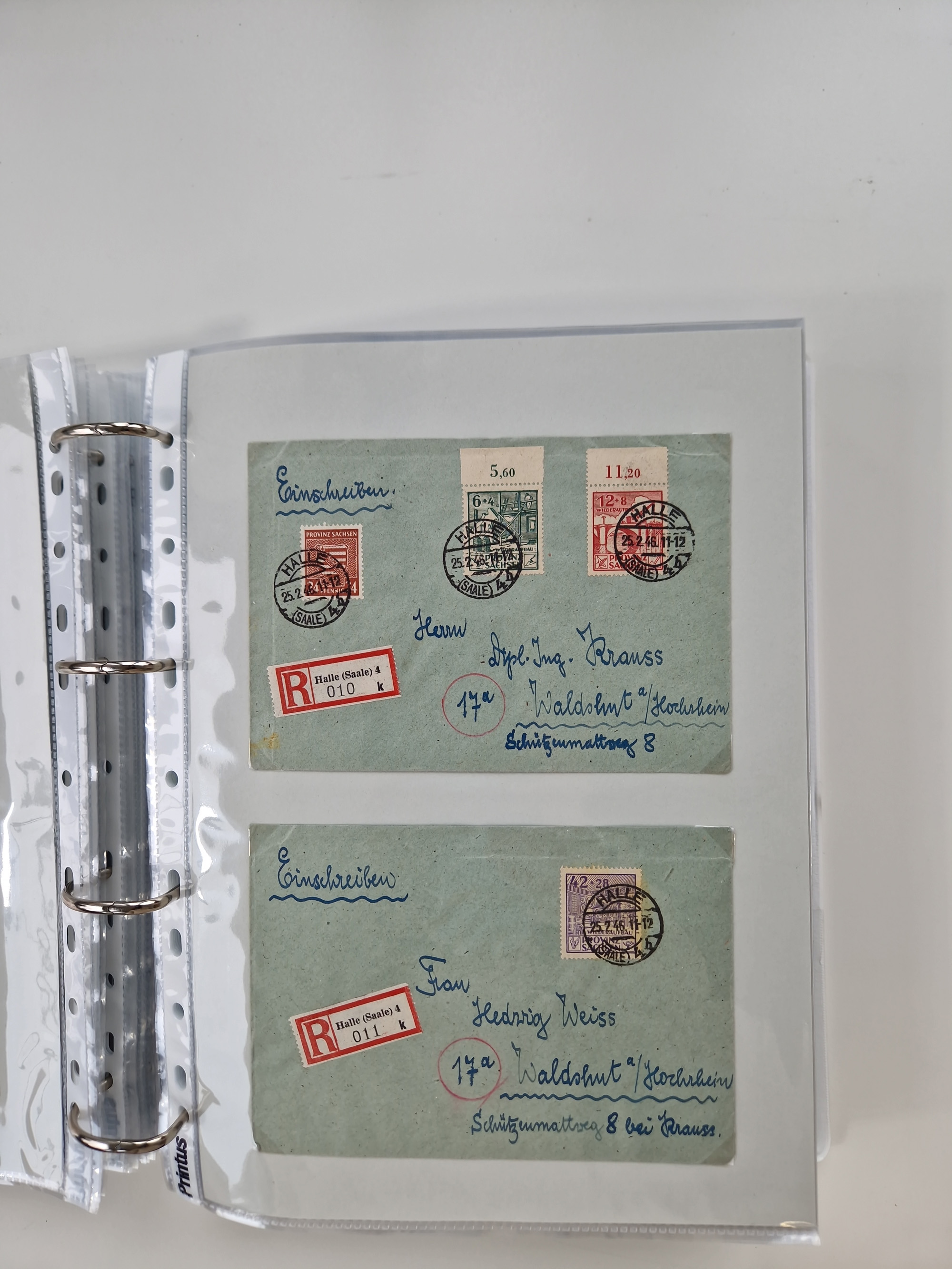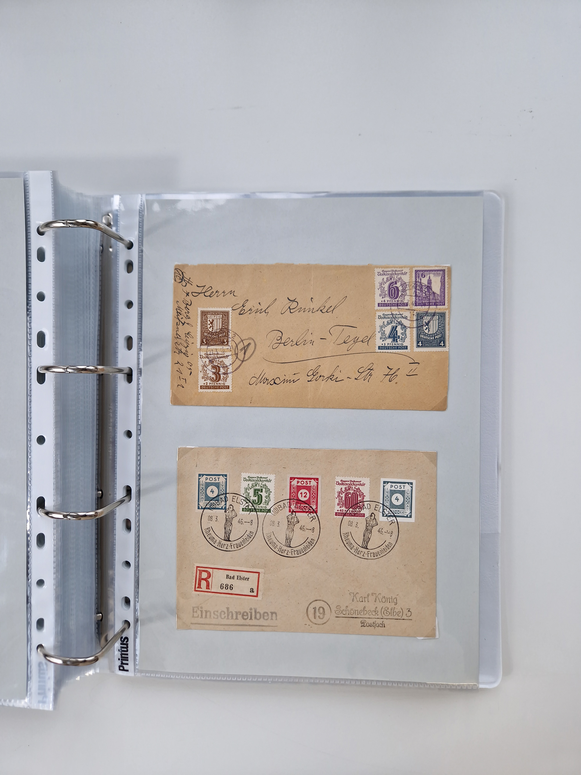 1945/48, geschätzt 200-300 Briefe mit Sammlerpost, vielen R-Briefen, mehrere Briefe mit POL-Lochungen aus Halle inkl. Briefe mit ZU, Notstempel, Gebühr bezahlt, Zensuren, Gebührenmeldung mit senkrechtem Paar Arbeiter 60 Pfg., Zehnfachfrankaturen mit Mehrfachfrankaturen bis 84 Pfg. und fünf R-Briefe mit Amts-R-Zettel von Bad Nauheim mit Buchstaben “B", “E”, “G” und “J” (einmal ohne Buchstaben), meist in guter Erhaltung