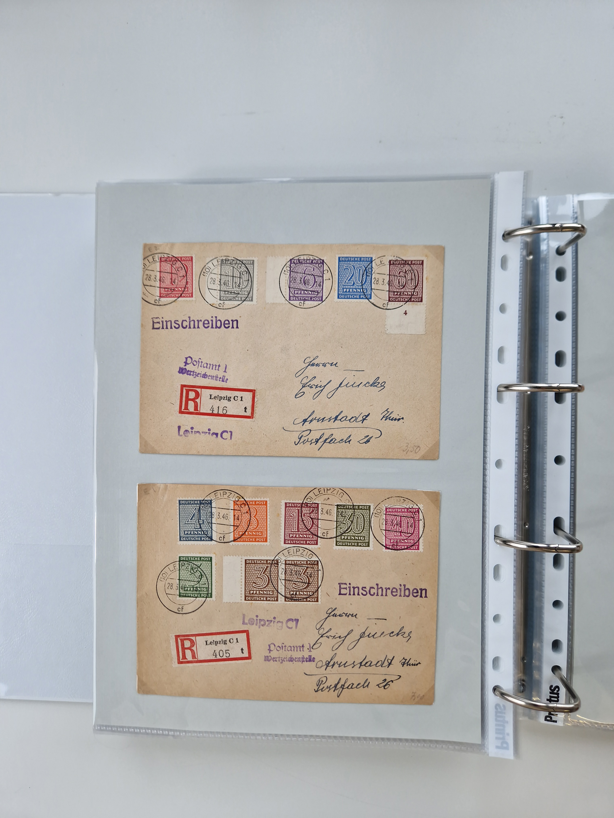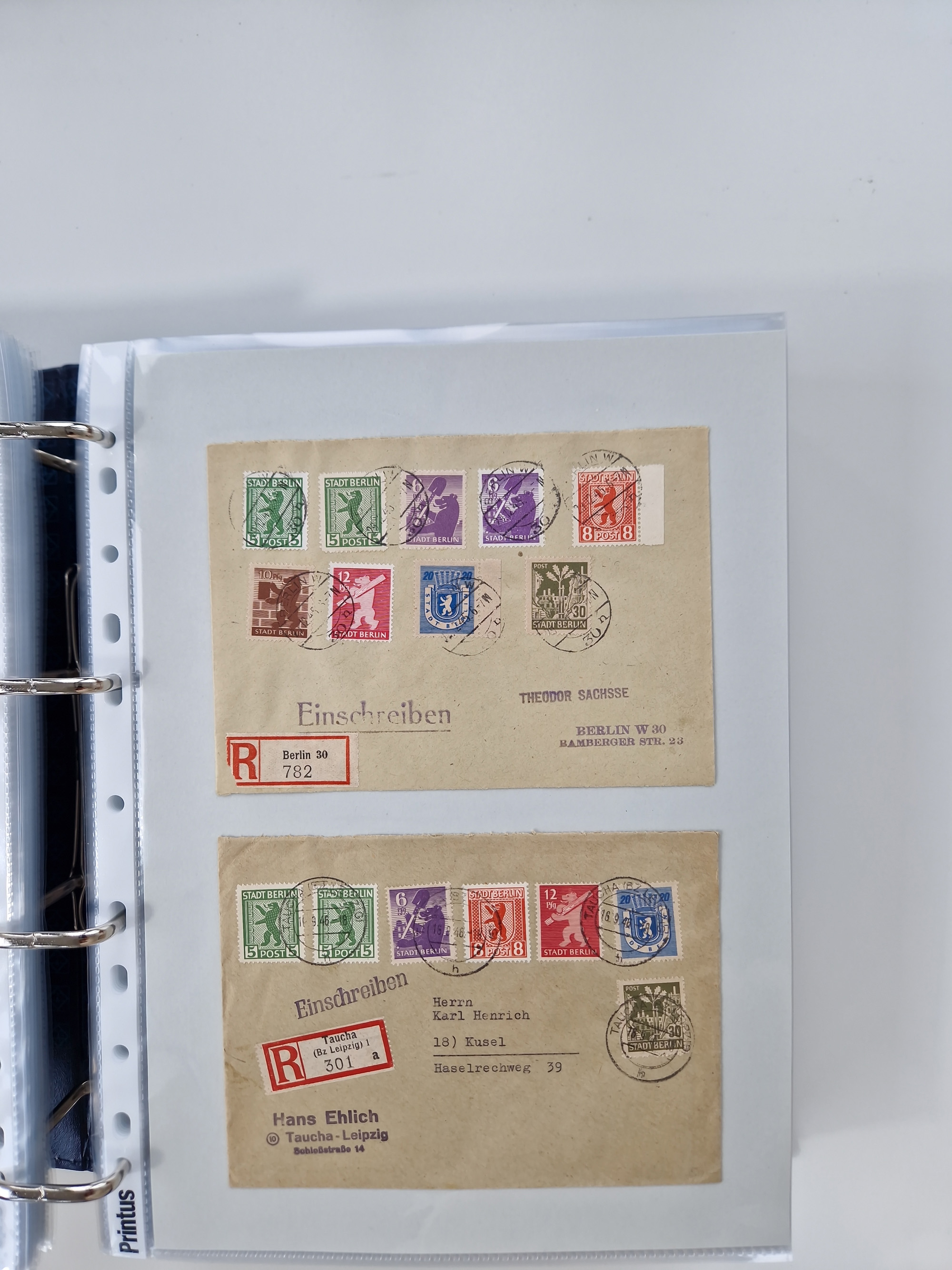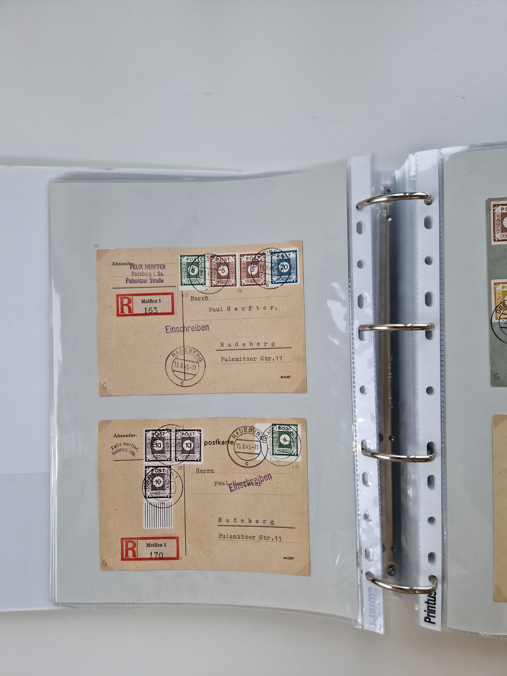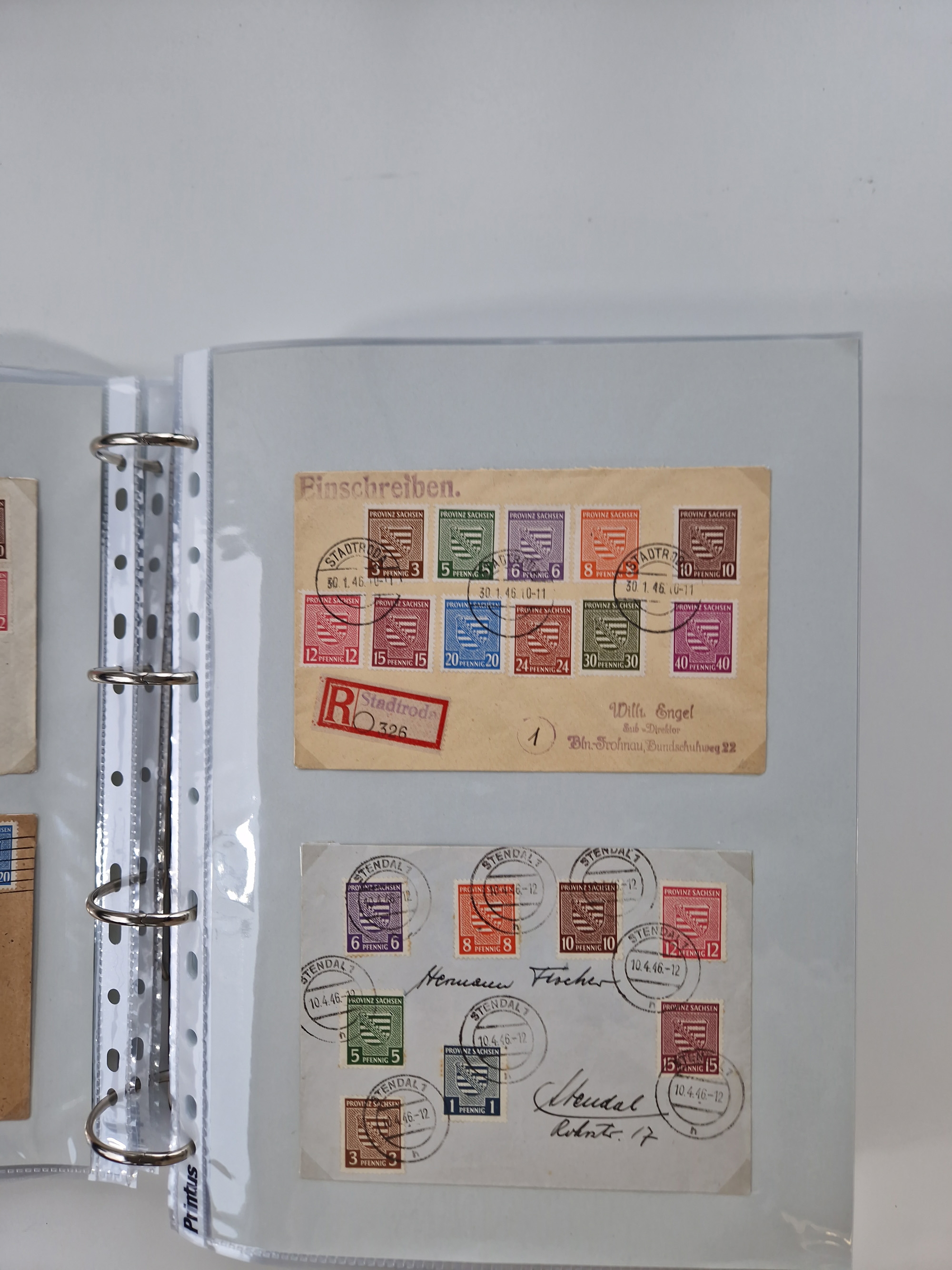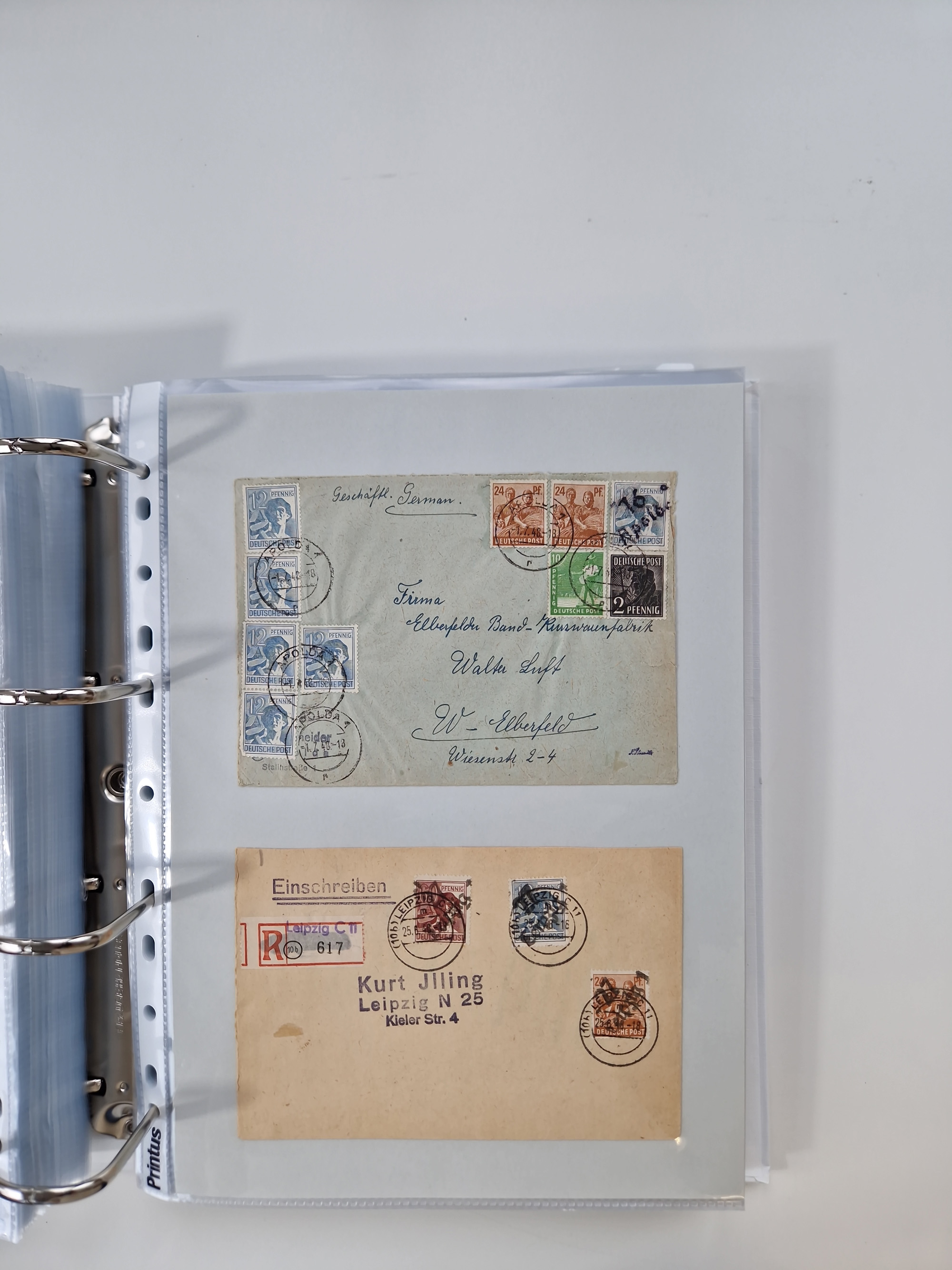 1945/48, geschätzt 200-300 Briefe mit Sammlerpost, vielen R-Briefen, mehrere Briefe mit POL-Lochungen aus Halle inkl. Briefe mit ZU, Notstempel, Gebühr bezahlt, Zensuren, Gebührenmeldung mit senkrechtem Paar Arbeiter 60 Pfg., Zehnfachfrankaturen mit Mehrfachfrankaturen bis 84 Pfg. und fünf R-Briefe mit Amts-R-Zettel von Bad Nauheim mit Buchstaben “B", “E”, “G” und “J” (einmal ohne Buchstaben), meist in guter Erhaltung